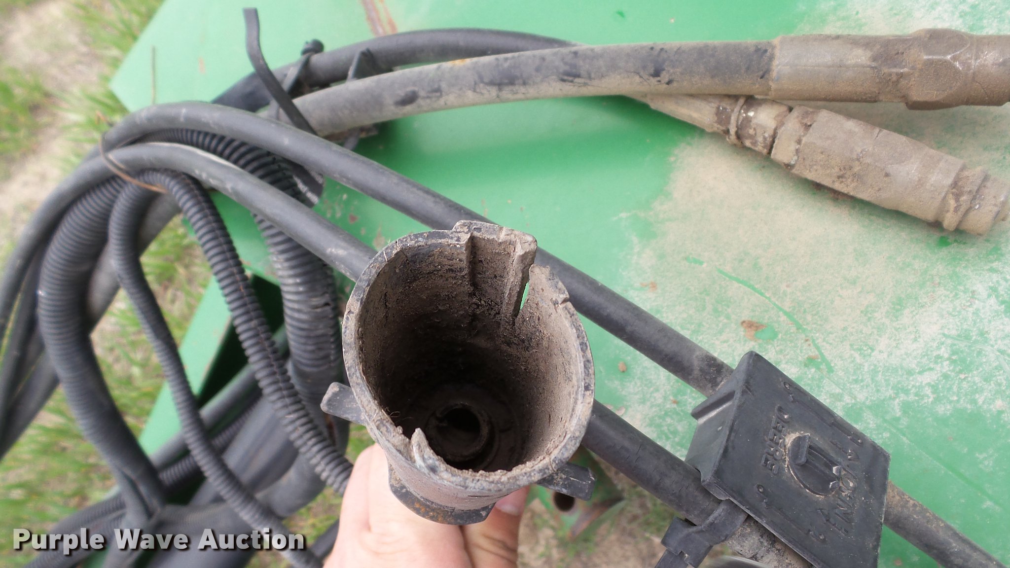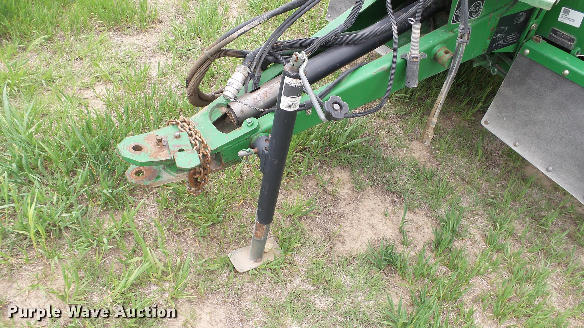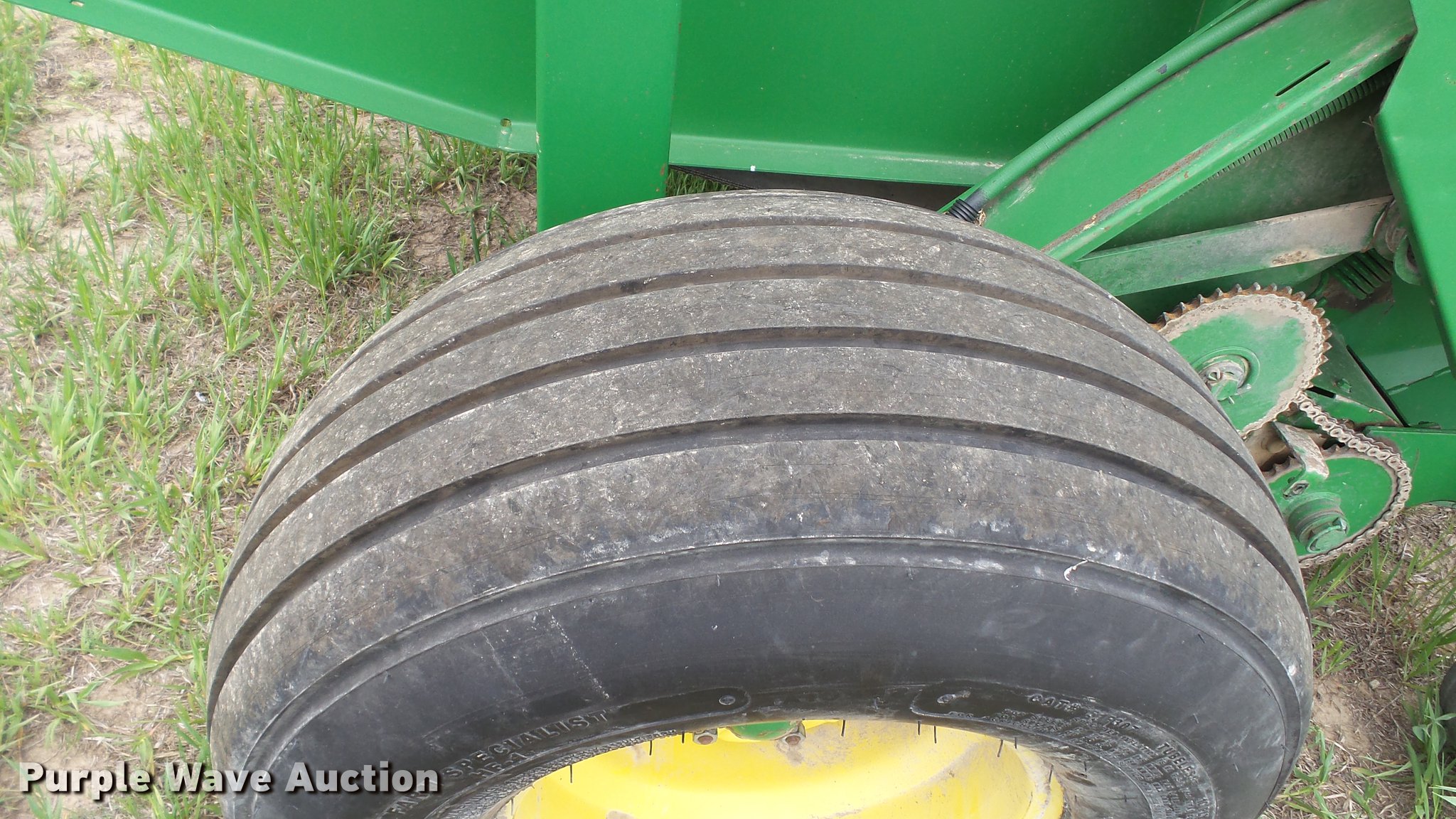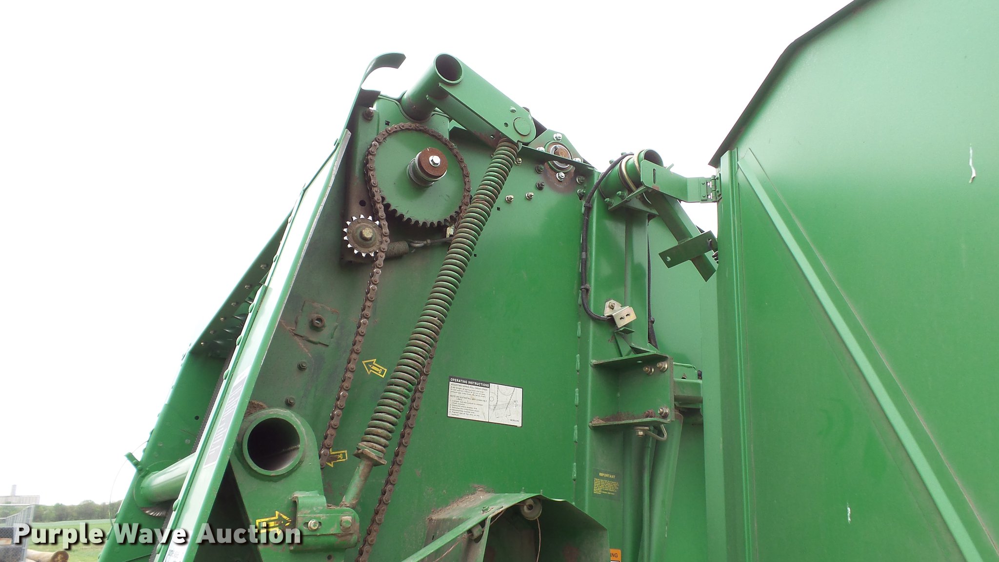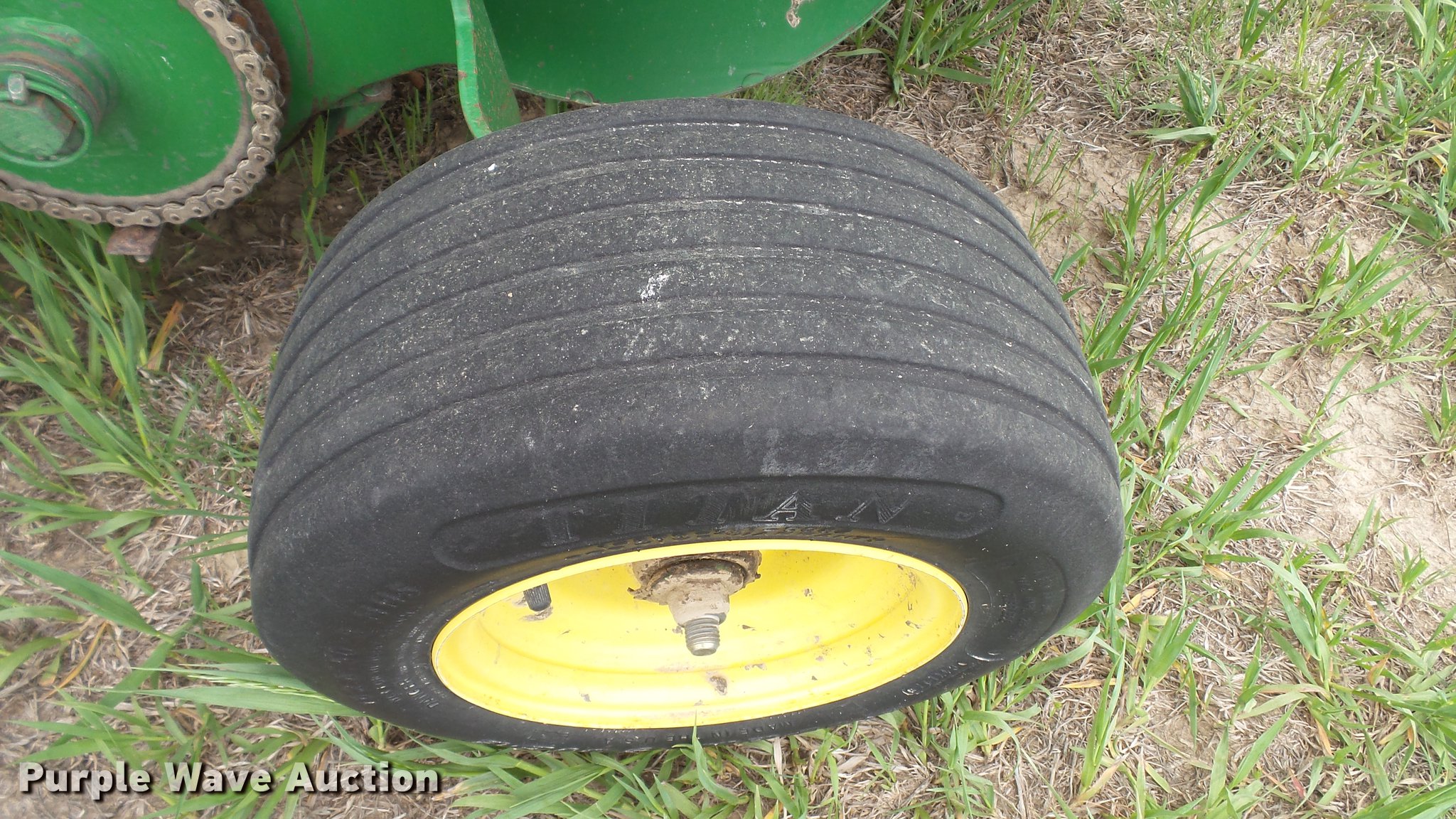 Purple Wave is selling a used Round Baler in Kansas. This item is a 1998 John Deere 566 round baler with the following: 15,000 bale count, 5' x 6' bale capacity, 60"W pickup, Hydraulic pickup lift, 16x6.50-8 gauge wheels, Twine tie, Bale kicker, Transport lights, Large 1000 PTO, Pin hitch, 31x13.50-15 tires, Left door will not latch, Transport plug broken, Serial E00566X126883, Unit# 47771