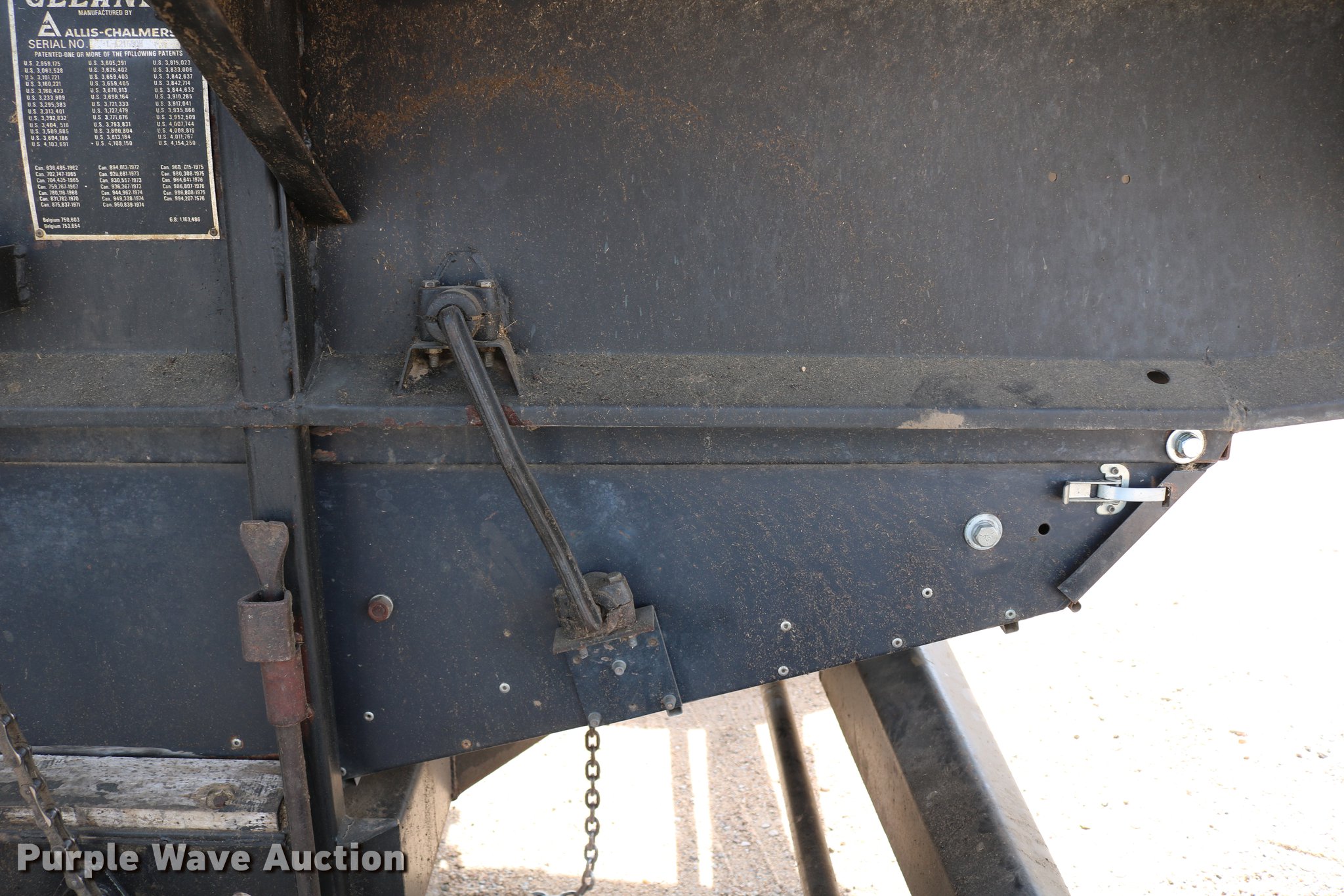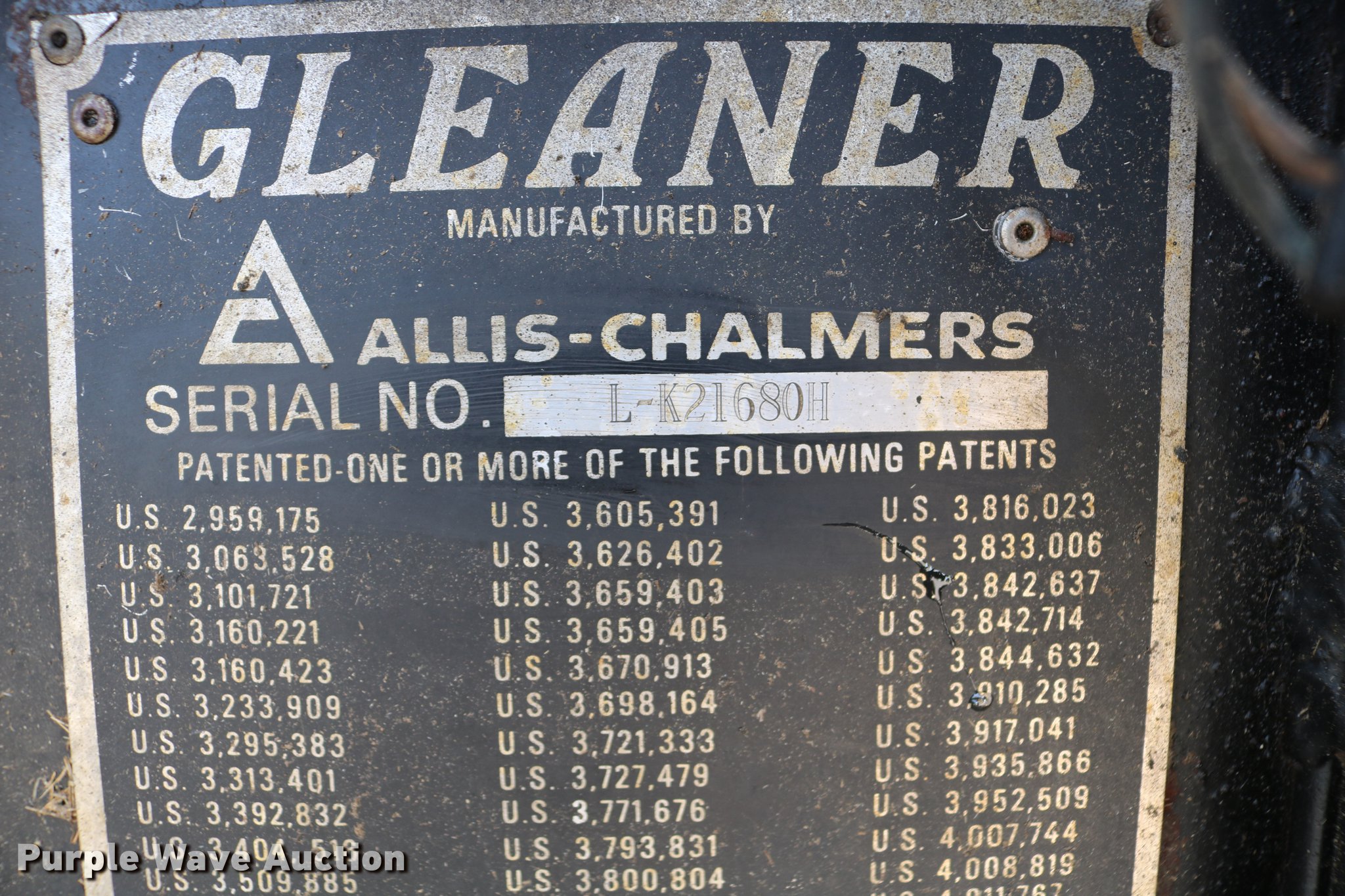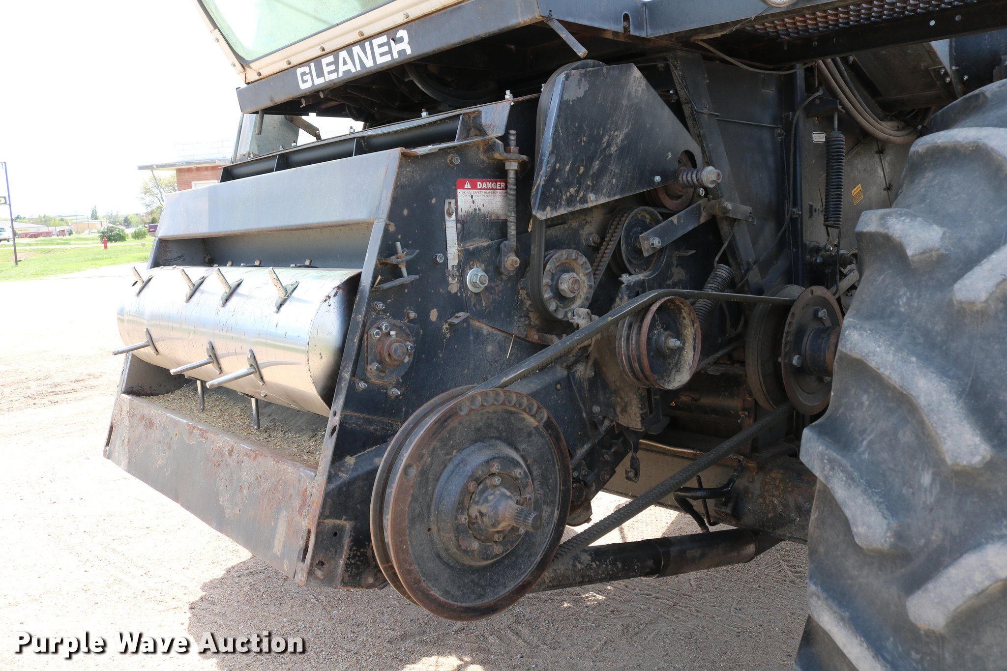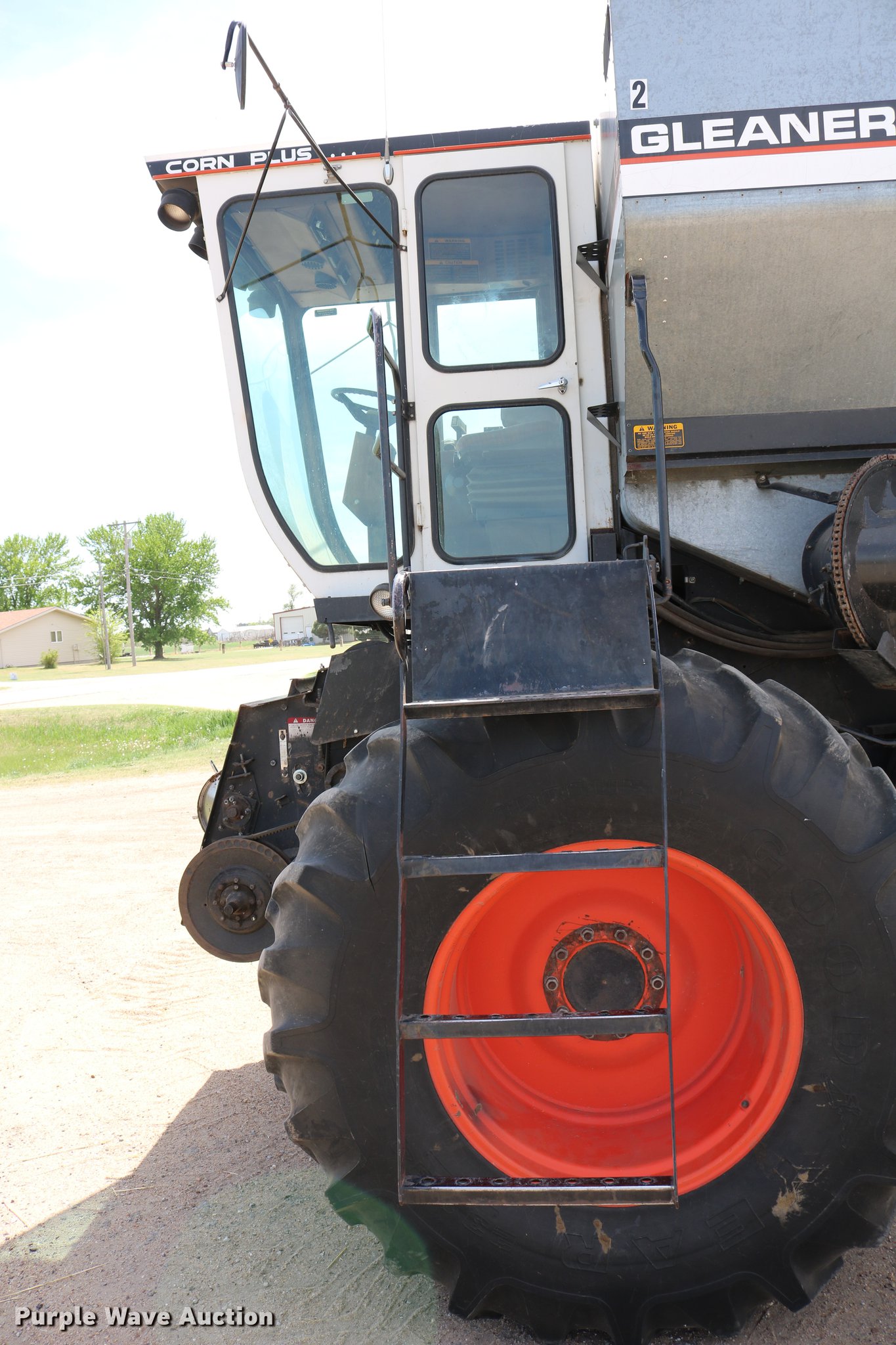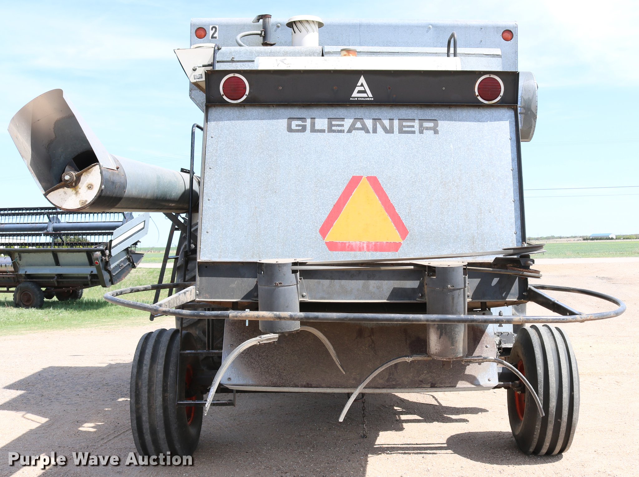 Purple Wave is selling a used Combine in Kansas. This item is a 1981 Gleaner L2 combine with the following: 2,533 engine hours on meter, 1,311 separator hours on meter, Six cylinder turbo diesel engine, Hydrostatic transmission, 4F-4R gears, Feederhouse, Variable speed, AC and heat, Tilt steering wheel, AM/FM, Suspension seat, Round concaves, Chaff spreader, Bin extensions, 13'L unloading auger, Ether start, Gleaner rigid head, 24'W, Bat reel, Hydraulic reel height control, Dual drivelines, Serial L-G43304R, 23.1-34 front tires, 14L-16.1 rear tires, Header trailer not included, Serial LK21680H, Unit# 2