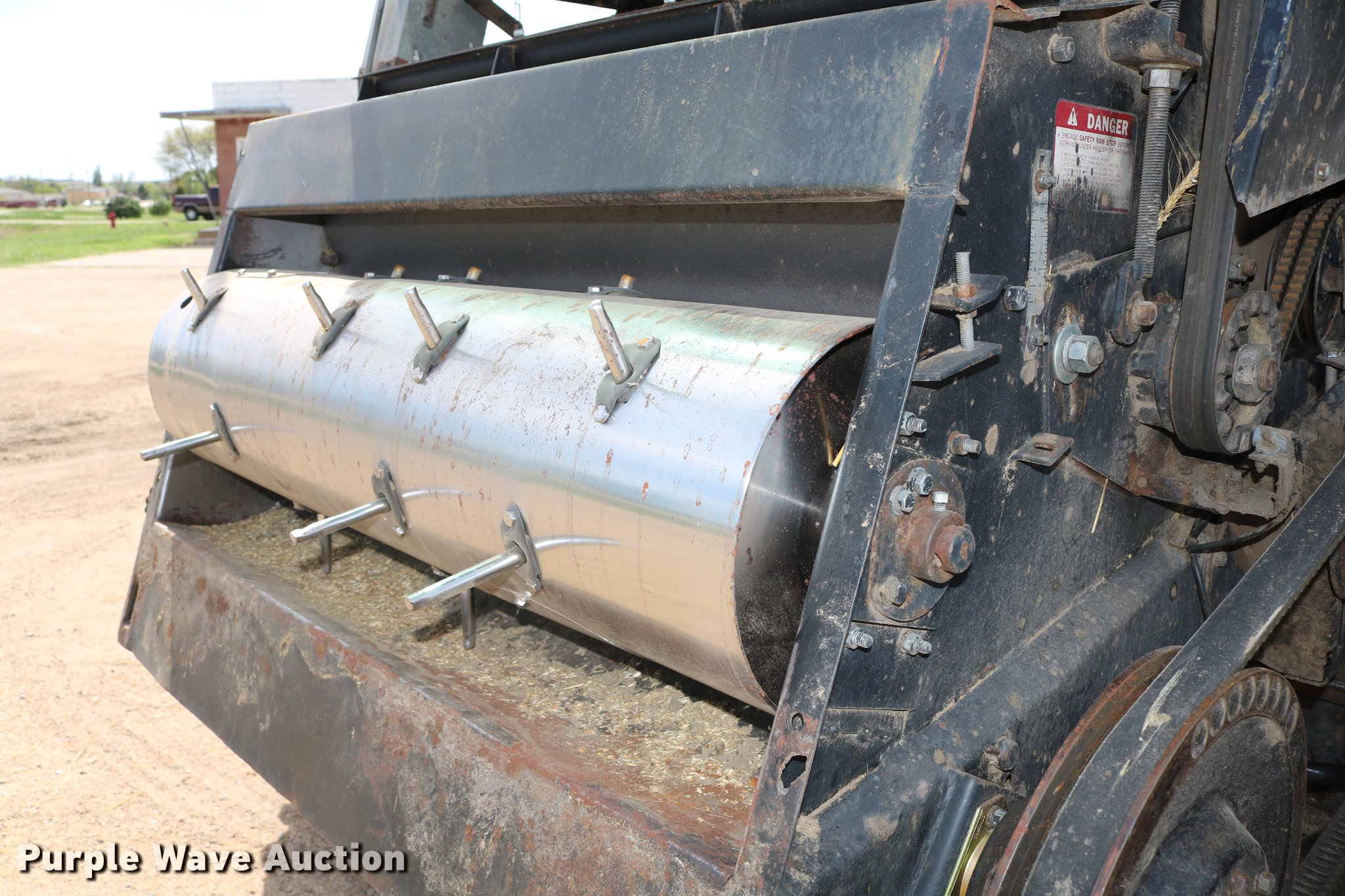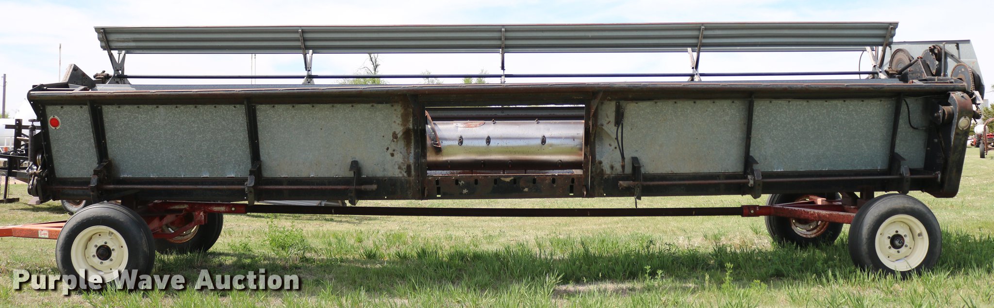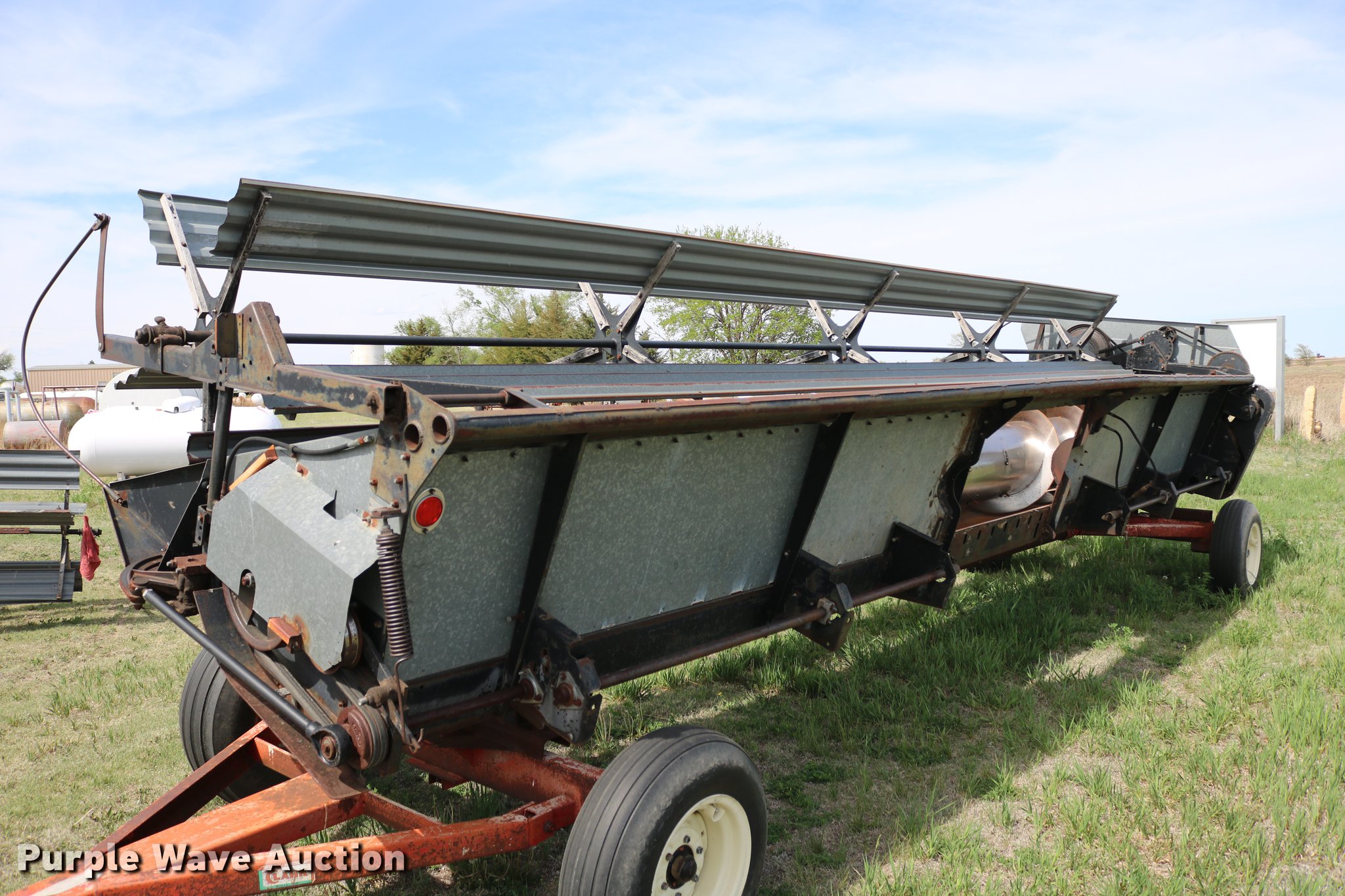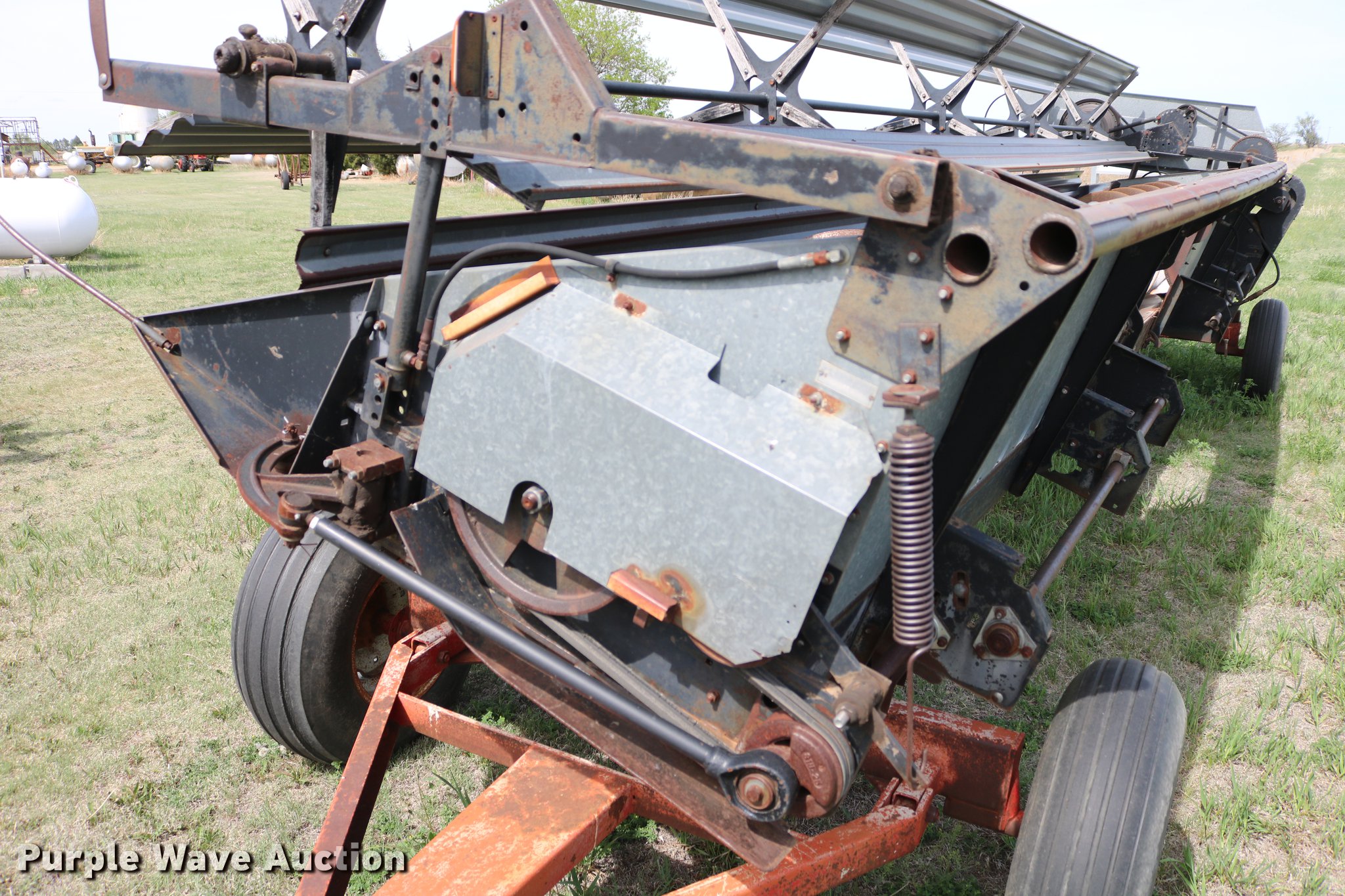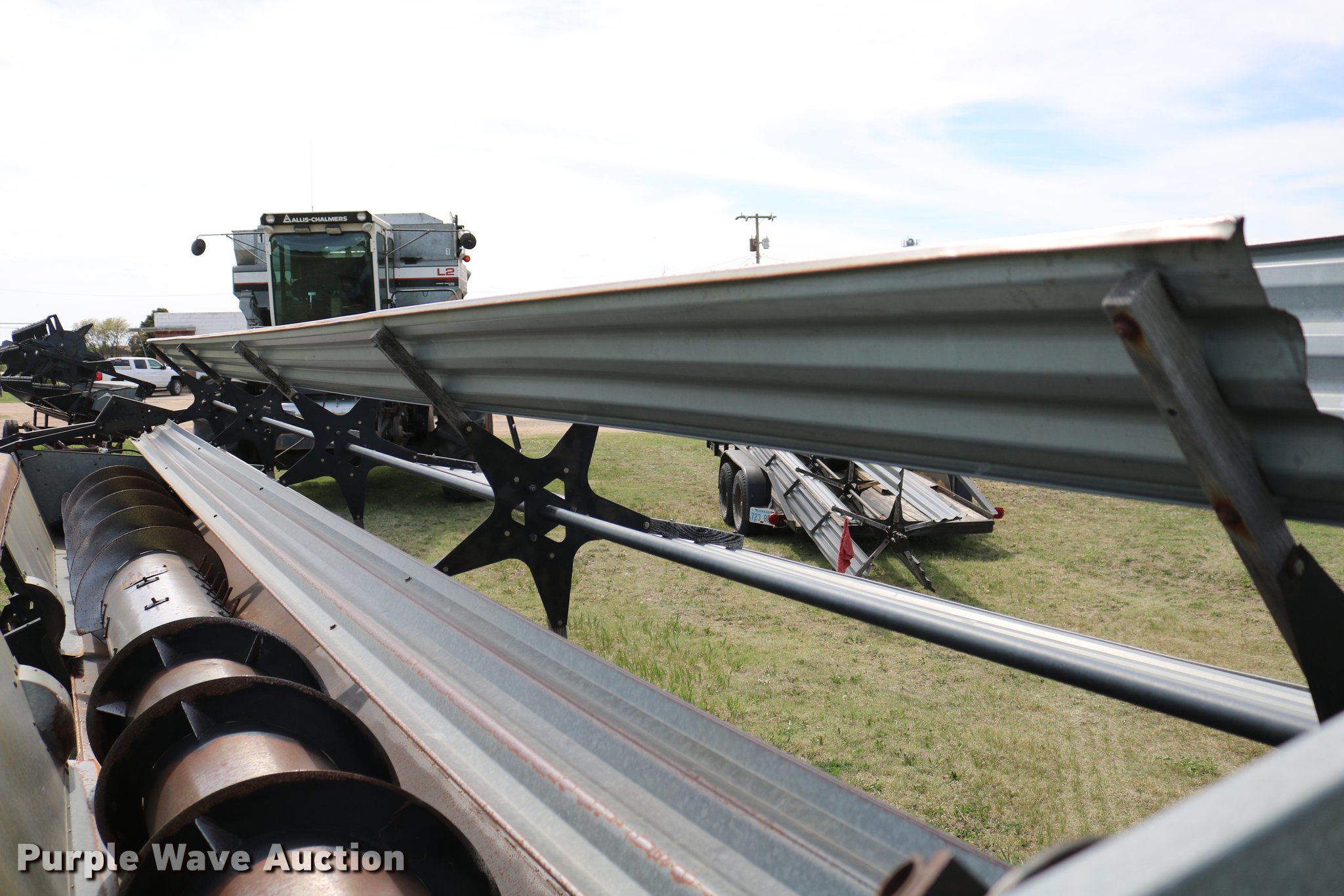Purple Wave is selling a used Combine in Kansas. This item is a 1981 Gleaner L2 combine with the following: 2,533 engine hours on meter, 1,311 separator hours on meter, Six cylinder turbo diesel engine, Hydrostatic transmission, 4F-4R gears, Feederhouse, Variable speed, AC and heat, Tilt steering wheel, AM/FM, Suspension seat, Round concaves, Chaff spreader, Bin extensions, 13'L unloading auger, Ether start, Gleaner rigid head, 24'W, Bat reel, Hydraulic reel height control, Dual drivelines, Serial L-G43304R, 23.1-34 front tires, 14L-16.1 rear tires, Header trailer not included, Serial LK21680H, Unit# 2