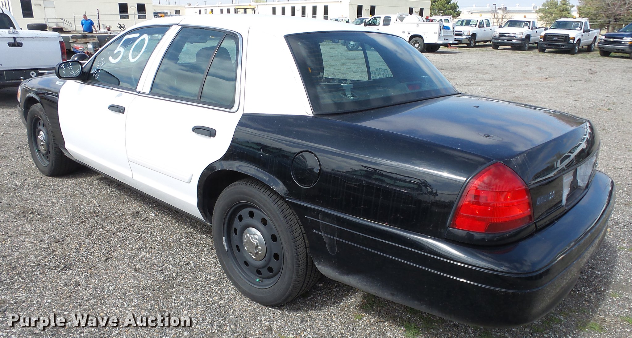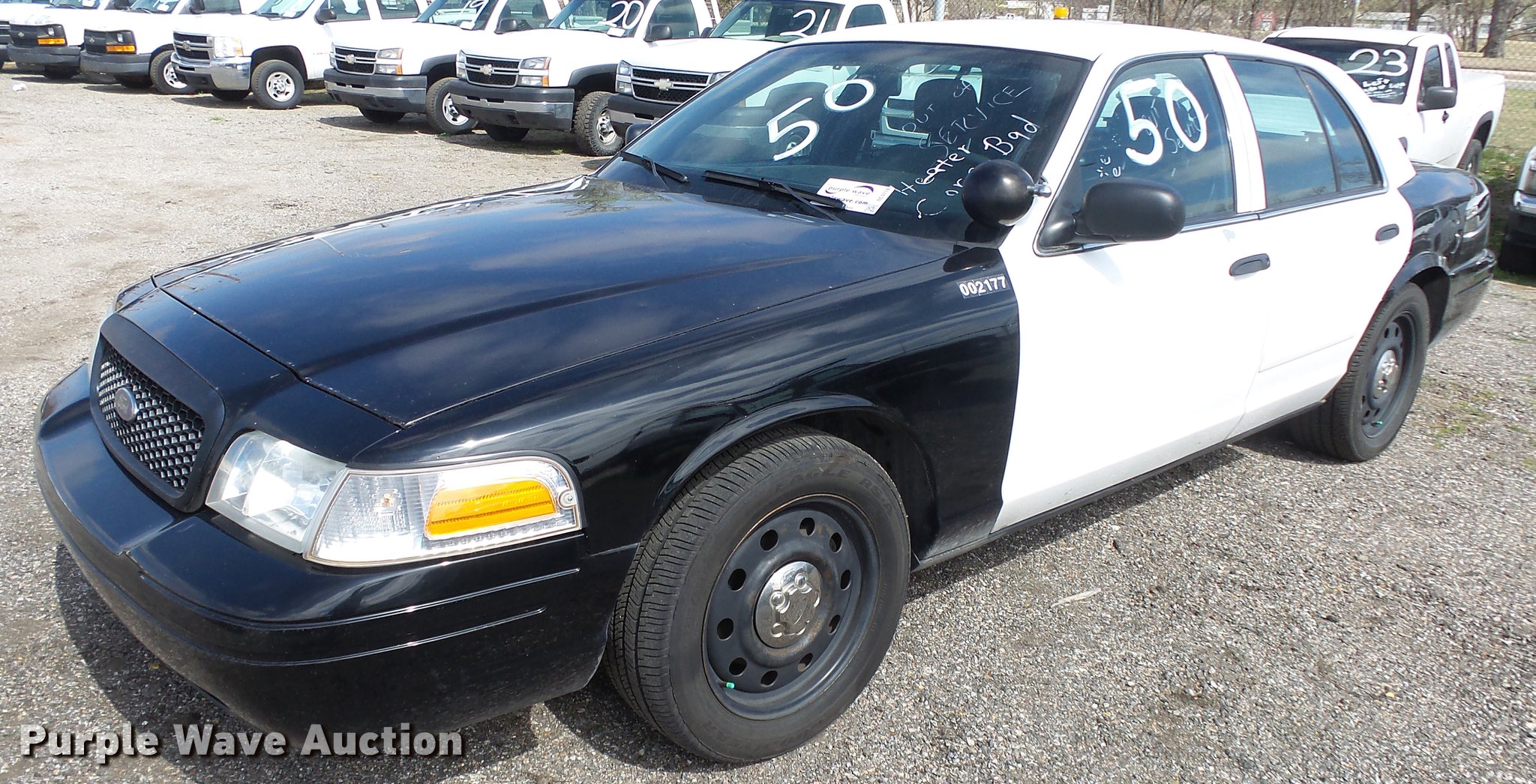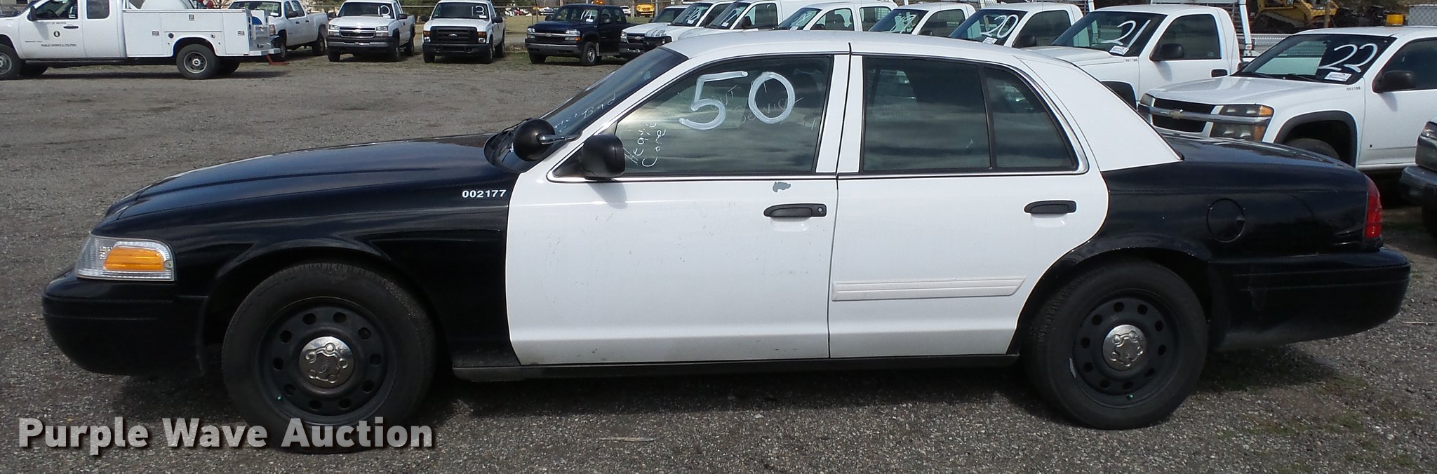 Purple Wave is selling a used Passenger Vehicle in Kansas. This item is a 2010 Ford Crown Victoria Police Interceptor with the following: 117,985 miles on odometer, 4.6L V8 SOHC 16V FFV gas engine, Automatic transmission, AC and heat, Tilt, AM/FM, Power windows, locks, and mirrors, Cloth front interior, Vinyl rear interior, Spot light, P235/55R17 tires, Heater core inoperable, Hail damage, Accessory holes in roof and trunk, Unit# 002177