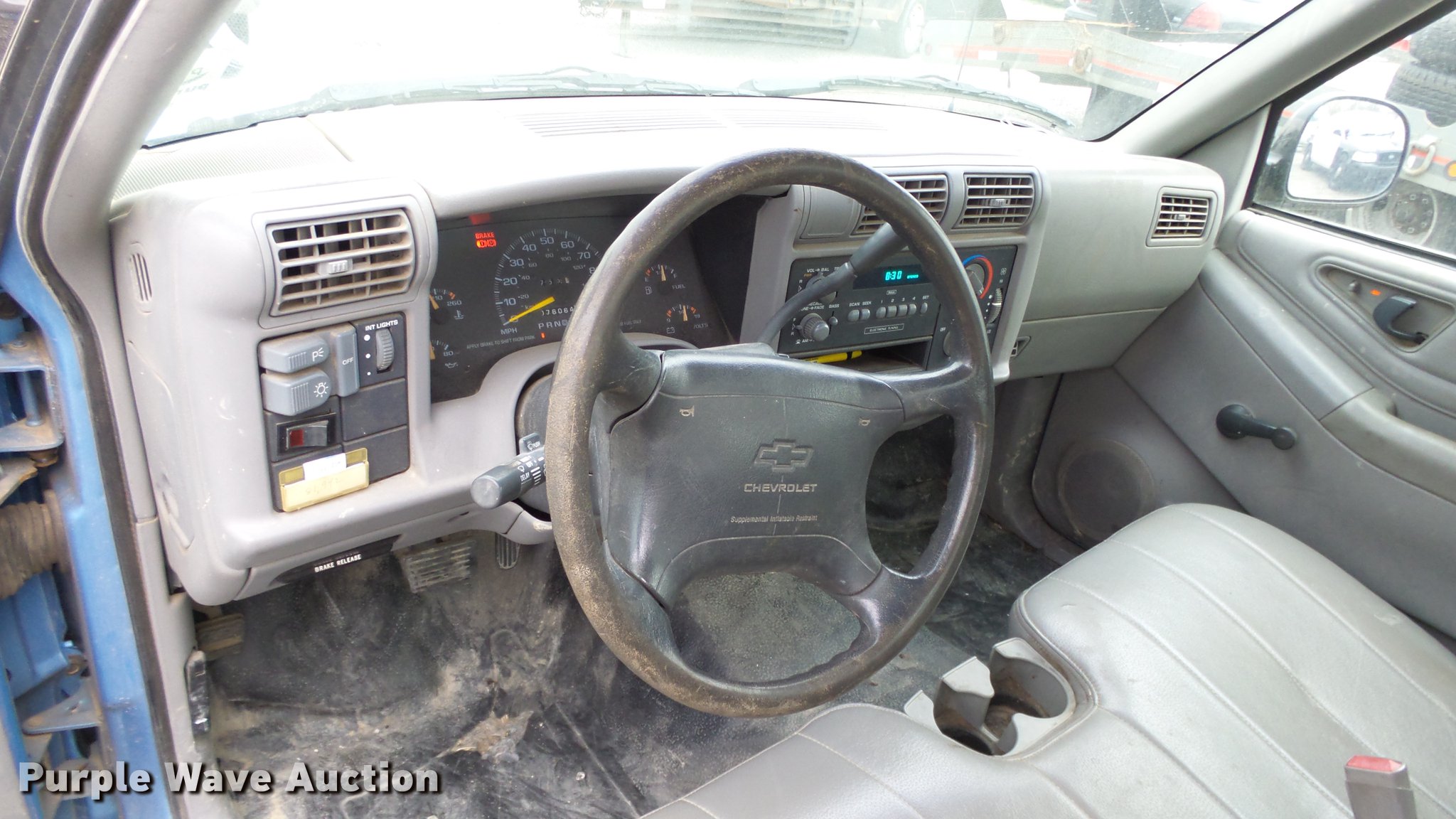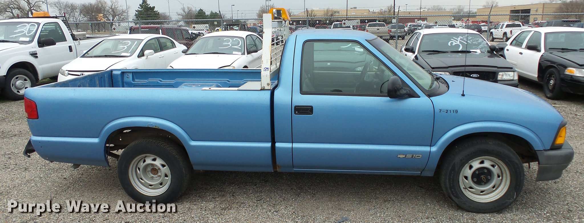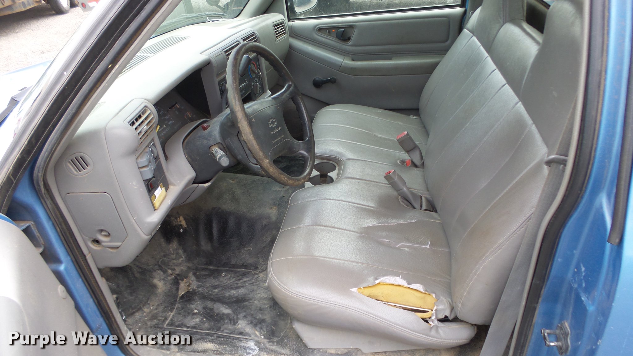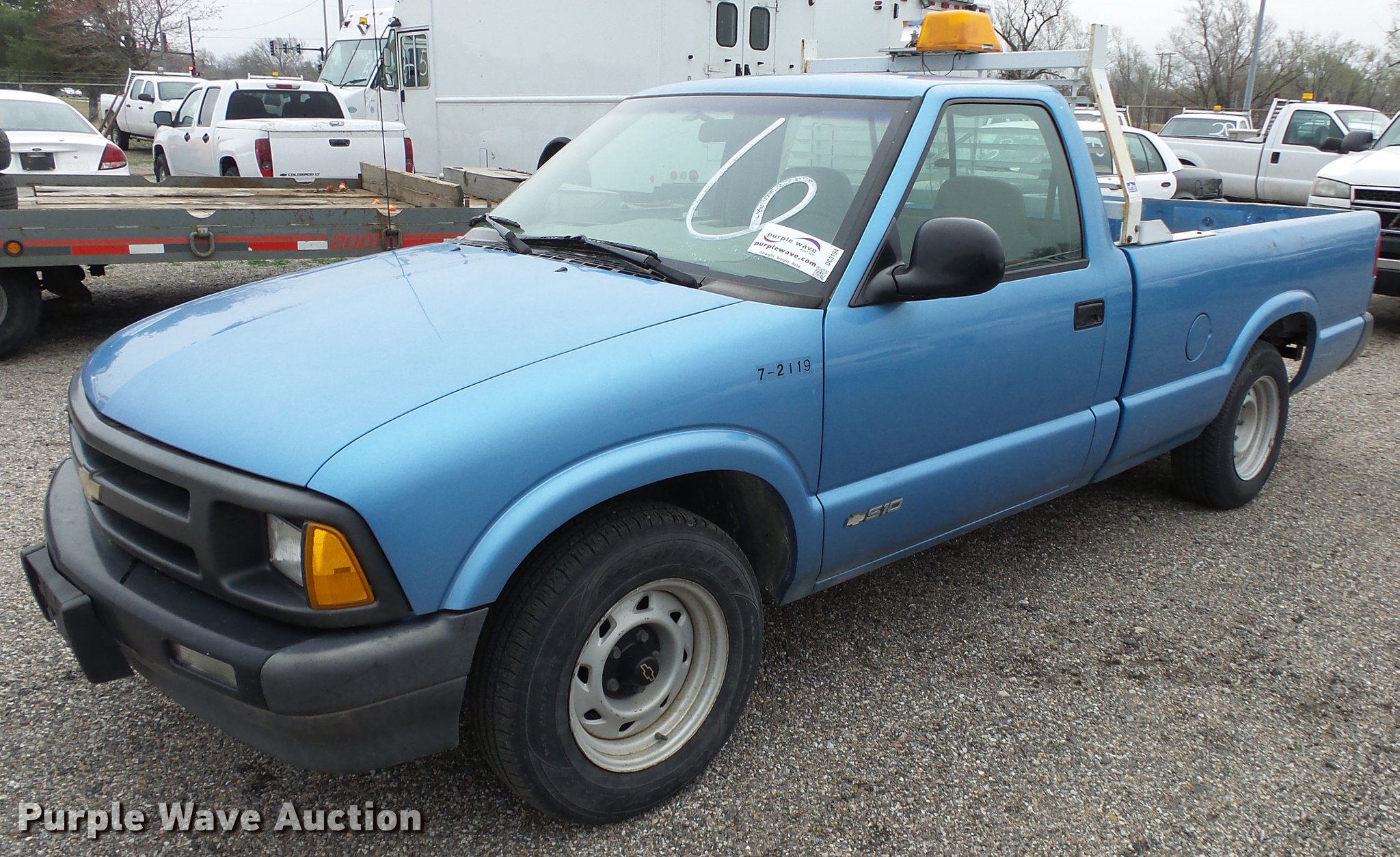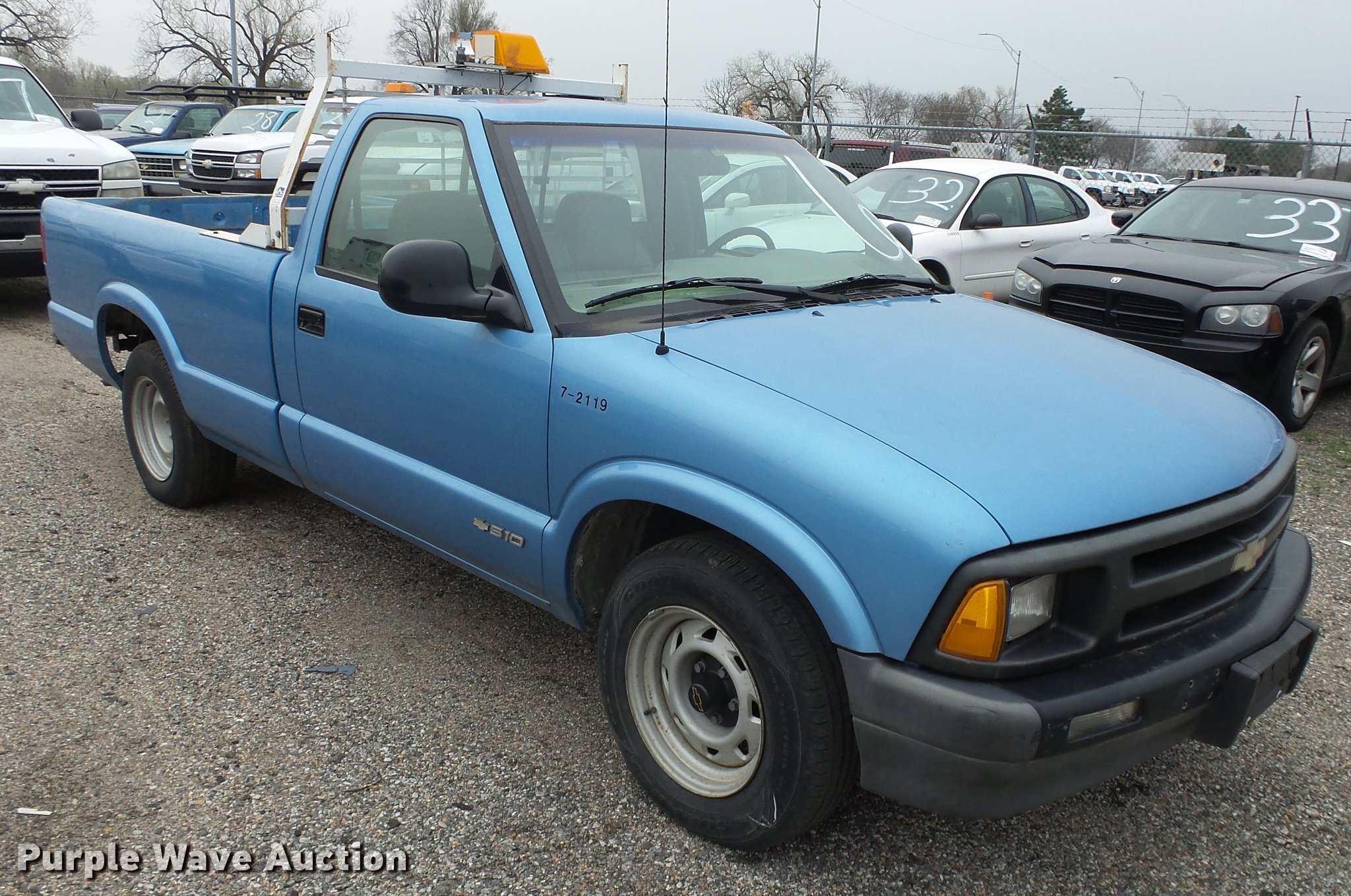 Purple Wave is selling a used Compact Pickup or Van in Kansas. This item is a 1997 Chevrolet S10 pickup truck with the following: 76,064 miles on odometer, 4.3L V6 OHV 12V gas engine, Automatic transmission, AC and heat, AM/FM, Vinyl interior, Headache rack, Strobe light, Receiver hitch, P205/75R15 tires, Body damage, Unit# 7-2119