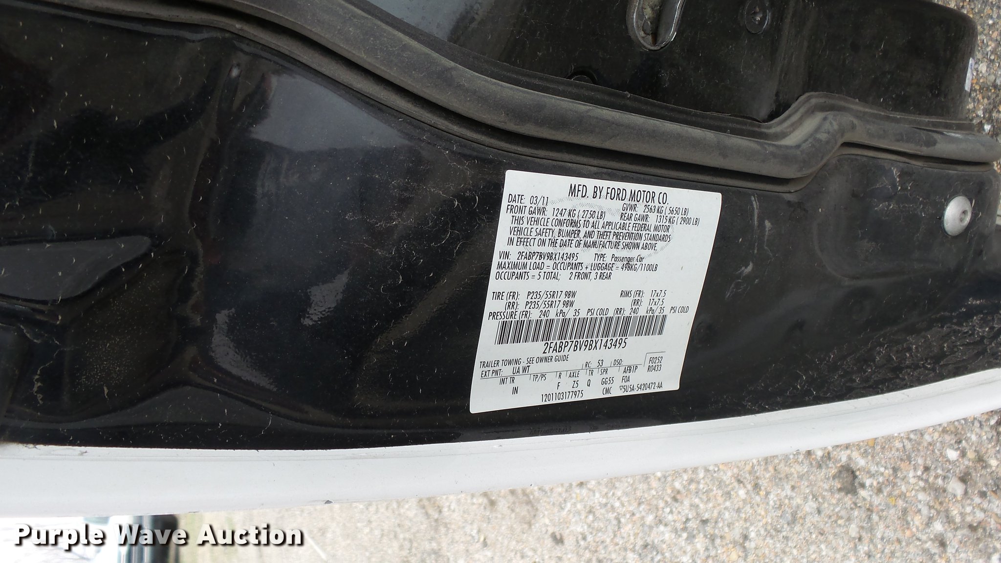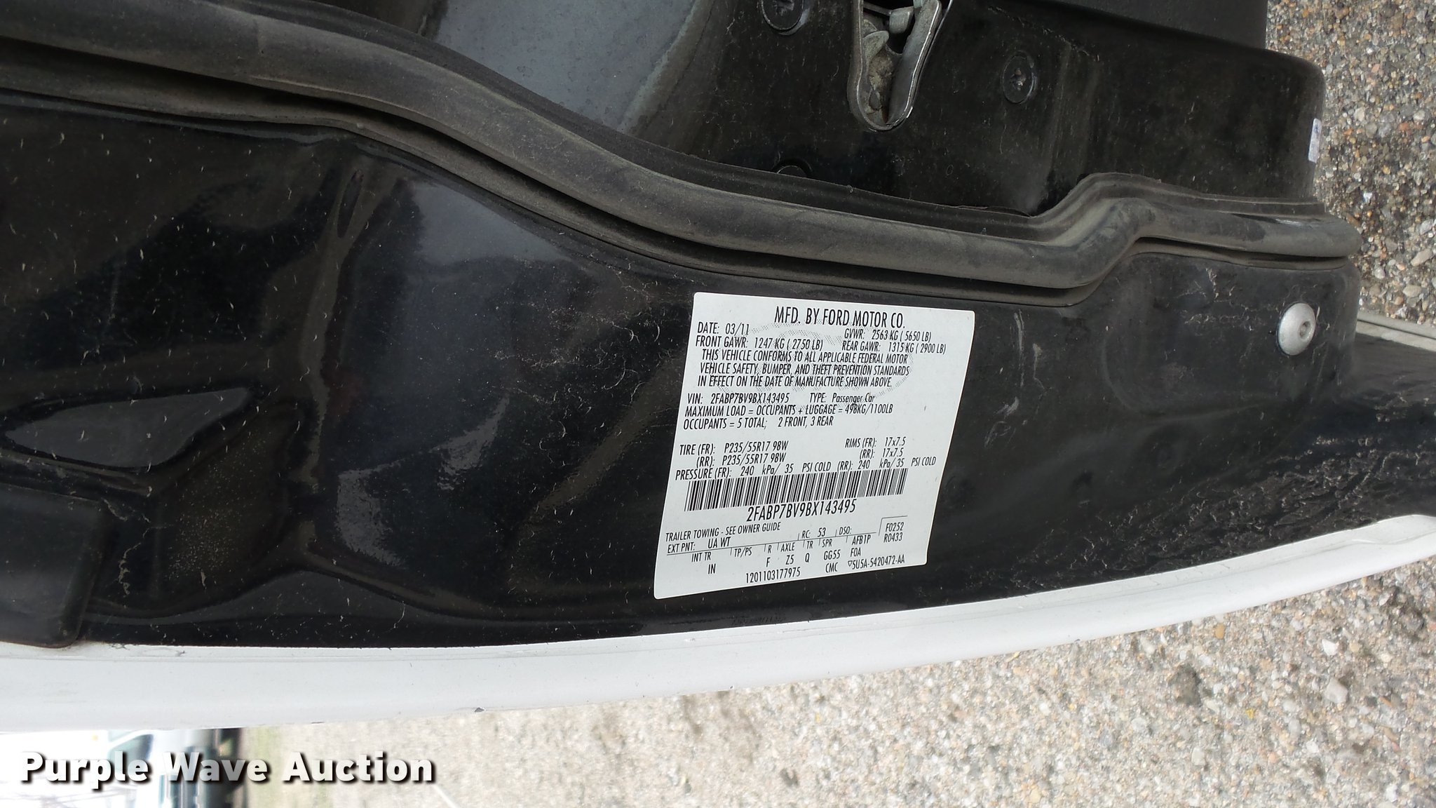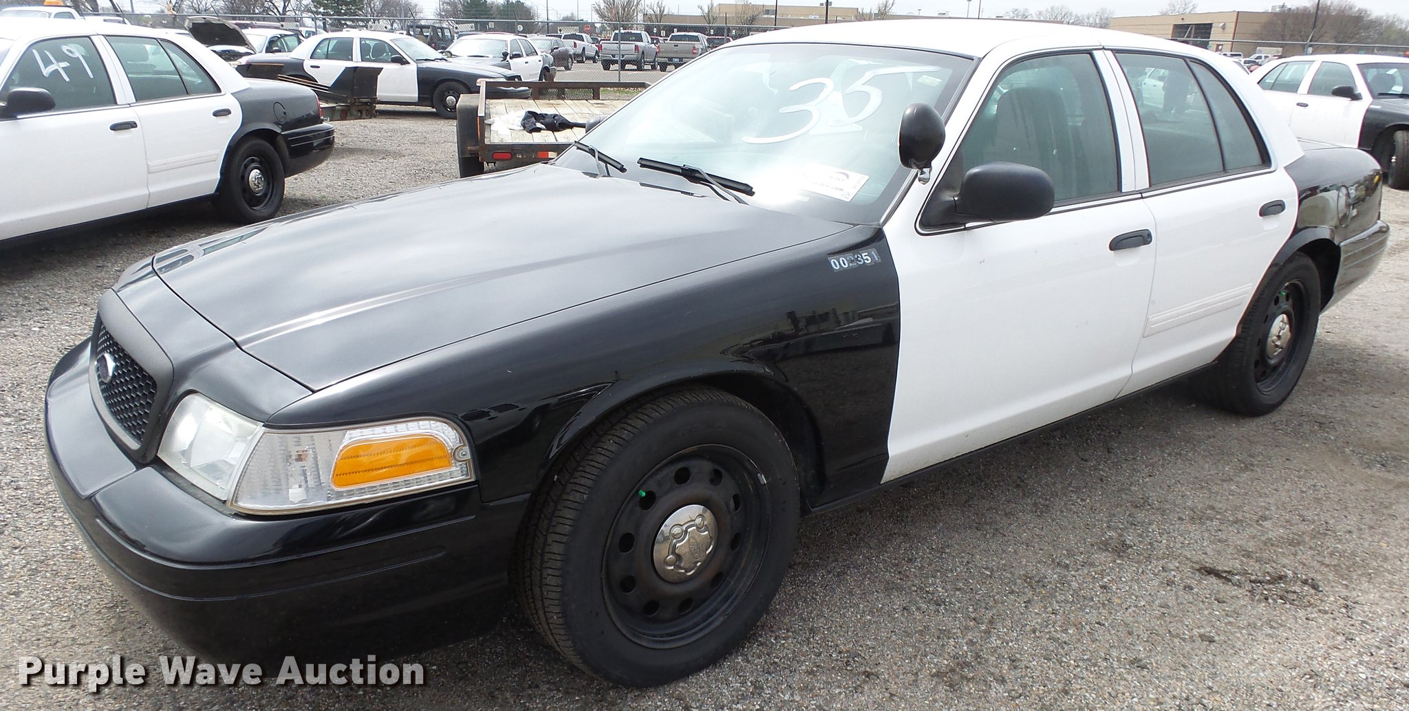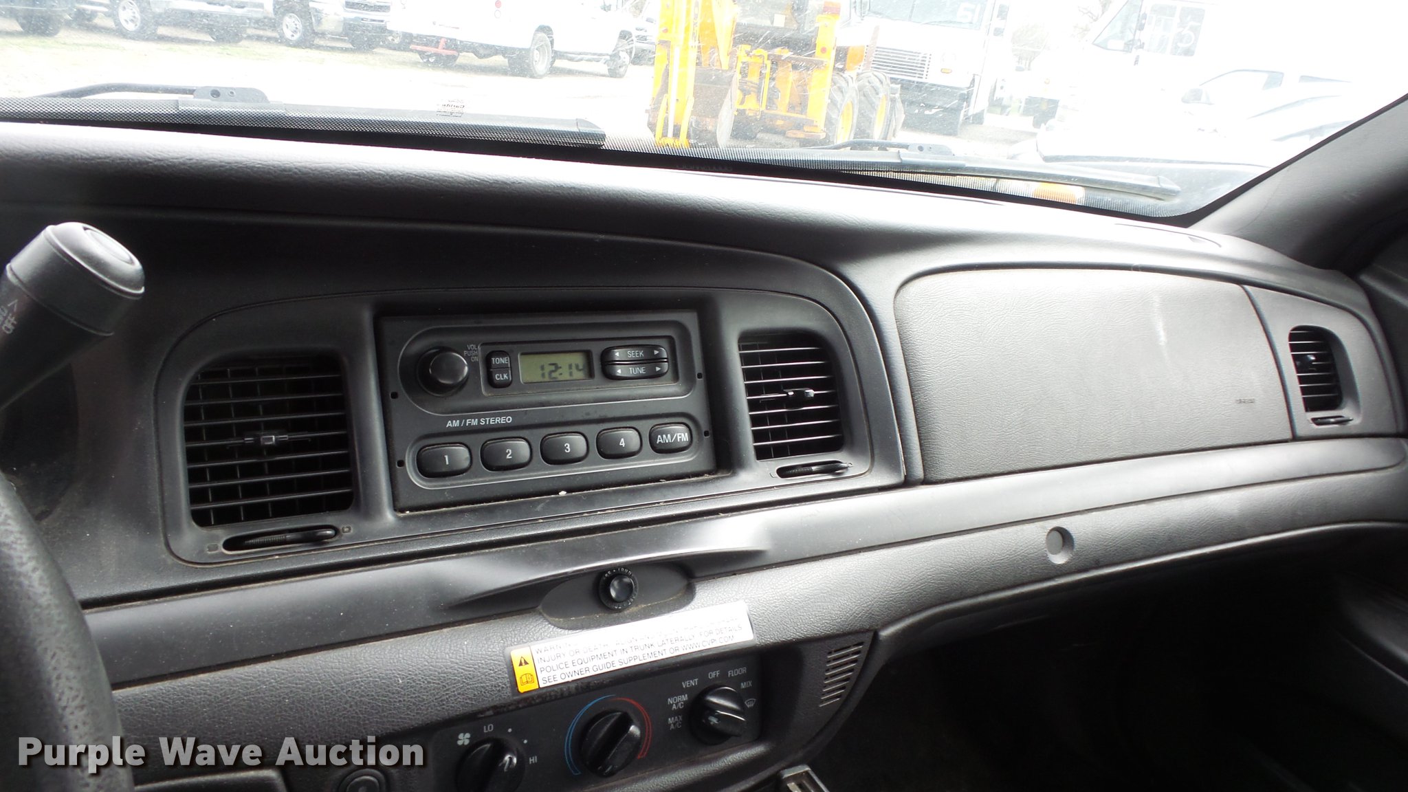 Purple Wave is selling a used Passenger Vehicle in Kansas. This item is a 2011 Ford Crown Victoria Police Interceptor with the following: 125,583 miles on odometer, 4.6L V8 SOHC 16V FFV gas engine, Automatic transmission, AC and heat, Tilt, Cruise, AM/FM, Power windows, locks, and mirrors, Cloth front interior, Vinyl rear interior, Spotlight, P235/55R17 tires, Accessory holes in roof, Unit# 002351