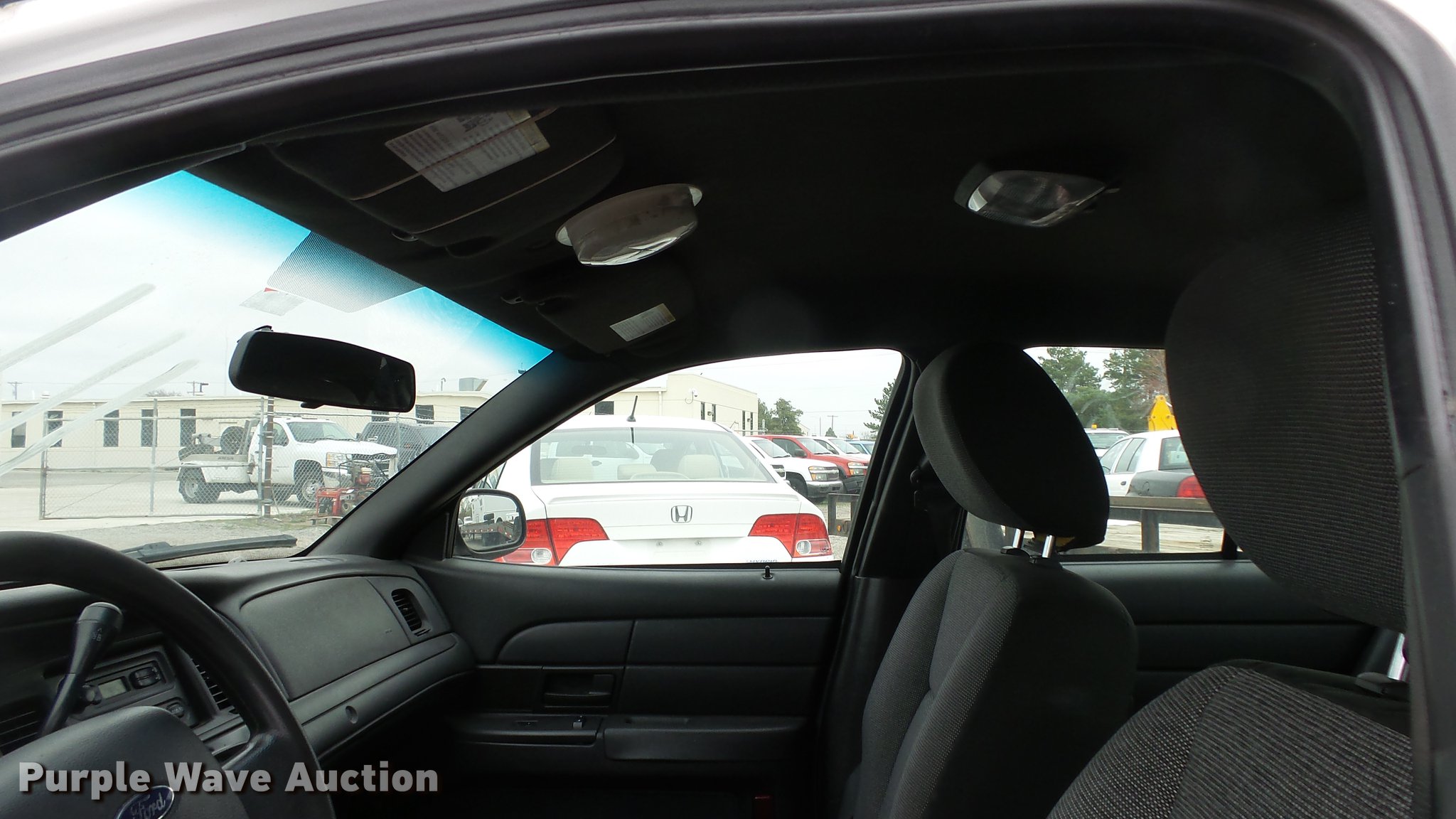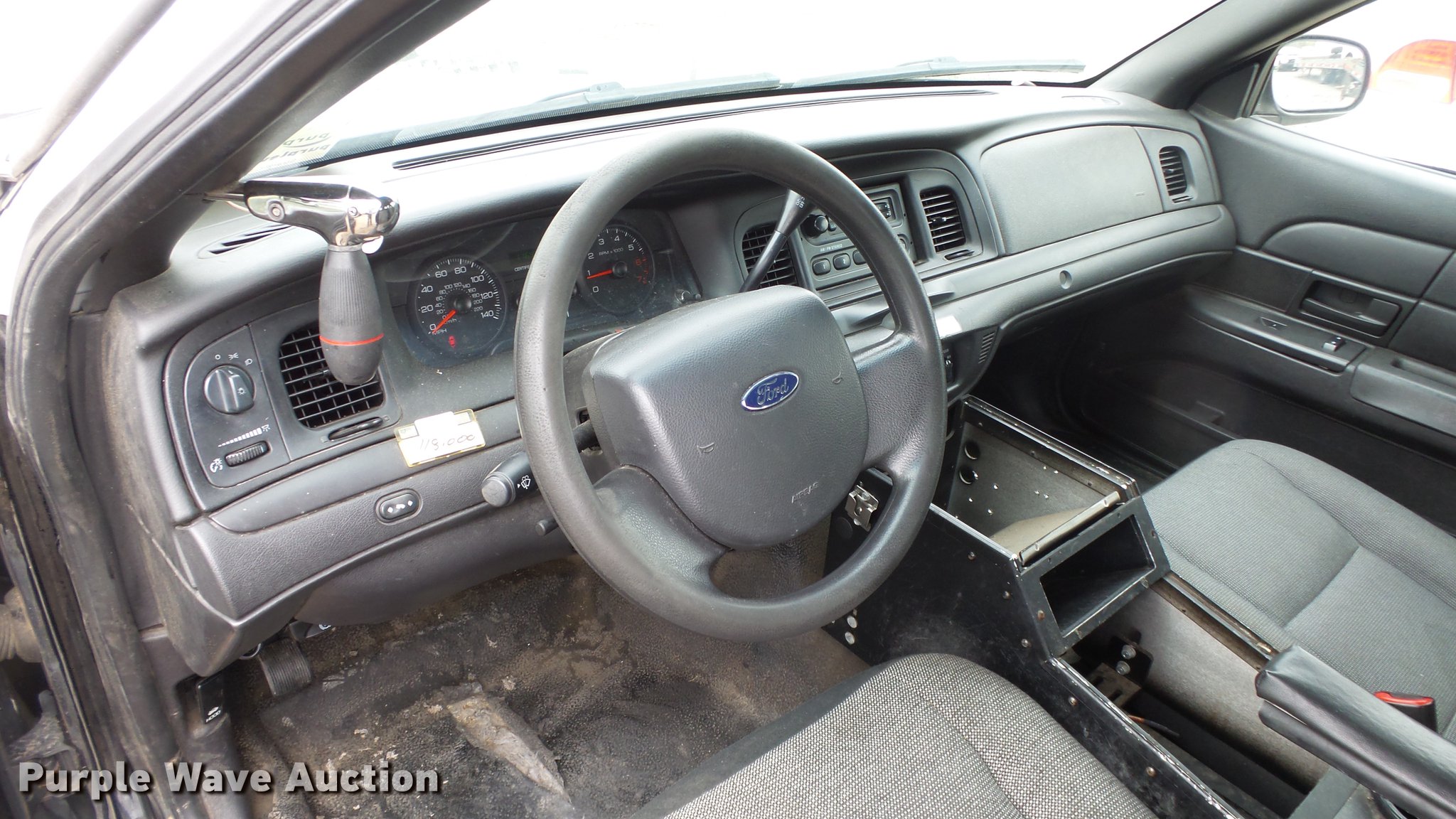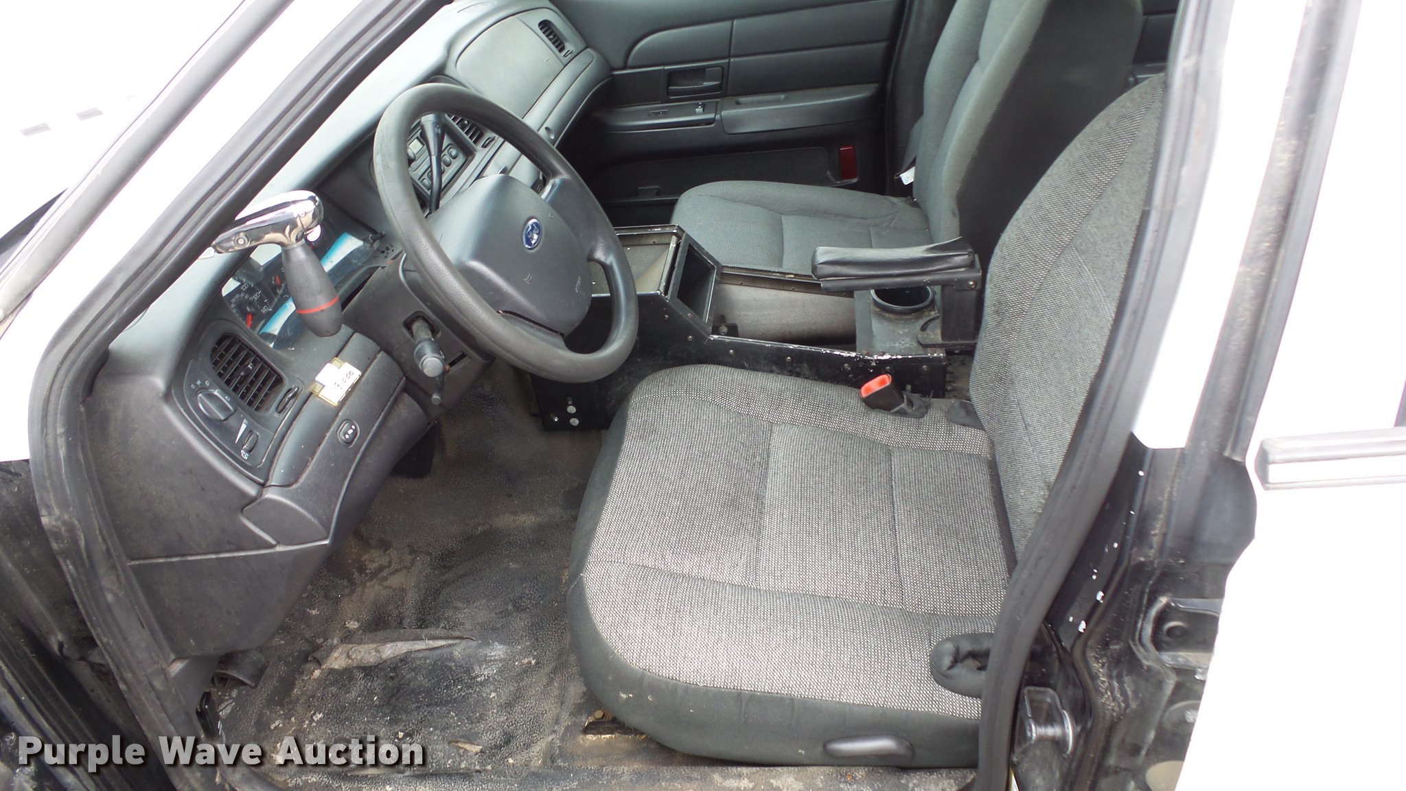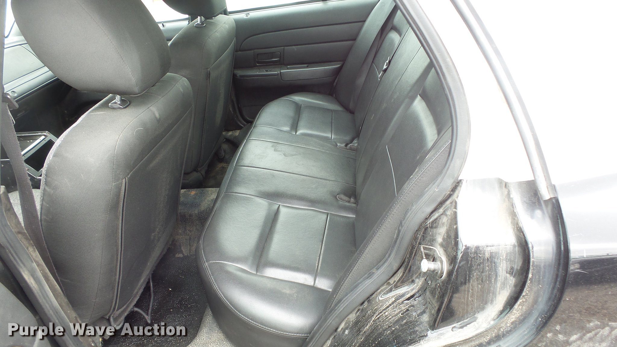 Purple Wave is selling a used Passenger Vehicle in Kansas. This item is a 2011 Ford Crown Victoria Police Interceptor with the following: 116,480 miles on odometer, 4.6L V8 SOHC 16V FFV gas engine, Automatic transmission, AC and heat, Tilt, AM/FM, Power windows, locks, and mirrors, Cloth front interior, Vinyl rear interior, Spot light, P235/55R17 tires, Non-operational heater core, Accessory holes in roof and trunk, Hail damage, Unit# 002343