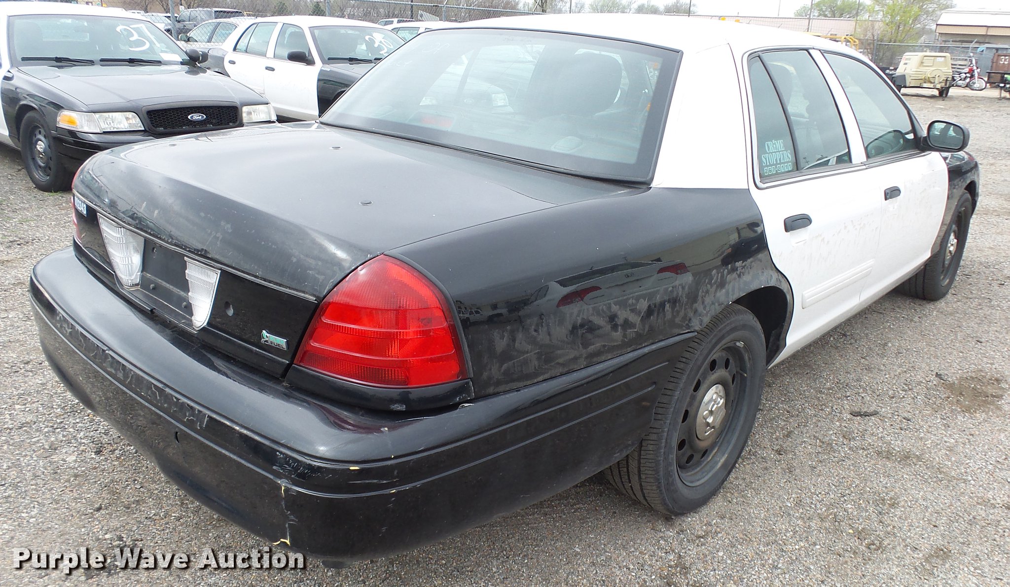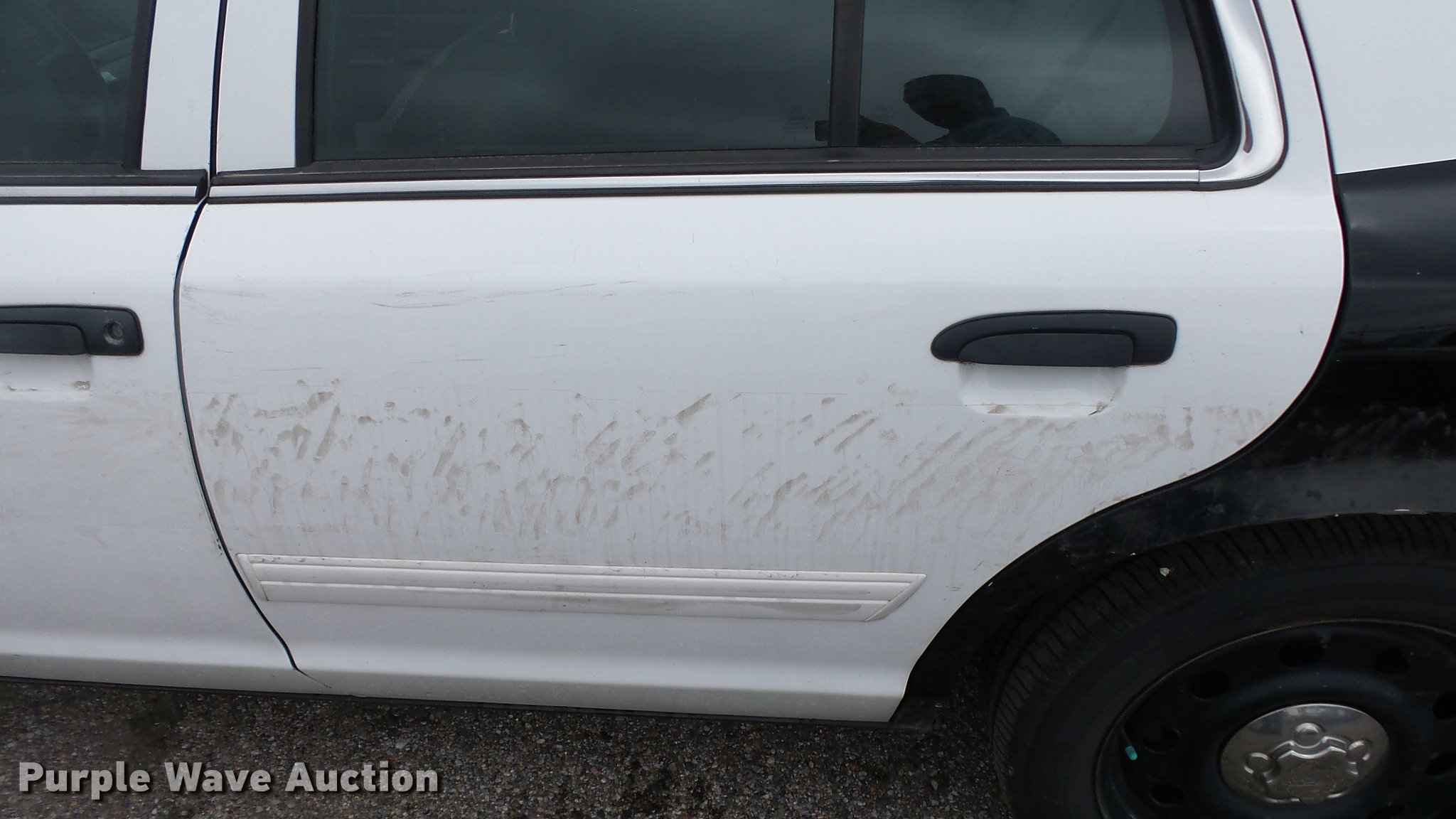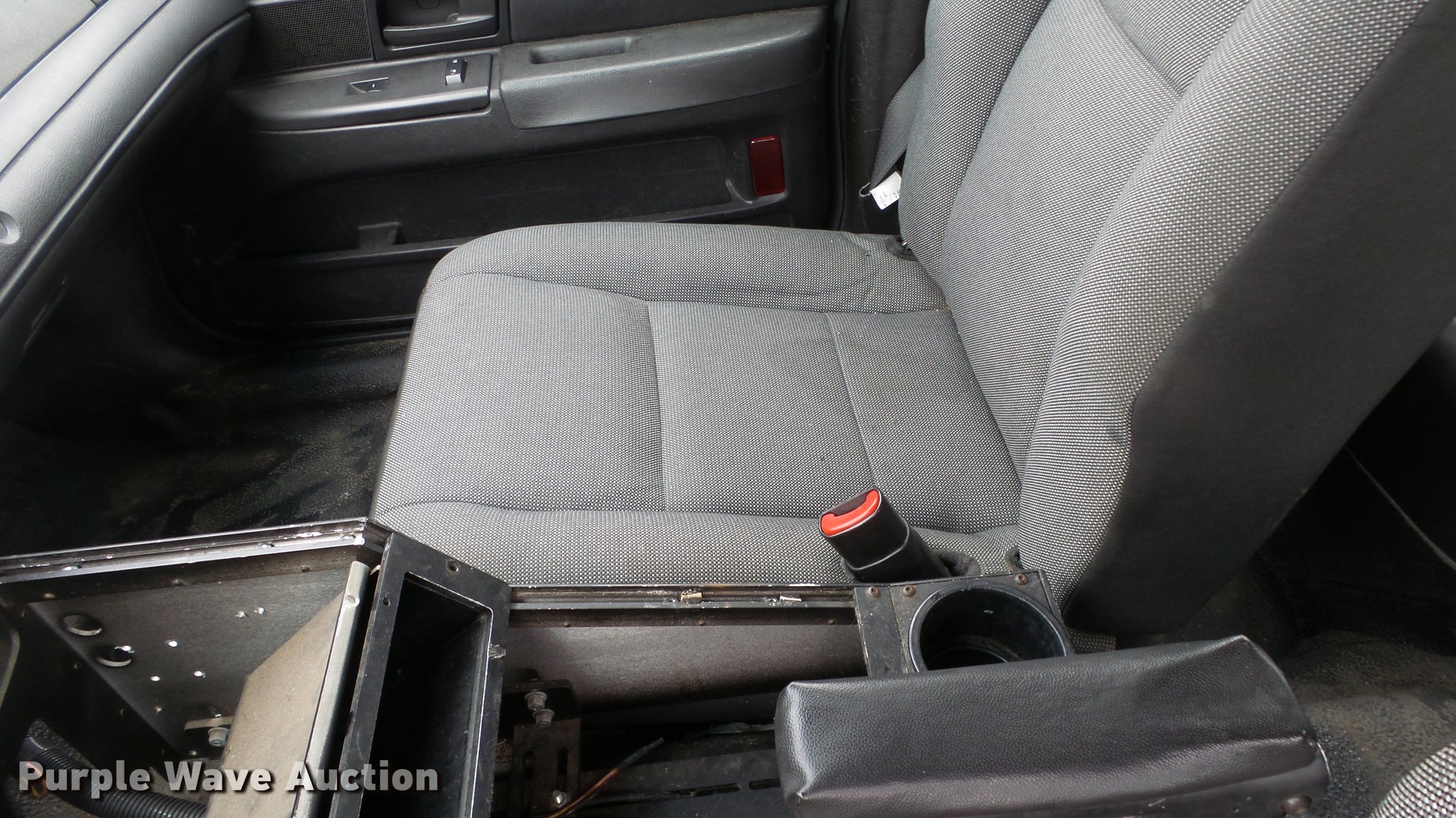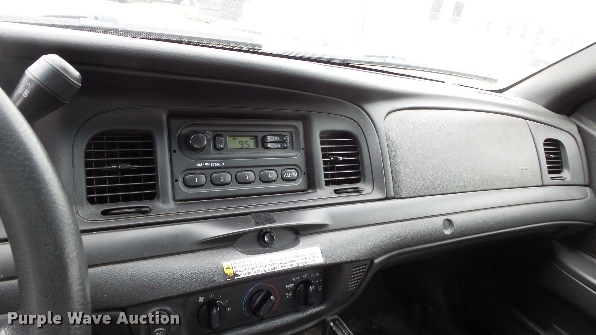 Purple Wave is selling a used Passenger Vehicle in Kansas. This item is a 2011 Ford Crown Victoria Police Interceptor with the following: 116,480 miles on odometer, 4.6L V8 SOHC 16V FFV gas engine, Automatic transmission, AC and heat, Tilt, AM/FM, Power windows, locks, and mirrors, Cloth front interior, Vinyl rear interior, Spot light, P235/55R17 tires, Non-operational heater core, Accessory holes in roof and trunk, Hail damage, Unit# 002343