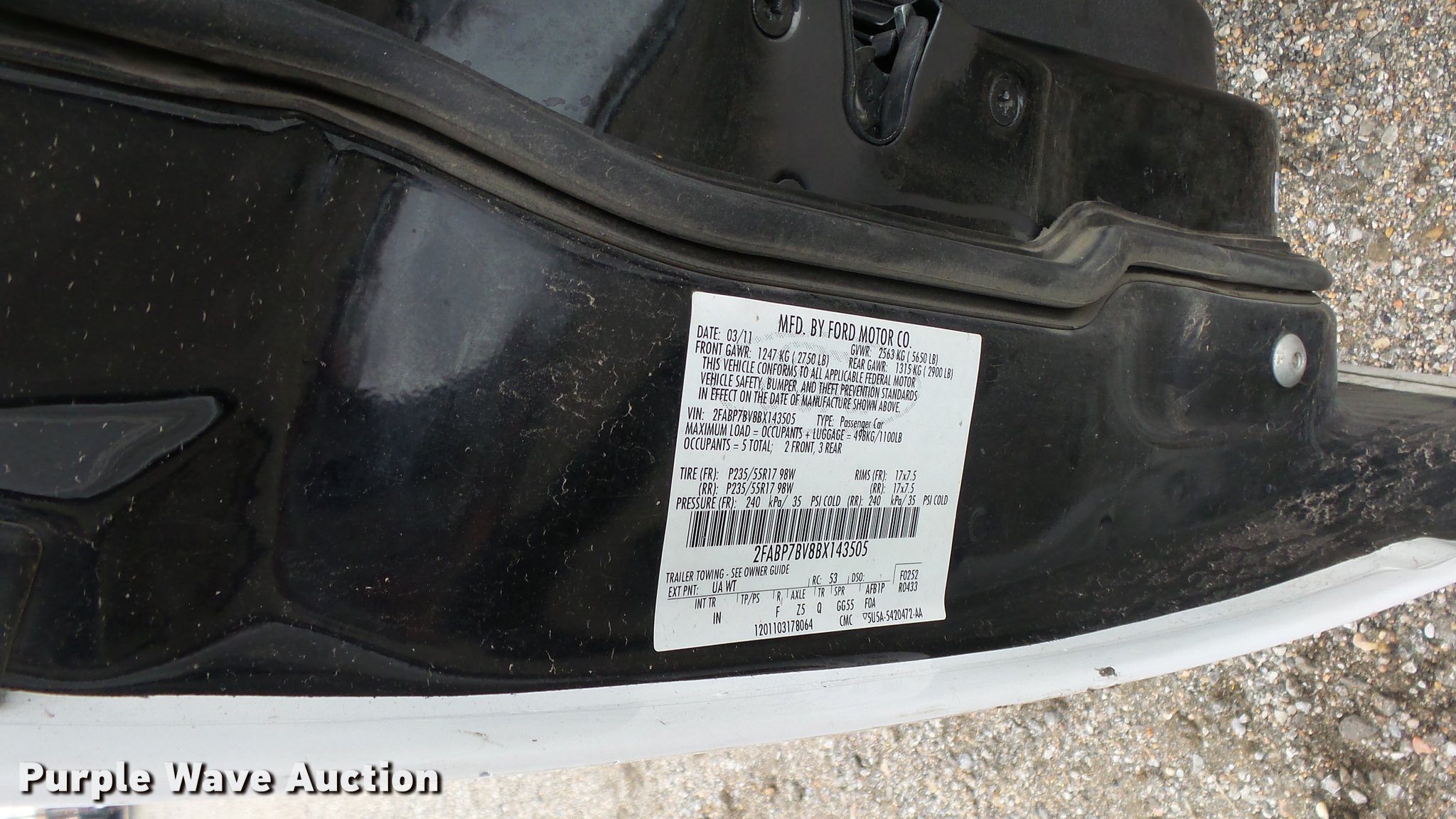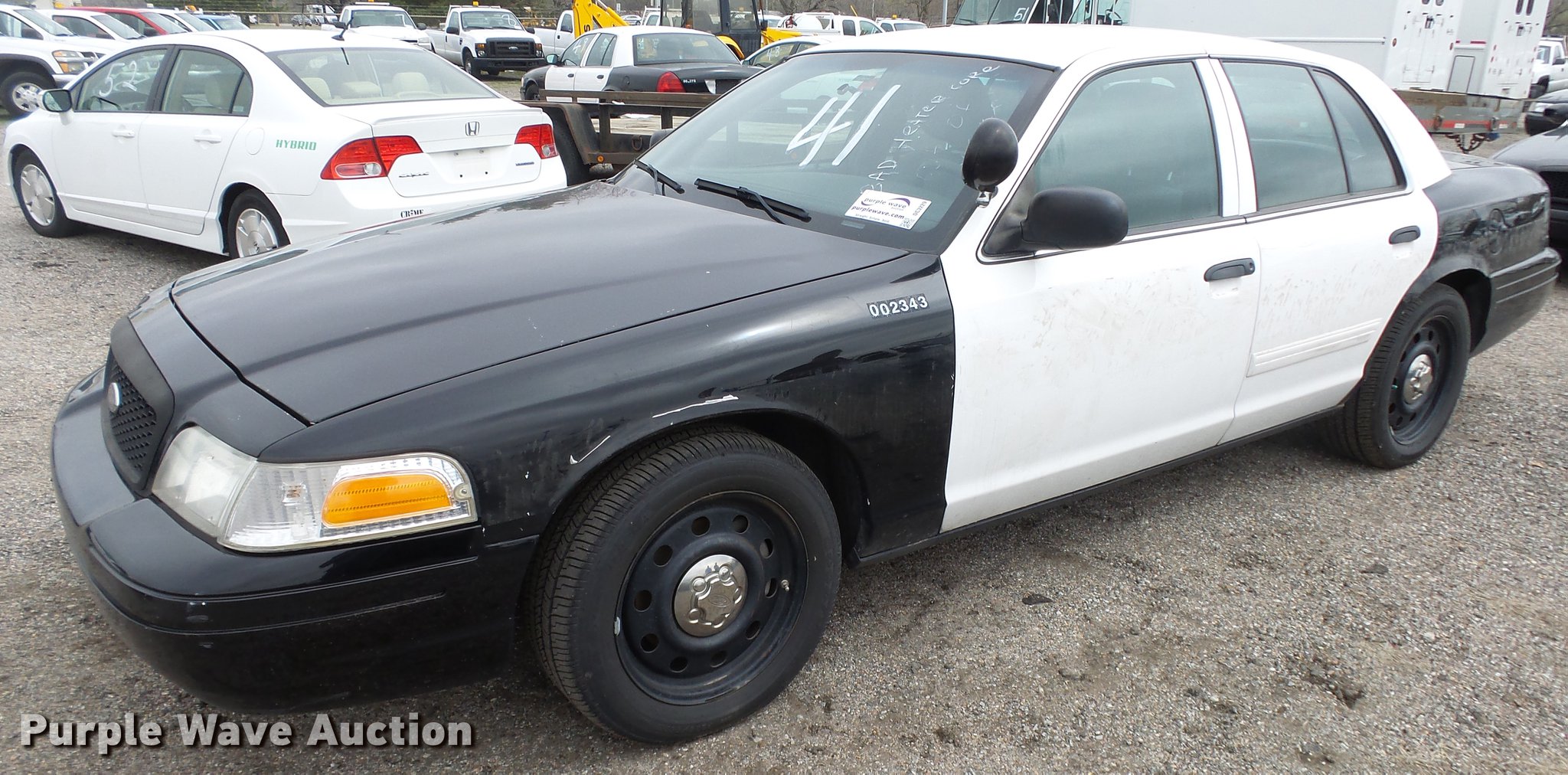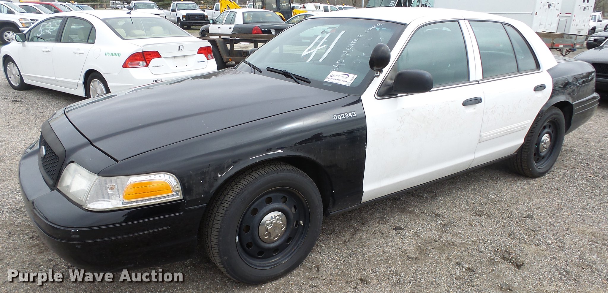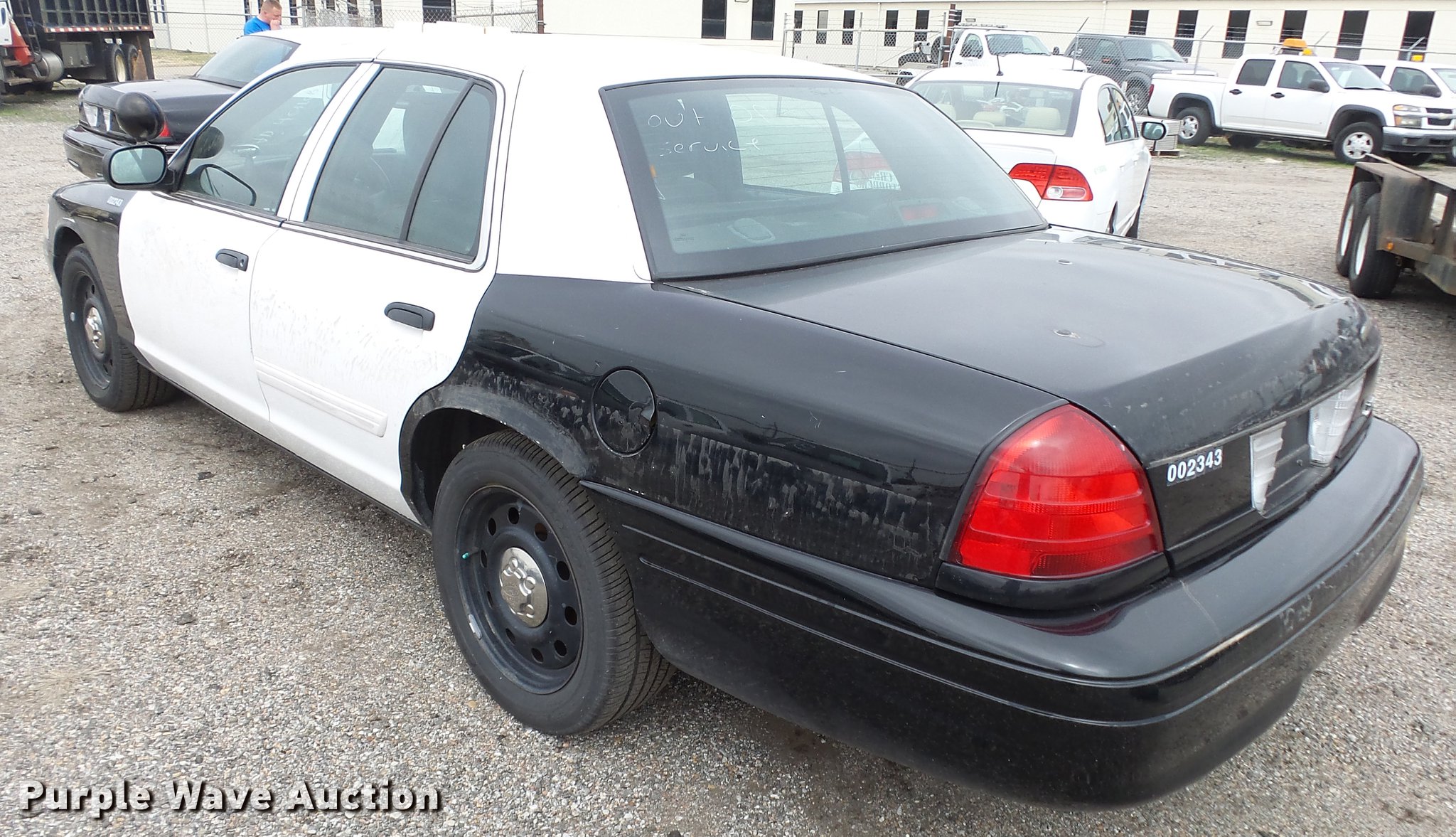 Purple Wave is selling a used Passenger Vehicle in Kansas. This item is a 2011 Ford Crown Victoria Police Interceptor with the following: 116,480 miles on odometer, 4.6L V8 SOHC 16V FFV gas engine, Automatic transmission, AC and heat, Tilt, AM/FM, Power windows, locks, and mirrors, Cloth front interior, Vinyl rear interior, Spot light, P235/55R17 tires, Non-operational heater core, Accessory holes in roof and trunk, Hail damage, Unit# 002343