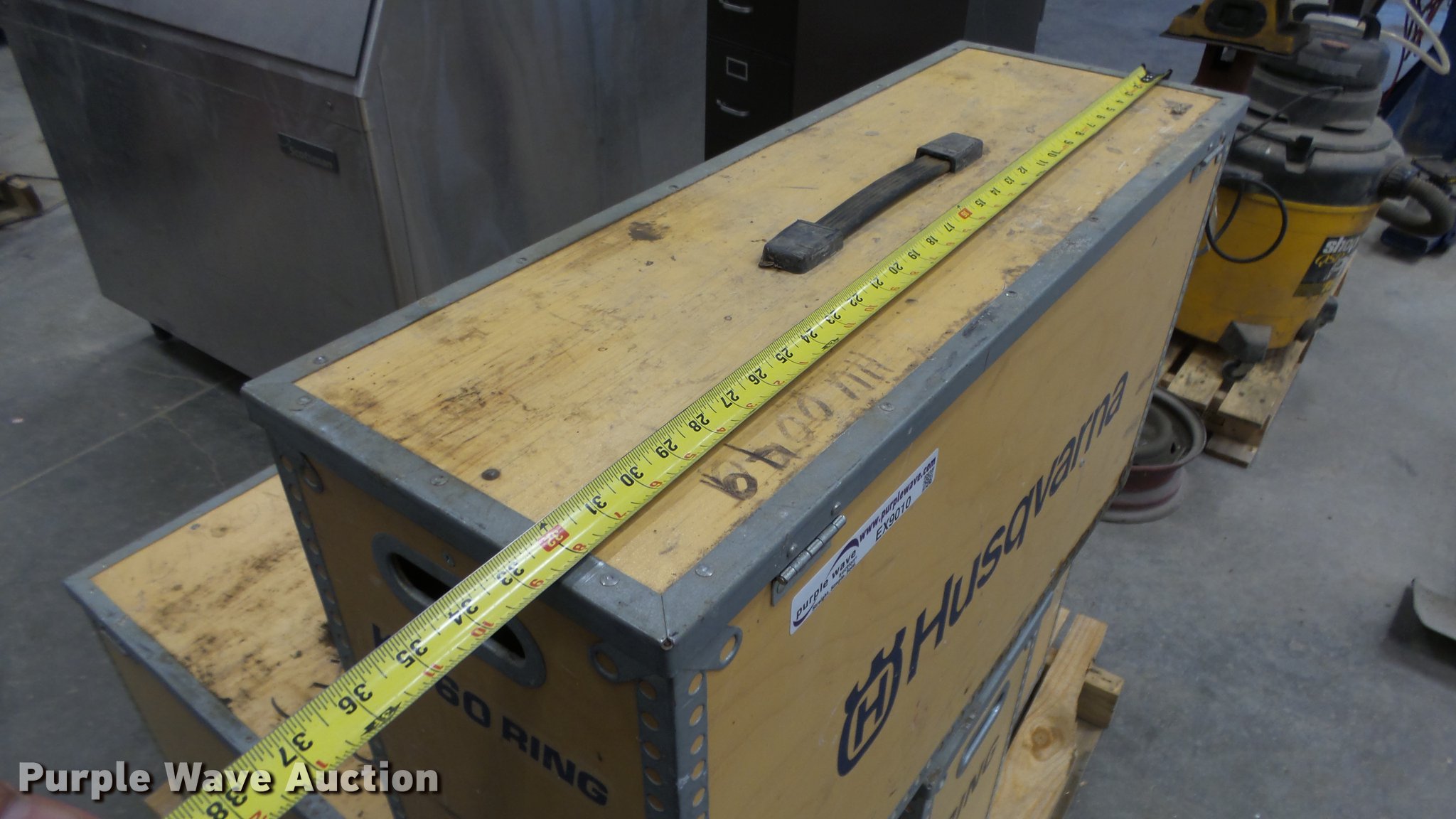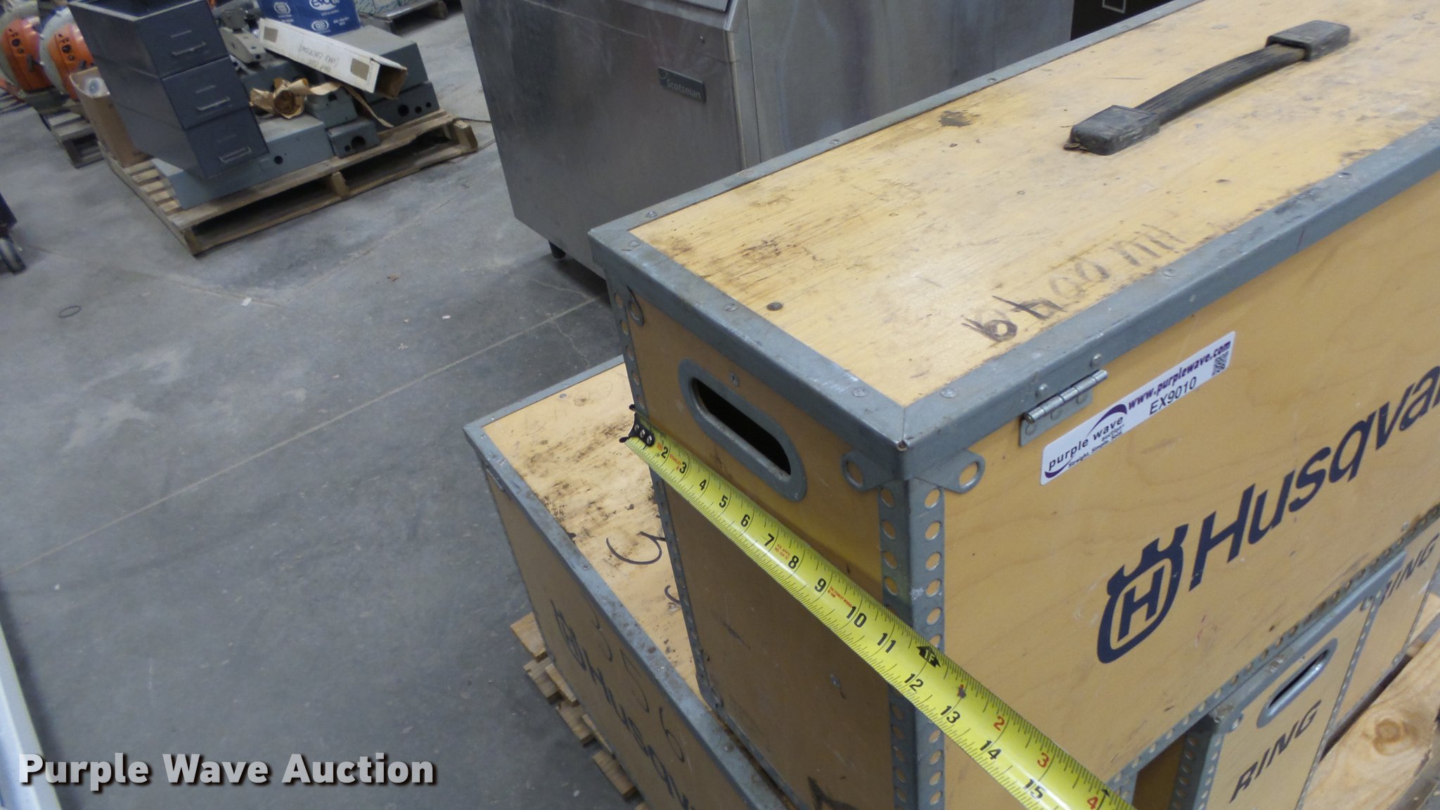 Purple Wave is selling a used Tools in Kansas. This item is a (4) wood Husqvarna boxes with the following: (4) wood Husqvarna boxes. City of Wichita Central Maintenance Facility. 1801 S. McLean. Wichita, KS 67213