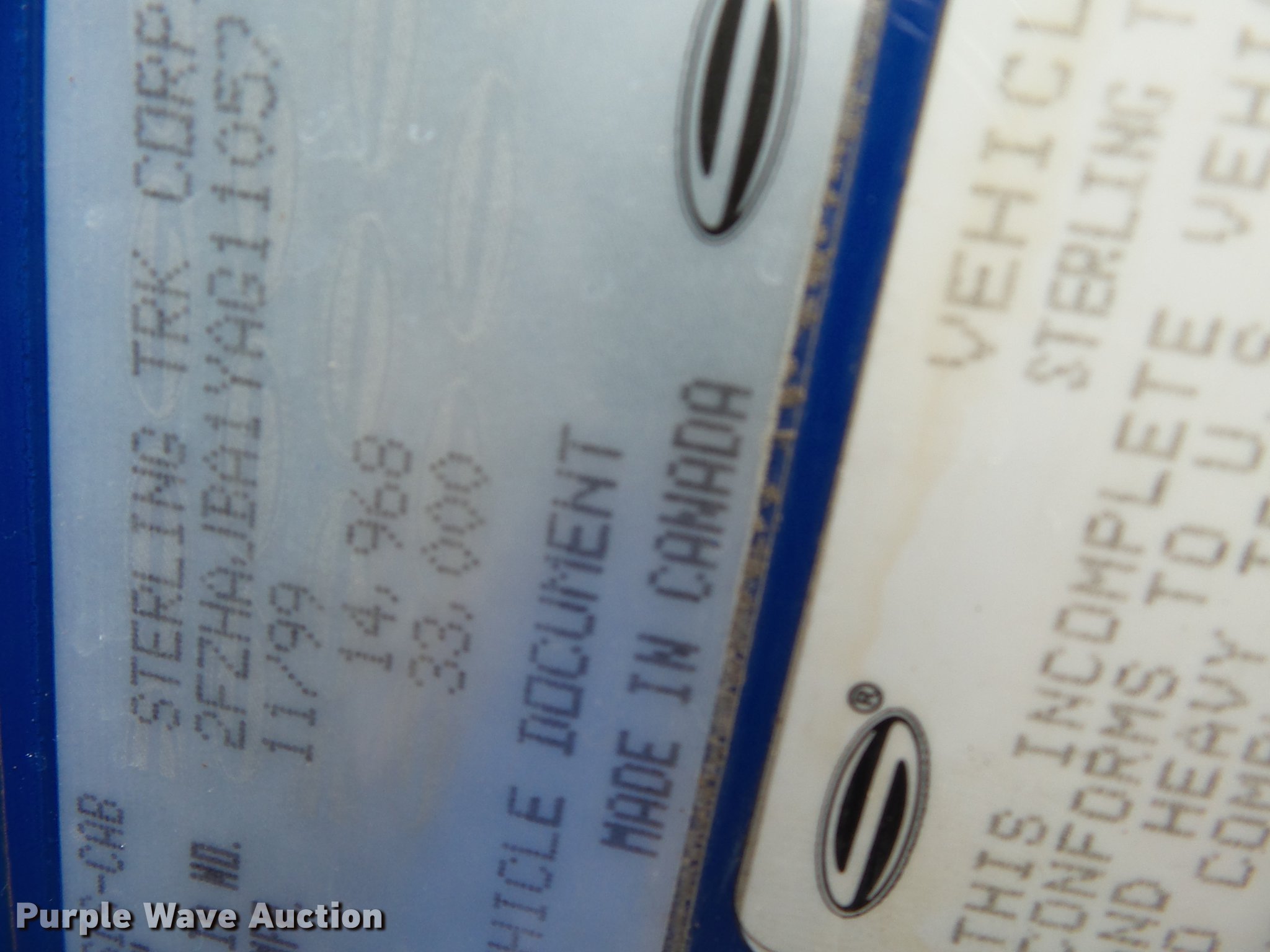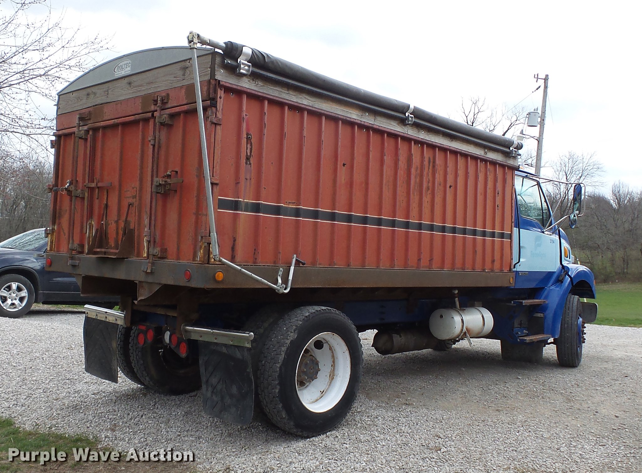 Purple Wave is selling a used Grain Truck in Illinois. This item is a 2000 Sterling L7501 grain truck with the following: 400,258 miles on odometer, 19,576 hours on meter, Caterpillar 3126 7.2L L6 turbo diesel engine, Seven speed manual transmission, Single axle, AC and heat, Tilt, Cruise, AM/FM, Air suspension seat, Block heater, PTO, Tafco steel grain bed, 16'L x 94"W, 49" side height, Roll tarp, Single ram hoist, Manual end gate, Single fuel tank, Spring suspension, Air brakes, Engine brake, 204" wheelbase, 295/75R22.5 front tires, 285/75R24.5 rear tires, GVWR 33,000 lbs, FAWR 12,000 lbs, RAWR 21,000 lbs