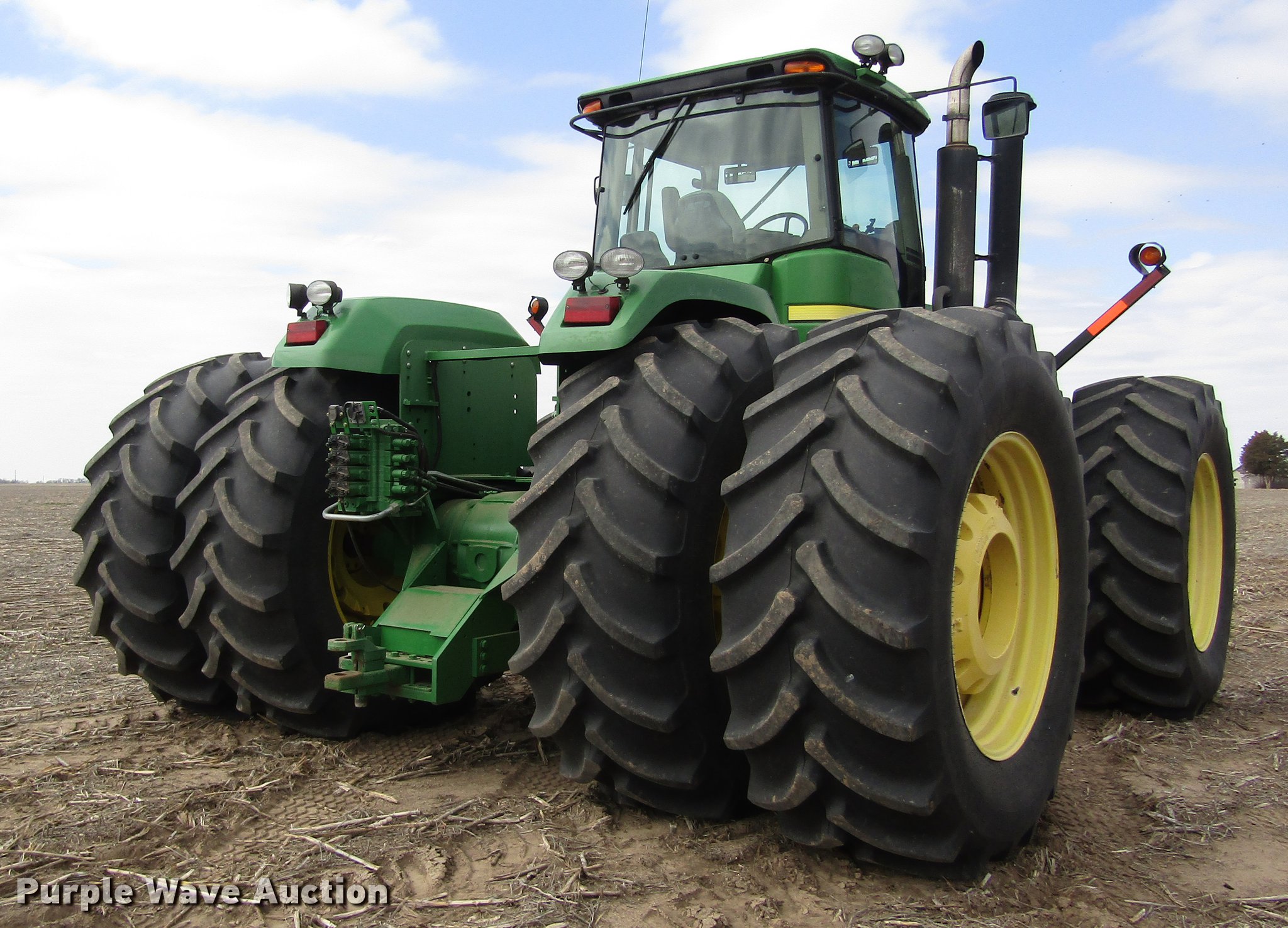 Purple Wave is selling a used Articulated 4-Wheel Drive Tractor in Kansas. This item is a 2007 John Deere 9320 4WD tractor with the following: 1,550 hours on meter, John Deere 6125HRW16AB 12.5L six cylinder turbo diesel engine, 375 HP, Partial powershift transmission, 24F-6R gears, AC and heat, Tilt steering wheel, AM/FM, Air suspension seat, Instructor's seat, Visor, GreenStar and monitor, Ether start, Seven pin outlet, ISO electrical outlet, (4) rear hydraulic remote sets, Rear weights, 270 gallon fuel tank, 137.8" wheelbase, Firestone 710/70R42 dual tires, Serial RW9320H051001