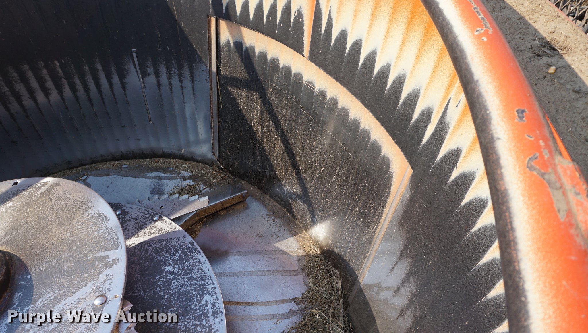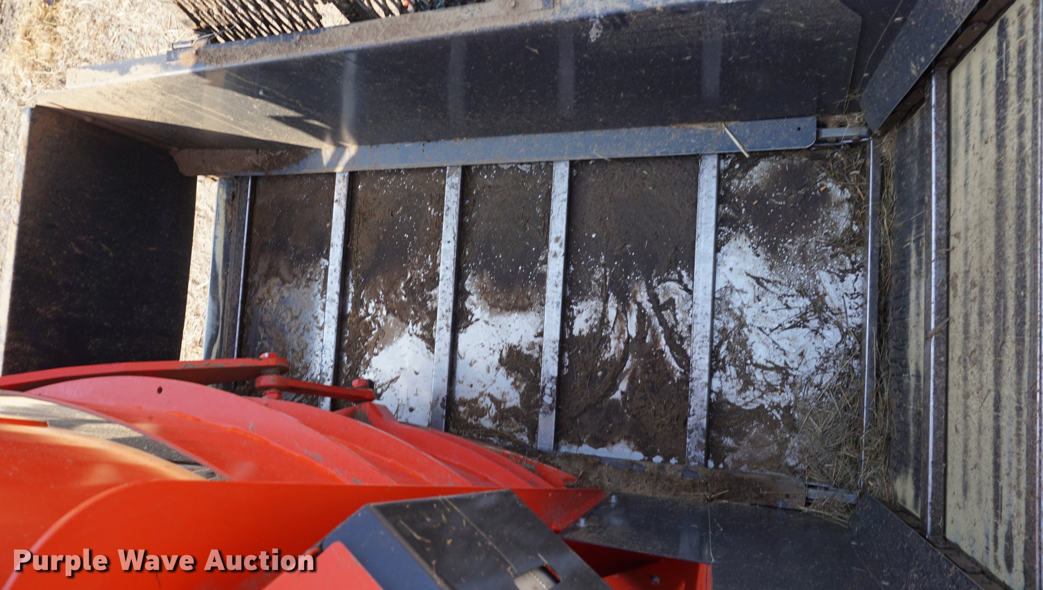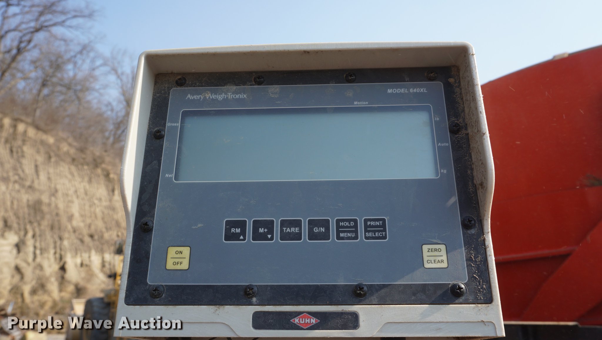 Purple Wave is selling a used Feed Mixer or Bale Processor in Kansas. This item is a 2012 Kuhn Knight VT180 vertical feed mixer with the following: 35"W right side chain conveyor discharge, Hydraulic chute, Hydraulic door, (2) augers, Two speed drive, Avery Weigh Tronix 640XL scales, 1000 PTO, 385/65R22.5 tires, Manual and parts book, Serial C0063