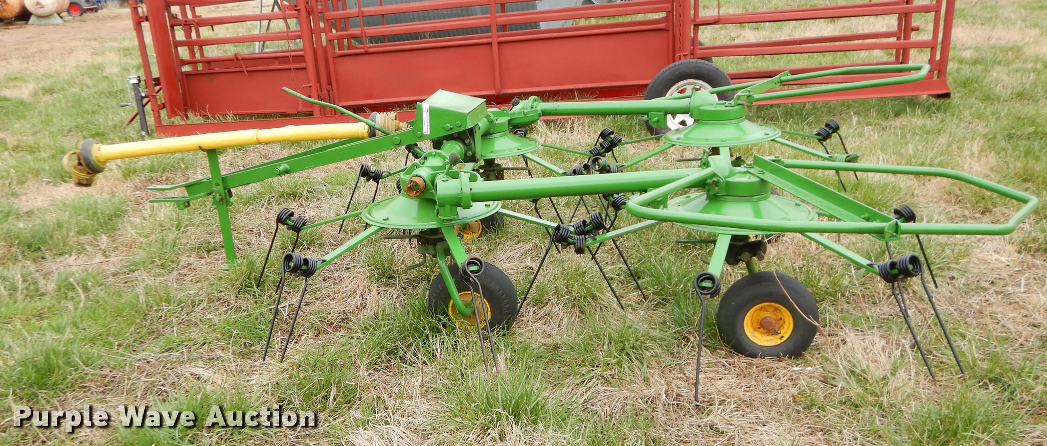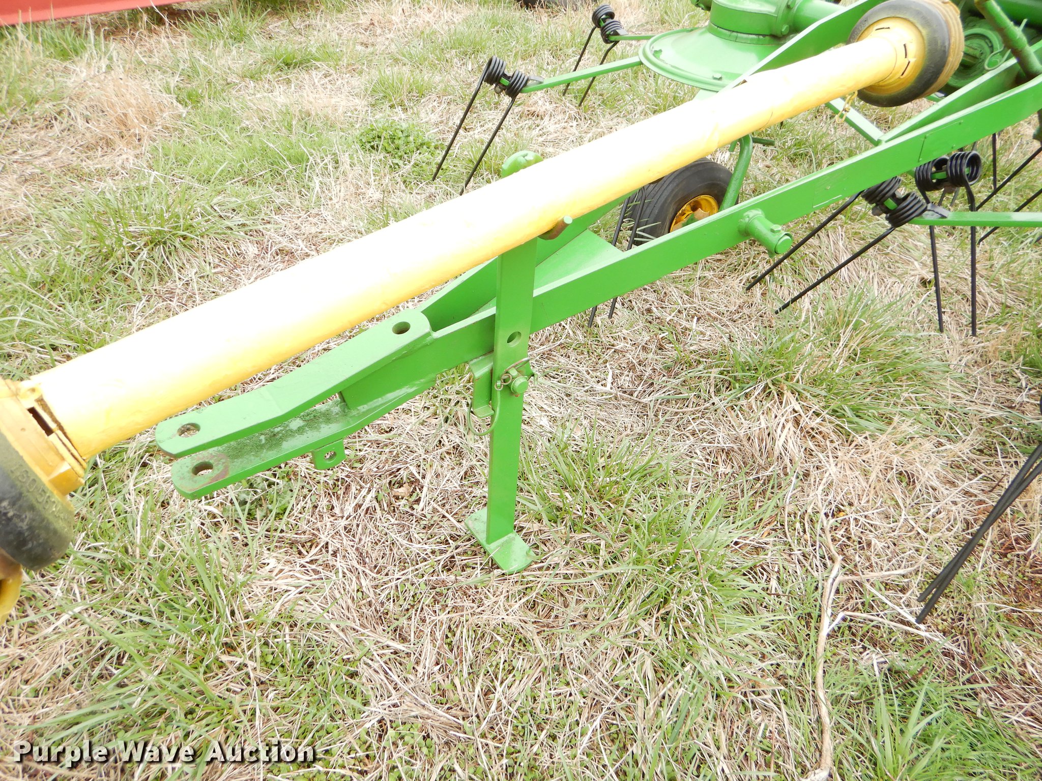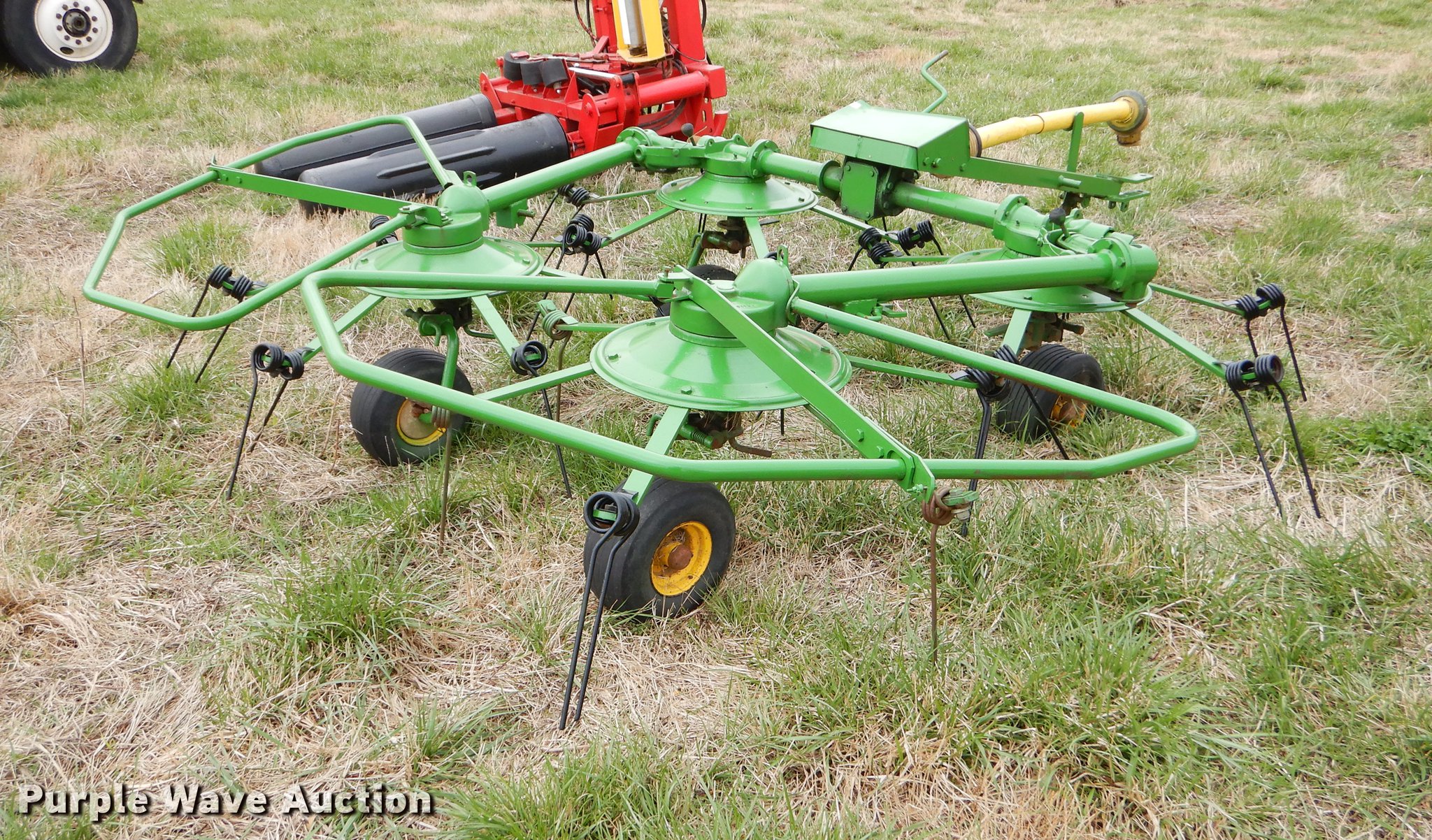 Purple Wave is selling a used Hay Handling in Kansas. This item is a John Deere tedder with the following: 17'W head, Steel/steel conditioners, 540 PTO, Pin hitch, 15x6.00-6 tires