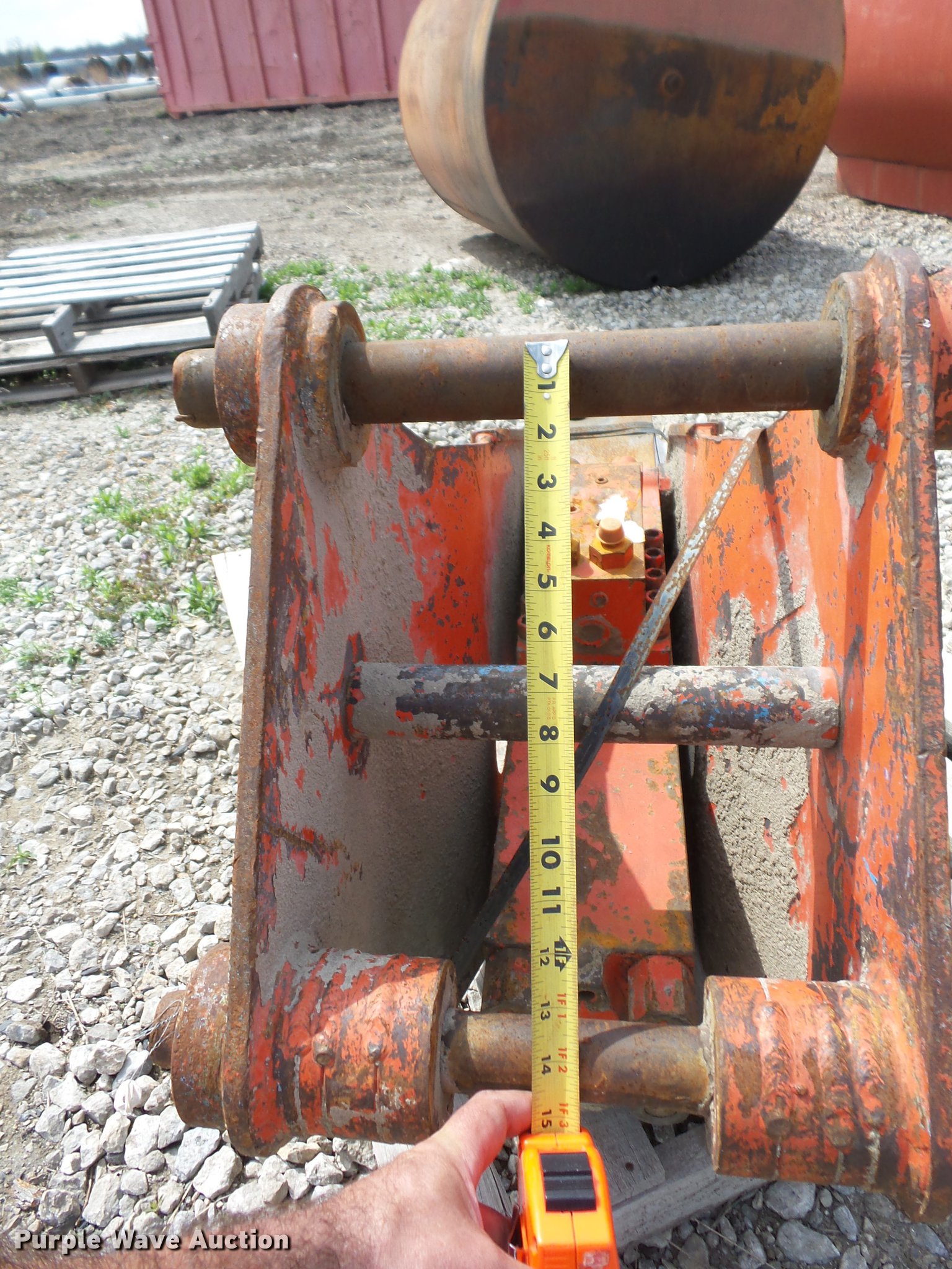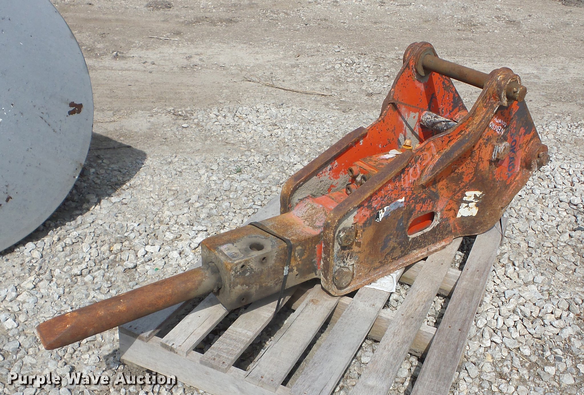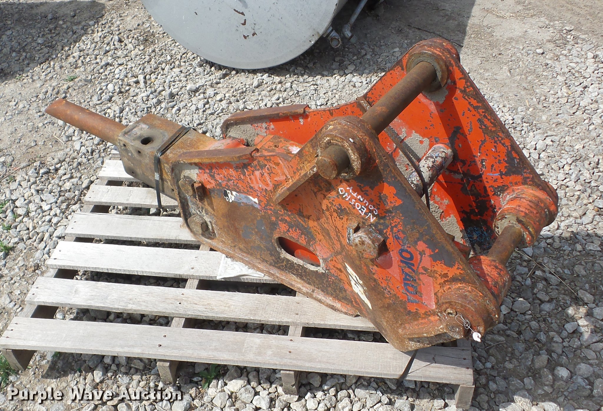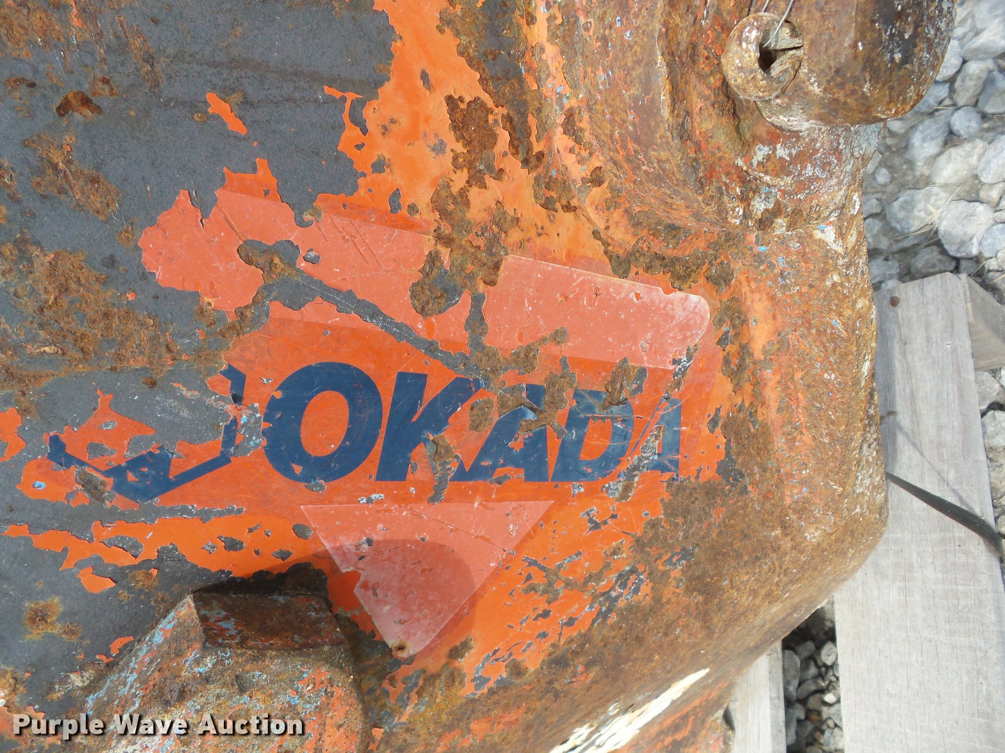 Purple Wave is selling a used Breaker or Hammer in Kansas. This item is a Okada hammer with the following: 2 3/4" bit, Fits Case 580 backhoe, Non-operational unit