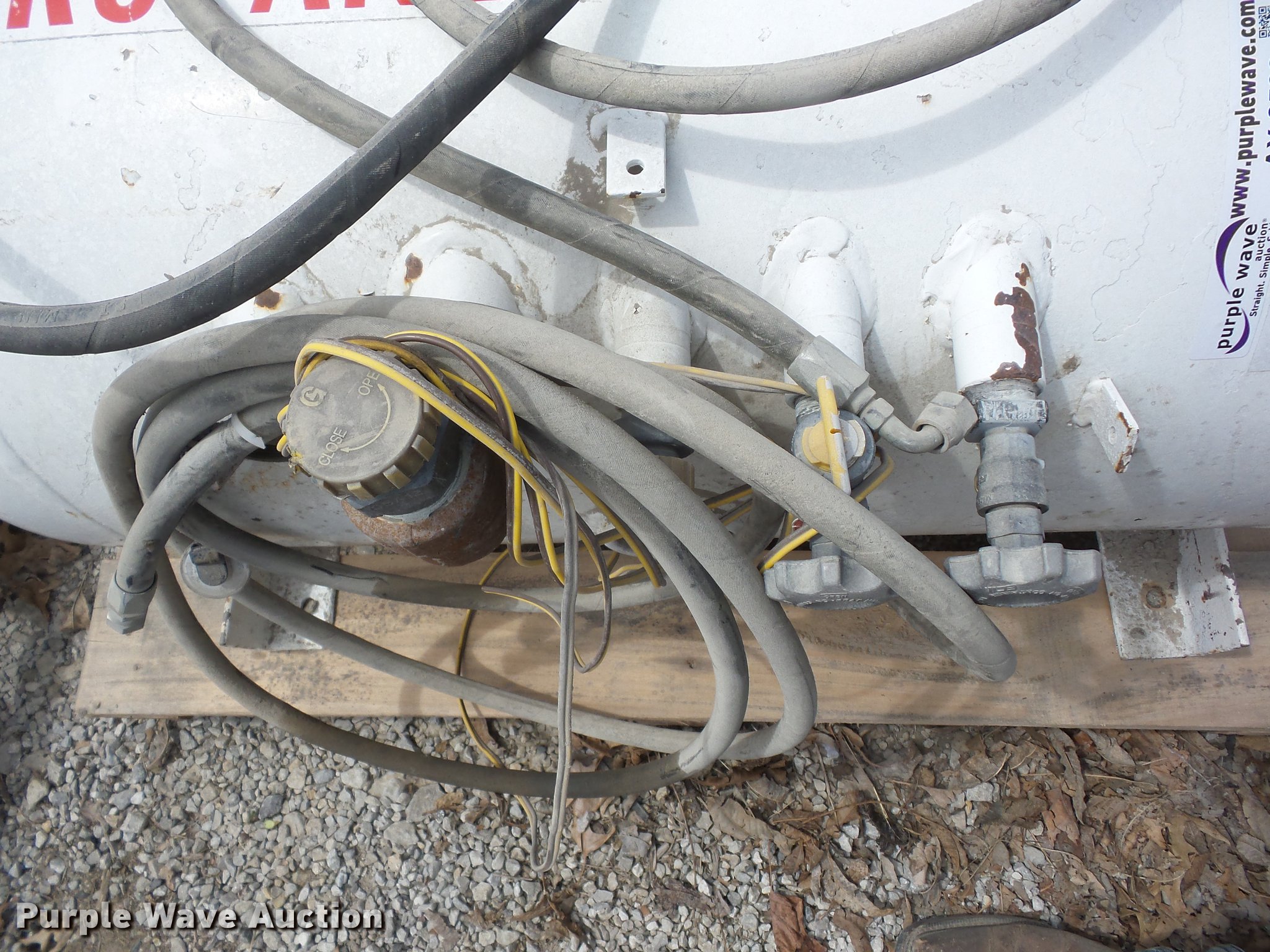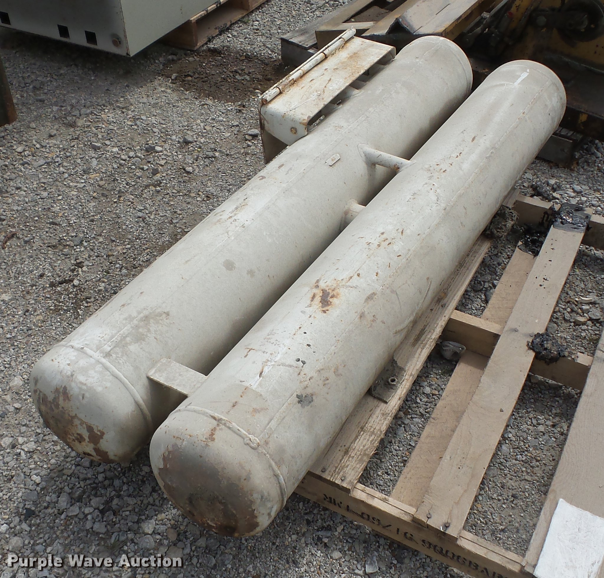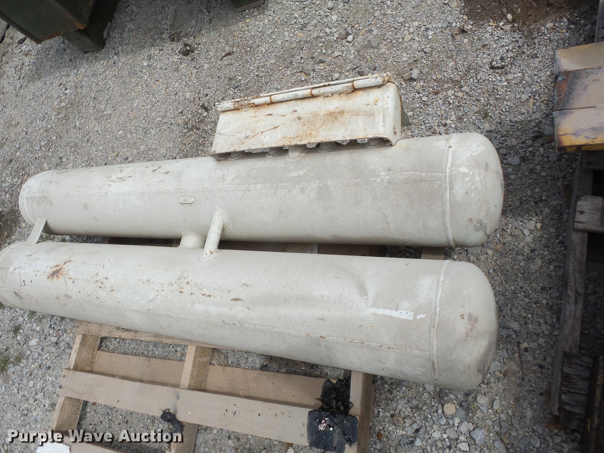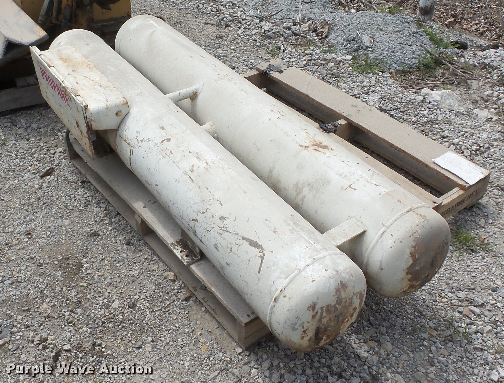 Purple Wave is selling a used Fuel and Lube in Kansas. This item is a (2) propane tanks with the following: 40 gallon capacity, Assorted hoses, 43 gallon capacity