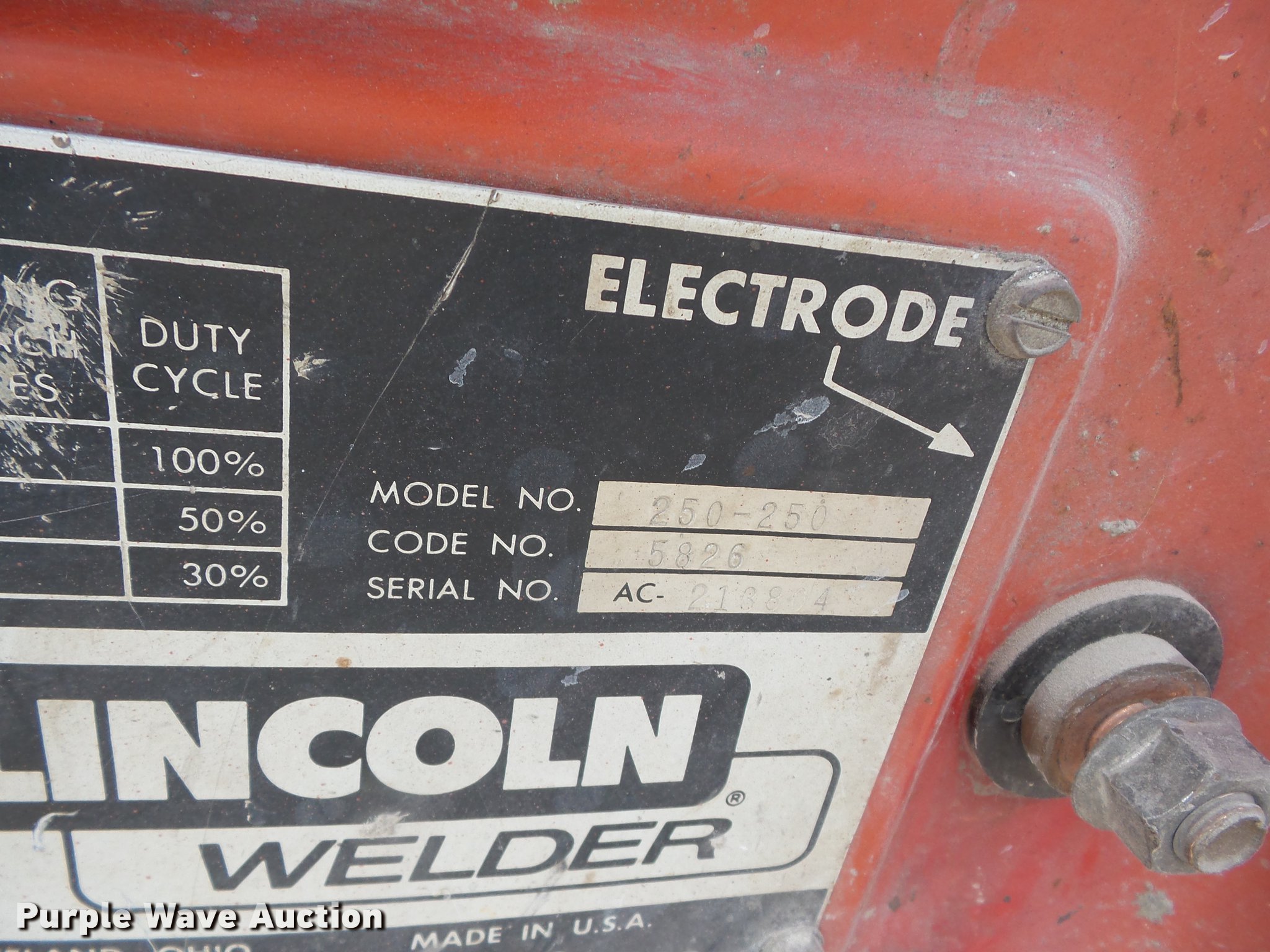 Purple Wave is selling a used Welder (Manual) in Kansas. This item is a Lincoln Idealarc 250 welder with the following: Non-operational unit, Serial 213304
