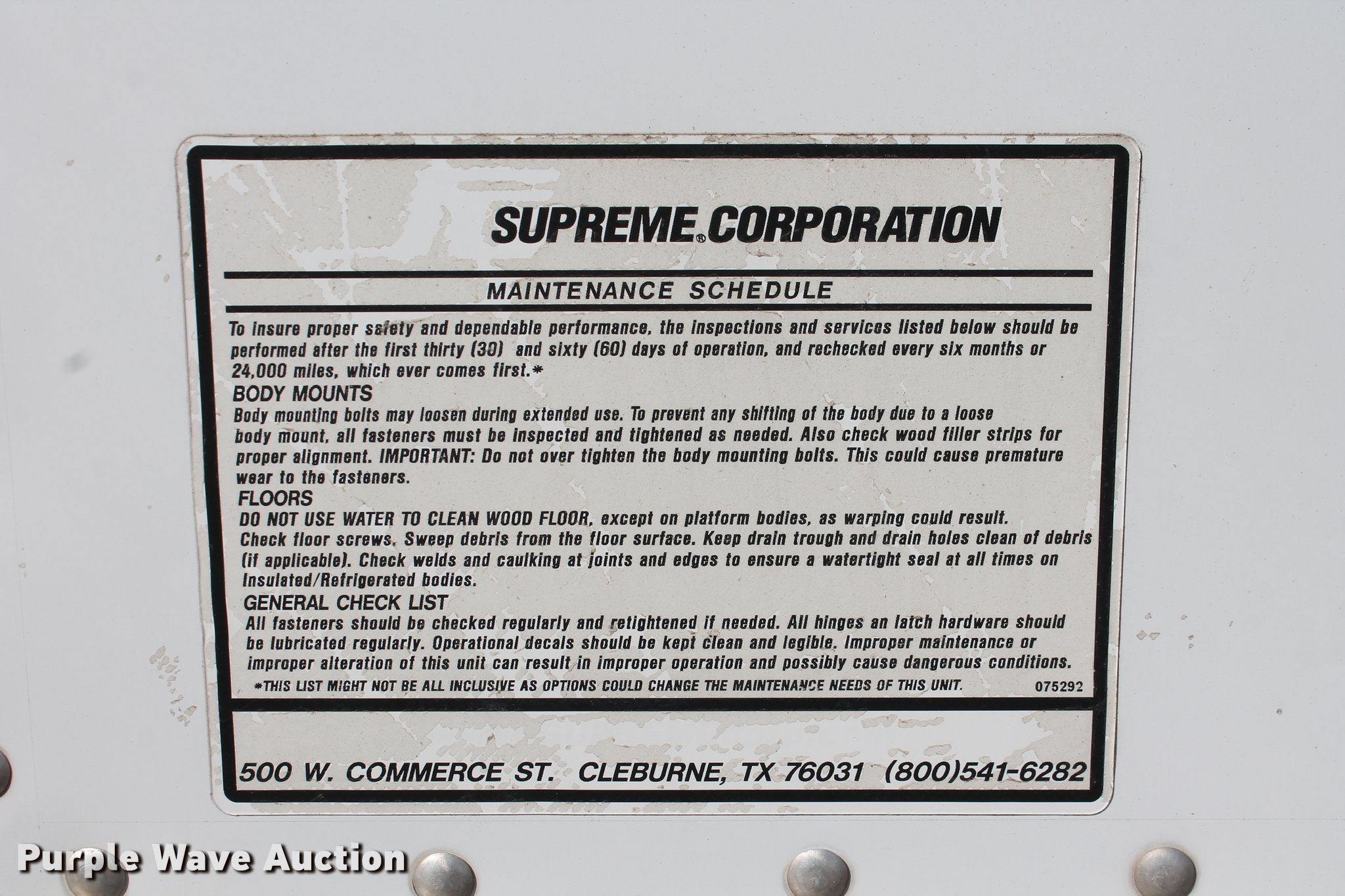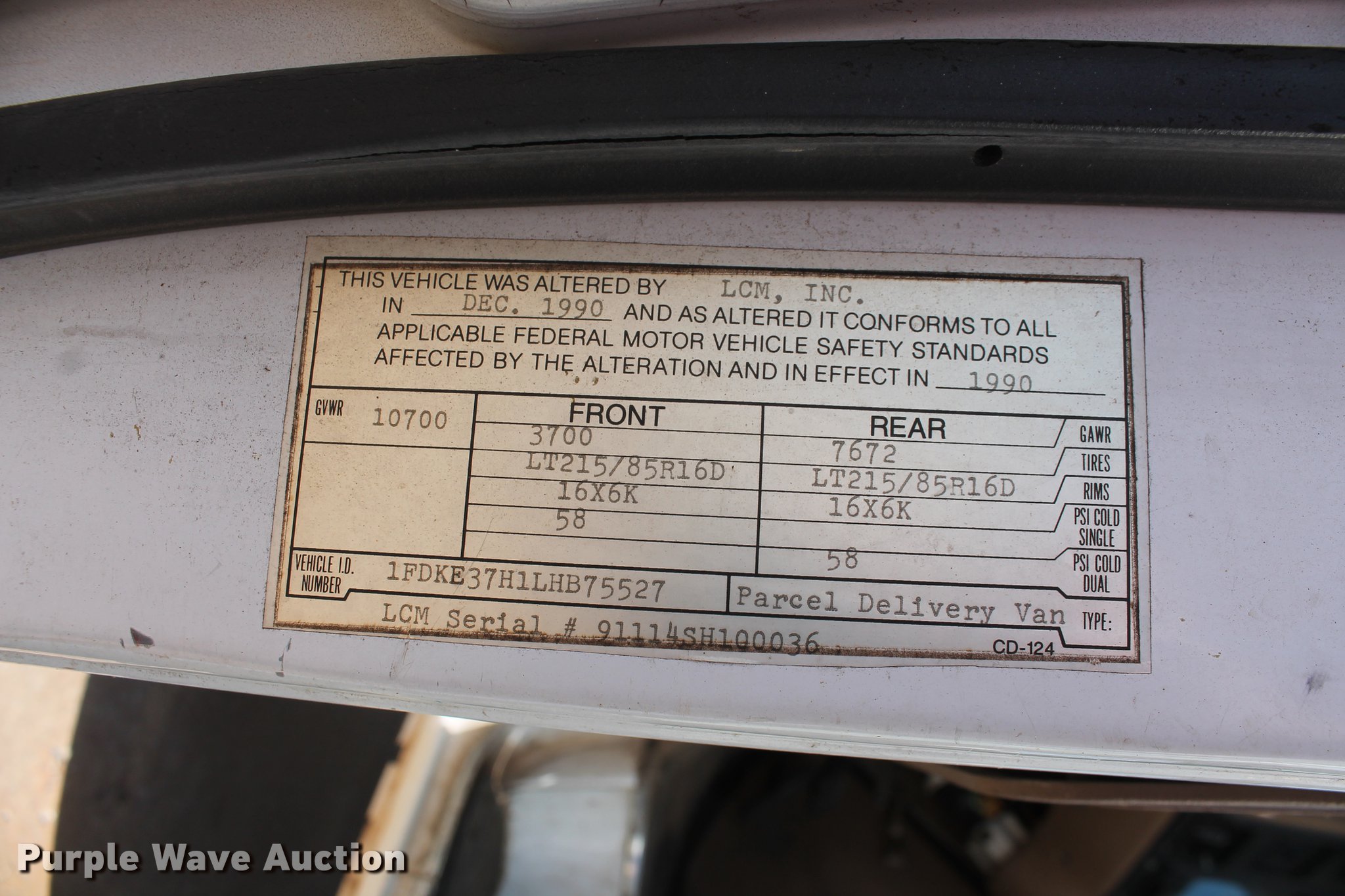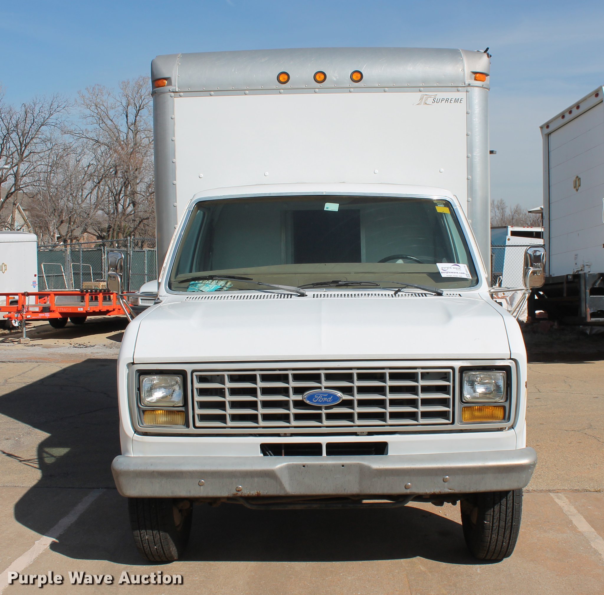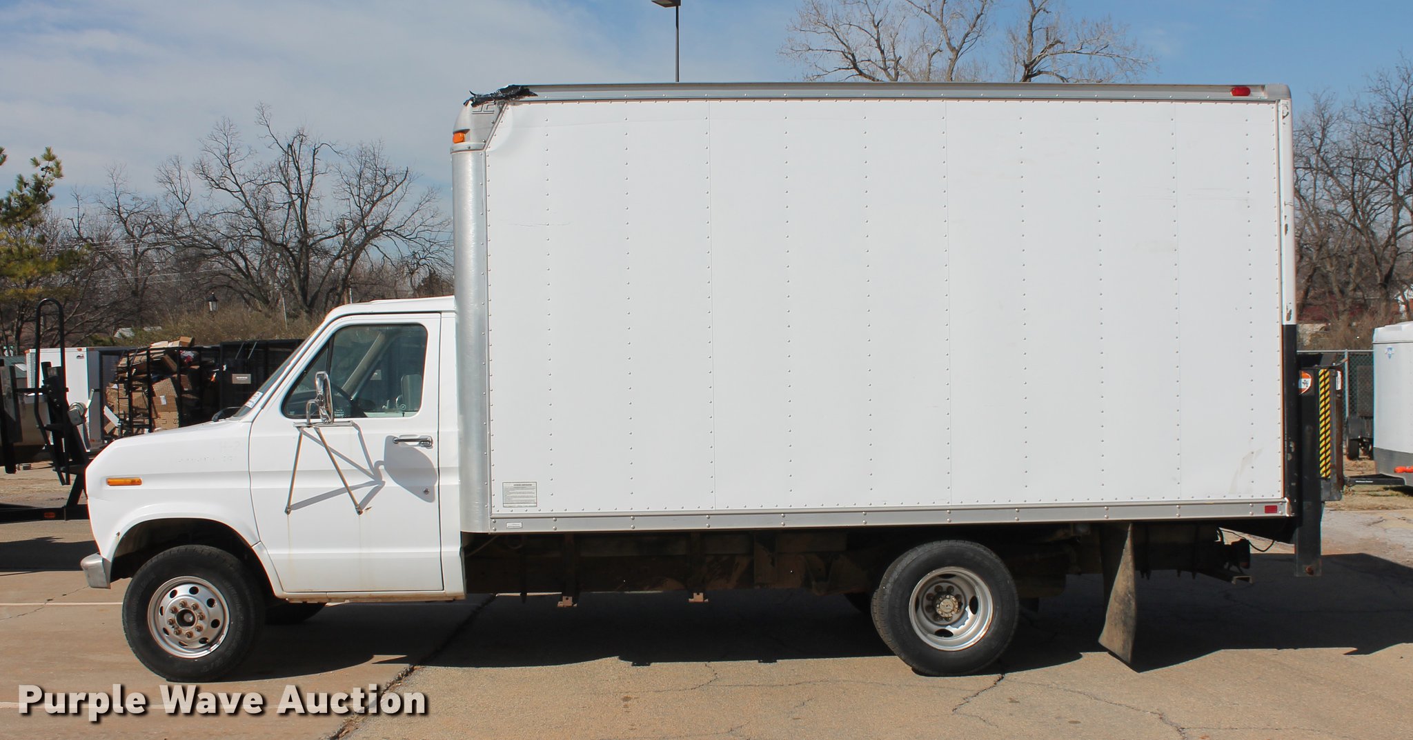 Purple Wave is selling a used Box Truck in Oklahoma. This item is a 1990 Ford Econoline E350 box truck with the following: 38,135 miles on odometer, 5.8L V8 OHV 16V gasoline engine, Automatic transmission, Single axle, AC and heat, Supreme box truck, 14'L x 96"W, 80" door height clearance, Wood floor, Rear roll up door, Cab access door, Eagle Lift 50X91 end gate lift, 1,600 lbs capacity, Serial 04815, Serial 70210376, 158" wheelbase, LT225/75R16 tires, GVWR 10,700 lbs, Possible engine issues