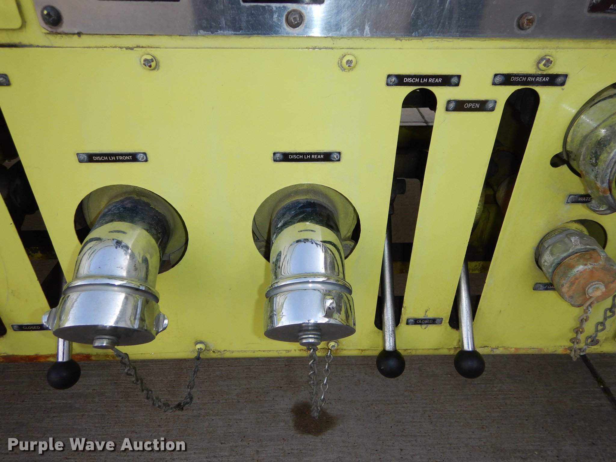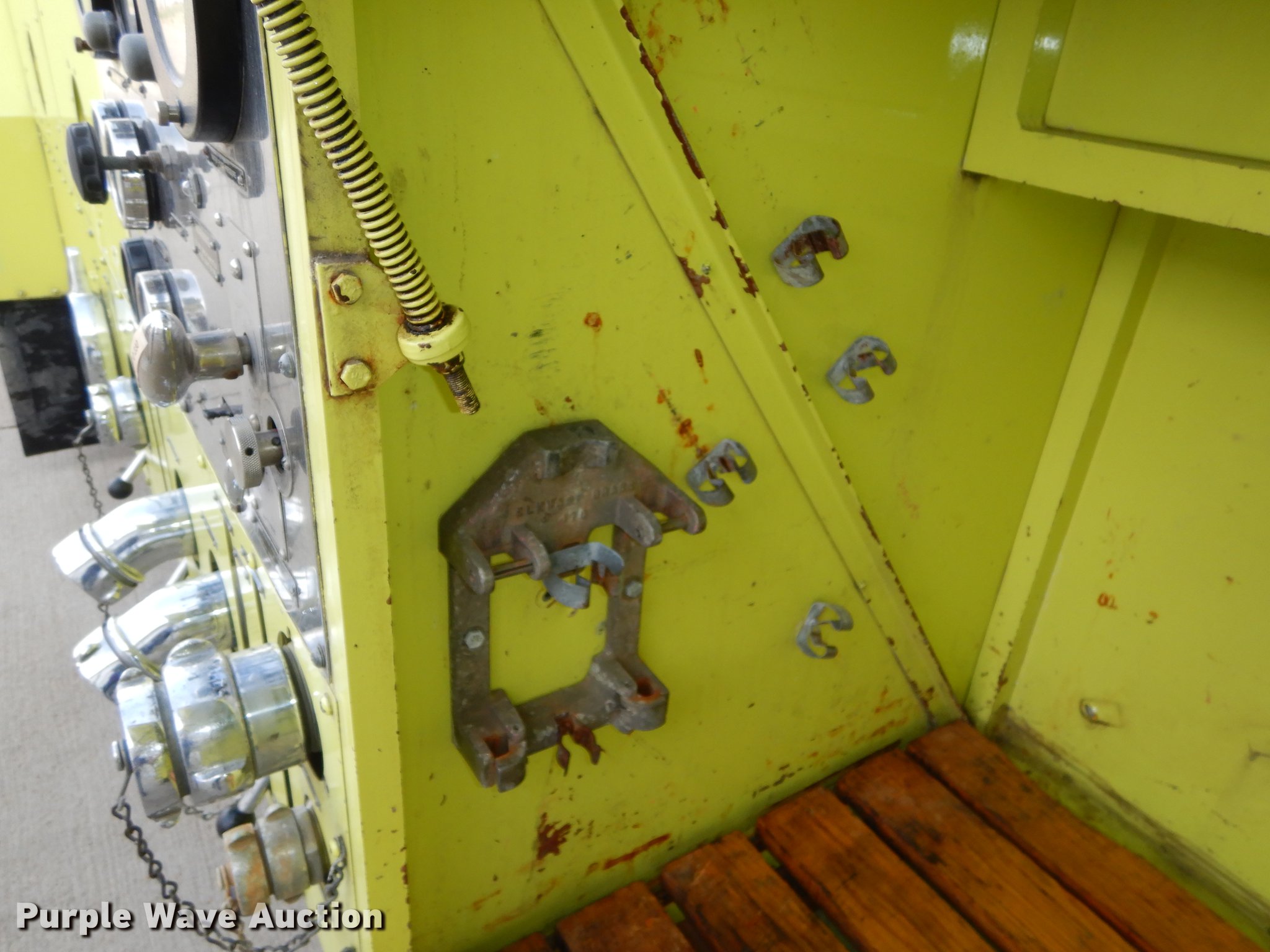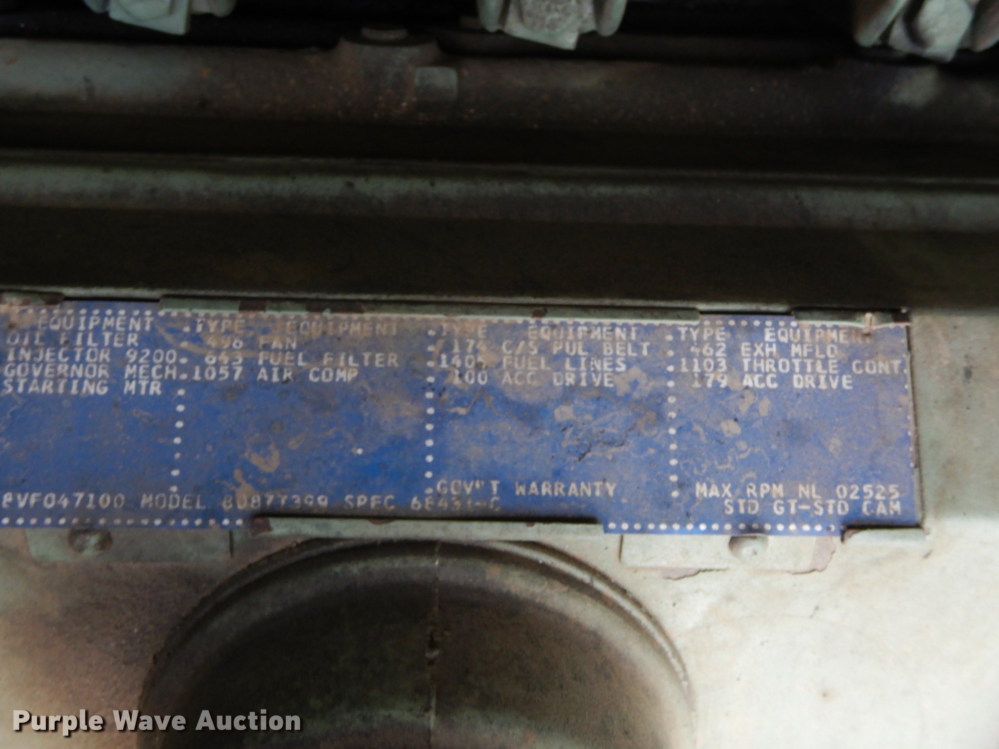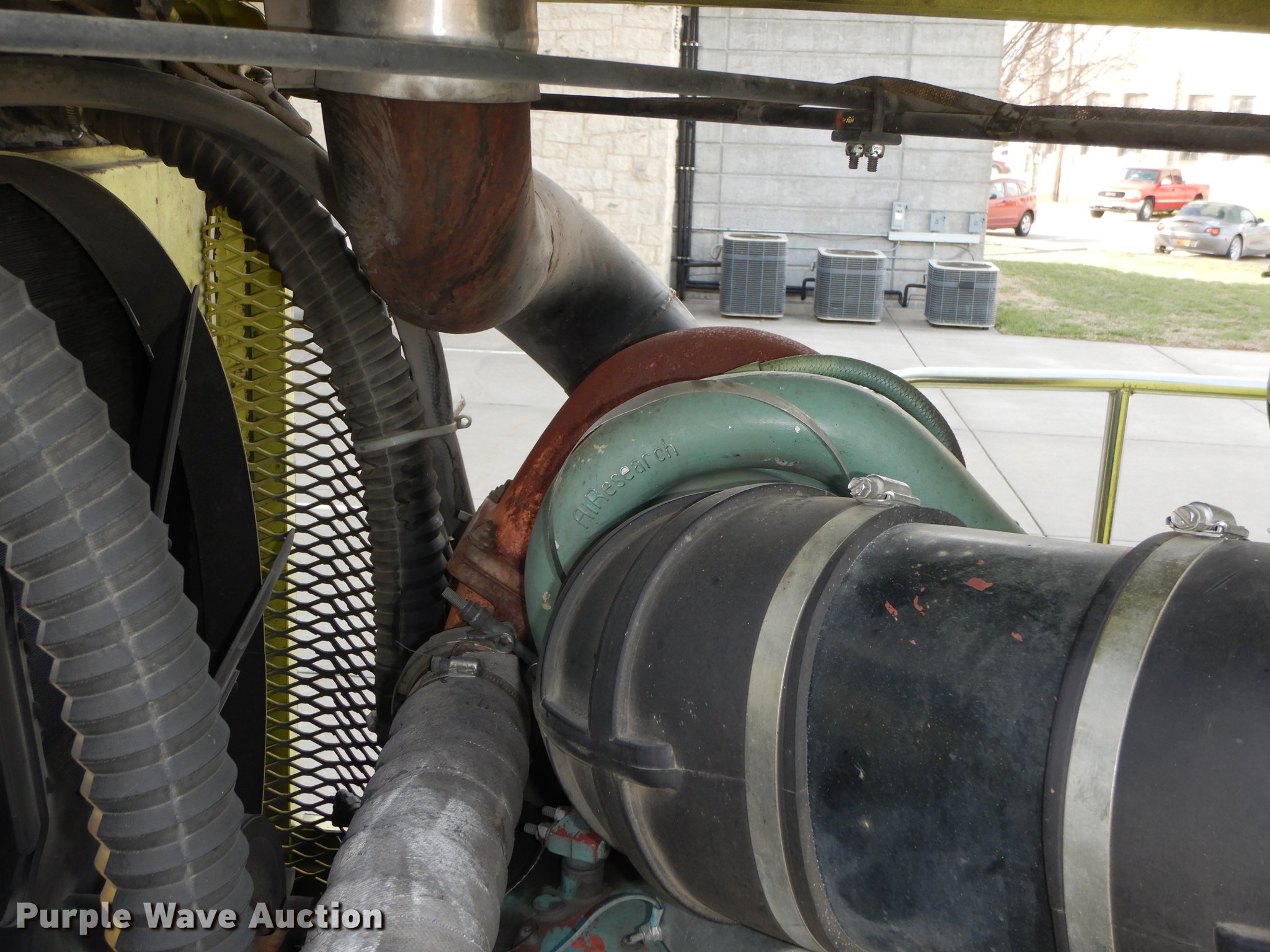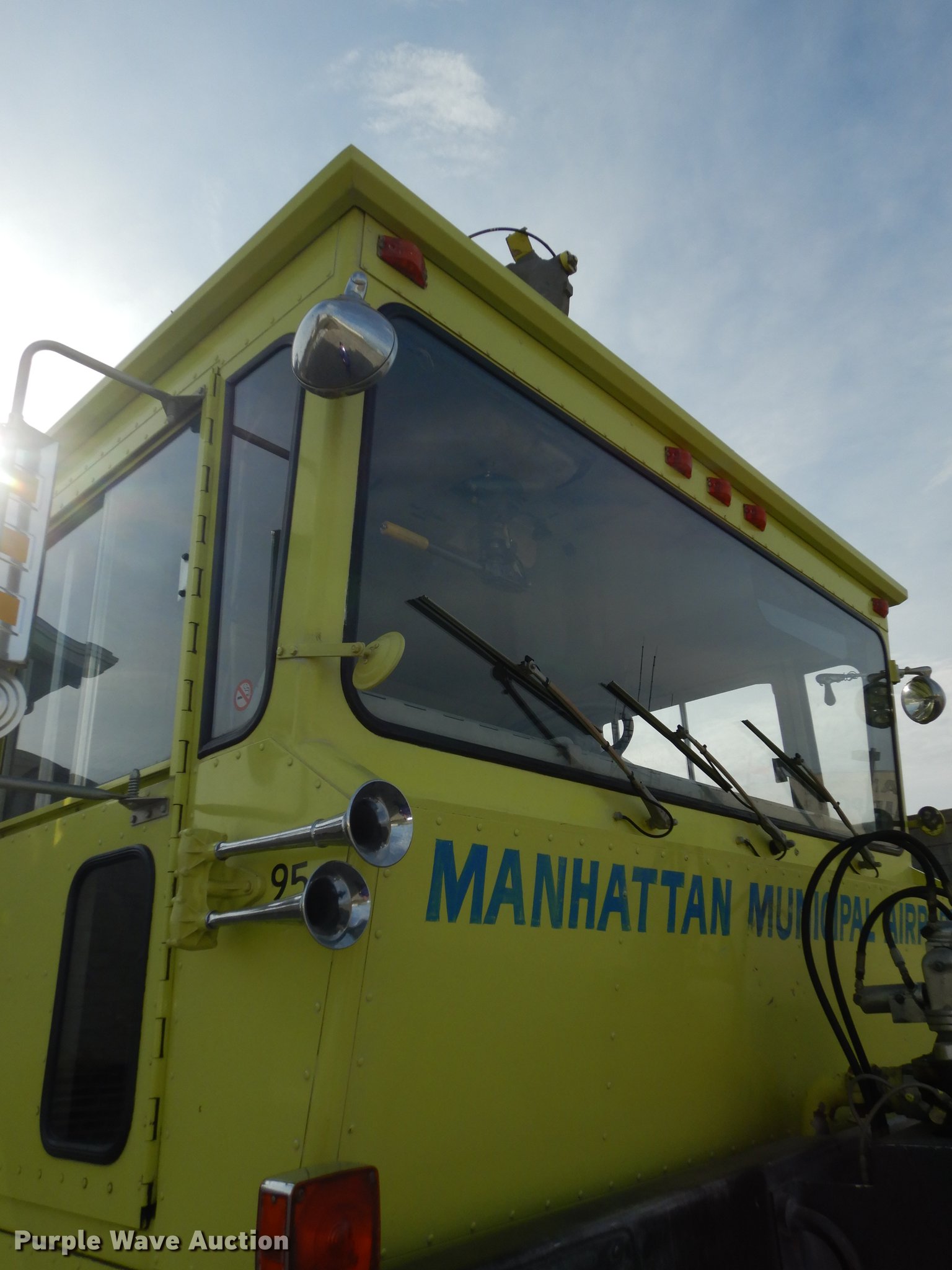 Purple Wave is selling a used Fire Truck or Emergency Vehicle in Kansas. This item is a 1980 Oshkosh ARFF fire truck with the following: 8,093 miles on odometer, 2,772 pump hours on meter, Detroit Diesel turbo diesel engine, Serial 8VF0471Q0, Allison automatic transmission, Single axle, Air horn, Emergency lights and sirens, Signal-Stat VII system, Front mounted pump, Roof turret, 800 high flow gpm, 400 low flow gpm, Bumper turret, 375 gpm low flow, Hydraulic and manual operation, (3) 17 gpm under truck nozzles, 150' hose, 30 gpm, Foam storage tank, 205 gallon capacity, Six percent full, Water storage tank, 1,585 gallon capacity, No dry chemical storage, Pintle hitch, Spring suspension, Air brakes, 194" wheelbase, Michelin 24-20.5 tires, Additional tire and wheel, Leaks, Top extension tube not included, Ladder not included, Decals will be removed or painted over