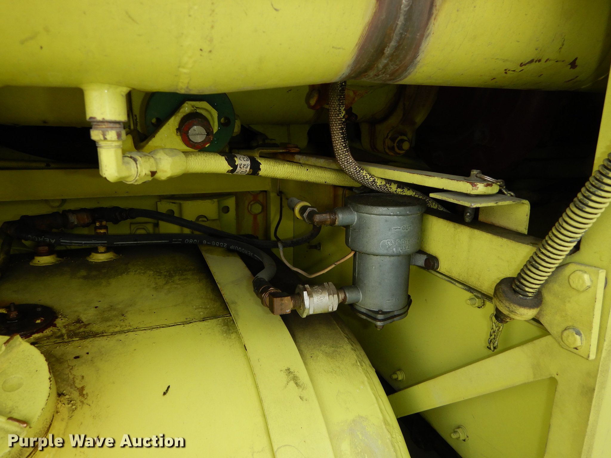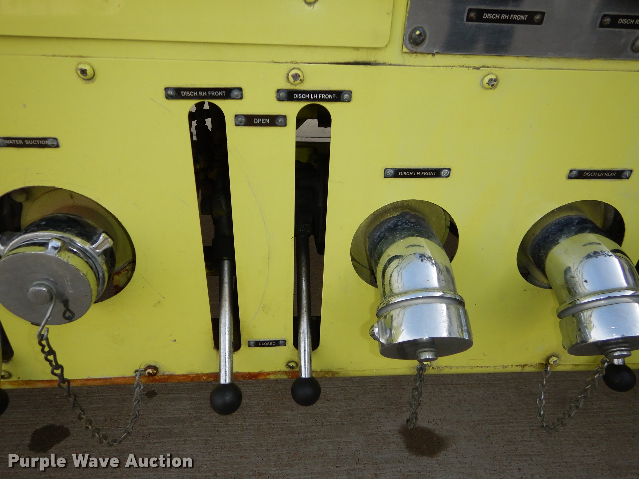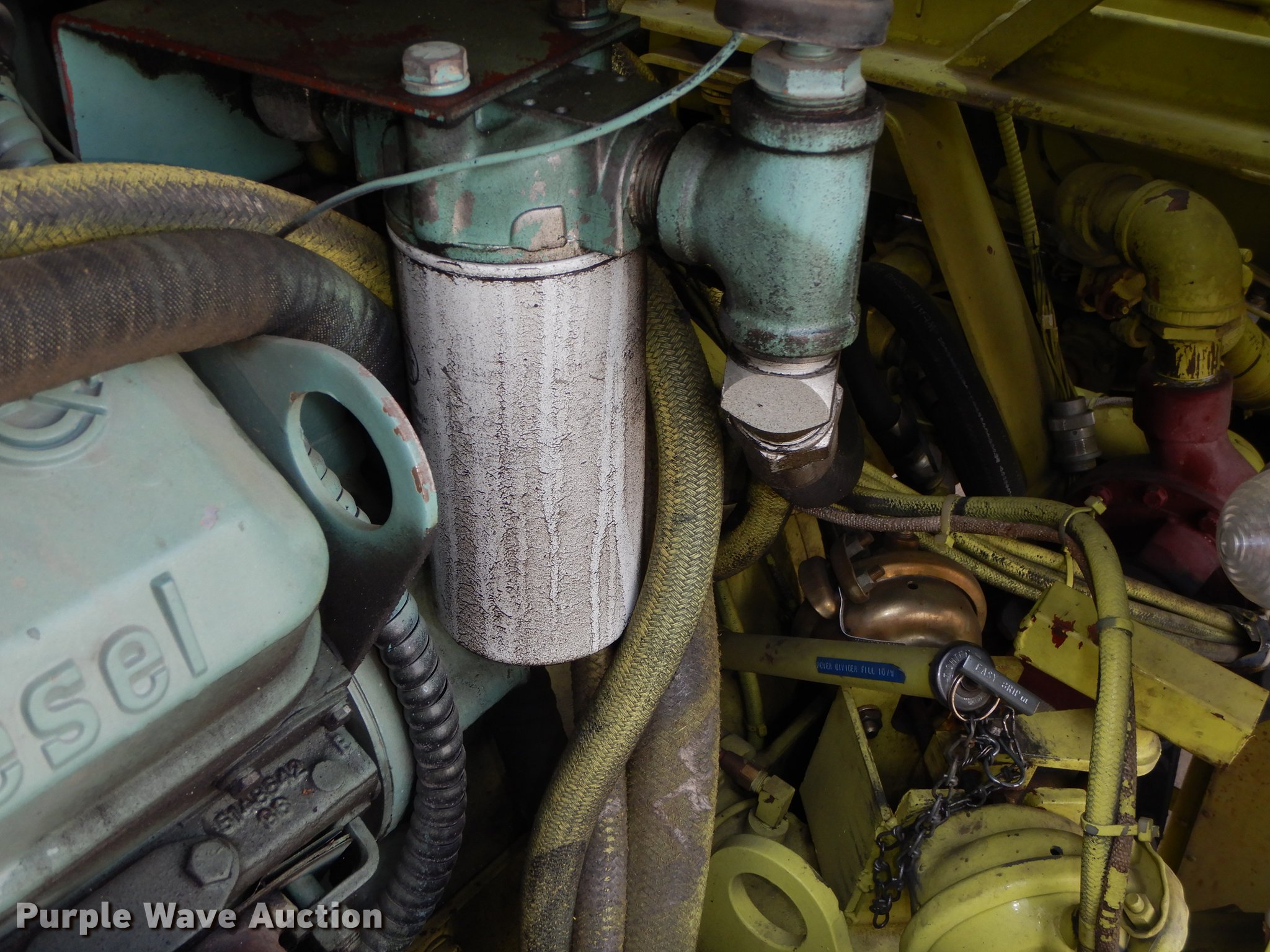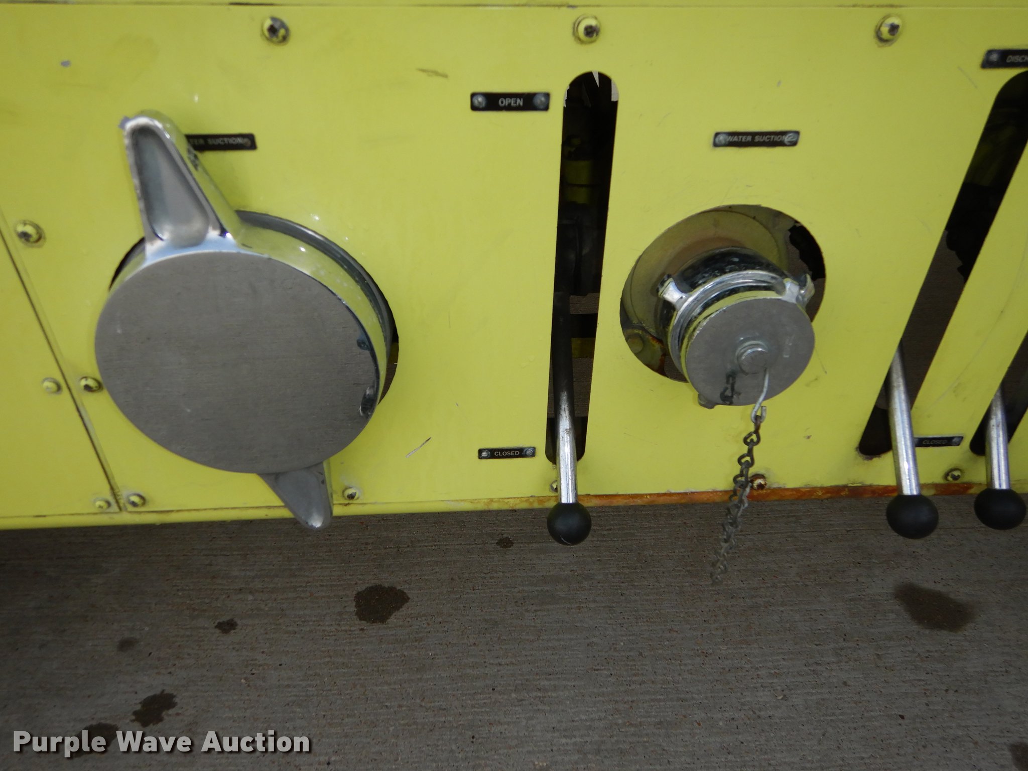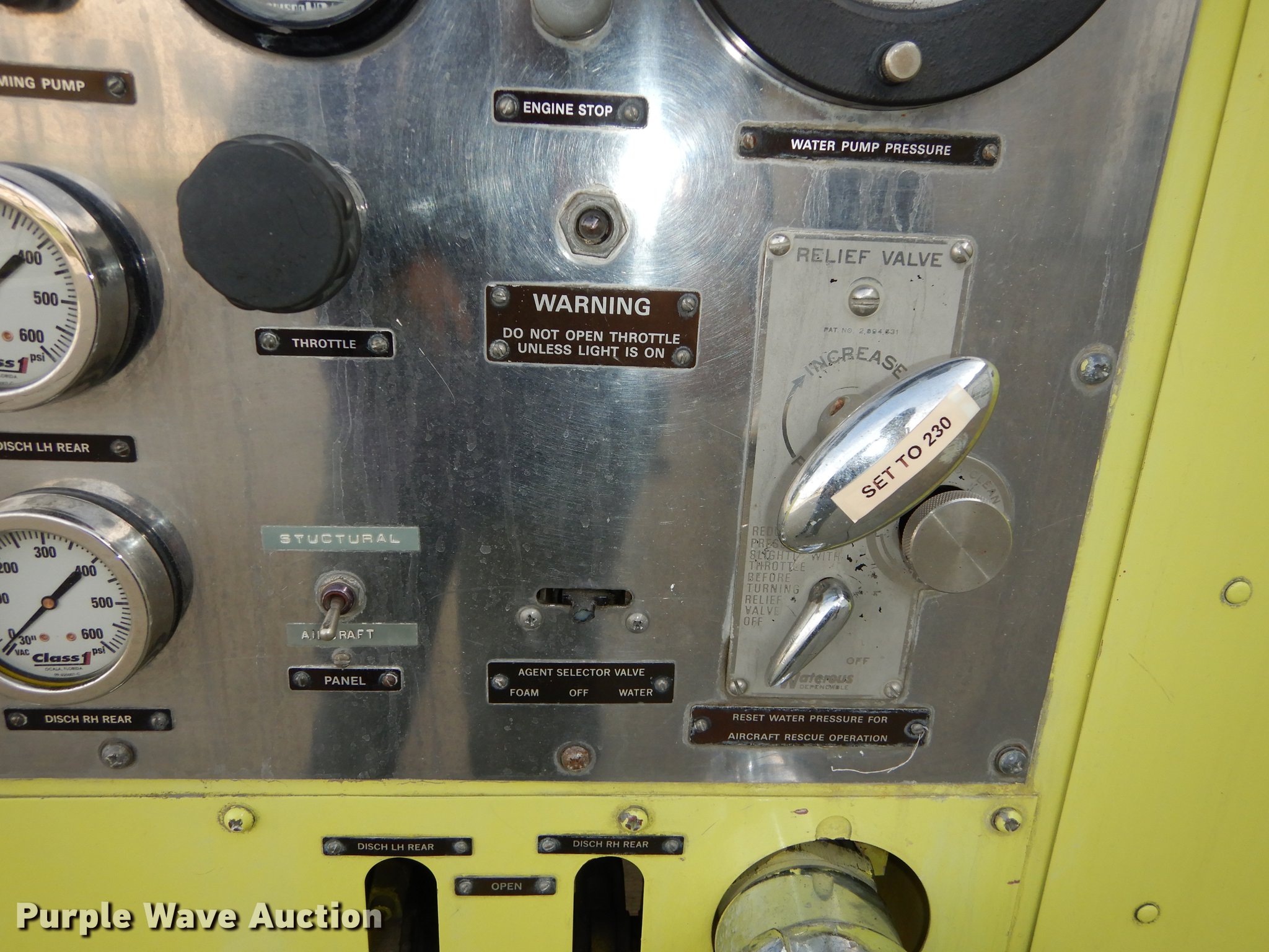 Purple Wave is selling a used Fire Truck or Emergency Vehicle in Kansas. This item is a 1980 Oshkosh ARFF fire truck with the following: 8,093 miles on odometer, 2,772 pump hours on meter, Detroit Diesel turbo diesel engine, Serial 8VF0471Q0, Allison automatic transmission, Single axle, Air horn, Emergency lights and sirens, Signal-Stat VII system, Front mounted pump, Roof turret, 800 high flow gpm, 400 low flow gpm, Bumper turret, 375 gpm low flow, Hydraulic and manual operation, (3) 17 gpm under truck nozzles, 150' hose, 30 gpm, Foam storage tank, 205 gallon capacity, Six percent full, Water storage tank, 1,585 gallon capacity, No dry chemical storage, Pintle hitch, Spring suspension, Air brakes, 194" wheelbase, Michelin 24-20.5 tires, Additional tire and wheel, Leaks, Top extension tube not included, Ladder not included, Decals will be removed or painted over