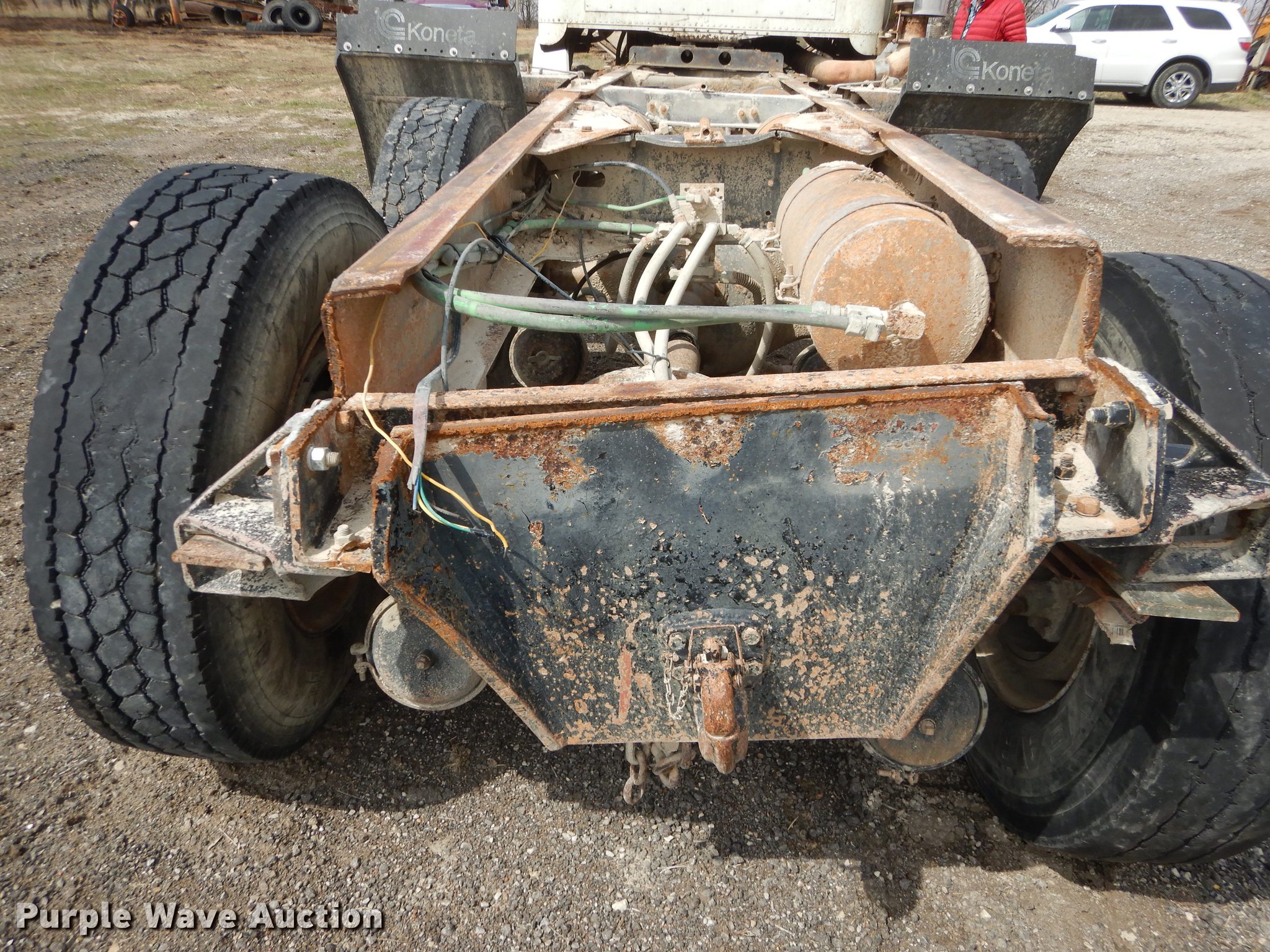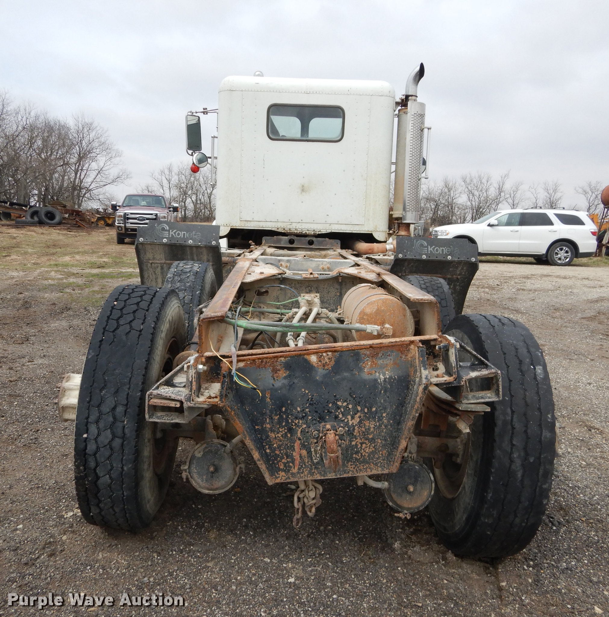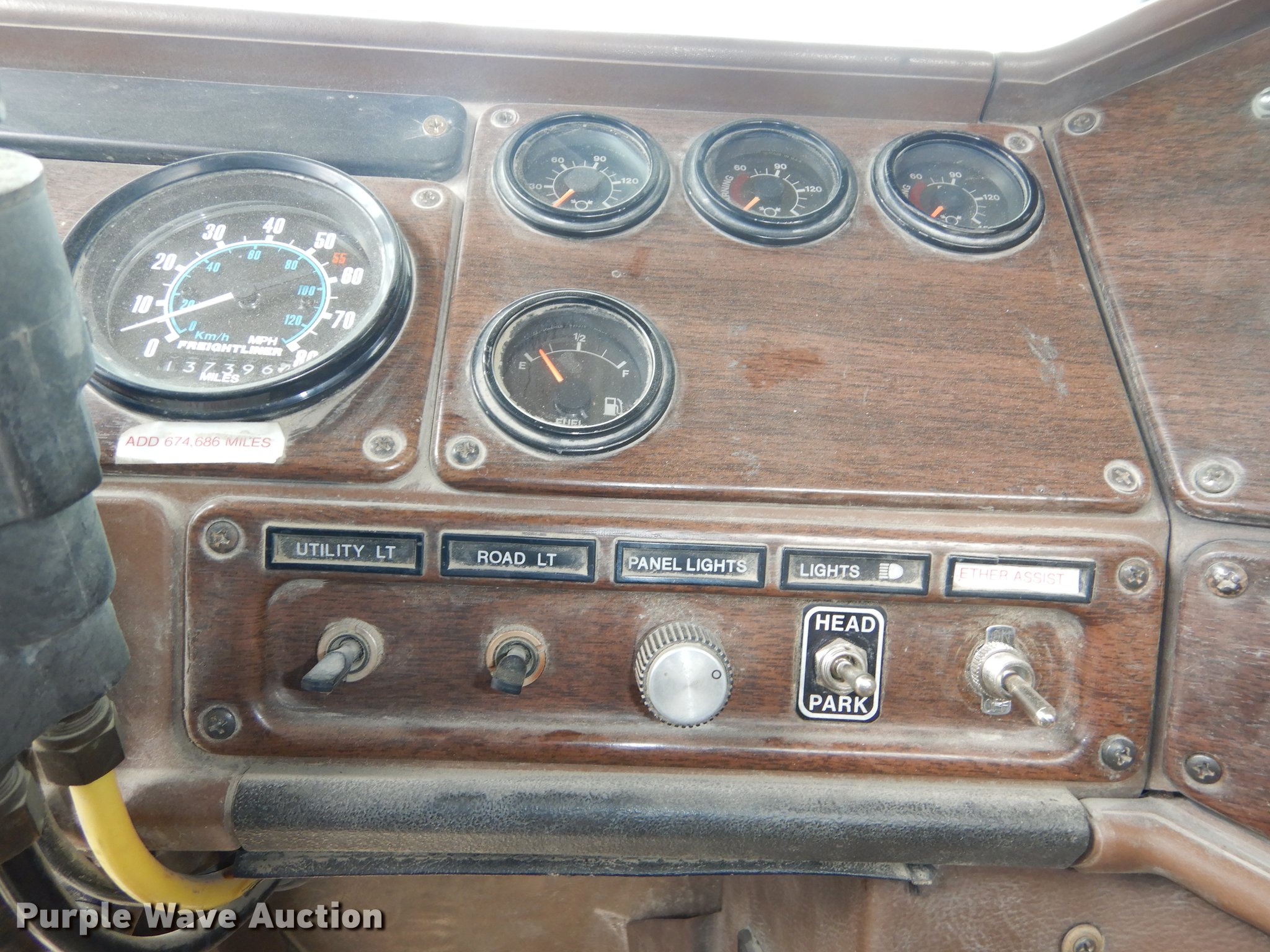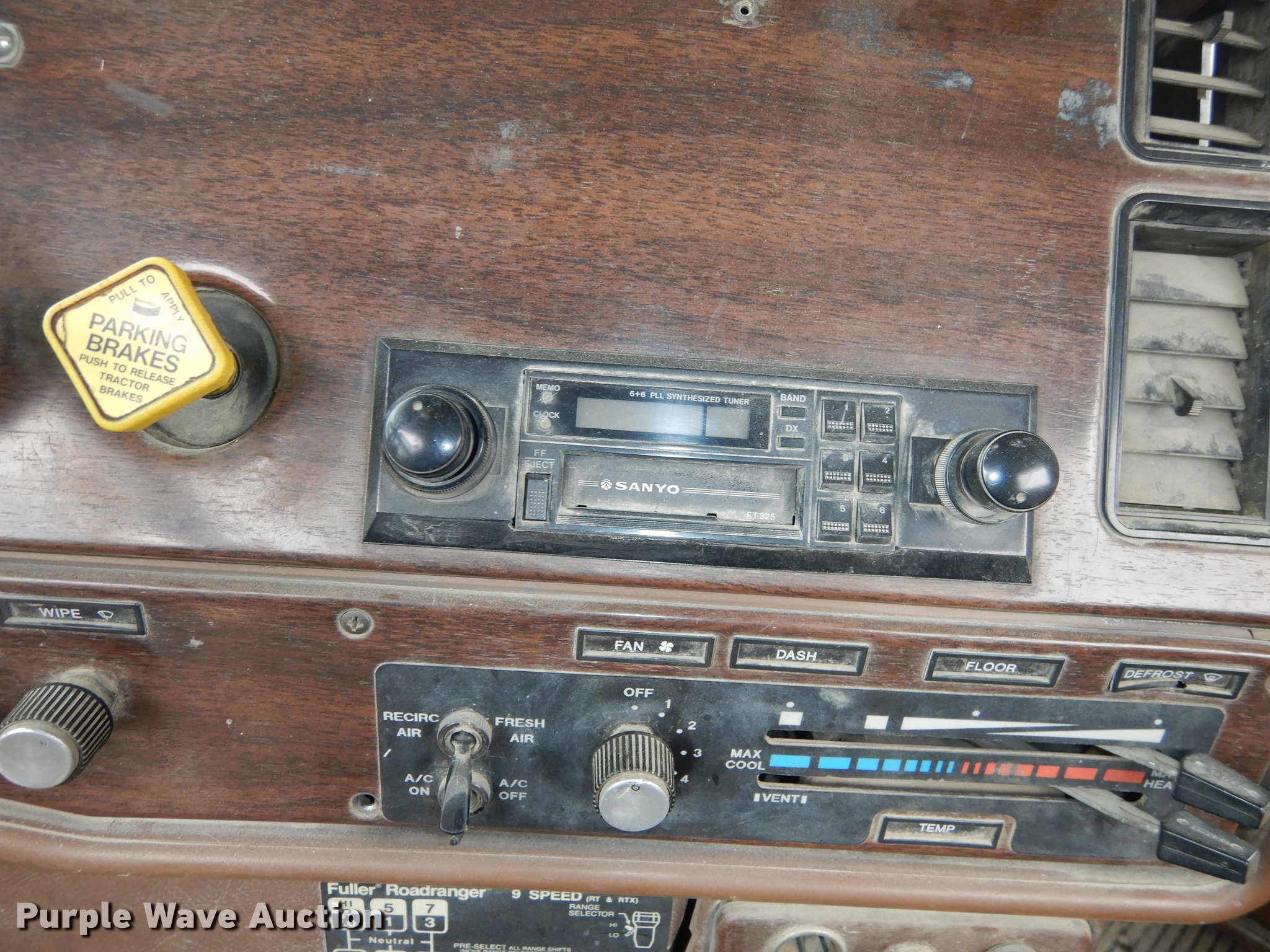 Purple Wave is selling a used Truck Tractor in Kansas. This item is a 1987 Freightliner FLC Classic semi truck with the following: 137,396 miles on odometer, Caterpillar 3406B 14.6L L6 turbo diesel engine, Eaton Fuller Road Ranger nine speed manual transmission, Tandem axle, AC and heat, AM/FM/cassette, Heated mirrors, Air suspension seat, Exterior visor, Single rear exhaust stack, Dual fuel tanks, Pintle hitch, Spring suspension, Air brakes, 210" wheelbase, Double Coin 11R22.5 front tires, Roadmaster 11R22.5 rear tires, GVWR 45,700 lbs, FAWR 11,200 lbs, RAWR 34,500 lbs, Non-operational AC, Outer tires have been removed, Radiator damaged, No taillights, Broken frame, Wrecked unit