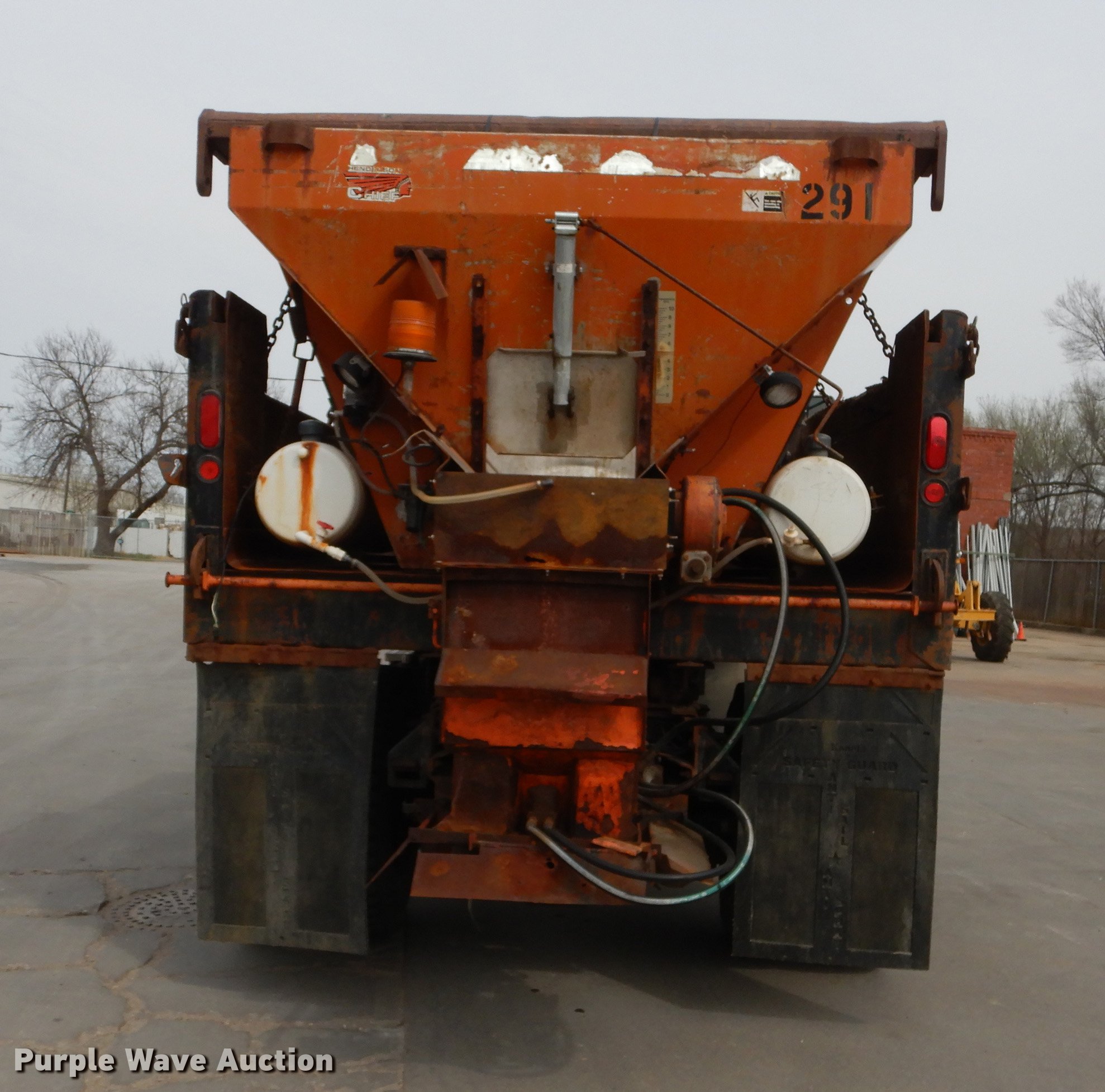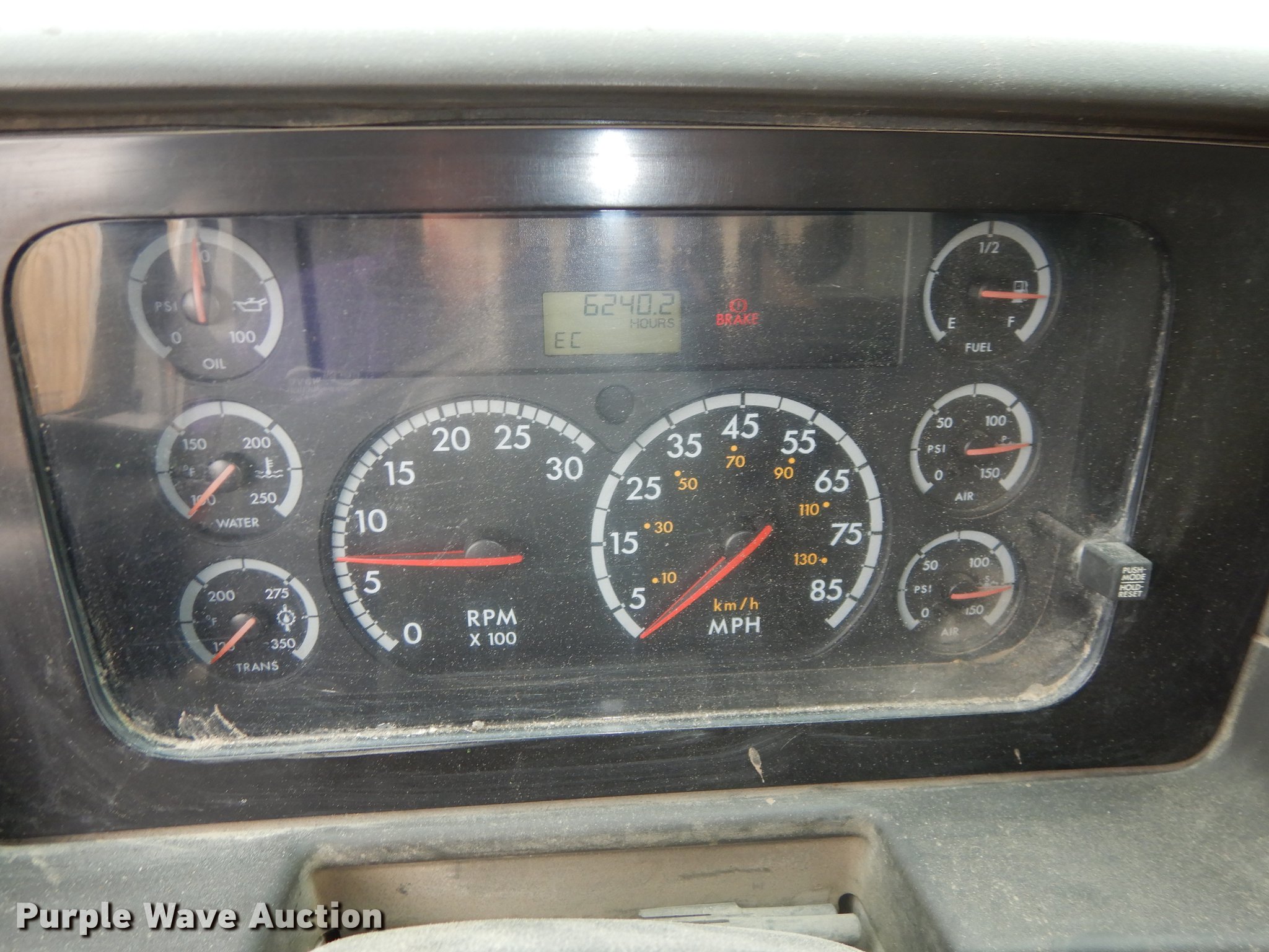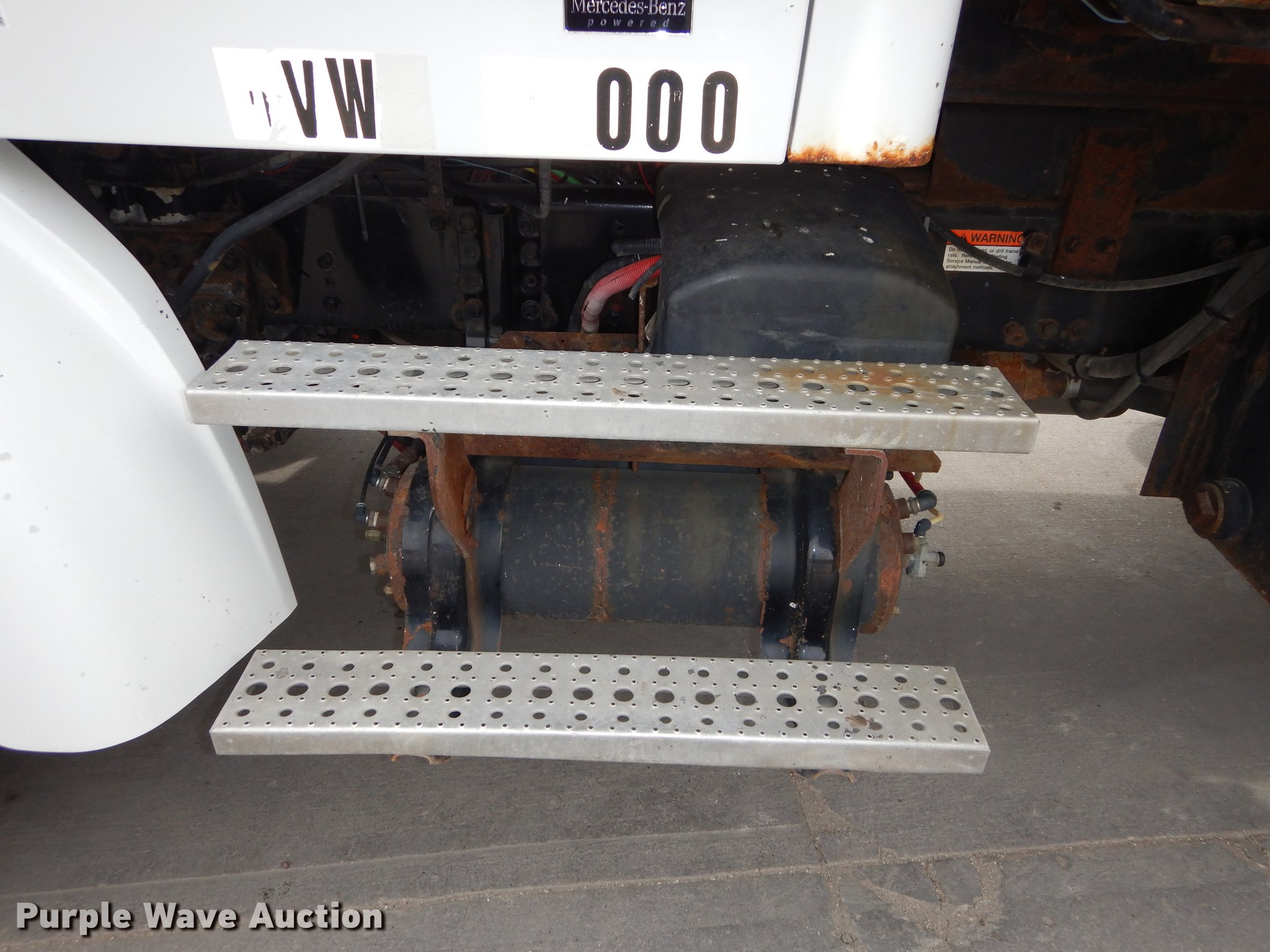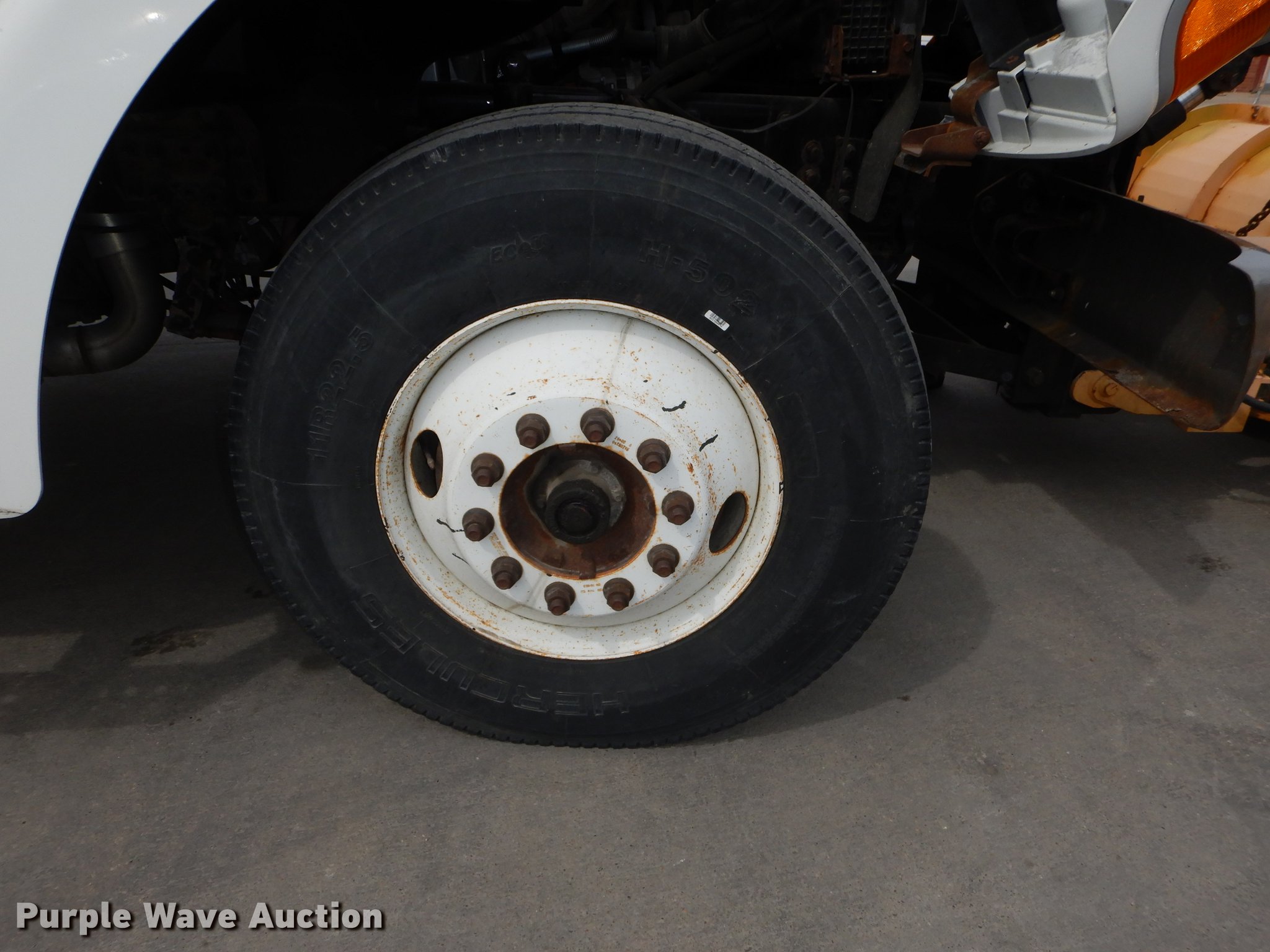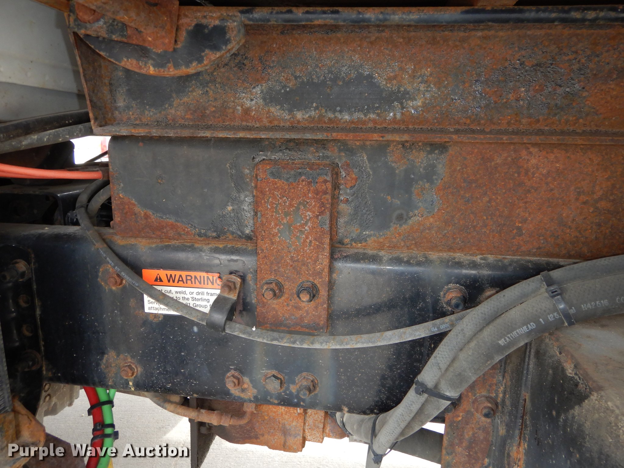Purple Wave is selling a used Construction Dump Truck in Kansas. This item is a 2005 Sterling L7500 dump truck with the following: 57,521 miles on odometer, 6,240 hours on meter, Mercedes-Benz MBE900 6.4L L6 diesel engine, Automatic transmission, Single axle, Heat, AM/FM, Air suspension seat, Storm Guard spreader controls, Beacon light, Block heater, Chelsea PTO, Heil 1821 steel dump bed, 10'L x 8'W, 20" side height, 3.5 cu. yd. capacity, Single ram hoist, Unattached end gate included, 11'W plow, Side markers, Baker/Flink mounting bracket, Lights, Chief spreader, De-icer tanks, Chain broken, Non-operational unit, Single fuel tank, Trailer wiring, Spring suspension, Air brakes, 160" wheelbase, 11R22.5 tires, GVWR 35,350 lbs, FAWR 12,350 lbs, RAWR 23,000 lbs