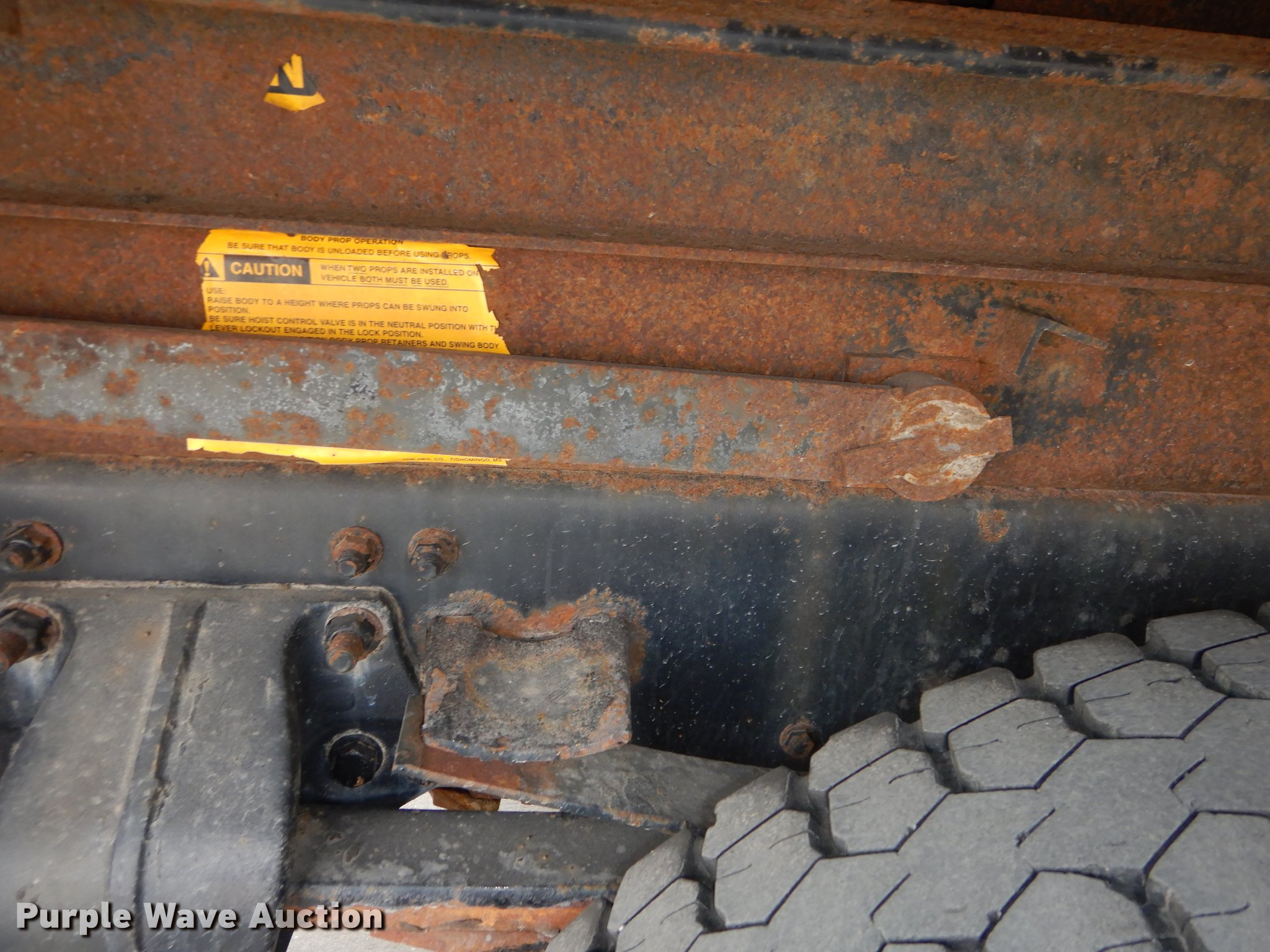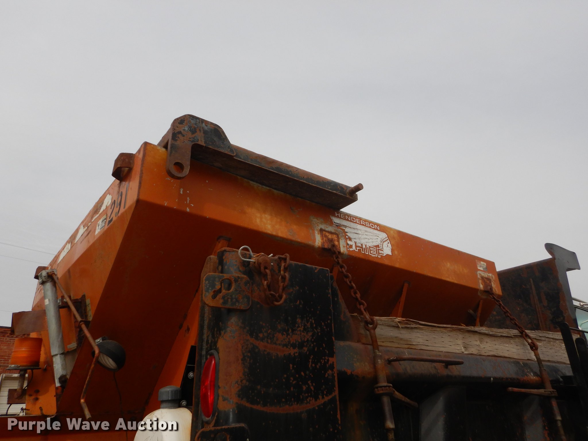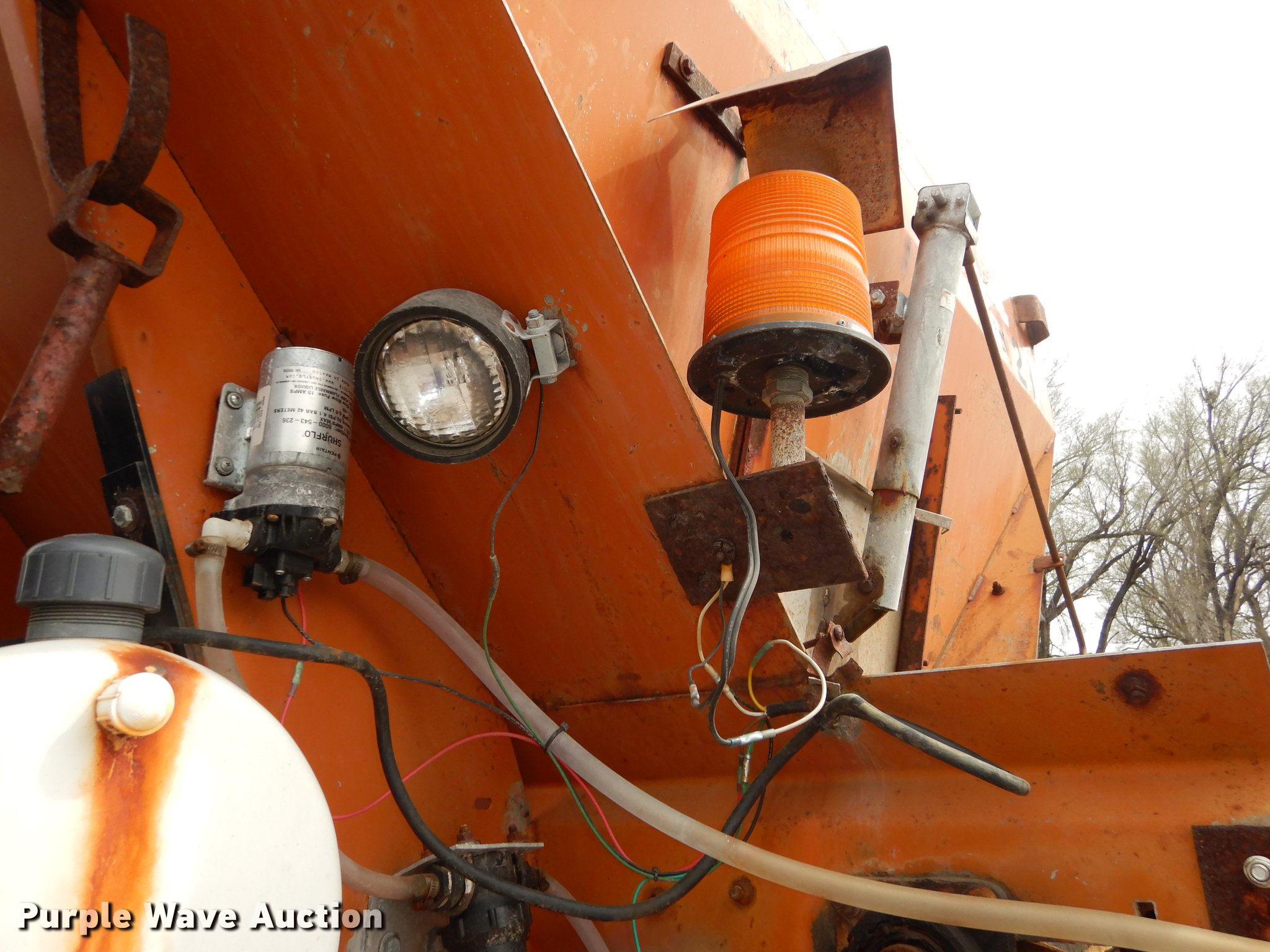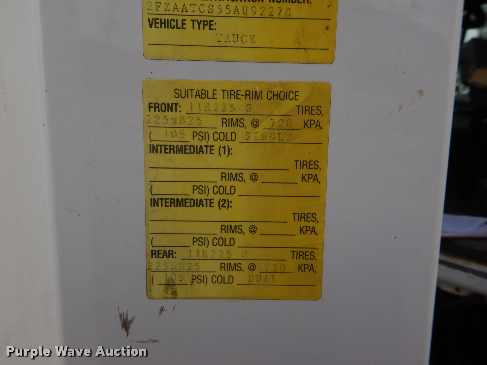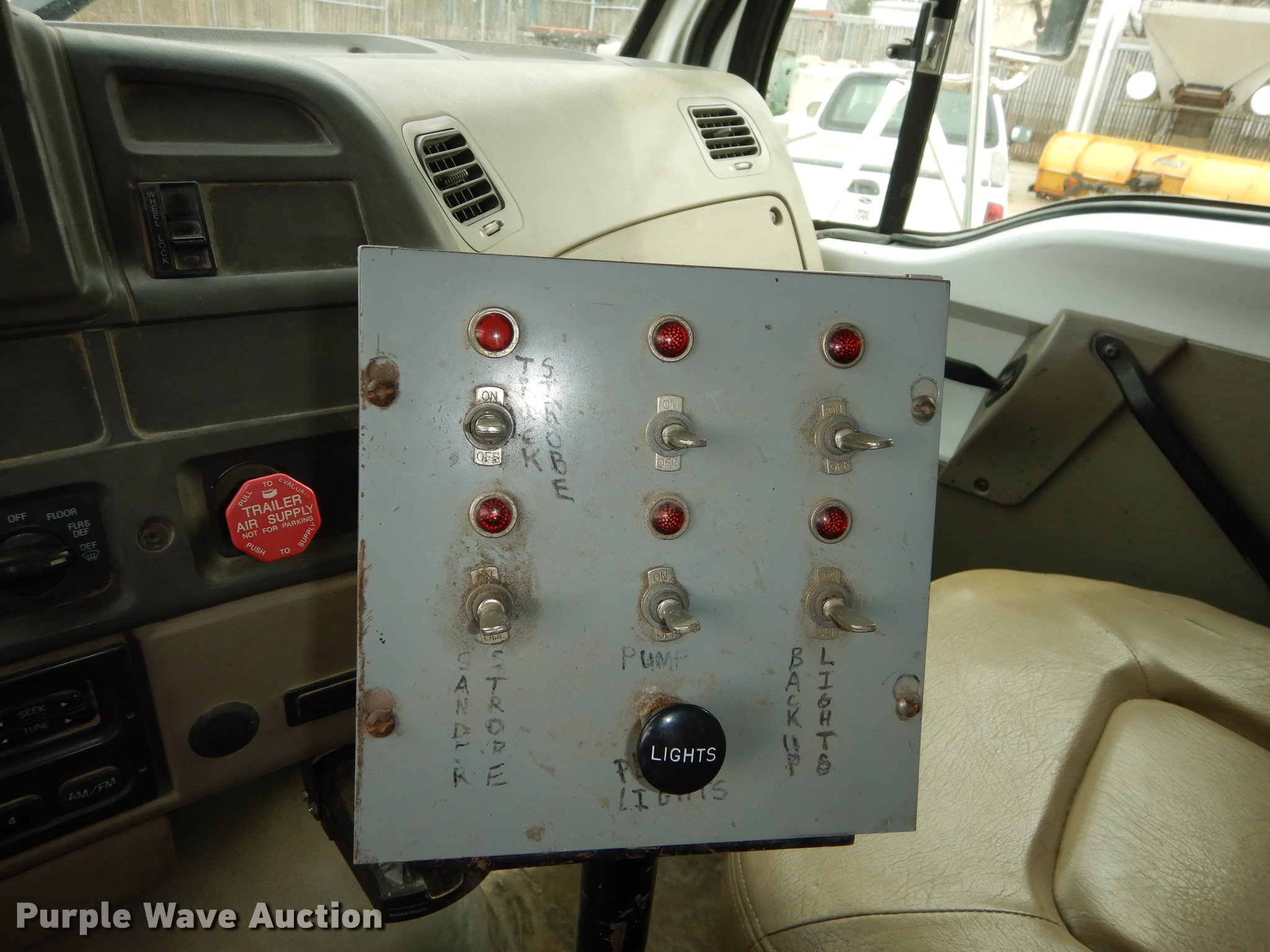 Purple Wave is selling a used Construction Dump Truck in Kansas. This item is a 2005 Sterling L7500 dump truck with the following: 57,521 miles on odometer, 6,240 hours on meter, Mercedes-Benz MBE900 6.4L L6 diesel engine, Automatic transmission, Single axle, Heat, AM/FM, Air suspension seat, Storm Guard spreader controls, Beacon light, Block heater, Chelsea PTO, Heil 1821 steel dump bed, 10'L x 8'W, 20" side height, 3.5 cu. yd. capacity, Single ram hoist, Unattached end gate included, 11'W plow, Side markers, Baker/Flink mounting bracket, Lights, Chief spreader, De-icer tanks, Chain broken, Non-operational unit, Single fuel tank, Trailer wiring, Spring suspension, Air brakes, 160" wheelbase, 11R22.5 tires, GVWR 35,350 lbs, FAWR 12,350 lbs, RAWR 23,000 lbs
