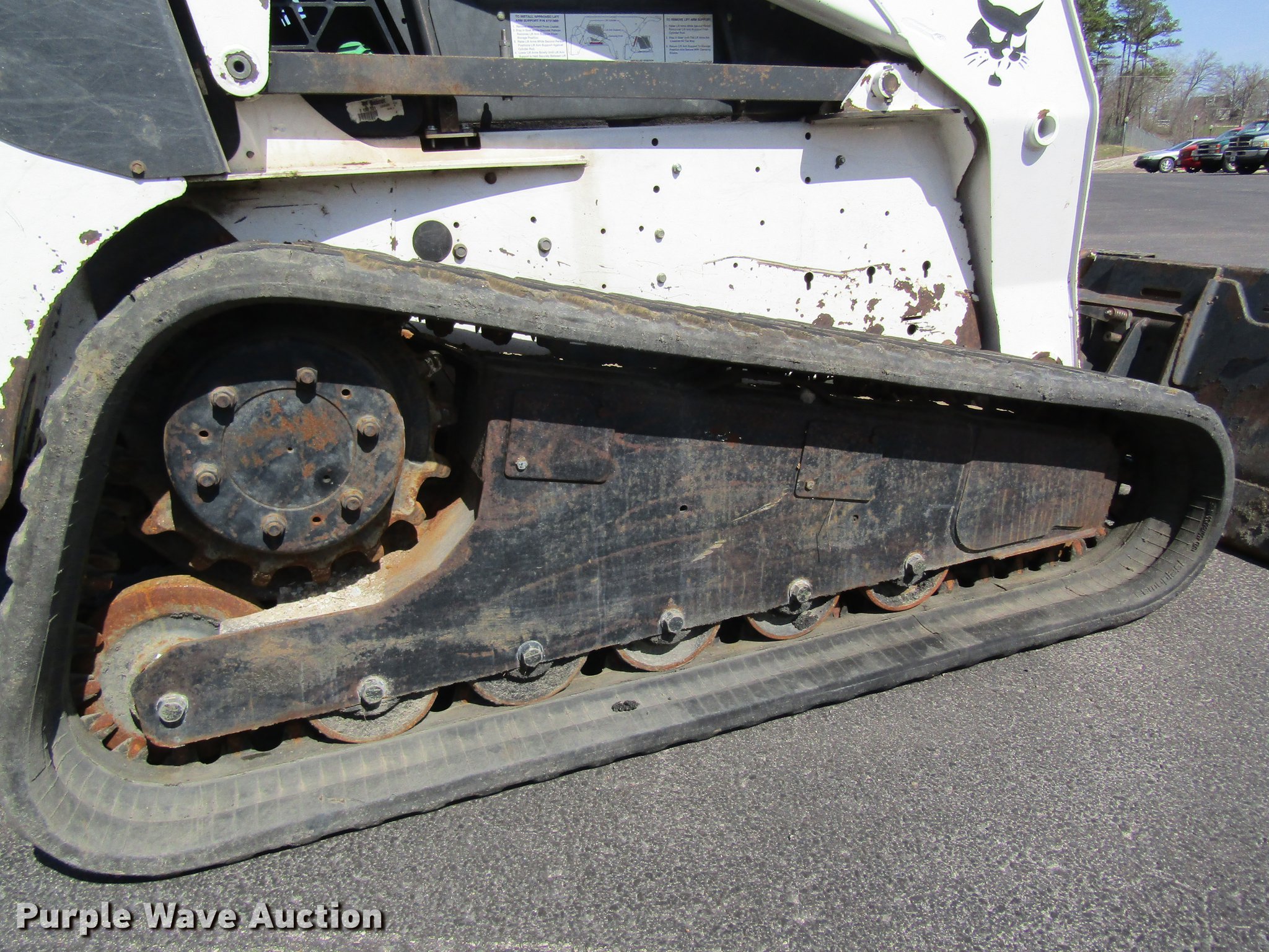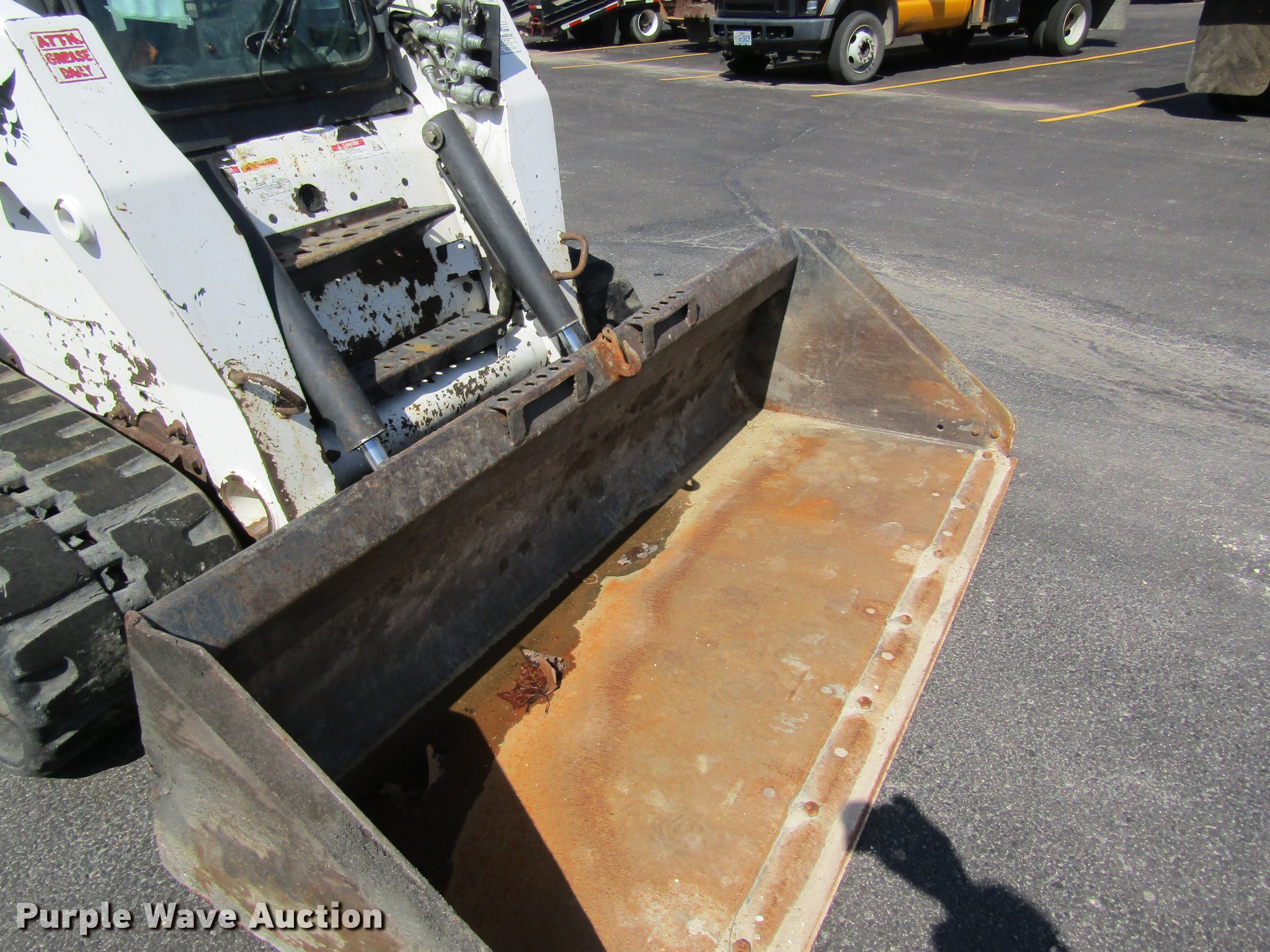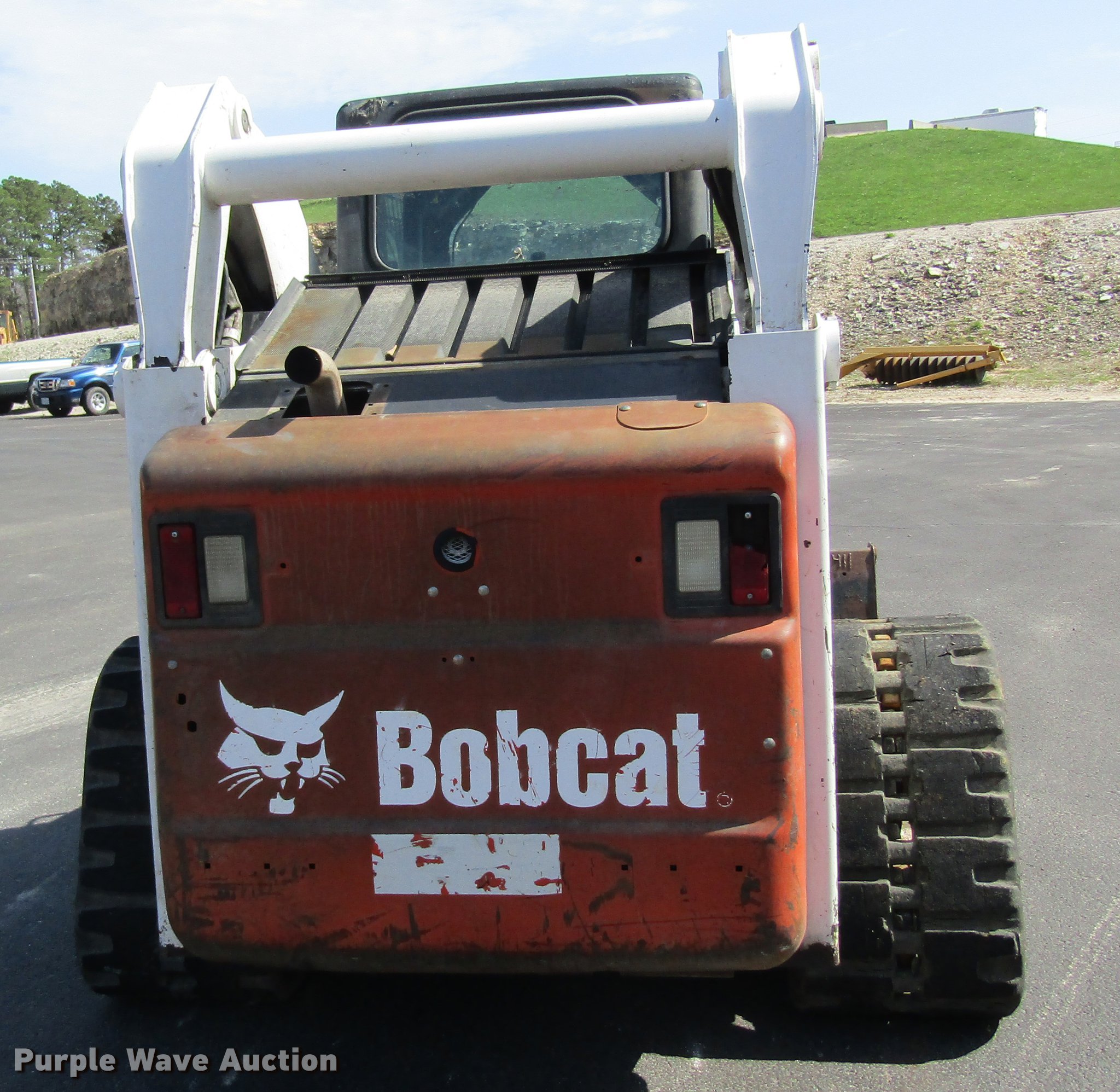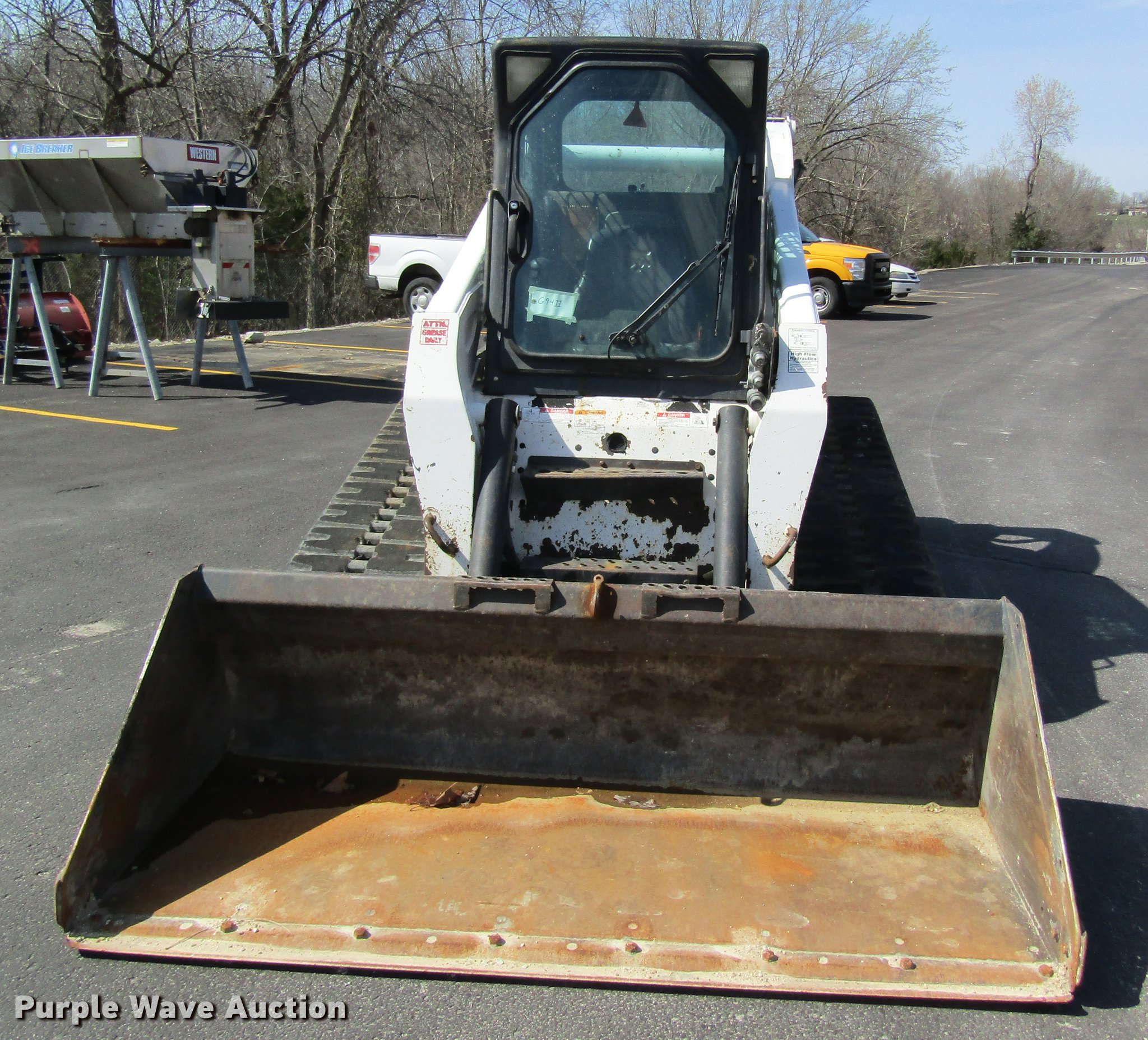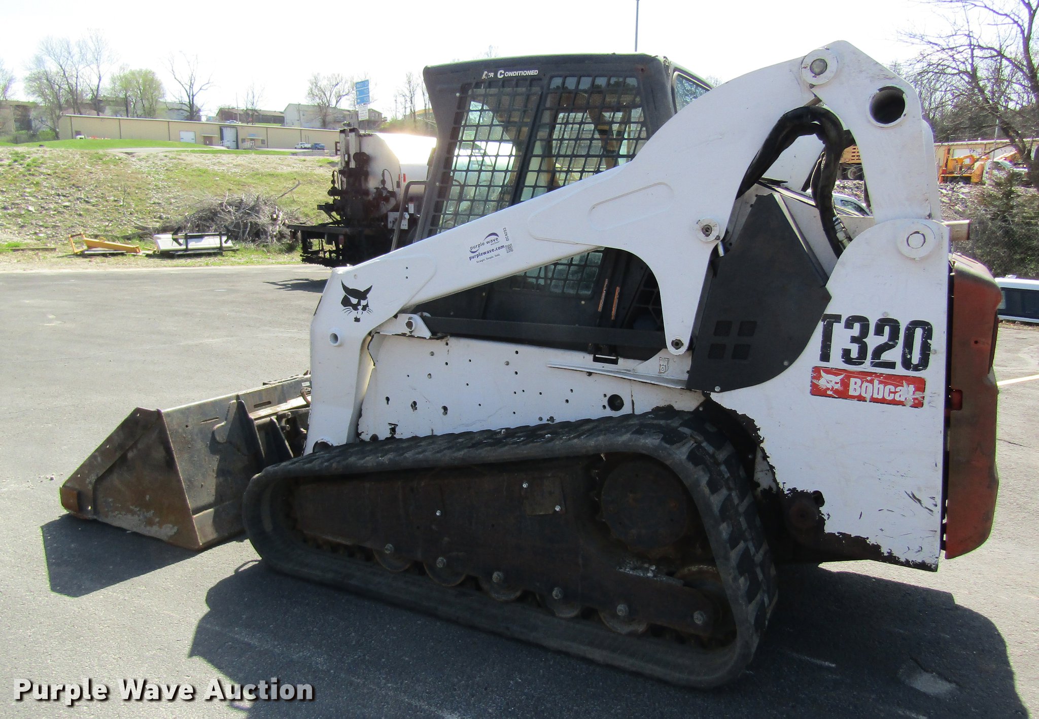 Purple Wave is selling a used Tracked Skid Steer Loader in Missouri. This item is a 2008 Bobcat T320 skid steer with the following: 1,947 hours on meter, Kubota four cylinder diesel engine, Two speed hydrostatic transmission, Enclosed cab, AC and heat, Hand and foot controls, Suspension seat, Front work lights, Wipers, High flow auxiliary hydraulics, Auxiliary electrical outlet, Manual quick coupler, 80"W bucket, Bolt-on cutting edge, 18"W tracks, Hydraulic pump issues, Low pressure leaks, Serial A7MP40362, MODOT ID G9411