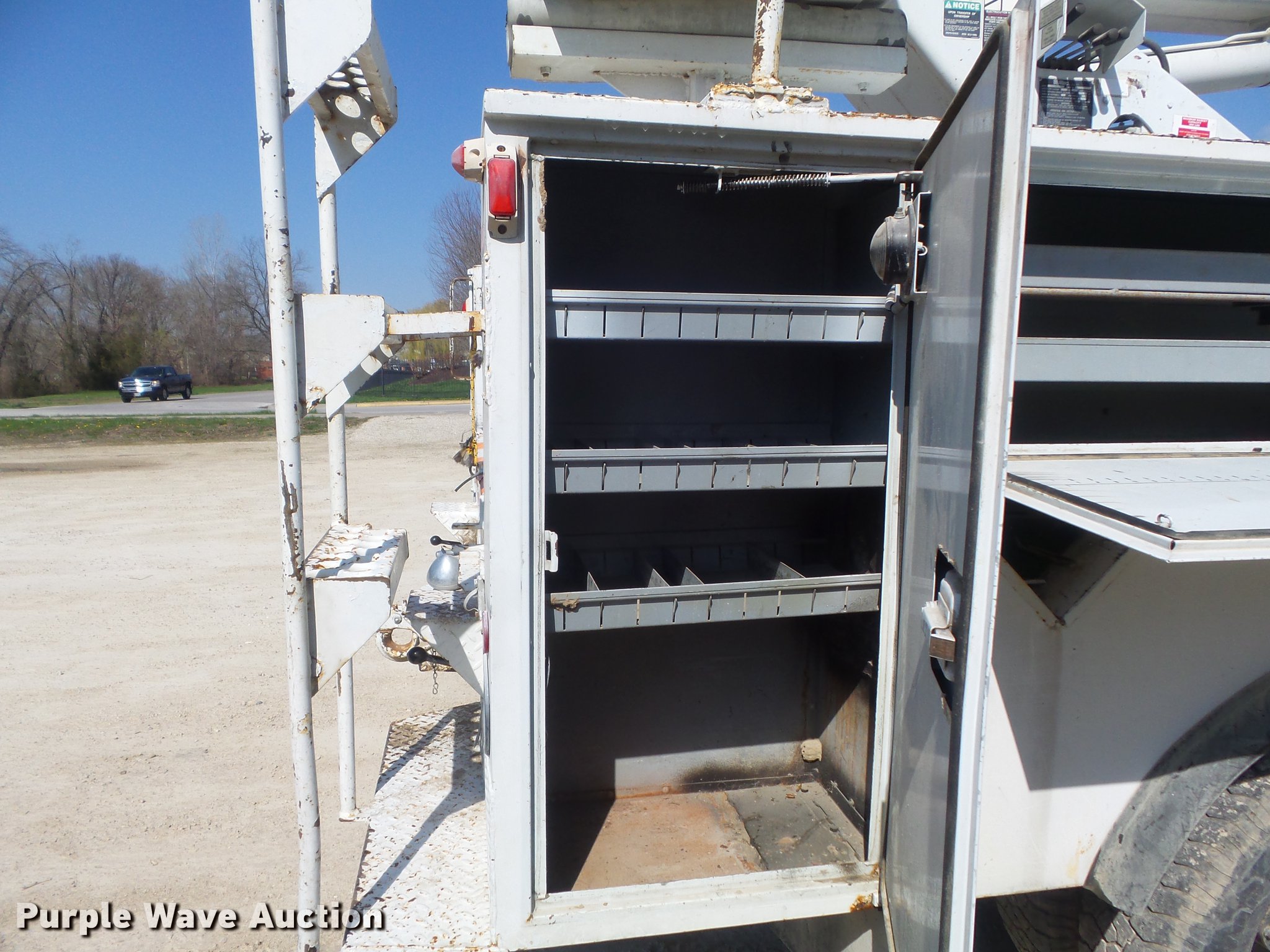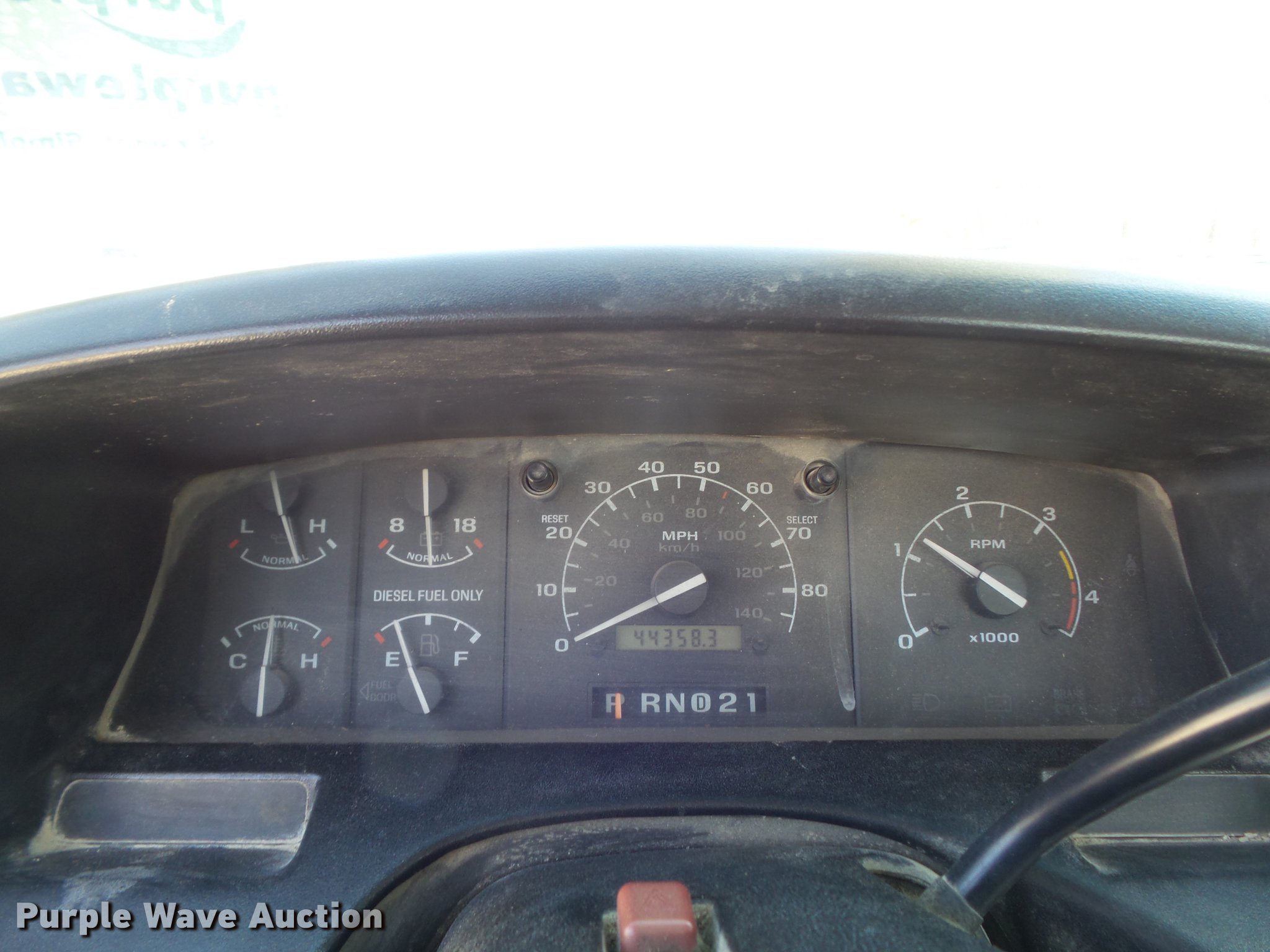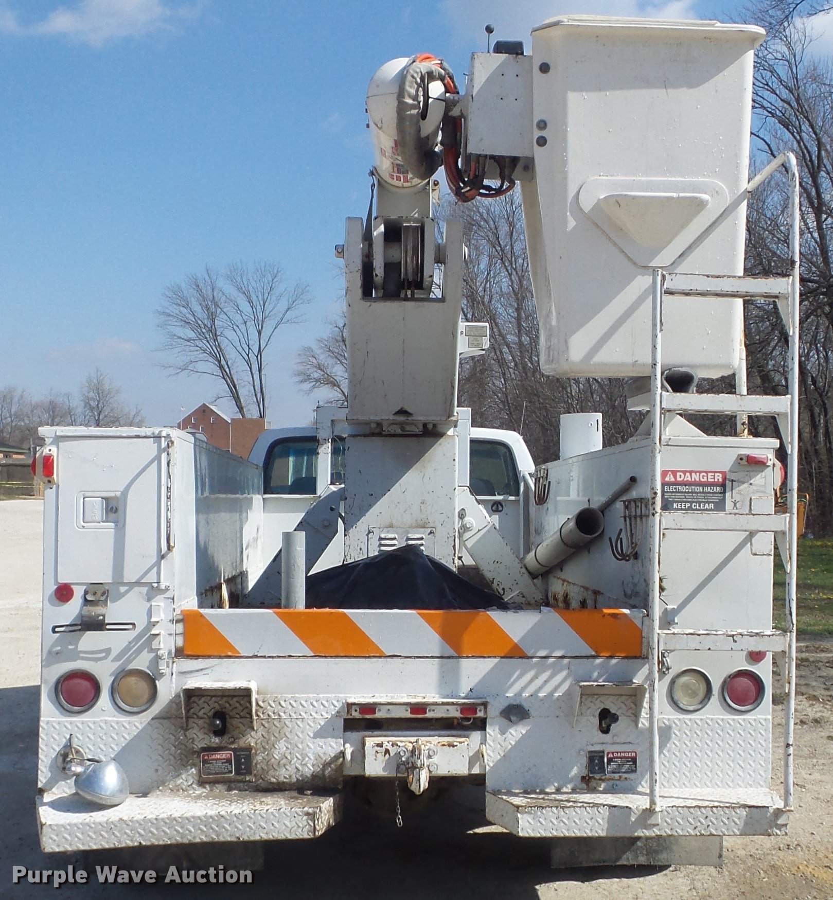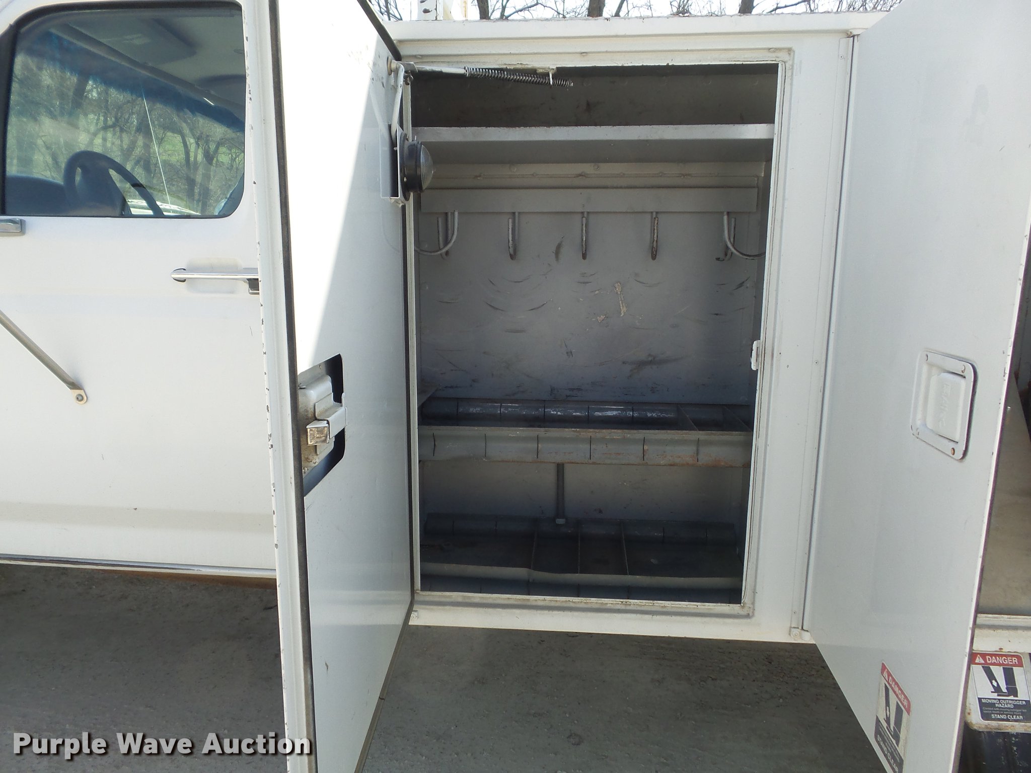 Purple Wave is selling a used Bucket Truck in Missouri. This item is a 1994 Ford F450 Super Duty XL bucket truck with the following: 44,358 miles on odometer, 2,966 hours on meter, 7.3L V8 diesel engine, Automatic transmission, Single axle, AC and heat, AM/FM, Backup alarm, Block heater, Front and rear strobe warning lights, Front tow hooks, PTO, Altec service bed, 12'L, Shelving, Compartment lights, Work lights, 1994 Altec A0300 boom, 300 lbs max lift capacity, Man basket, 36' max lift height, Ground and platform boom controls, Boom rotation, Articulating insulated boom, (2) outriggers, Serial 0294-P1214, Dual fuel tanks, Pintle hitch, Trailer wiring, Spring suspension, Hydraulic brakes, 161" wheelbase, LT235/85R16 tires, GVWR 15,000 lbs