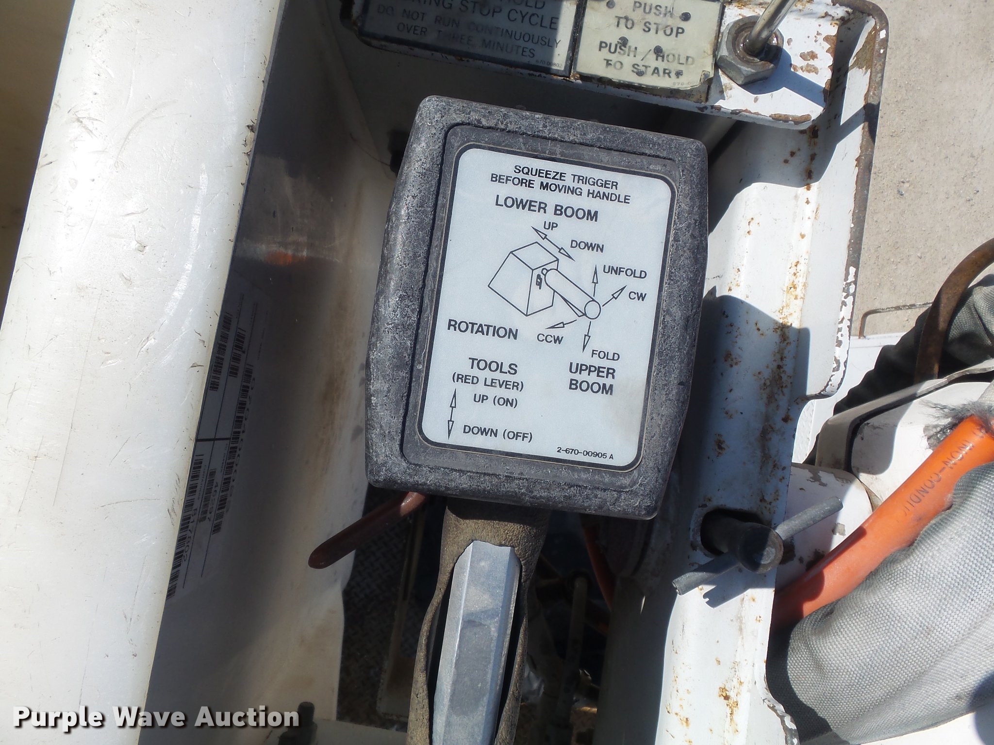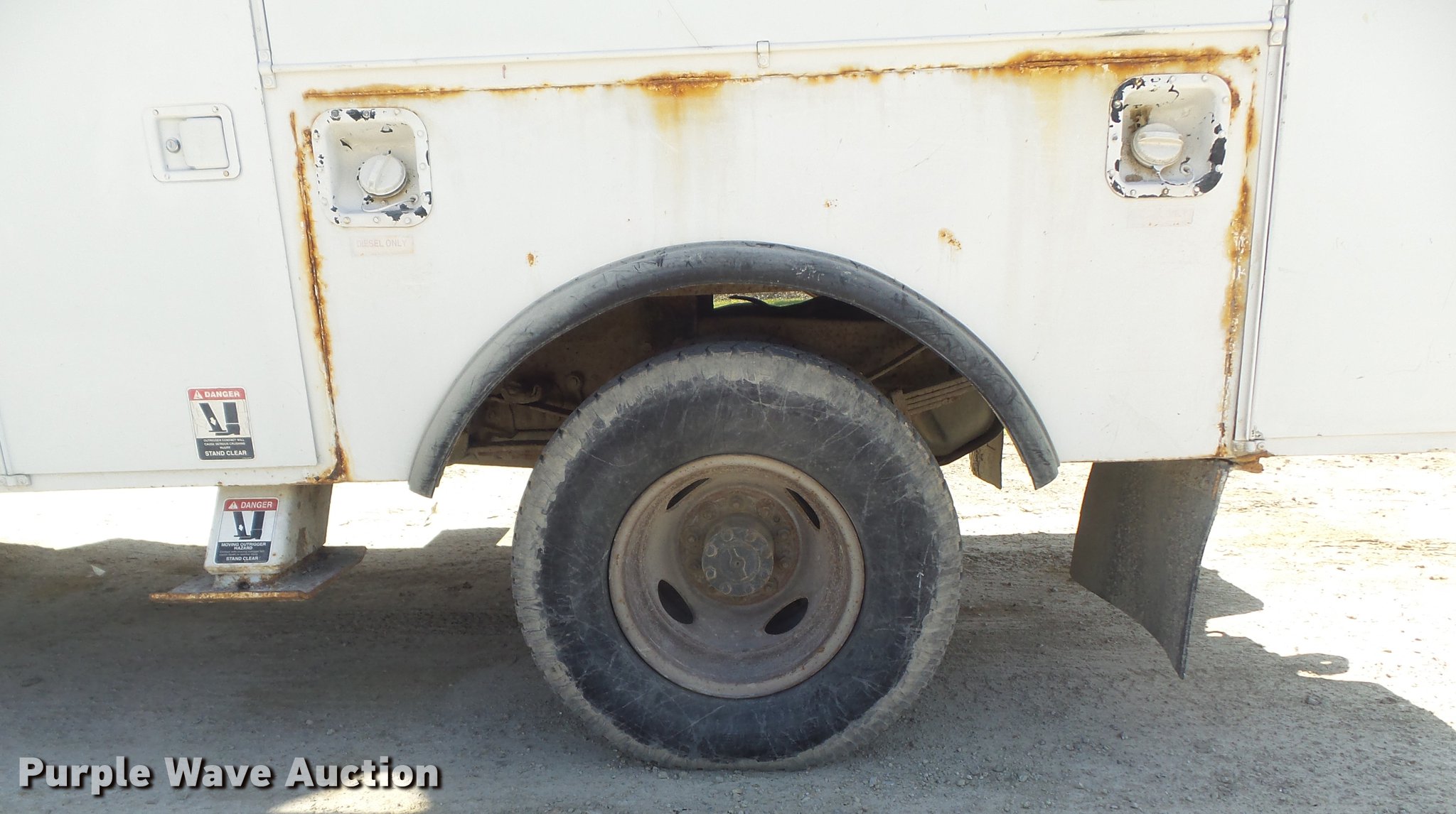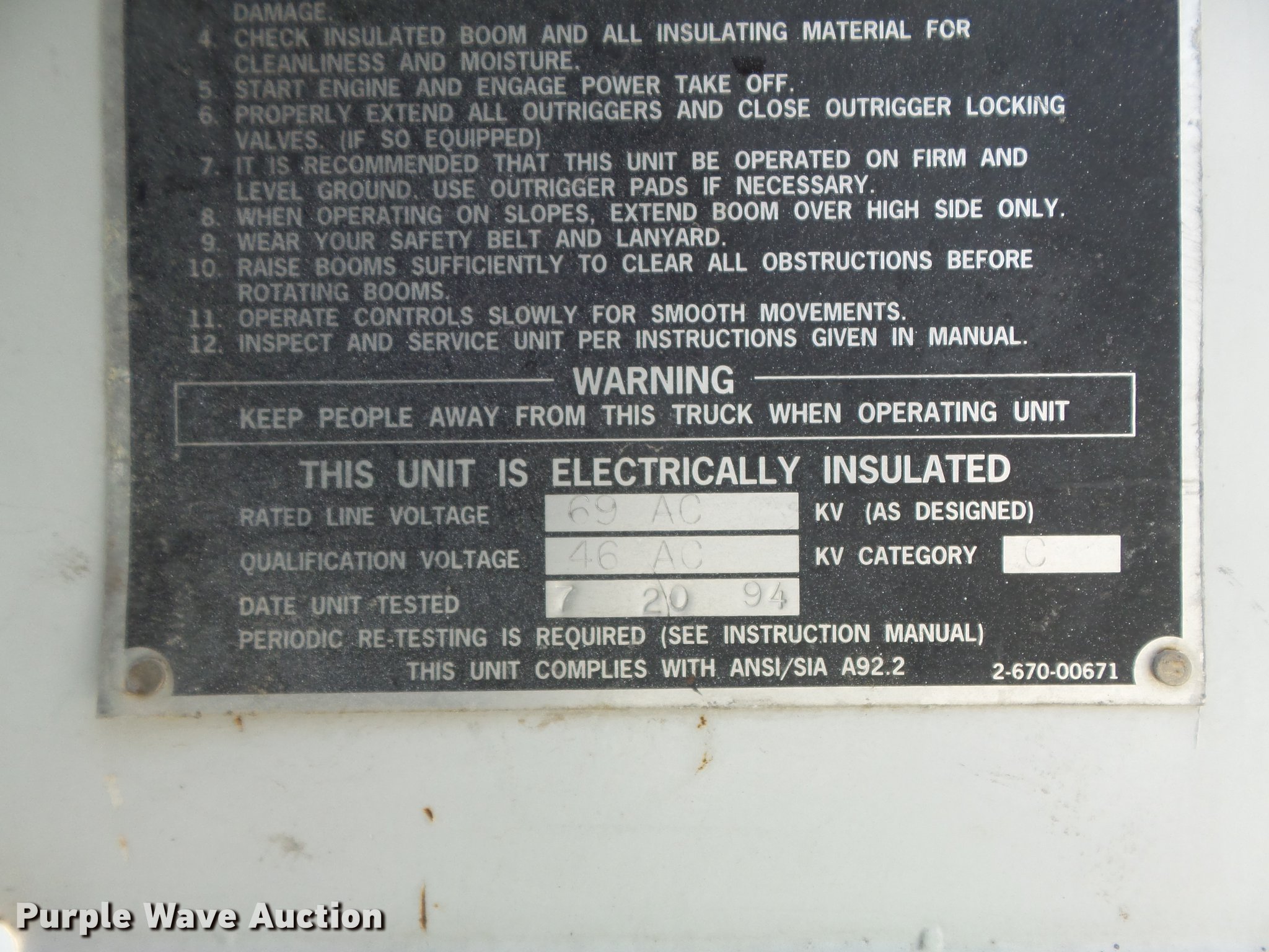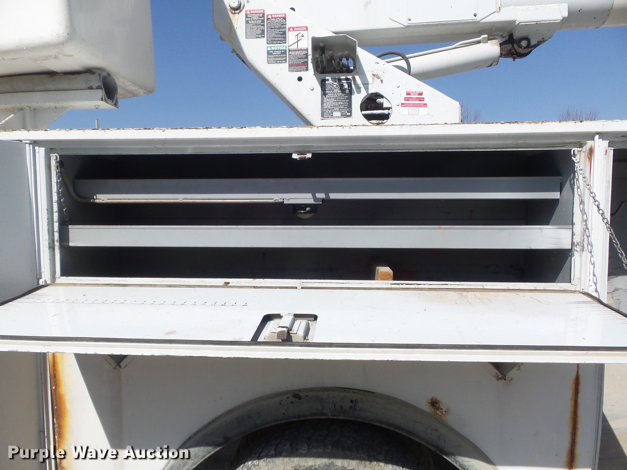 Purple Wave is selling a used Bucket Truck in Missouri. This item is a 1994 Ford F450 Super Duty XL bucket truck with the following: 44,358 miles on odometer, 2,966 hours on meter, 7.3L V8 diesel engine, Automatic transmission, Single axle, AC and heat, AM/FM, Backup alarm, Block heater, Front and rear strobe warning lights, Front tow hooks, PTO, Altec service bed, 12'L, Shelving, Compartment lights, Work lights, 1994 Altec A0300 boom, 300 lbs max lift capacity, Man basket, 36' max lift height, Ground and platform boom controls, Boom rotation, Articulating insulated boom, (2) outriggers, Serial 0294-P1214, Dual fuel tanks, Pintle hitch, Trailer wiring, Spring suspension, Hydraulic brakes, 161" wheelbase, LT235/85R16 tires, GVWR 15,000 lbs