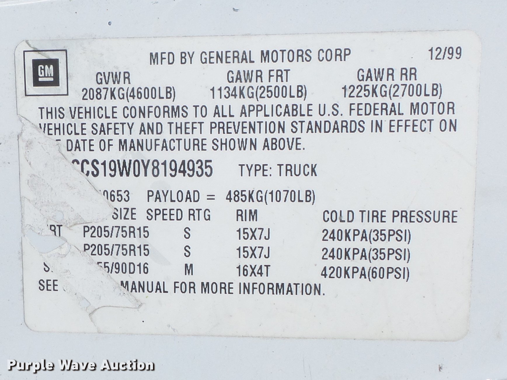 Purple Wave is selling a used Compact Pickup or Van in Missouri. This item is a 2000 Chevrolet S10 LS Ext. Cab pickup truck with the following: 45,414 miles on odometer, 4.3L V6 OHV 12V gas engine, Automatic transmission, AC and heat, AM/FM/CD, Cloth interior, Receiver hitch, Trailer wiring, 205/75R15 tires