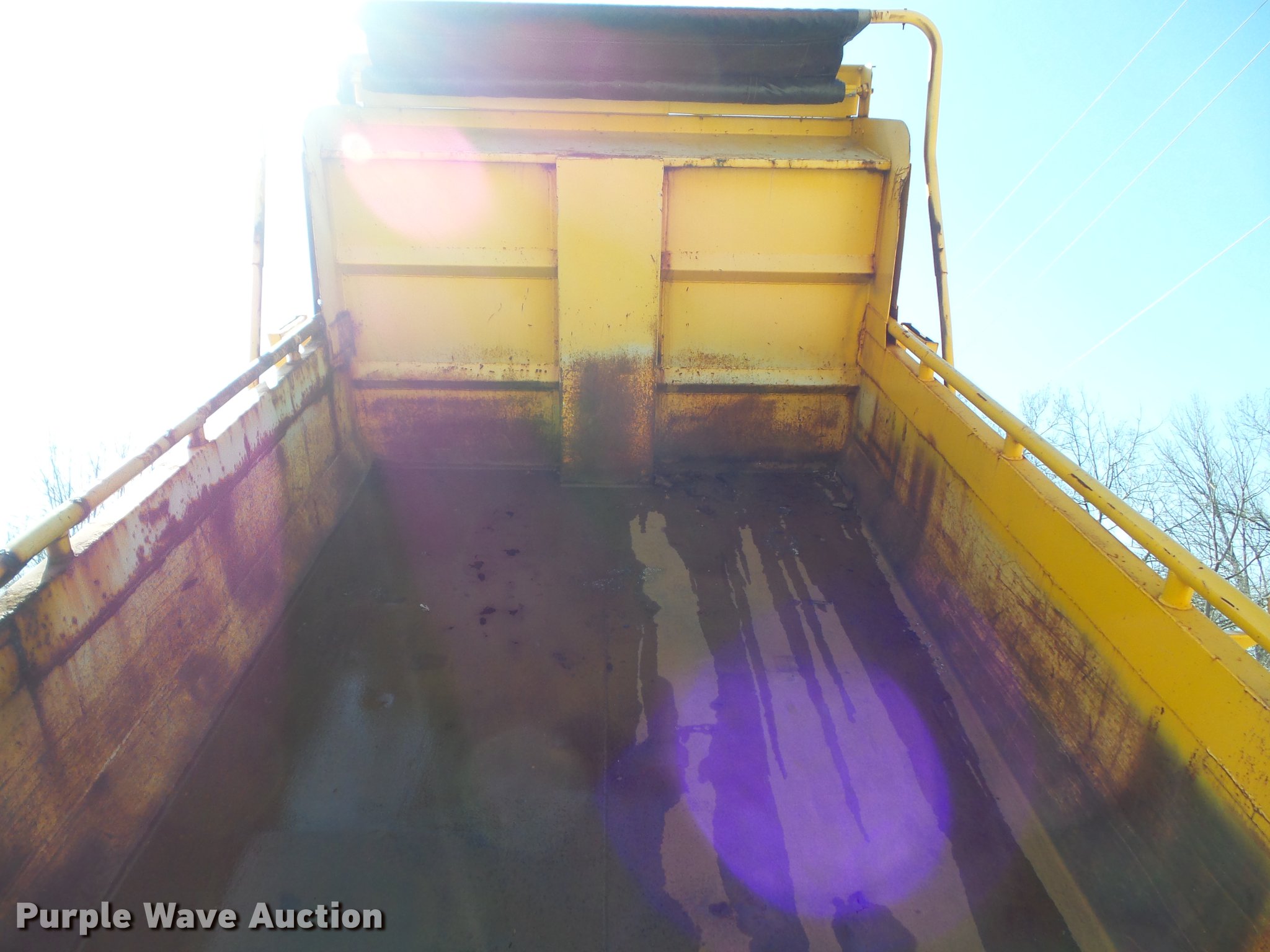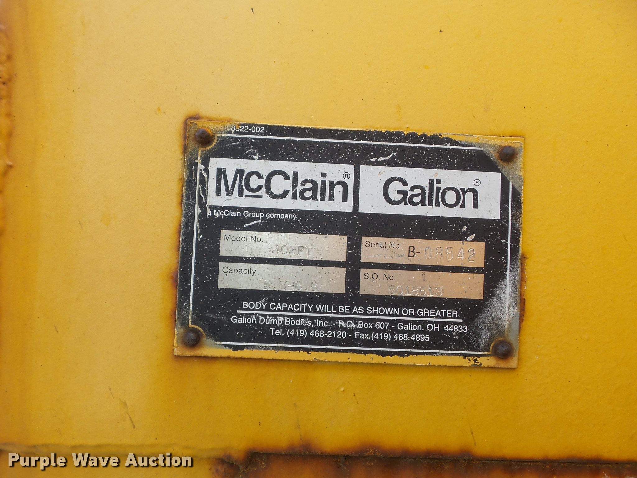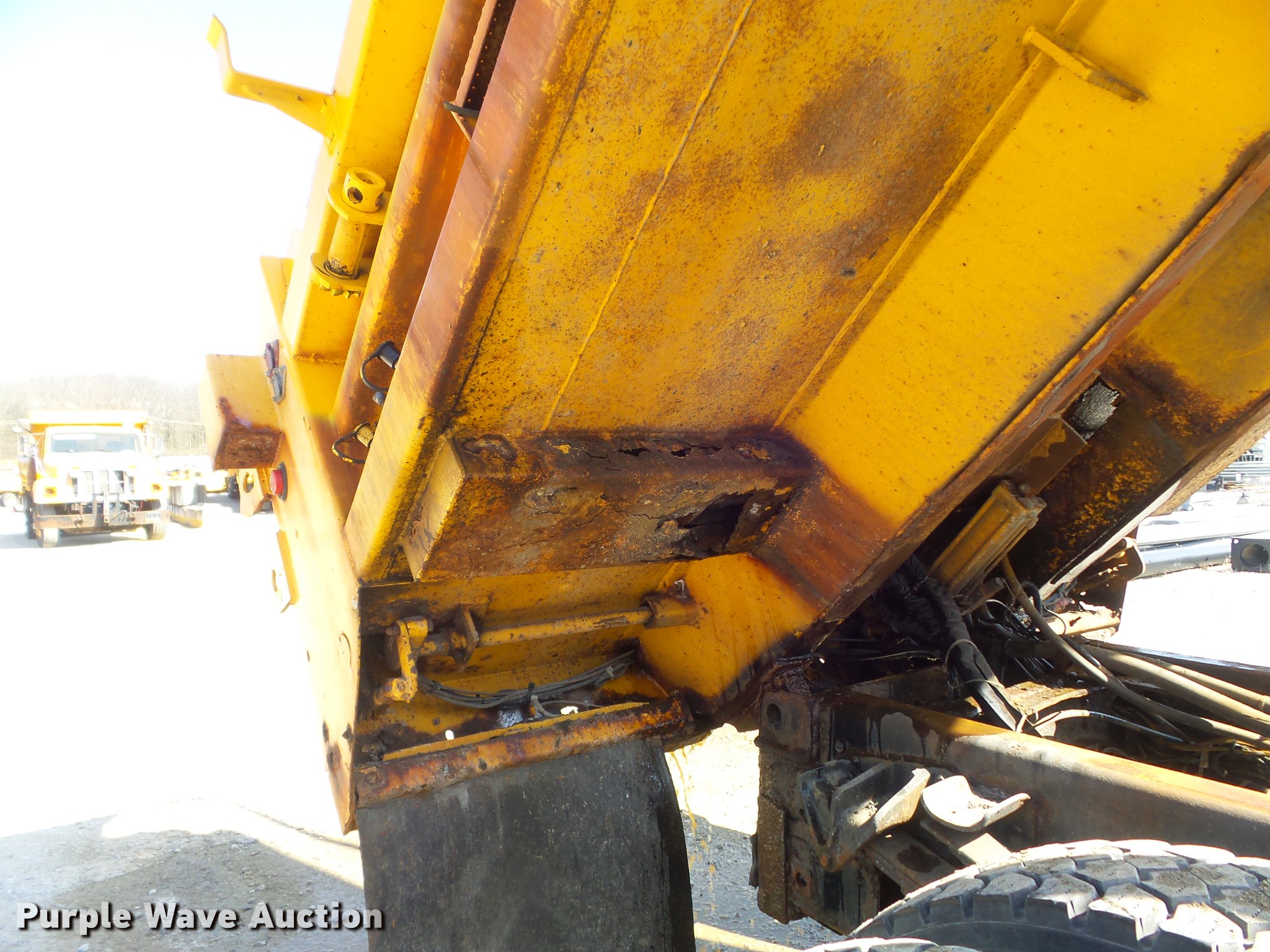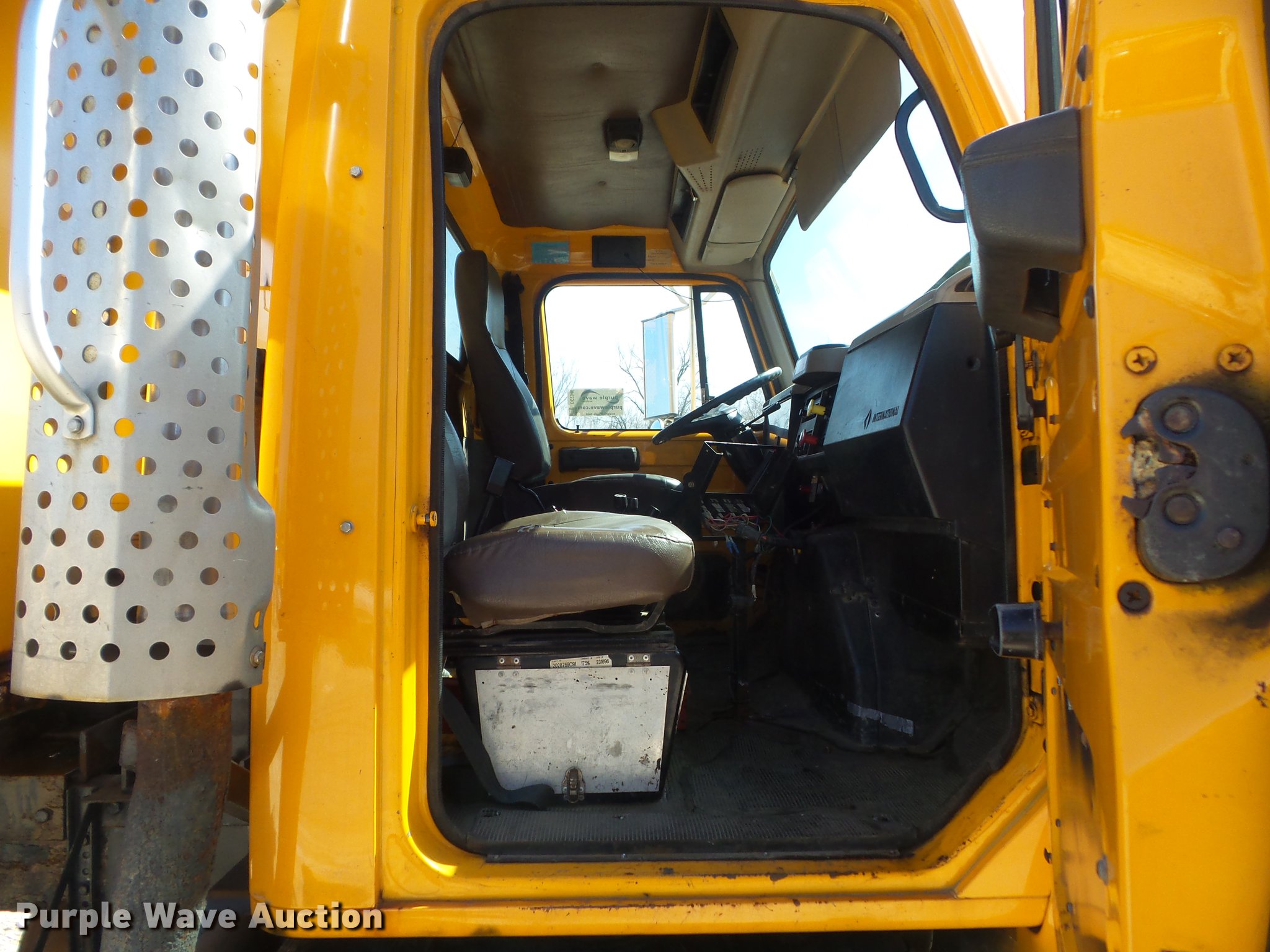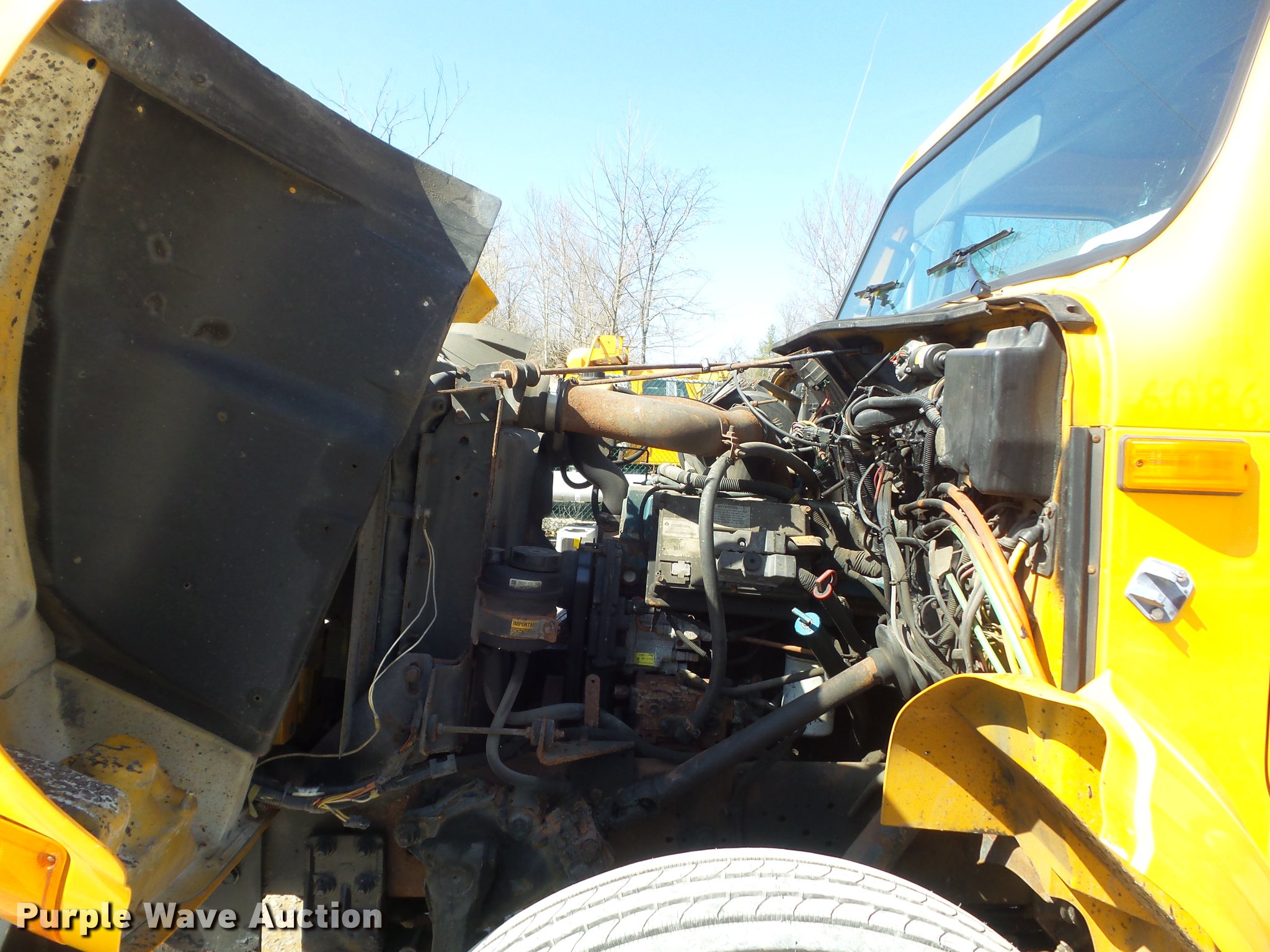Purple Wave is selling a used Construction Dump Truck in Missouri. This item is a 2000 International 4900 dump truck with the following: 142,994 miles on odometer, 14,628 hours on meter, International DT466 7.6L L6 diesel engine, 215 HP, Allison automatic transmission, Heat, Cruise, AM/FM/weatherband, Heated mirrors, Air suspension seat, Front mounted PTO, McClain Galion 402FT steel dump bed, 10'L x 96"W, 24" side height, 5.6 to 6.8 cu.yd. capacity, Single ram hoist, Air operated end gate, Roll tarp, Snow pow bracket, Single fuel tank, Pintle hitch, Trailer wiring, 170" wheelbase, Spring suspension, Air brakes, 11R22.5 tires, GVWR 34,220 lbs, FAWR 13,220 lbs, RAWR 21,000 lbs, MODOT ID 6086