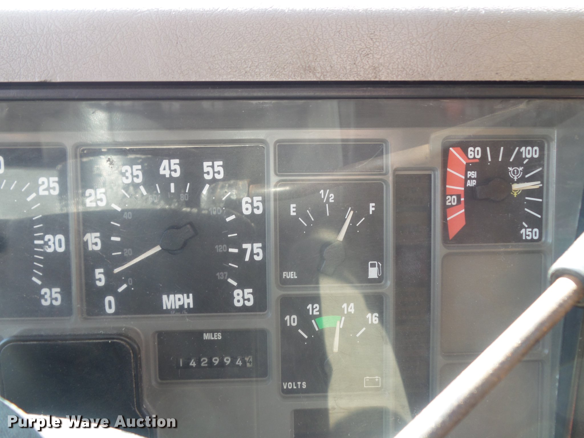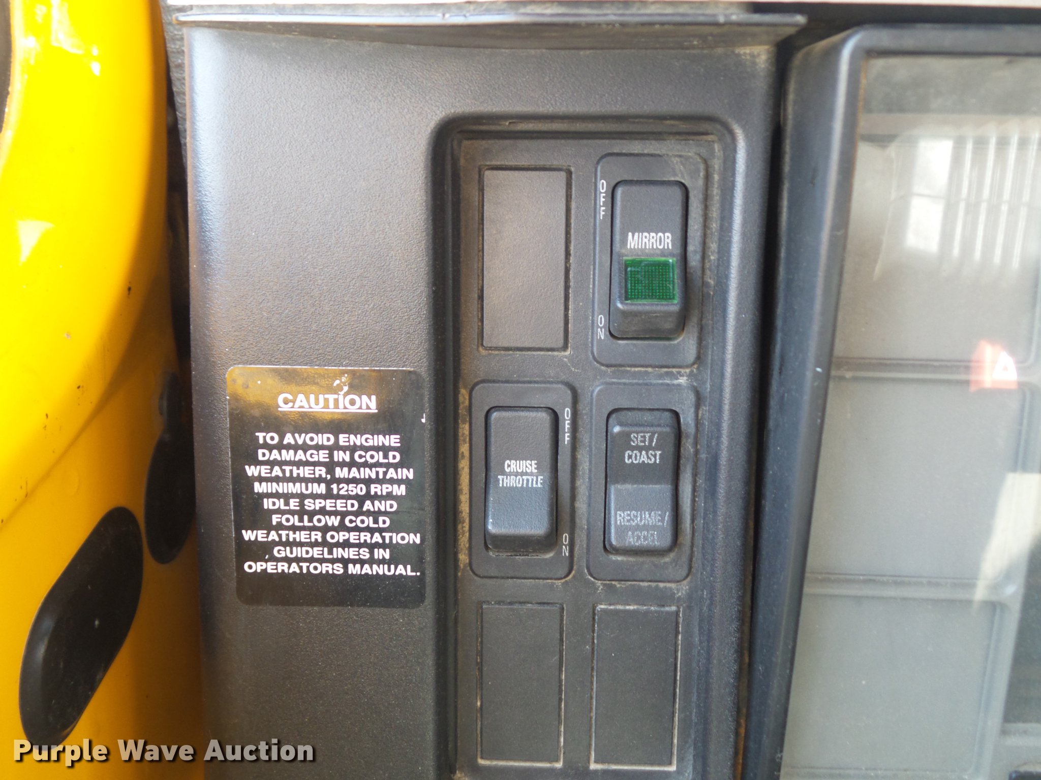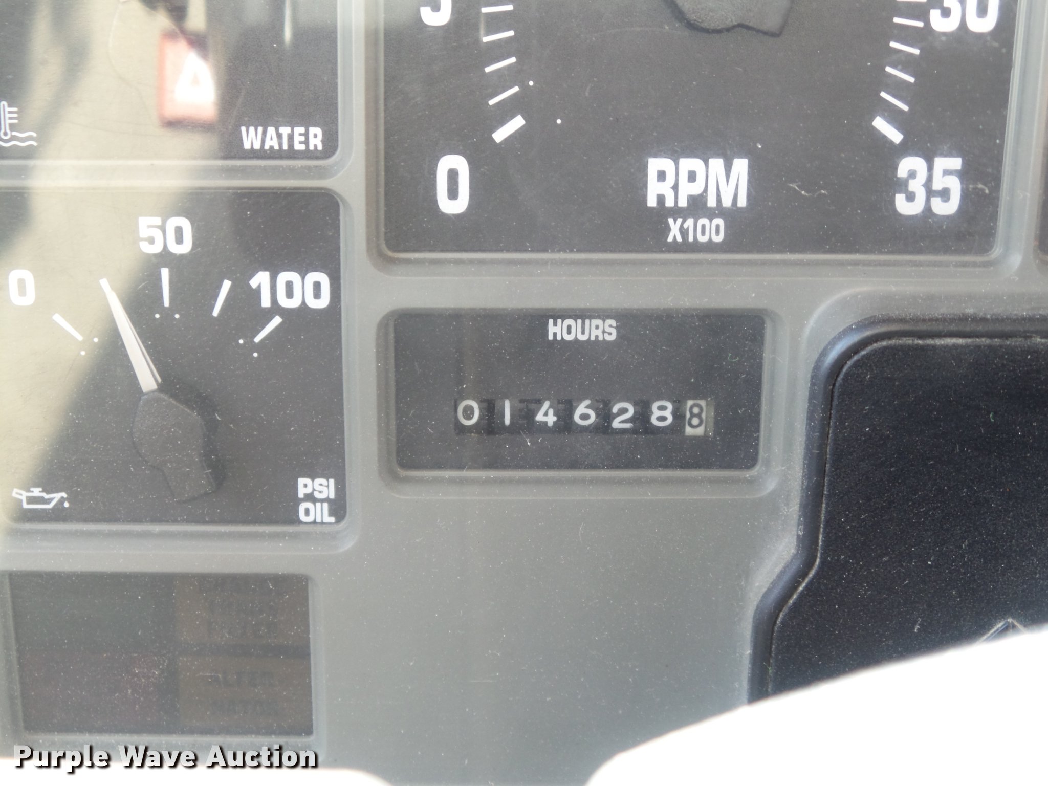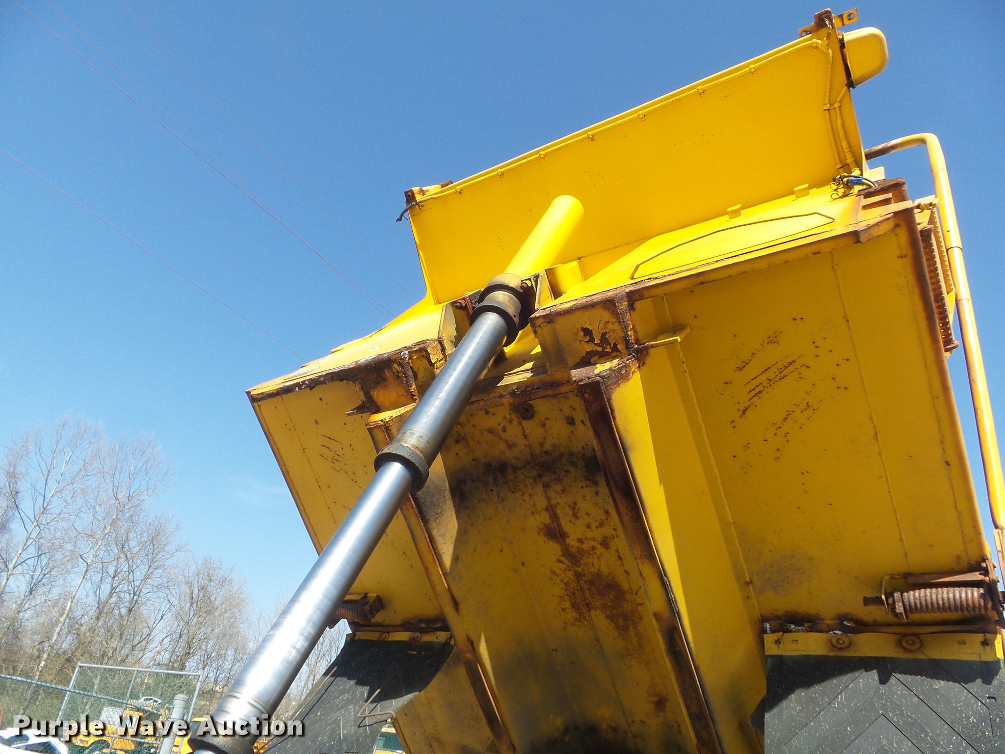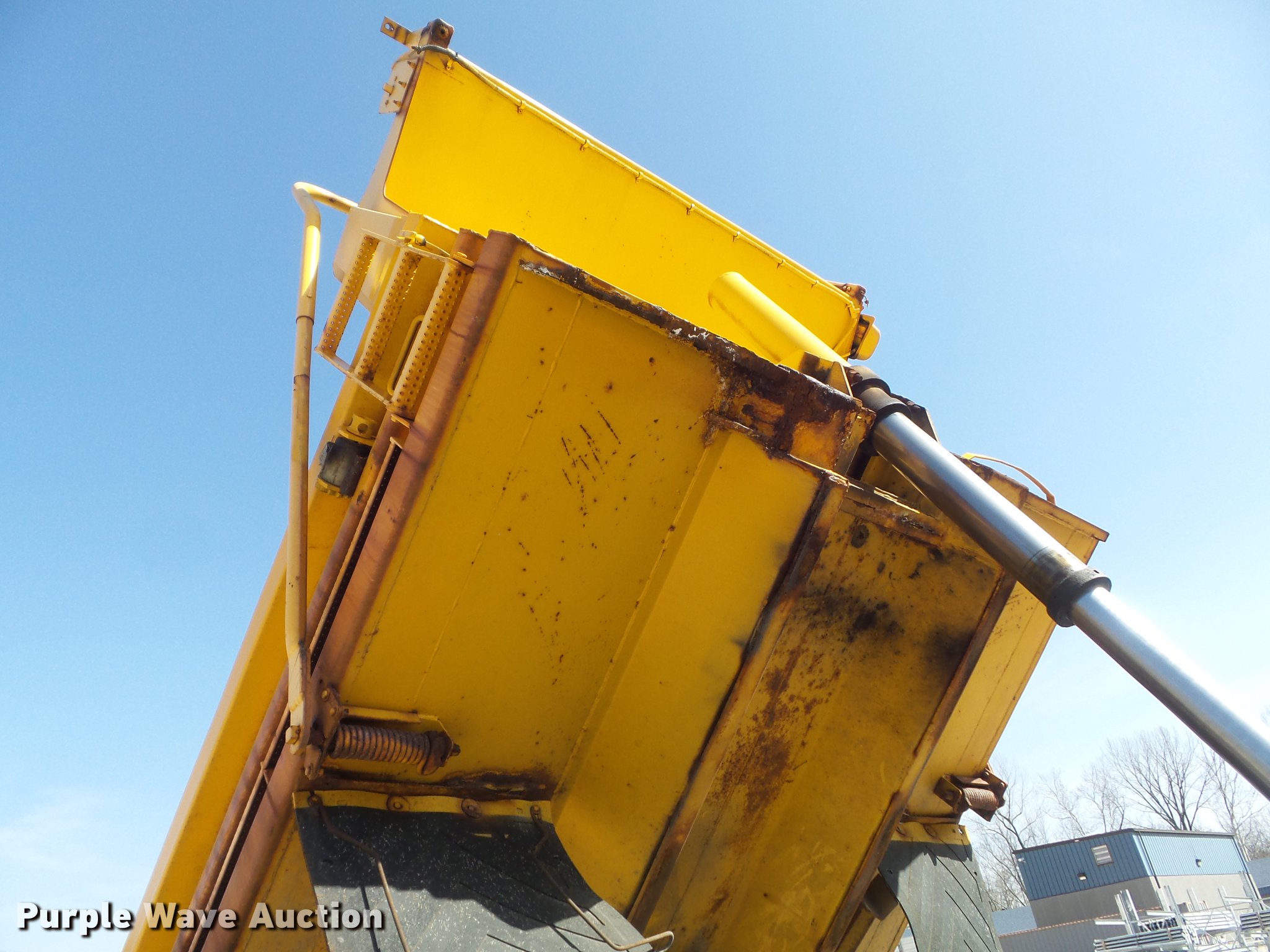 Purple Wave is selling a used Construction Dump Truck in Missouri. This item is a 2000 International 4900 dump truck with the following: 142,994 miles on odometer, 14,628 hours on meter, International DT466 7.6L L6 diesel engine, 215 HP, Allison automatic transmission, Heat, Cruise, AM/FM/weatherband, Heated mirrors, Air suspension seat, Front mounted PTO, McClain Galion 402FT steel dump bed, 10'L x 96"W, 24" side height, 5.6 to 6.8 cu.yd. capacity, Single ram hoist, Air operated end gate, Roll tarp, Snow pow bracket, Single fuel tank, Pintle hitch, Trailer wiring, 170" wheelbase, Spring suspension, Air brakes, 11R22.5 tires, GVWR 34,220 lbs, FAWR 13,220 lbs, RAWR 21,000 lbs, MODOT ID 6086