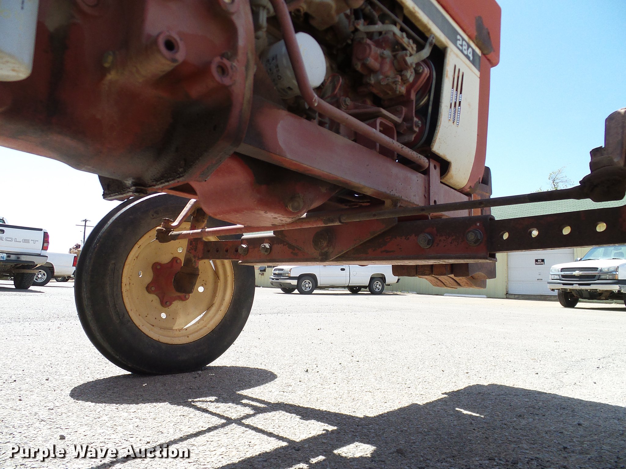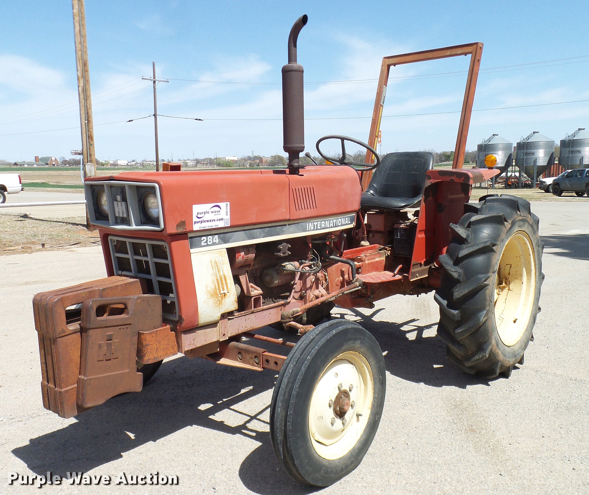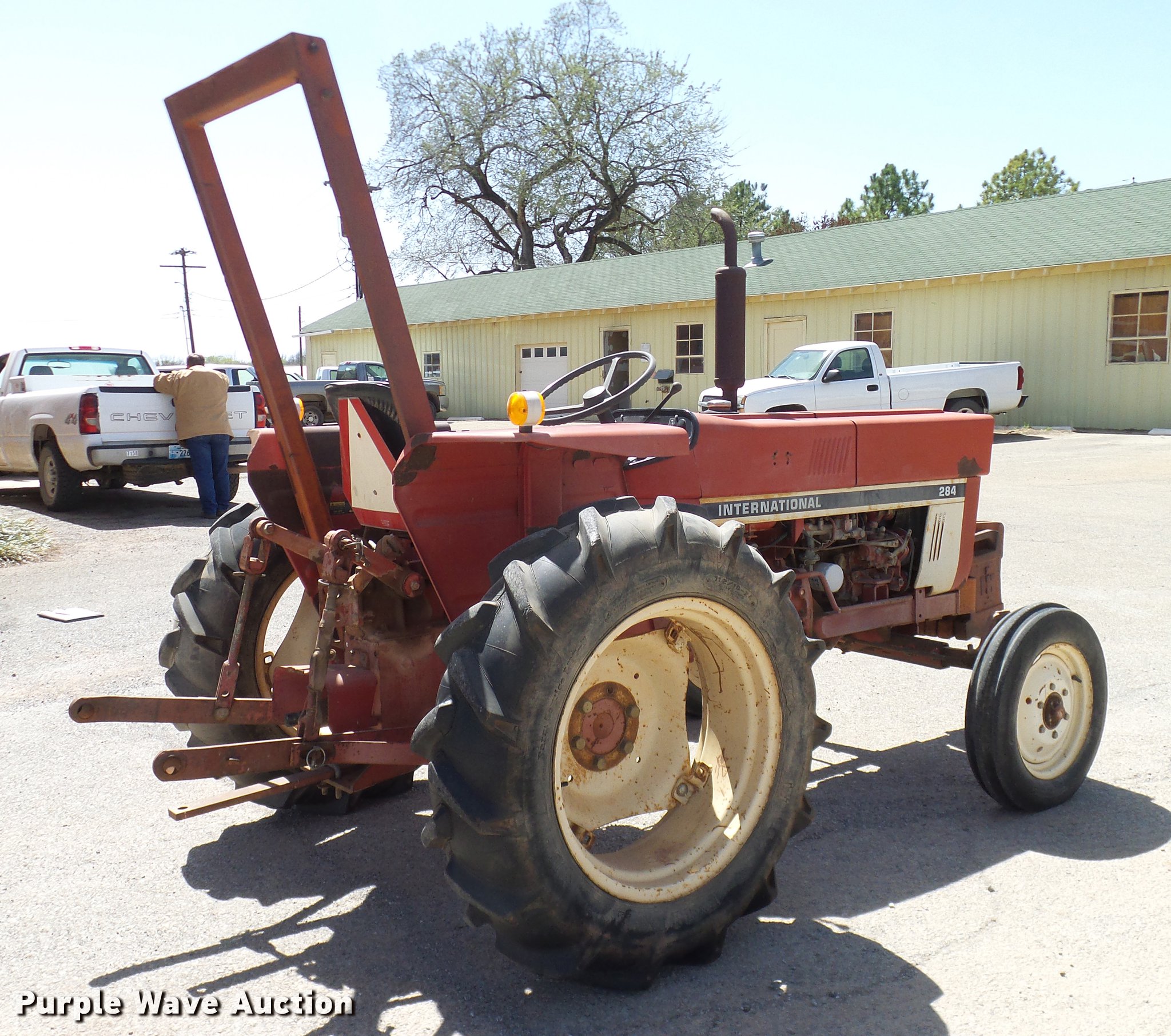 Purple Wave is selling a used Tractor in Oklahoma. This item is a 1981 International 284 tractor with the following: 1,101 hours on meter, Mazda 1.2L four cylinder gas engine, 28 HP, Sliding gear transmission, 8F-2R gears, Suspension seat, Three point, 540 PTO, (5) suitcase weights, 5.00-15 front tires, 11.2/10-24 rear tires, Sale# 1832-KP, Serial 2020001J013059
