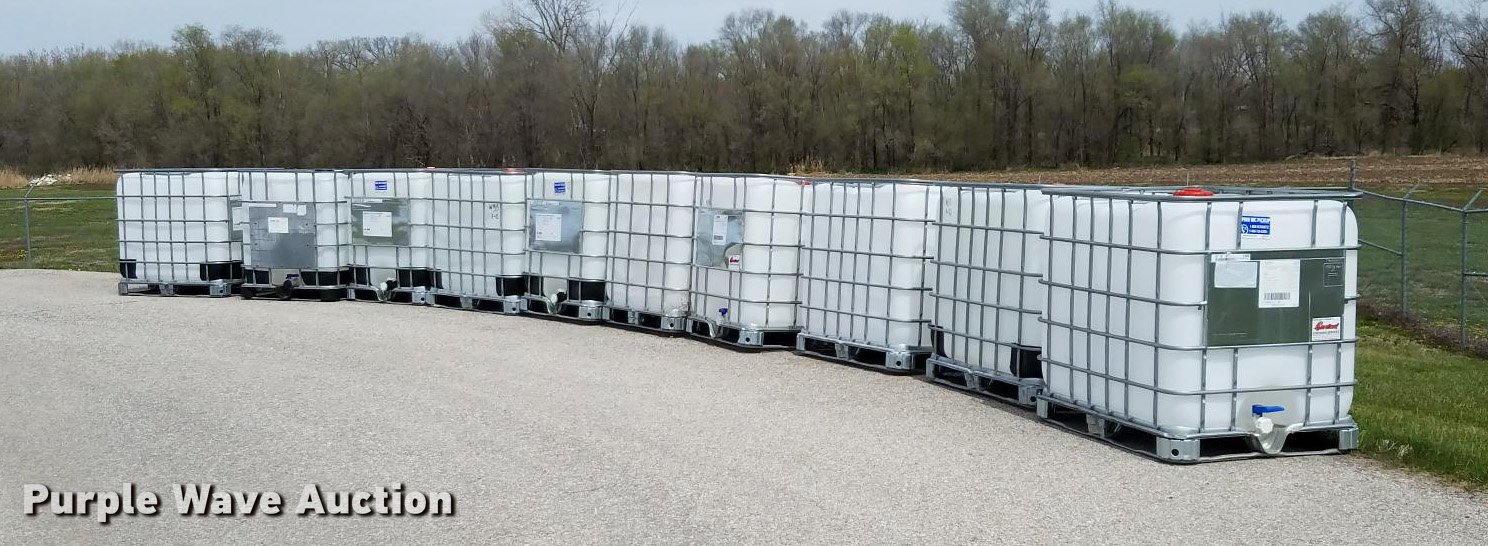 Purple Wave is selling a used Tanks in Kansas. This item is a (10) 250 gallon totes with the following: Totes have not been cleaned