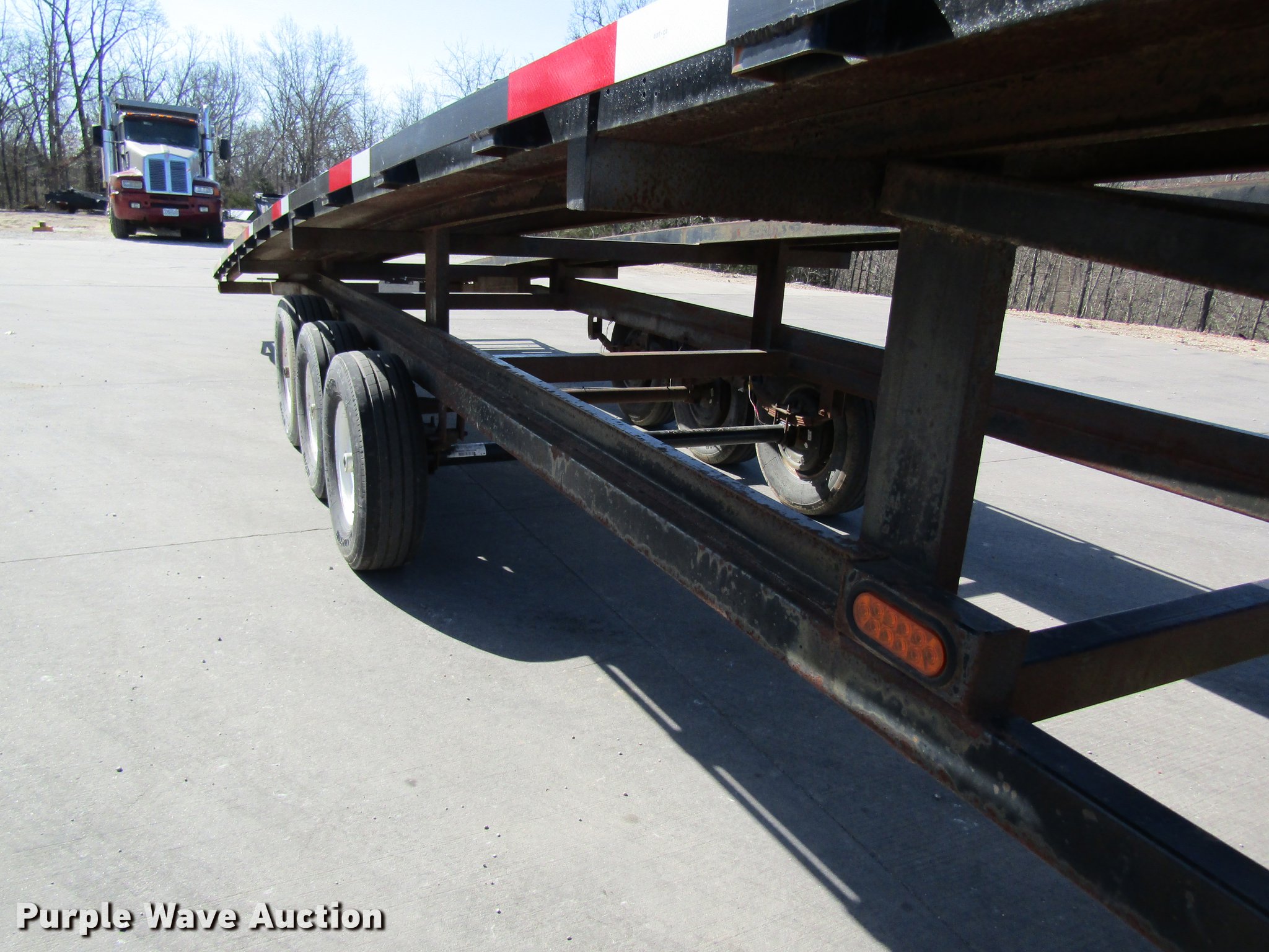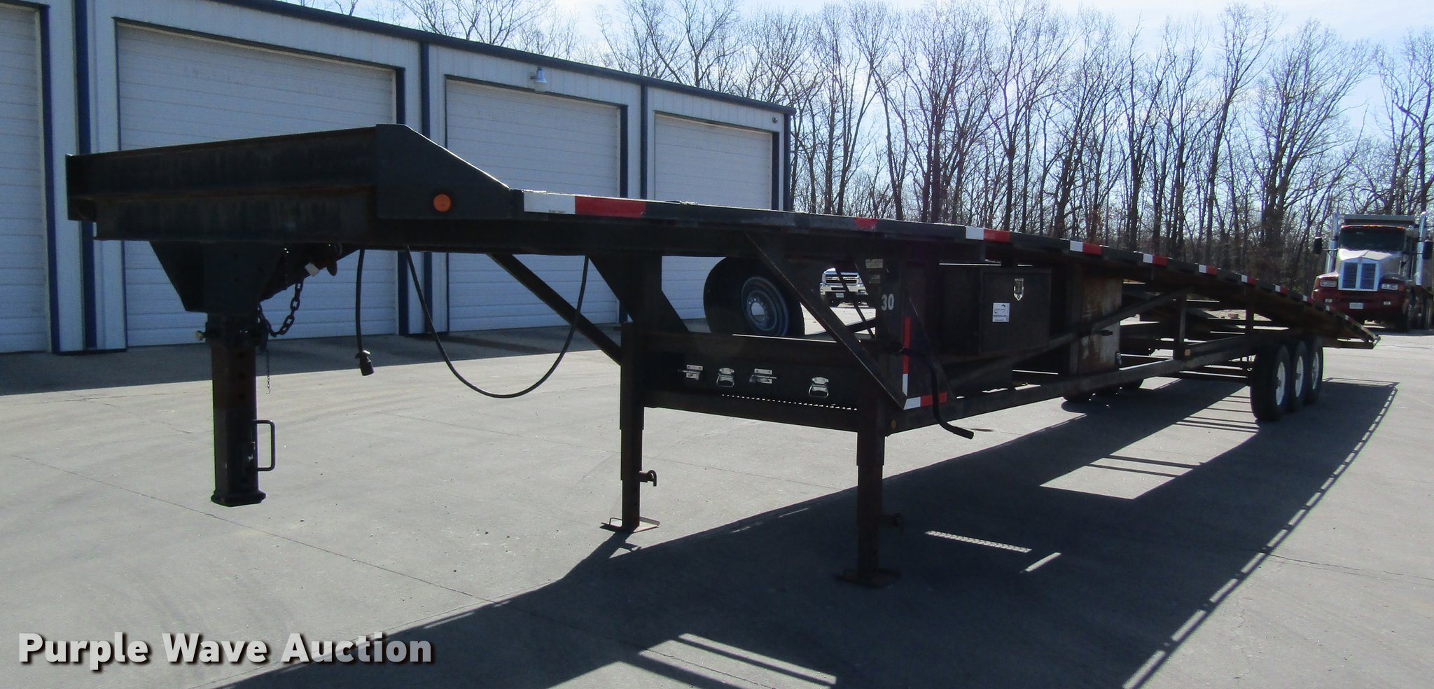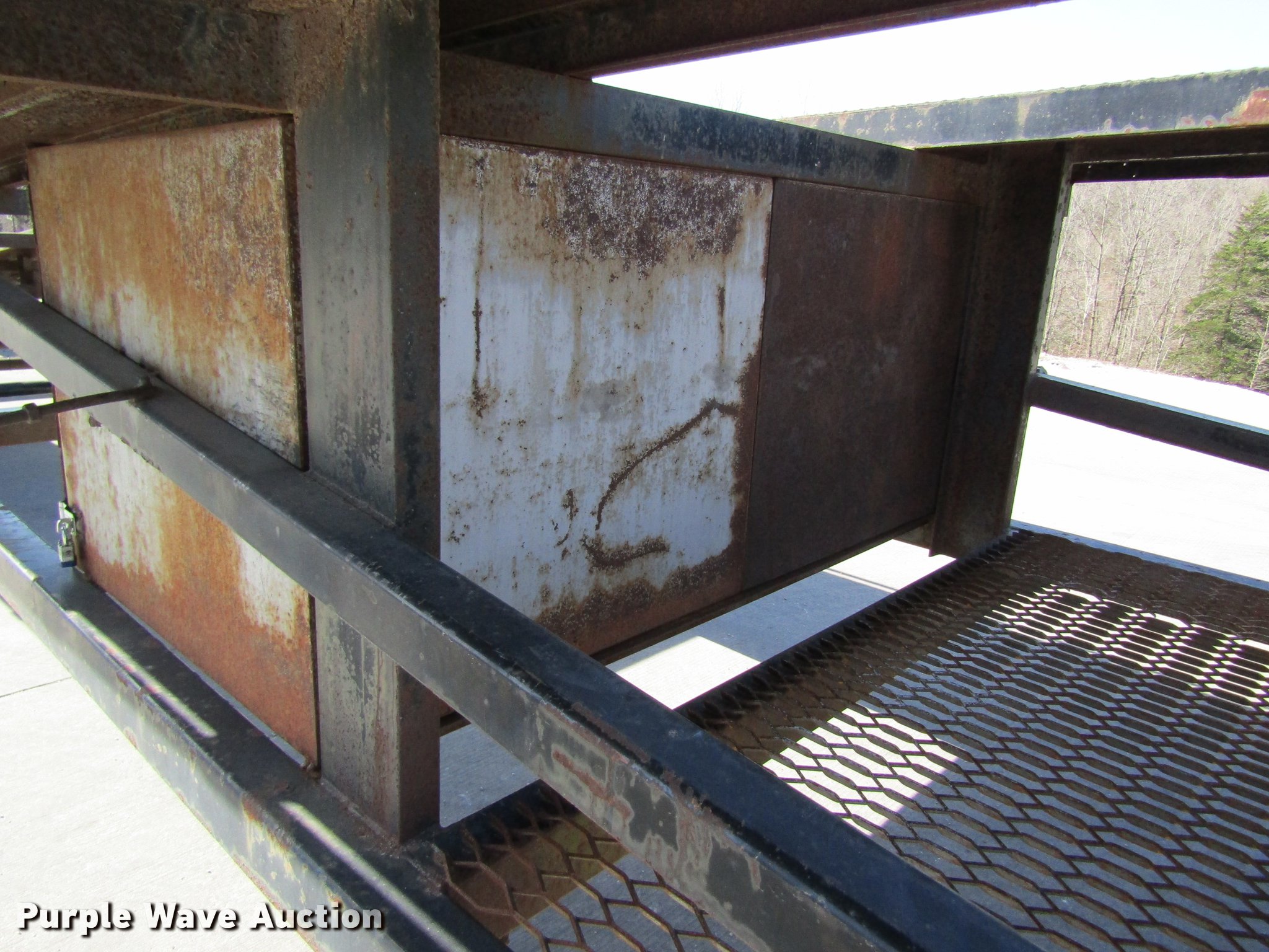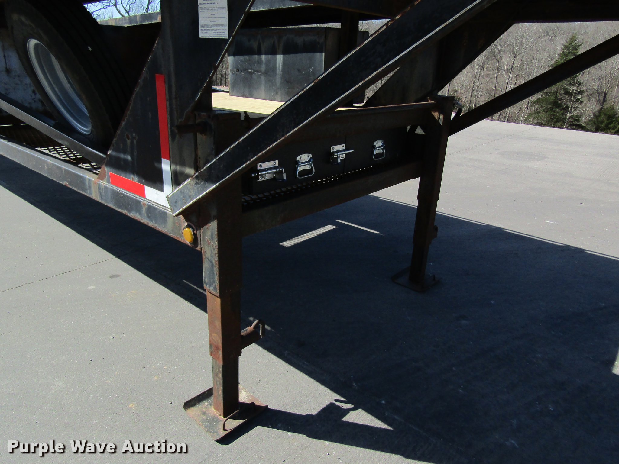Purple Wave is selling a used Car Carrier in Missouri. This item is a 2002 Kaufman car carrier trailer with the following: 50'L x 8'W, 30"L dovetail, Steel deck, Stake pockets, Gooseneck ball, Dual leg landing gear, Spring suspension, Electric brakes, Triple axle, Steel wheels, 235/85R16 tires, GVWR 148,000 lbs
