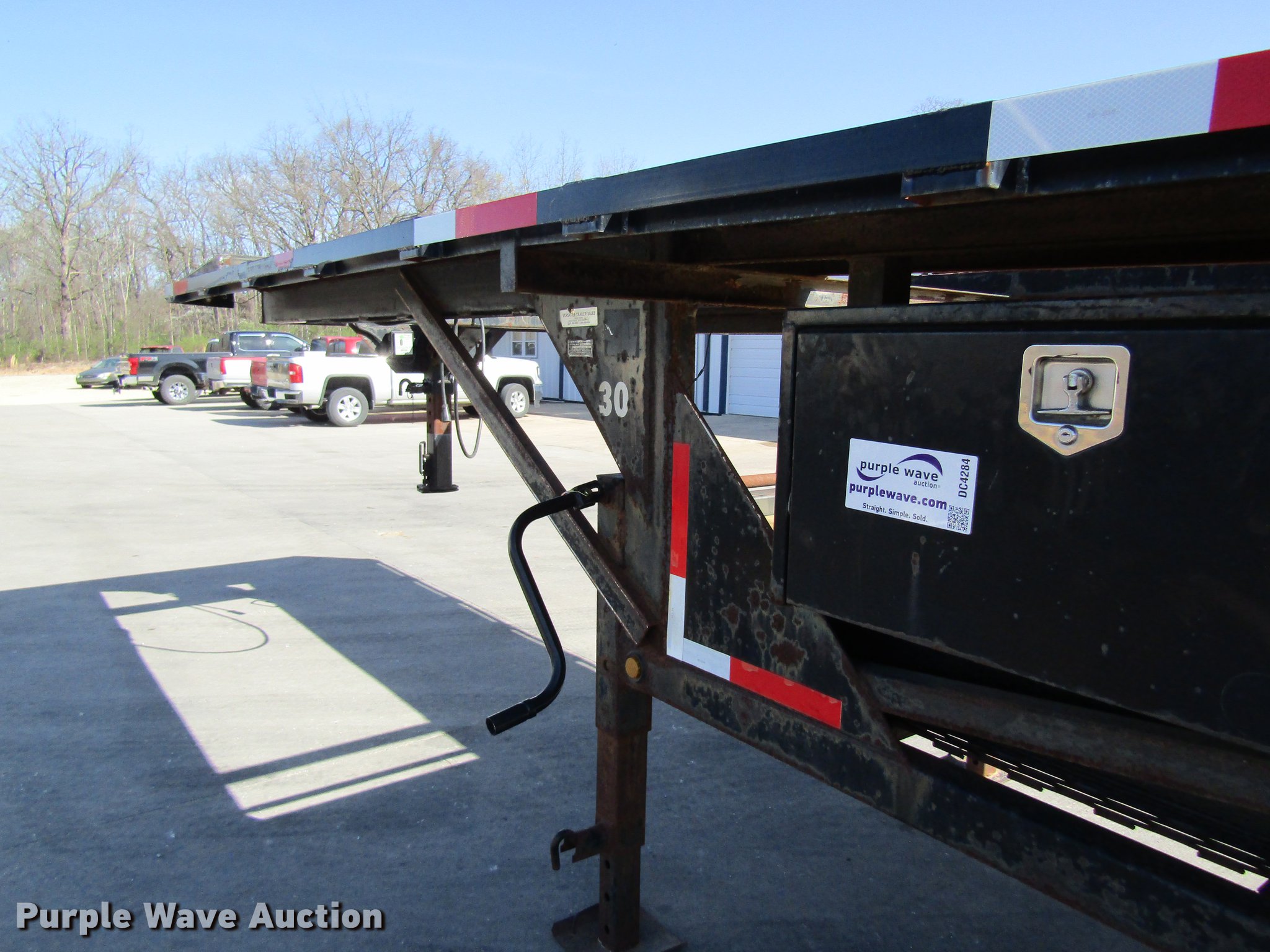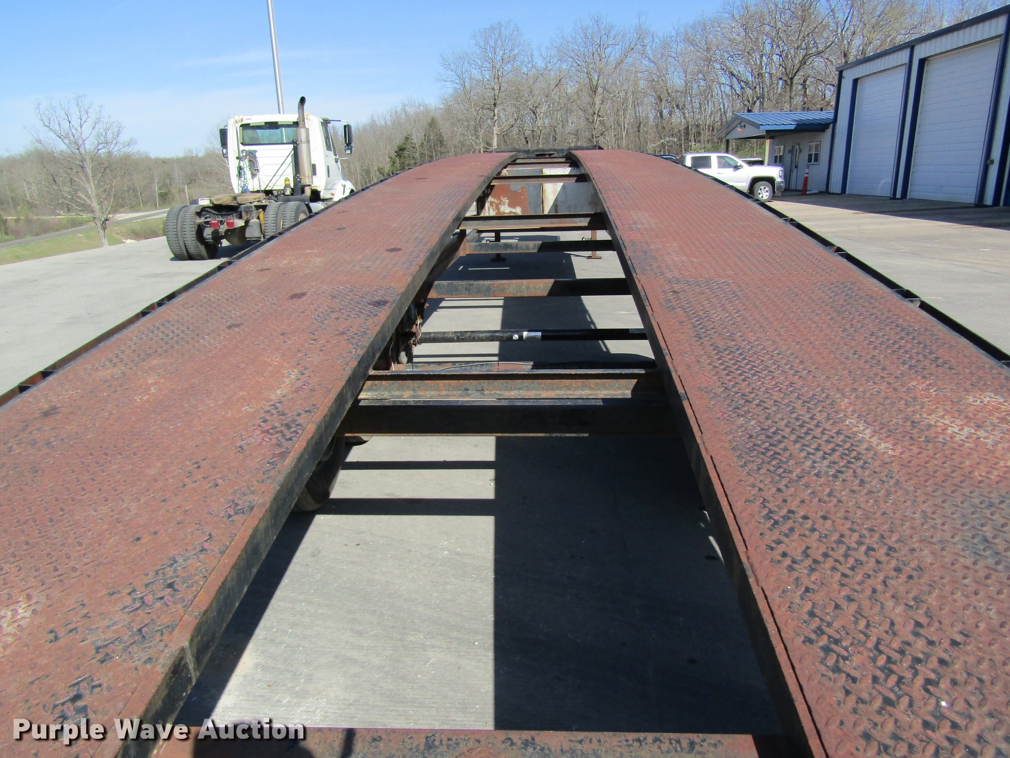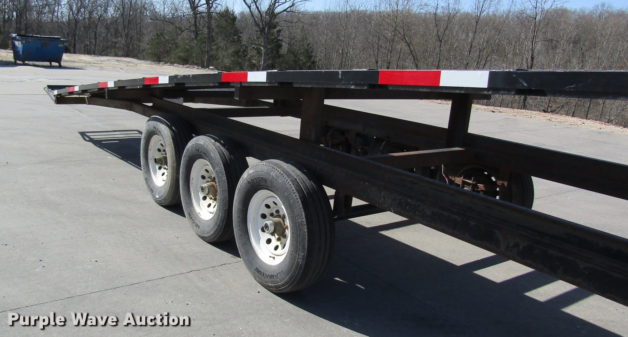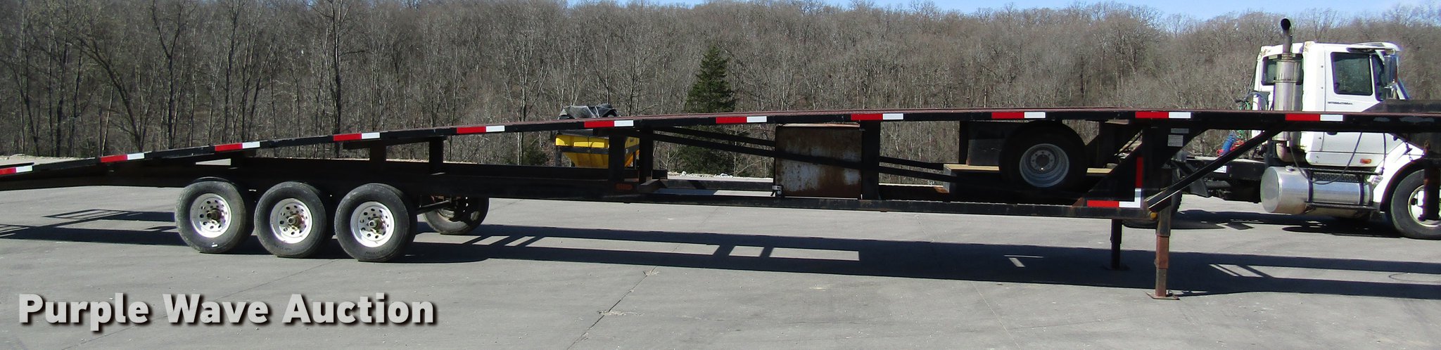 Purple Wave is selling a used Car Carrier in Missouri. This item is a 2002 Kaufman car carrier trailer with the following: 50'L x 8'W, 30"L dovetail, Steel deck, Stake pockets, Gooseneck ball, Dual leg landing gear, Spring suspension, Electric brakes, Triple axle, Steel wheels, 235/85R16 tires, GVWR 148,000 lbs