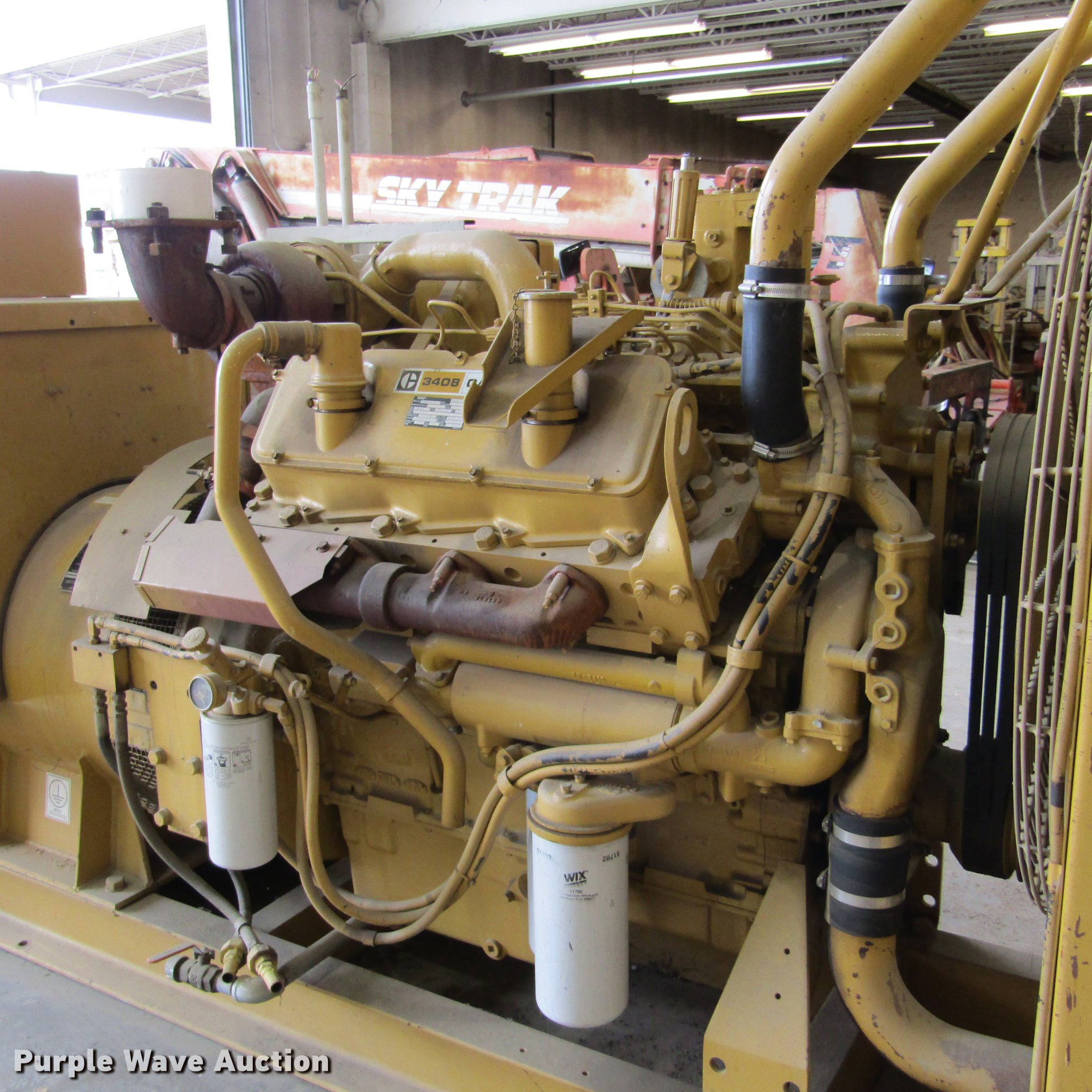 Caterpillar SR4 generator. 12 hours on meter, 128"L x 50"W x 72", Caterpillar 3408 eight cylinder turbo diesel engine 538 HP, Serial 78Z01572, Arrangement no. 2W4981, Caterpillar SR4 generator Control panel, Electric start, 350 kVA, 401 kW, Three phase, Fuel tank, Skid mounted, Arrange no. 5N8664, Serial 6CA00608. Williams Brothers Construction. 512 E Town Hall Rd. Germantown Hills, IL 61548