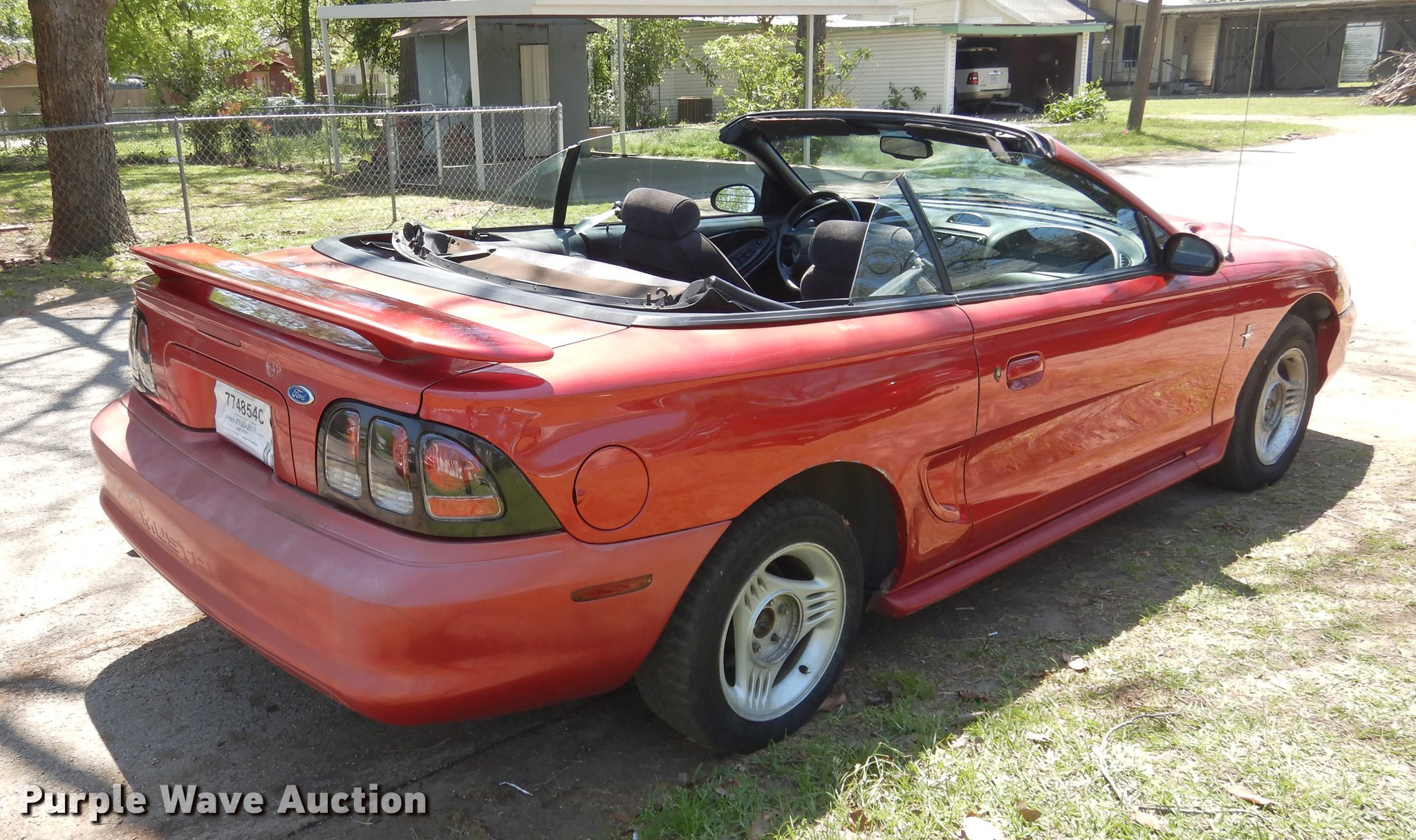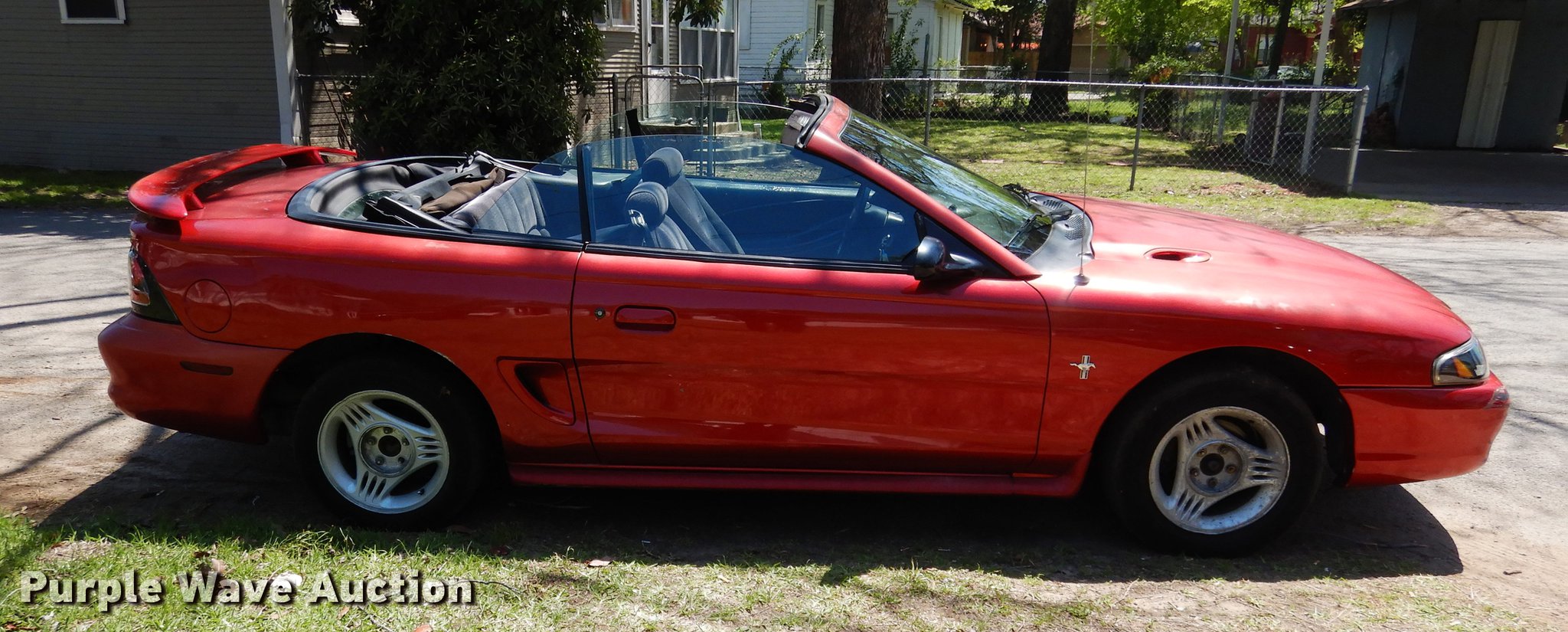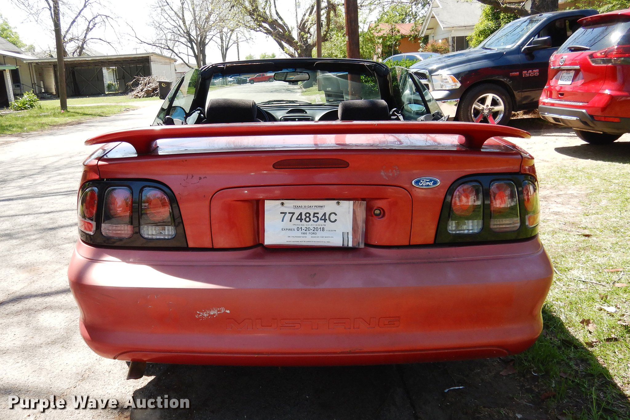 Purple Wave is selling a used Passenger Vehicle in Texas. This item is a 1995 Ford Mustang convertible with the following: 148,909 miles on odometer, 3.8L V6 OHV 12V gas engine, Automatic transmission, AC and heat, Non-operational AC, Tilt, Cruise, Power windows, locks, mirrors, and seat, Cloth interior, 205/65R15 tires, Passenger side rear window inoperable