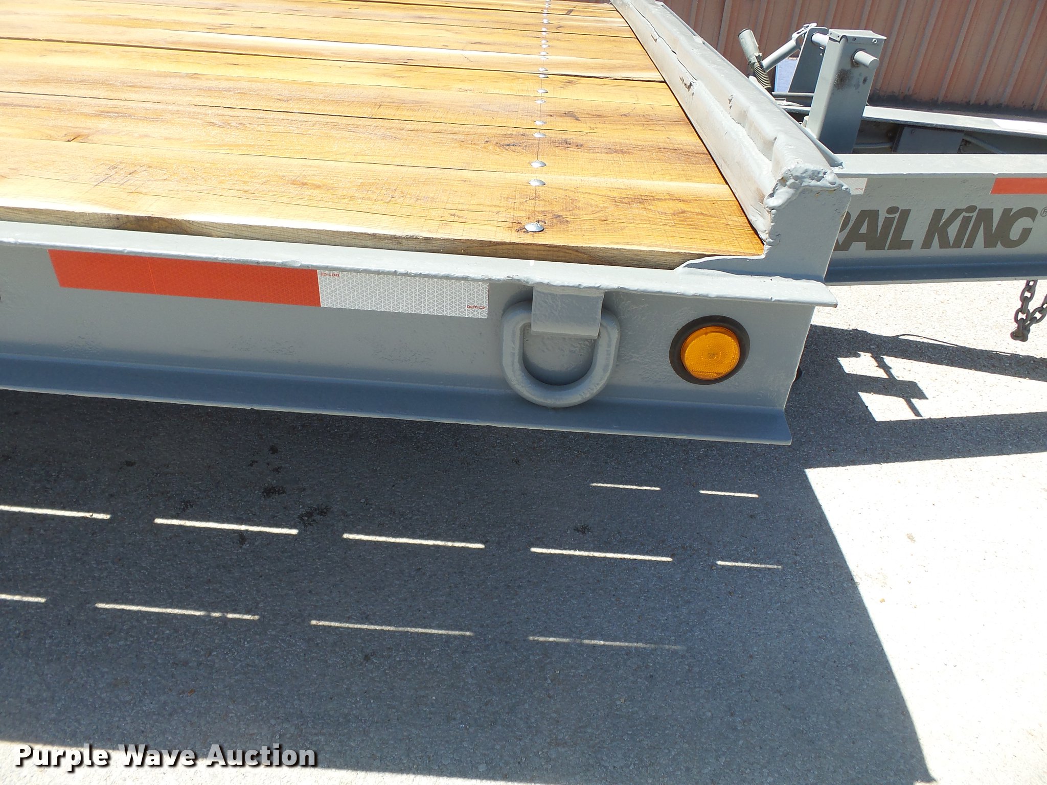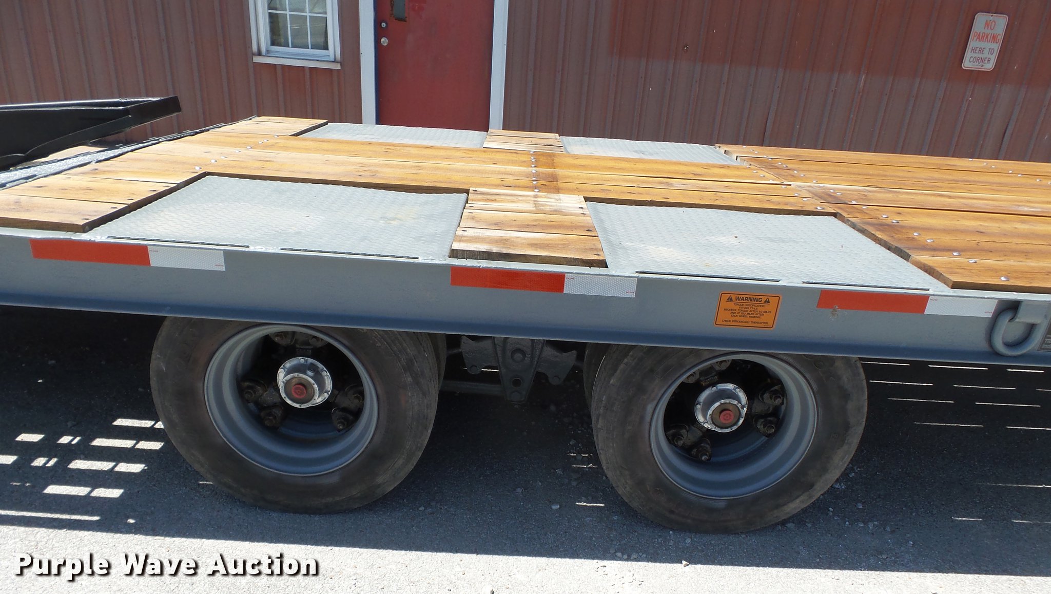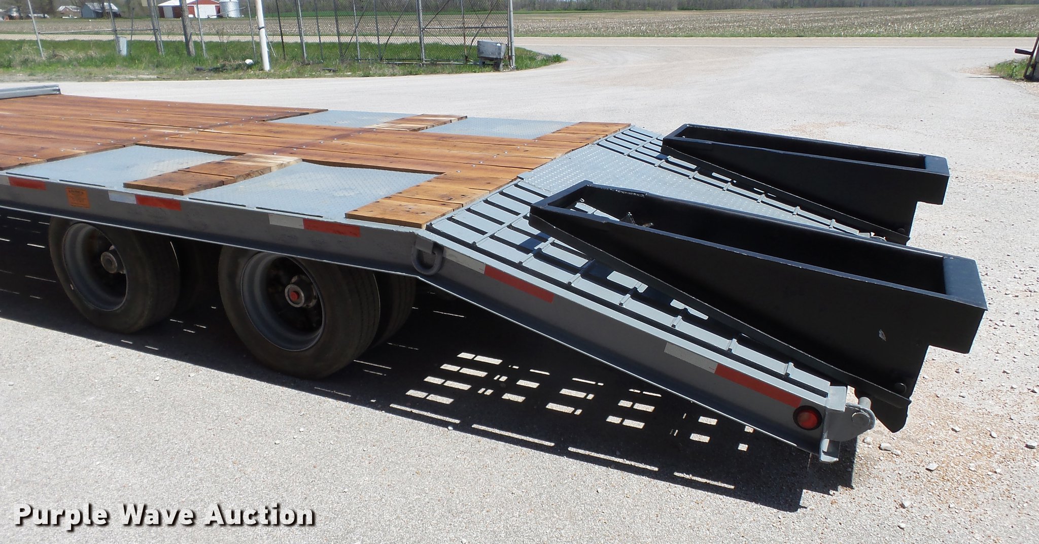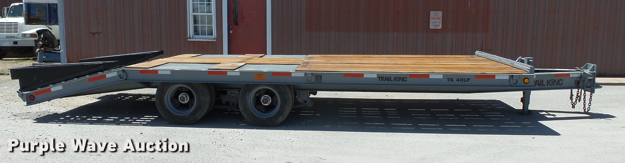Purple Wave is selling a used Equip. Trailer in Illinois. This item is a 1995 Trail King TK40LP equipment trailer with the following: 29' overall length, 24'L x 102"W wood deck, 33" floor height, 5'L dovetail, 4'L ramps, D-ring tie downs, Recessed toolbox, Pintle hitch, Single leg landing gear, Tandem axle, Spring suspension, Air brakes, Steel wheels, 215/75R17.5 tires, GVWR 47,960 lbs