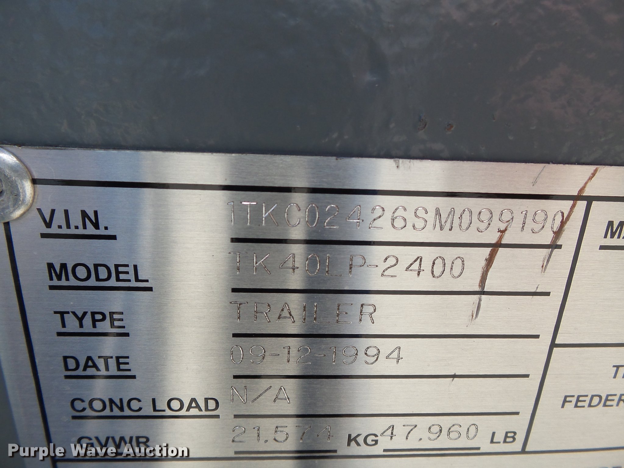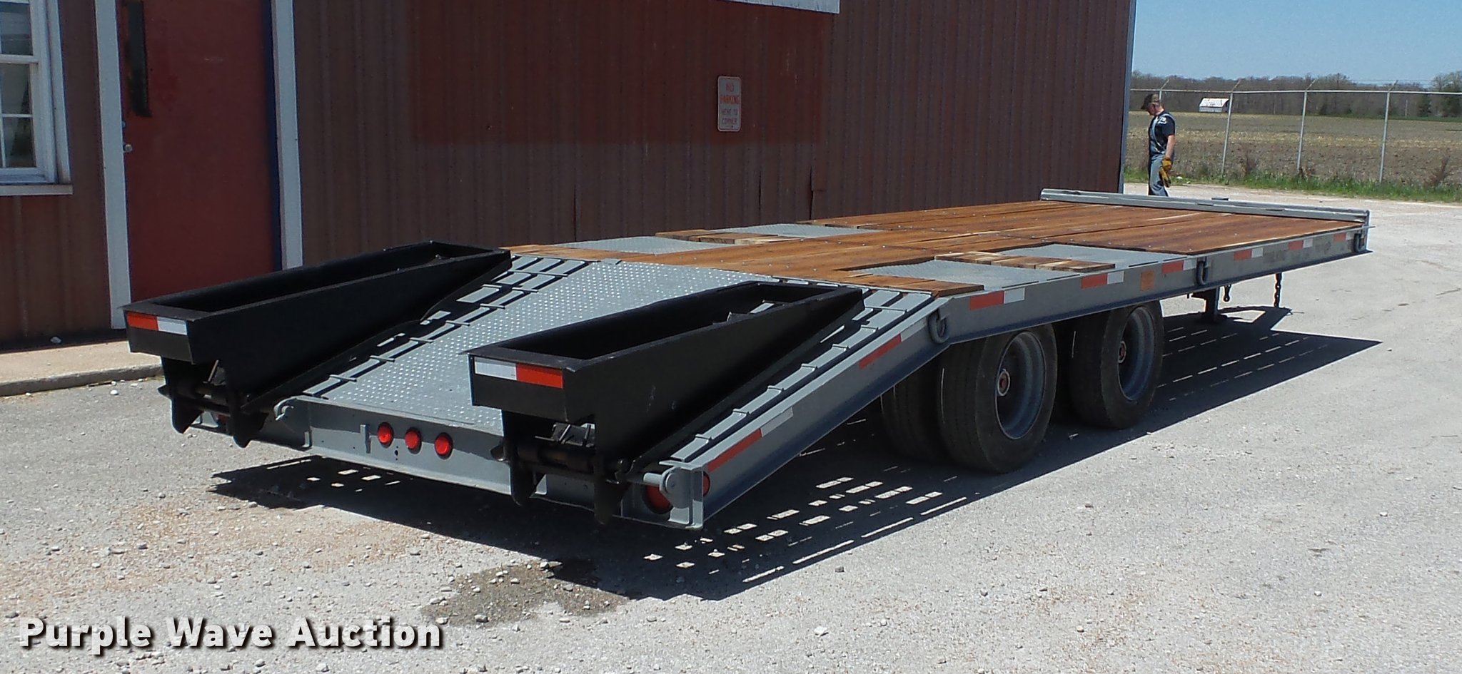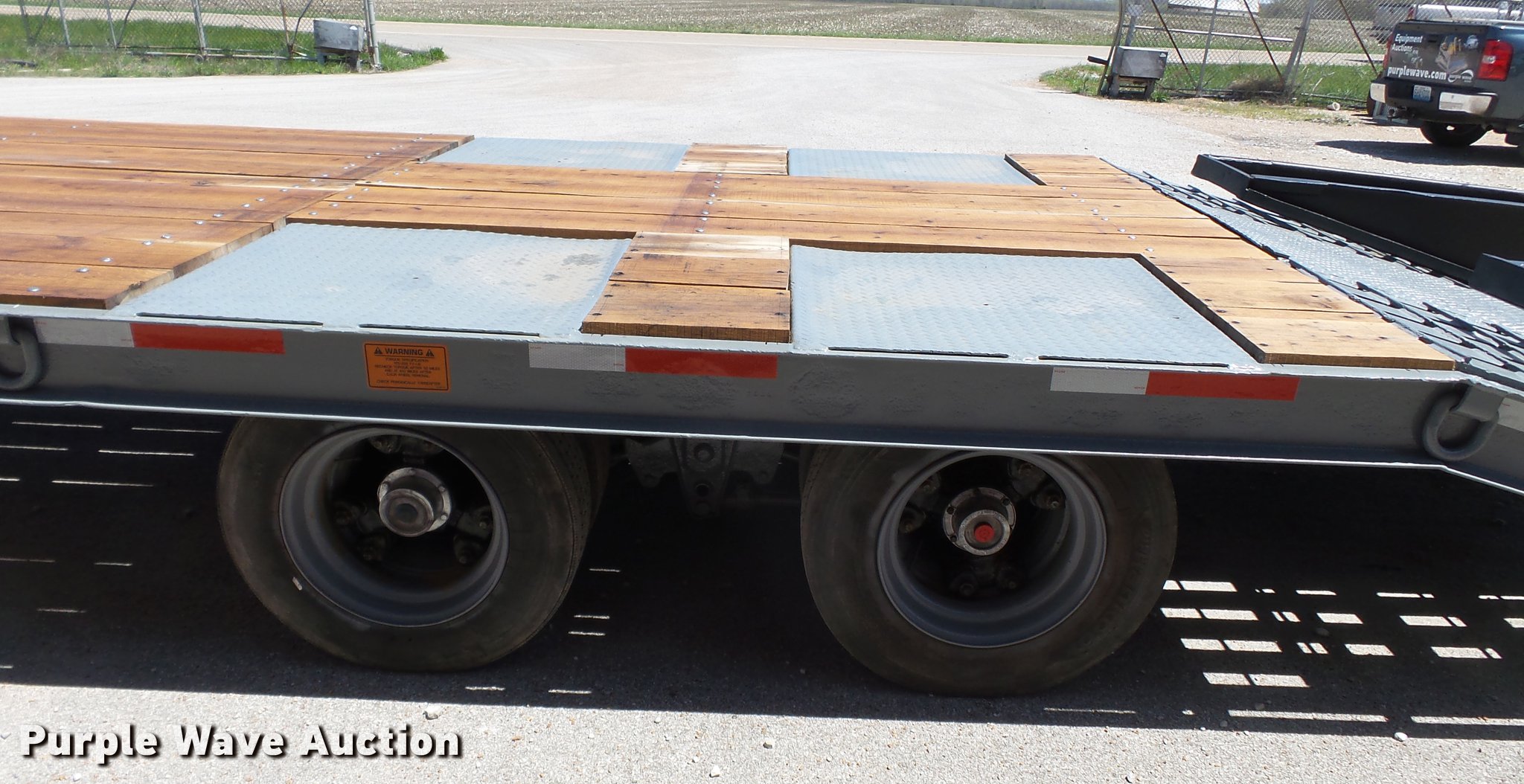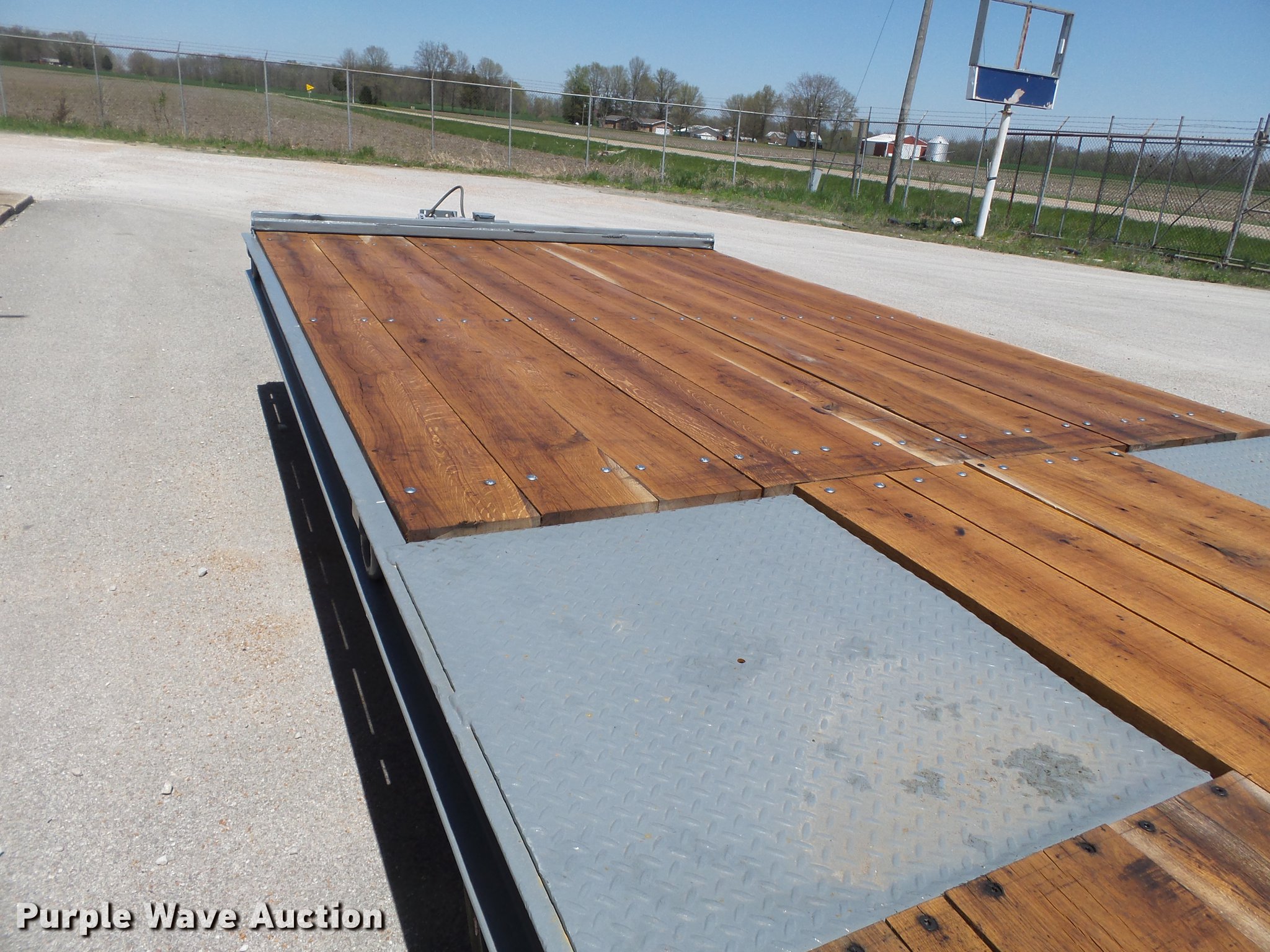 Purple Wave is selling a used Equip. Trailer in Illinois. This item is a 1995 Trail King TK40LP equipment trailer with the following: 29' overall length, 24'L x 102"W wood deck, 33" floor height, 5'L dovetail, 4'L ramps, D-ring tie downs, Recessed toolbox, Pintle hitch, Single leg landing gear, Tandem axle, Spring suspension, Air brakes, Steel wheels, 215/75R17.5 tires, GVWR 47,960 lbs