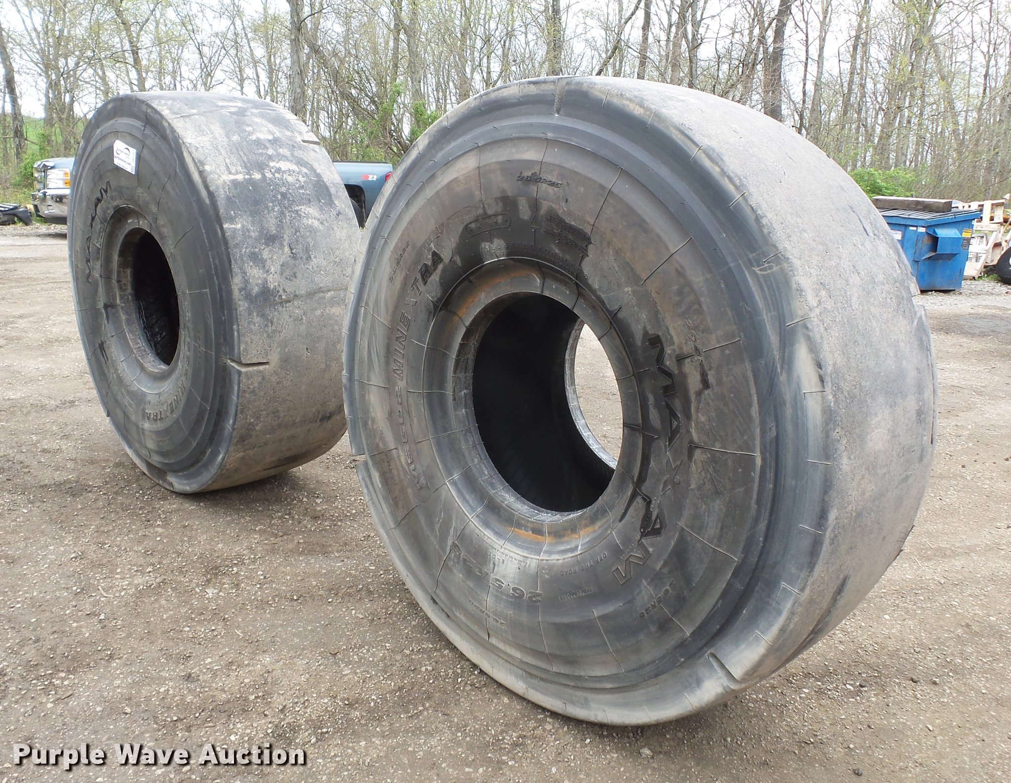 Purple Wave is selling a used Fleet Tires in Missouri. This item is a (2) Maxam Mine Xtra tires with the following: 26.5R25, 115/32nd tread depth, Serial 271412201K, 272012201K