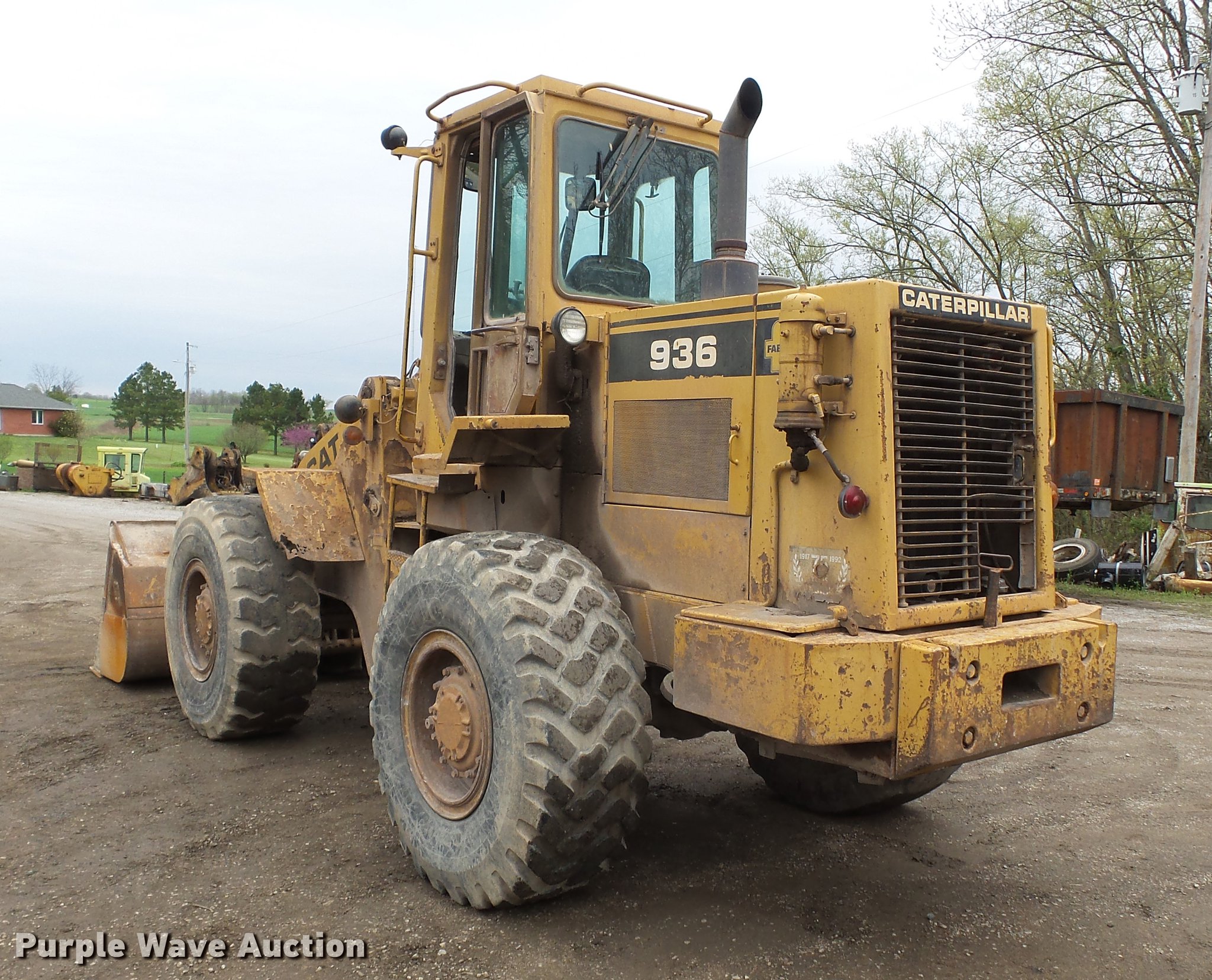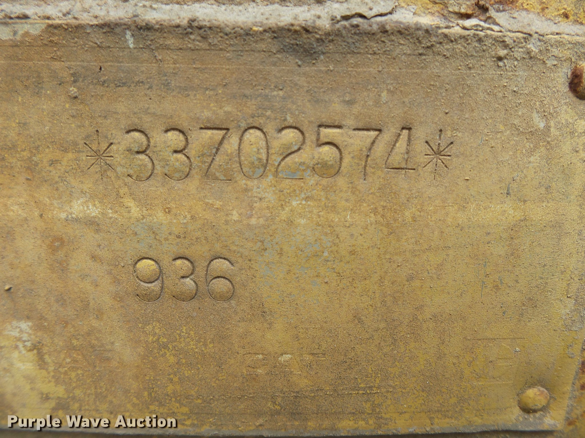 Purple Wave is selling a used Wheel Loader in Missouri. This item is a 1987 Caterpillar 936E wheel loader with the following: 30,453 hours on meter, Caterpillar 3304DJTA four cylinder turbo diesel engine, Powershift transmission, 4F-4R gears, Differential lock, Enclosed cab, AC and heat, Tilt steering wheel, Suspension seat, Two-lever bucket controls, Wipers, Front and rear work lights, Backup alarm, Balderson 105"W general purpose bucket, Bolt-on cutting edge, Hydraulic quick coupler, Counterweights, 20.5R25 tires, Engine replaced in 12/2016, Transmission and torque converter replaced 12/2014, Non-operational quick coupler, Serial 33702574