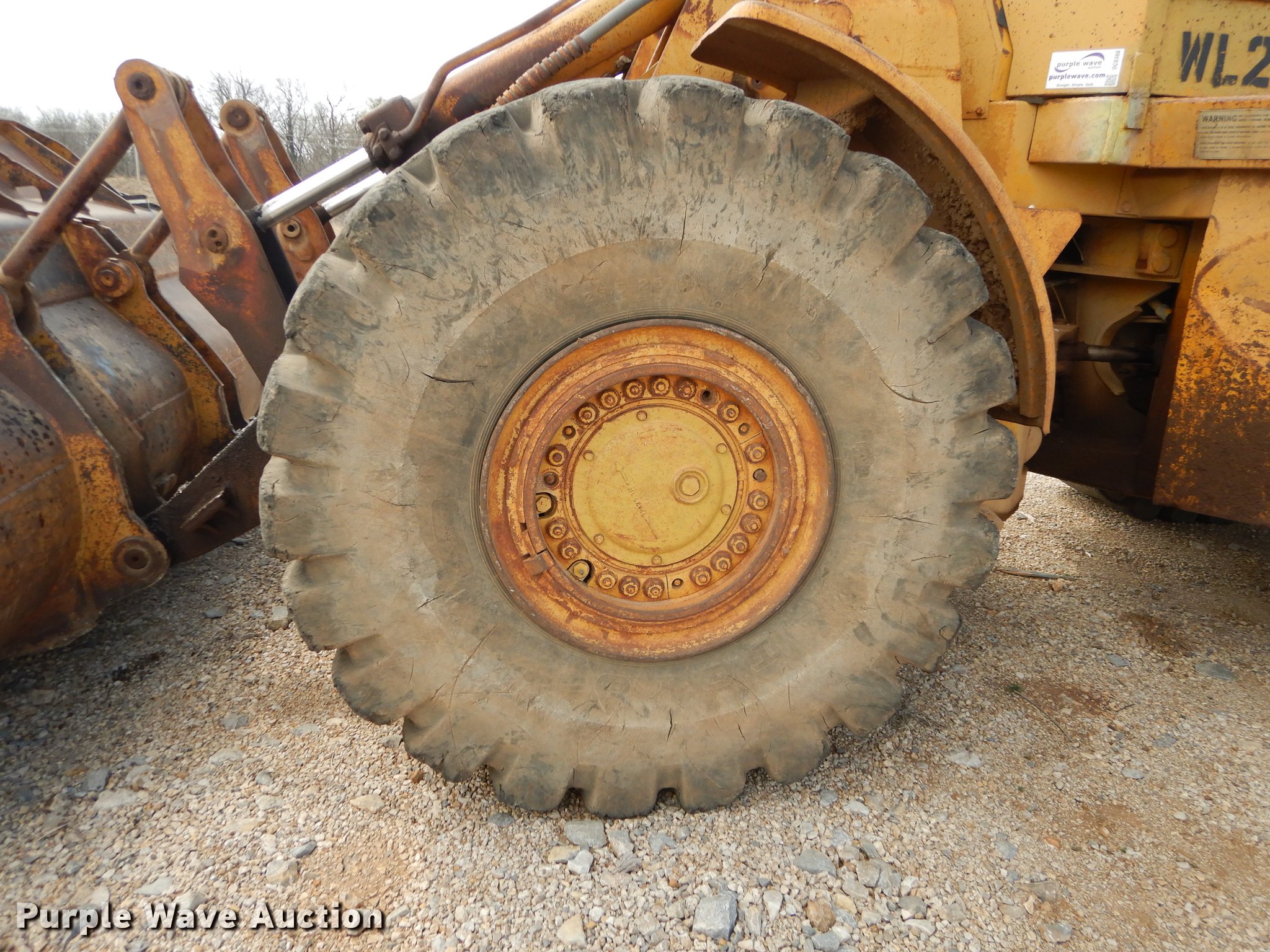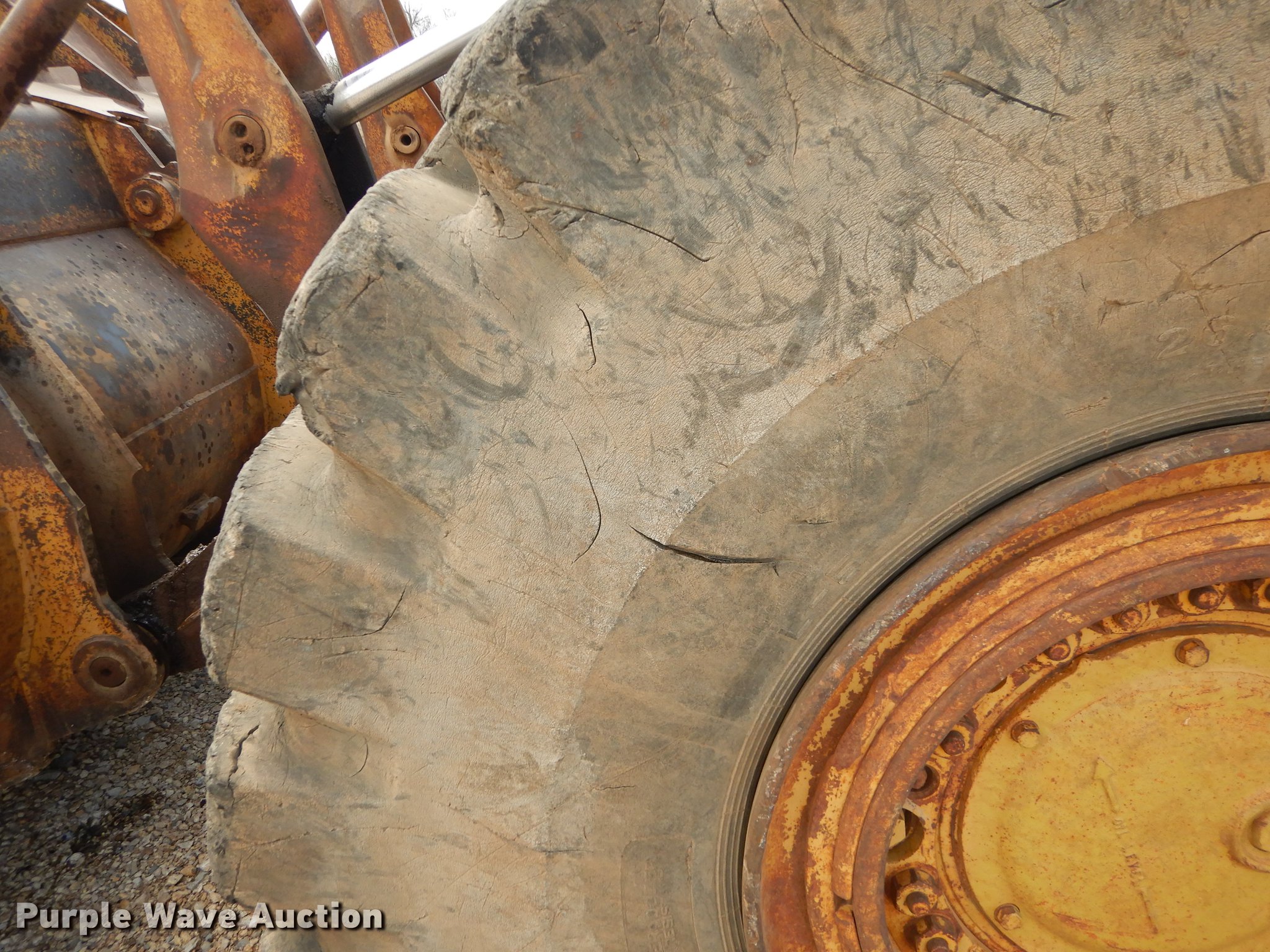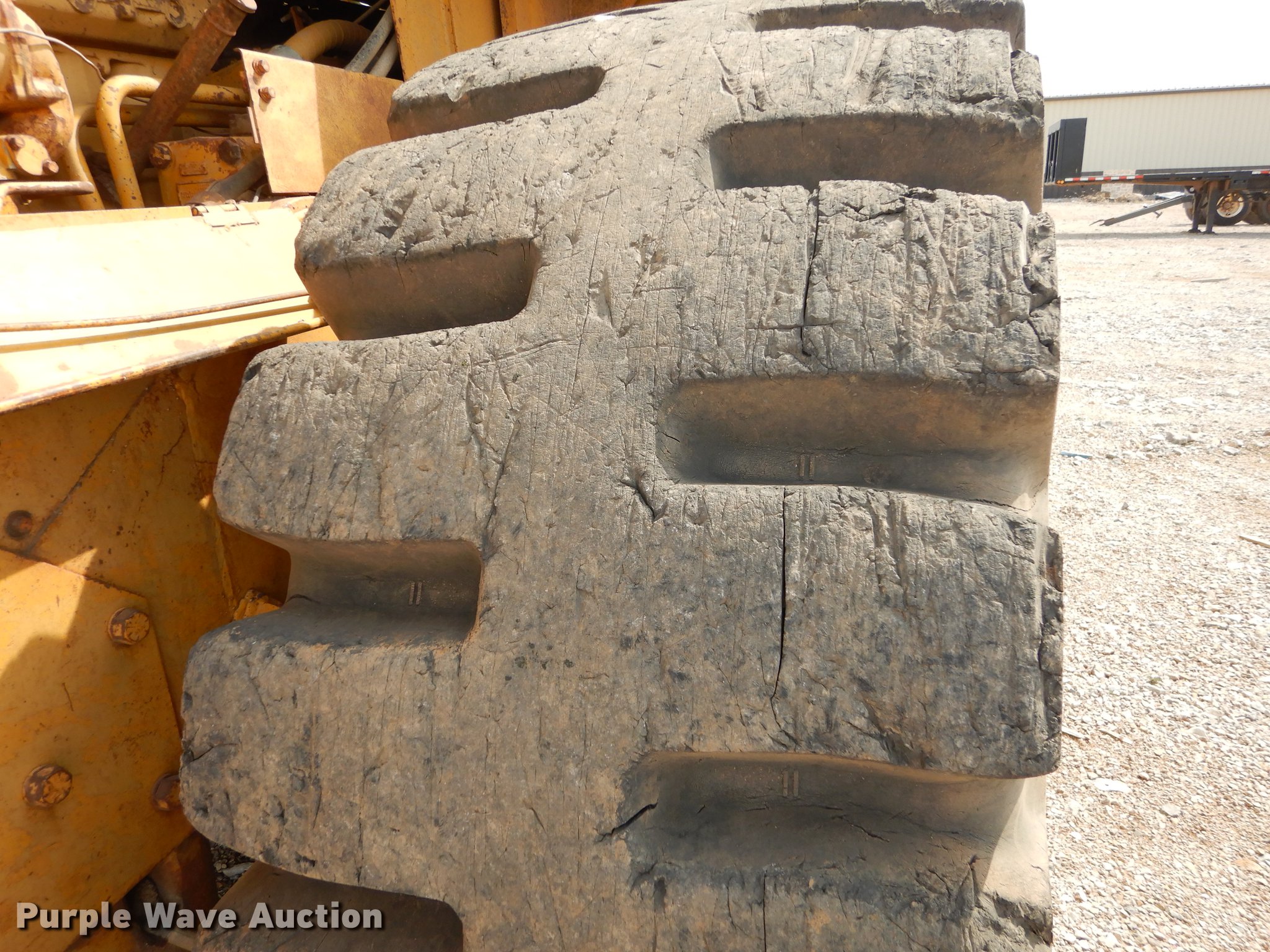 Purple Wave is selling a used Wheel Loader in Kansas. This item is a 1970 Caterpillar 980B wheel loader with the following: Caterpillar D333 six cylinder turbo diesel engine, 260 HP, Powershift transmission, 3F-3R gears, Enclosed cab, Heat, Two-lever bucket controls, Wipers, Front work lights, 125"W general purpose bucket, Weld-on cutting edge, Toyo 26.5-25 tires, Cylinders leak, Serial 89P469