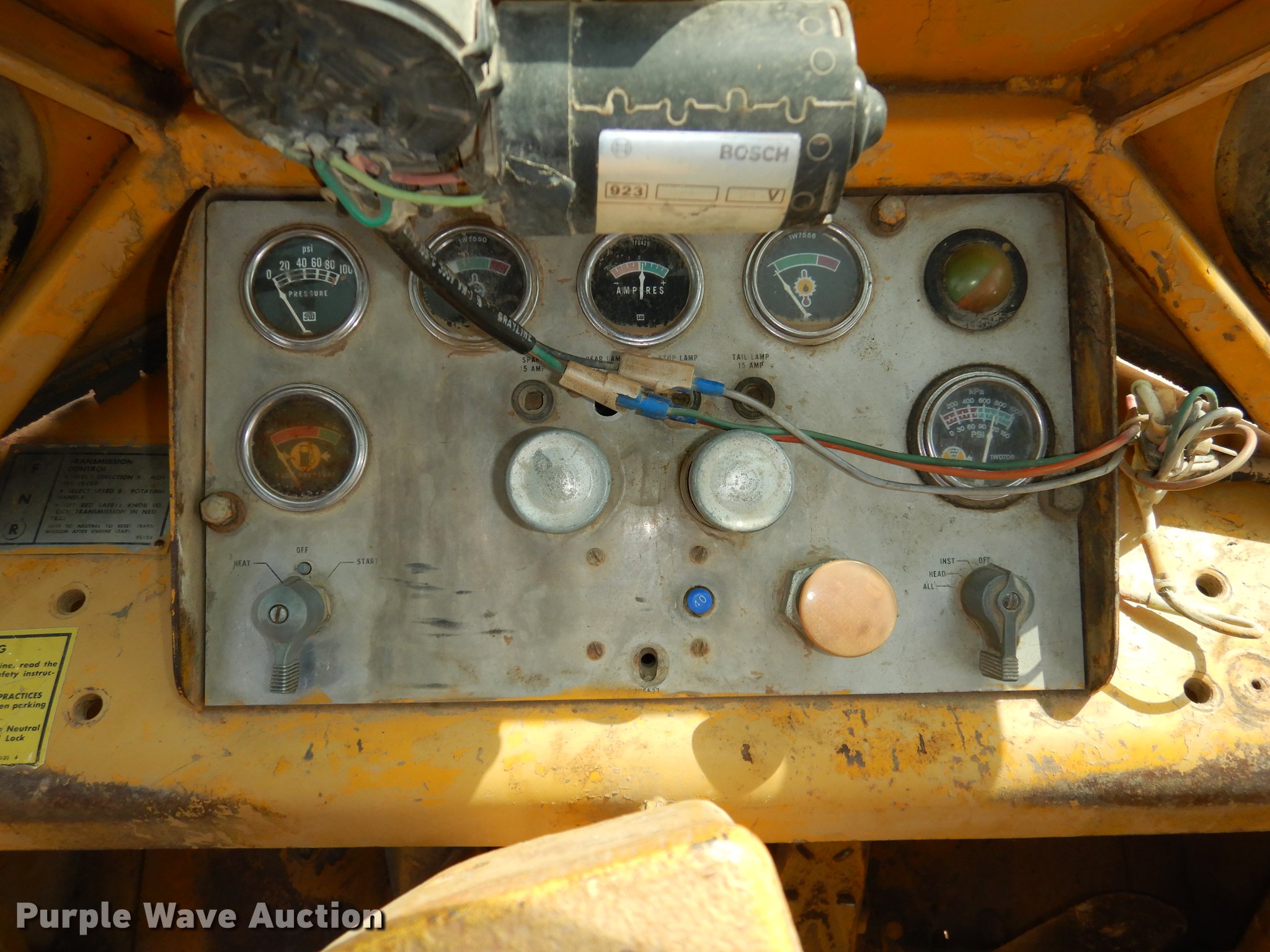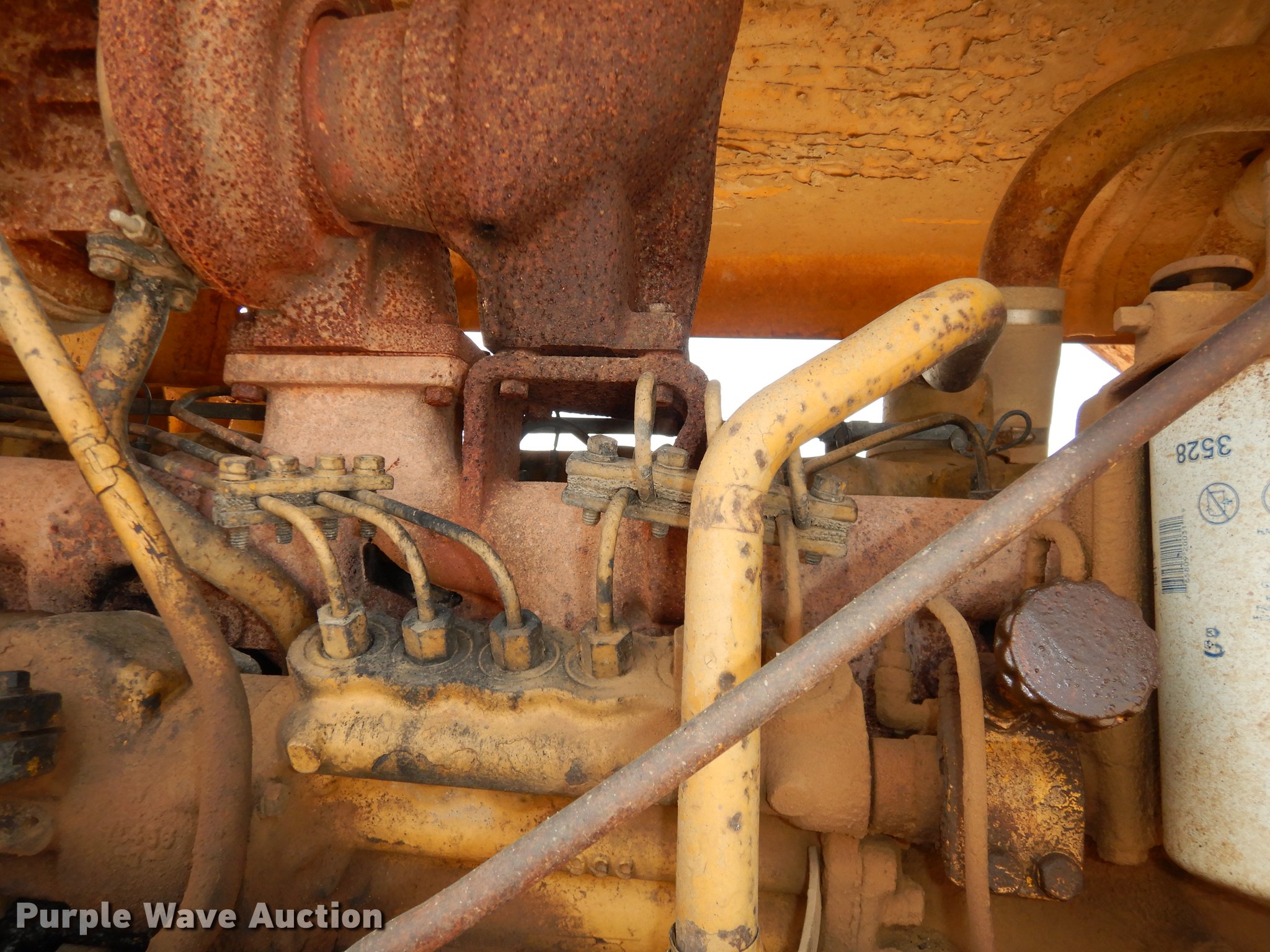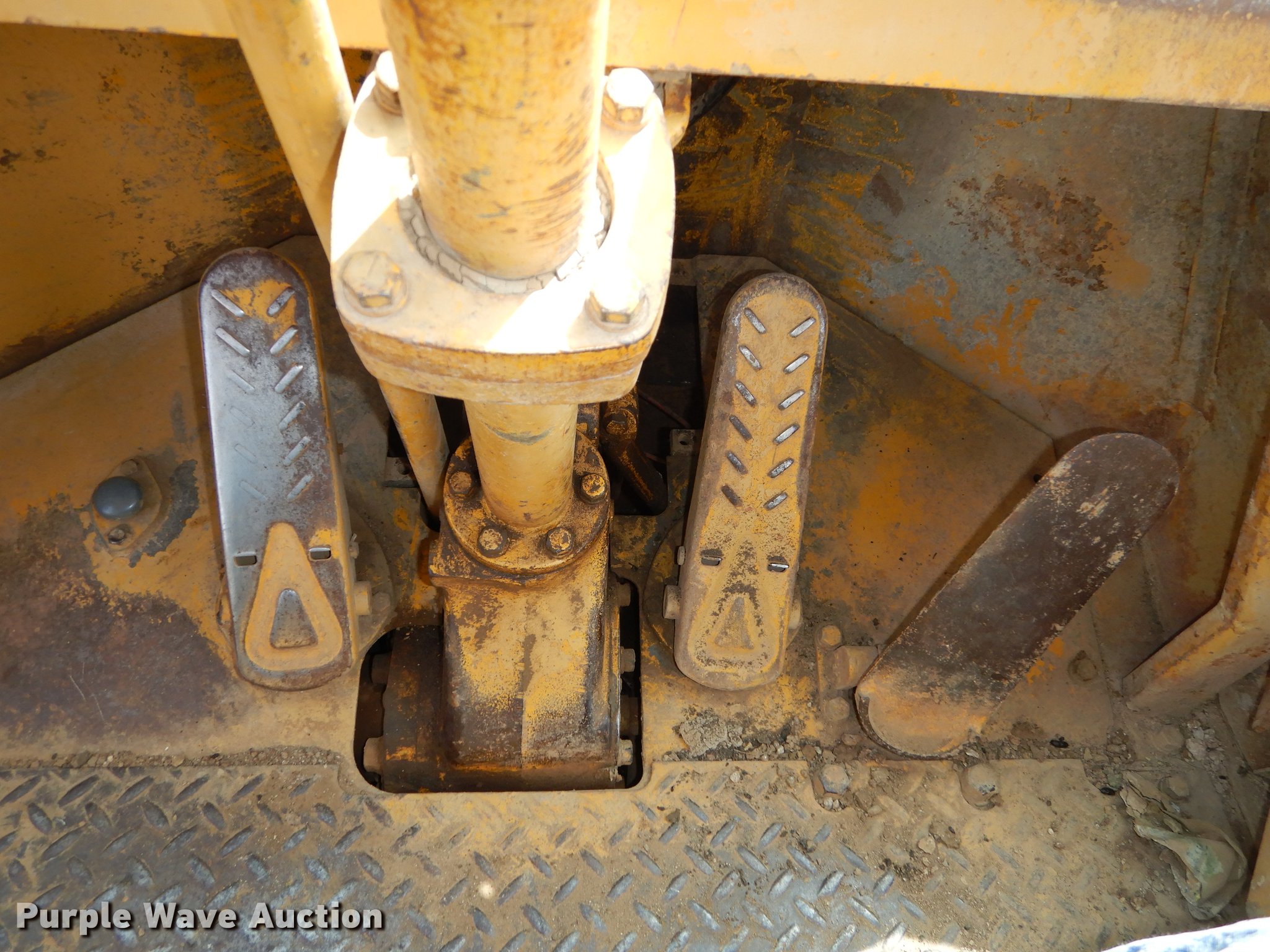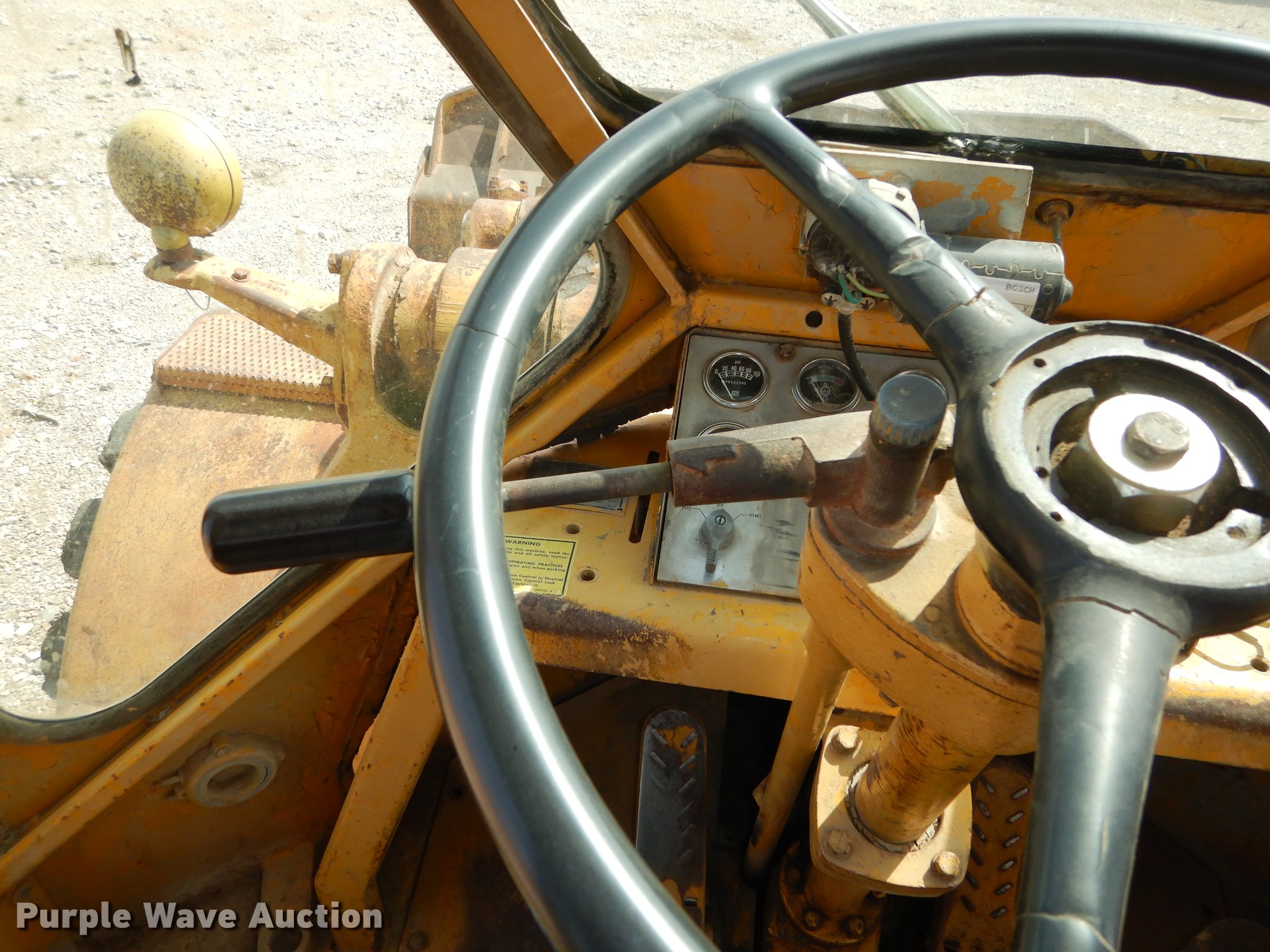 Purple Wave is selling a used Wheel Loader in Kansas. This item is a 1970 Caterpillar 980B wheel loader with the following: Caterpillar D333 six cylinder turbo diesel engine, 260 HP, Powershift transmission, 3F-3R gears, Enclosed cab, Heat, Two-lever bucket controls, Wipers, Front work lights, 125"W general purpose bucket, Weld-on cutting edge, Toyo 26.5-25 tires, Cylinders leak, Serial 89P469
