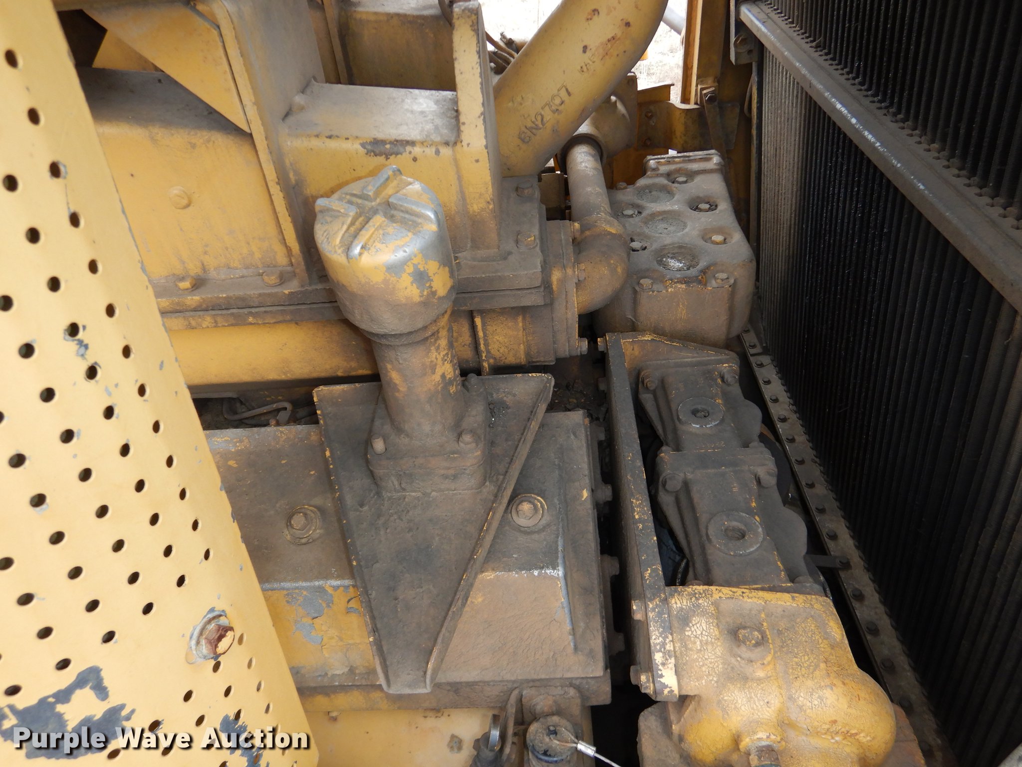 Purple Wave is selling a used Crawler Dozer in Kansas. This item is a Caterpillar D10 dozer with the following: 48,242 hours on meter, Caterpillar D348 29.3L 12 cylinder turbo diesel engine, 700 HP, Powershift transmission, 3F-3R gears, Cab, AC and heat, Clutch brake steering, Front and rear wipers, Front and rear work lights, 19'W Semi-U dozer blade, Eight bottom rollers, 32"W single grouser track pads, Non-operational unit, parts only, Engine issues, Cylinders leak
