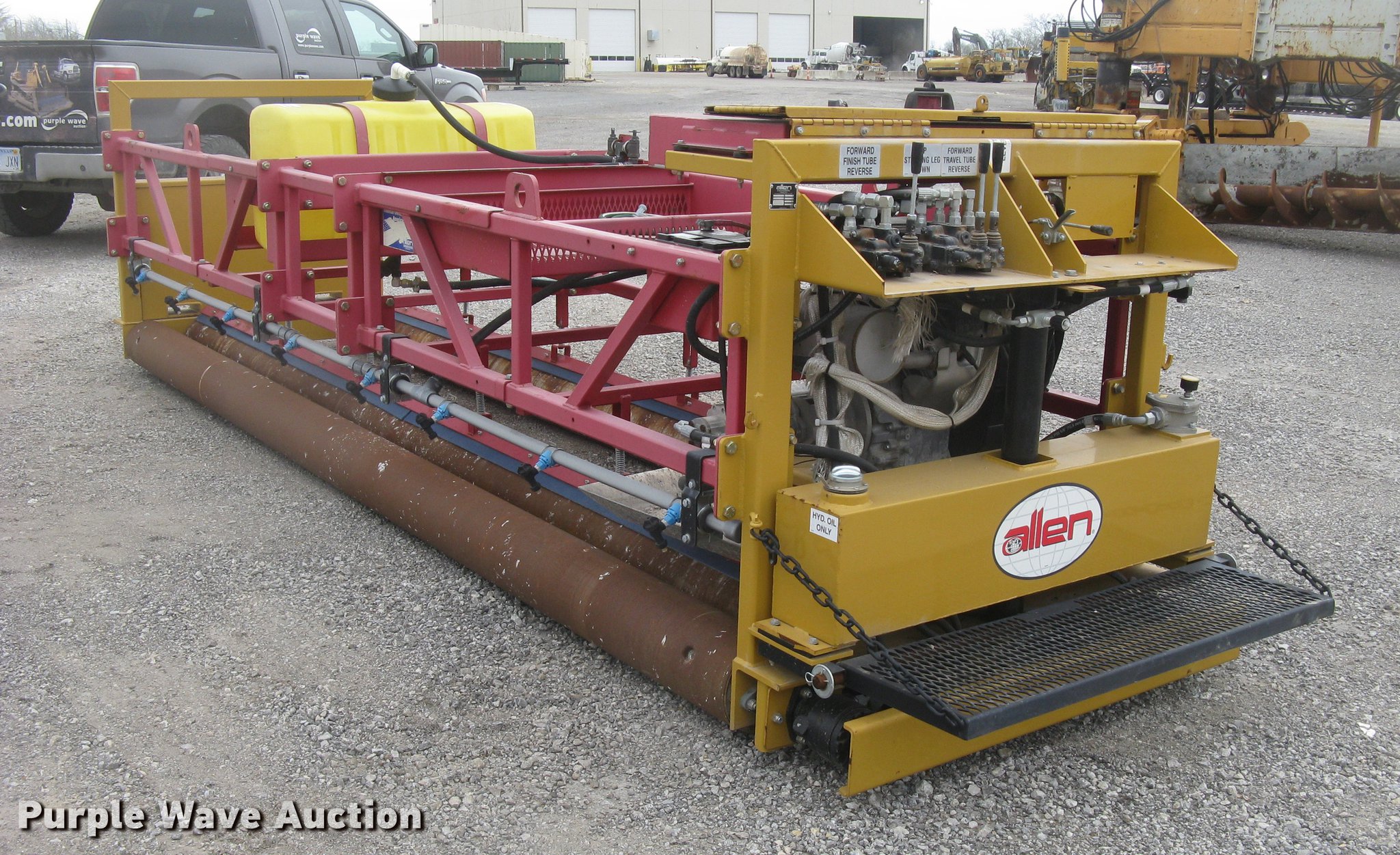 Purple Wave is selling a used Concrete Paver or Curb Machine in Oklahoma. This item is a 2013 Allen Engineering 200C tube paver with the following: Kohler CH1000 two cylinder gas engine, 40 HP, Serial 4217900151, Hydrostatic transmission, 14' paving width, Water system, 40 gallon poly water tank, (8) nozzles, Operating platform, Vandal guard, Fork pockets, Lifting eye, 3,710 lbs. base operating weight, Serial T20C130167, Unit# 83.08C