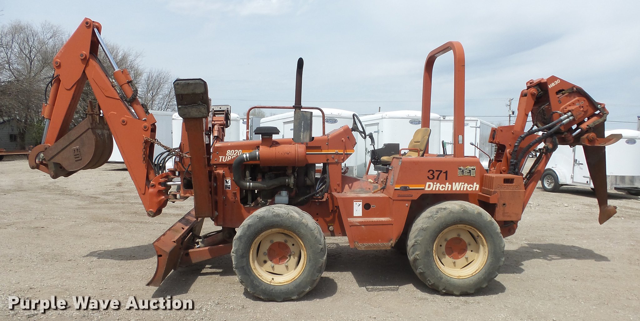Purple Wave is selling a used Cable Plow in Kansas. This item is a 2000 Ditch Witch 8020 Turbo cable plow with the following: 3,070 hours on meter, John Deere four cylinder diesel engine, Hydrostatic transmission, Four wheel drive, Rear steer, Two post ROPS, Ditch Witch H830 vibratory plow, 48" maximum digging depth, Hydraulic swing and lift, Ditch Witch A620 backhoe, 4' stick length, 18"W bucket, Serial 1S0625, 72"W six-way backfill blade, (12) counterweights, 38 x 18.00-20 NHS tires, Serial 5T0461