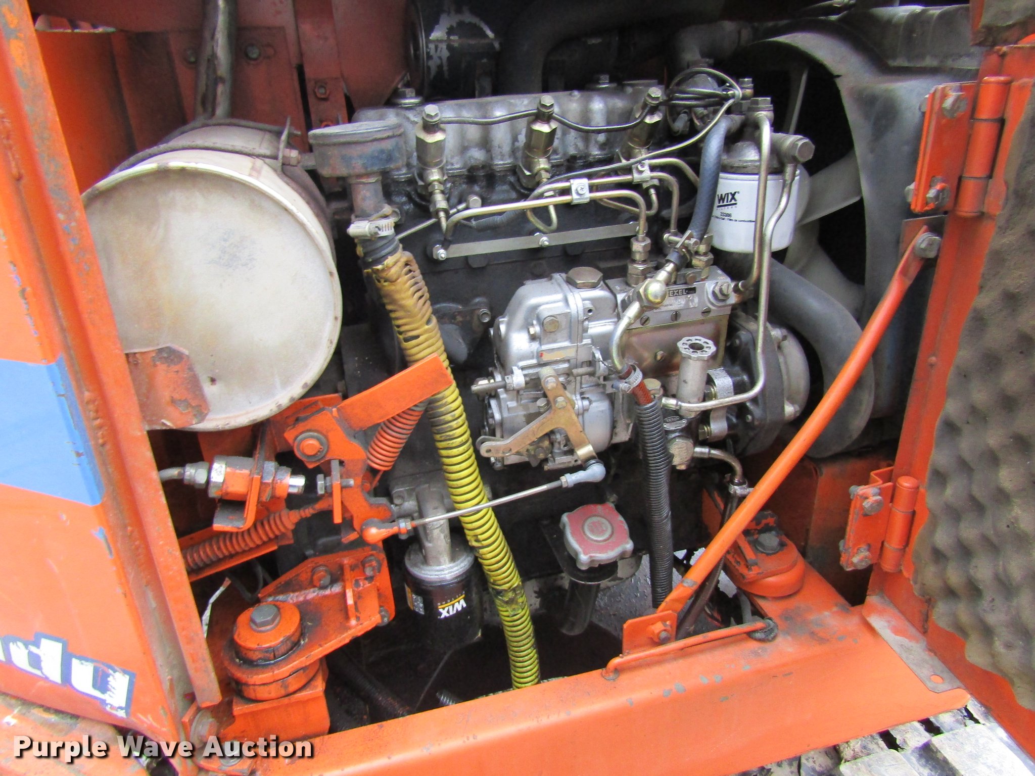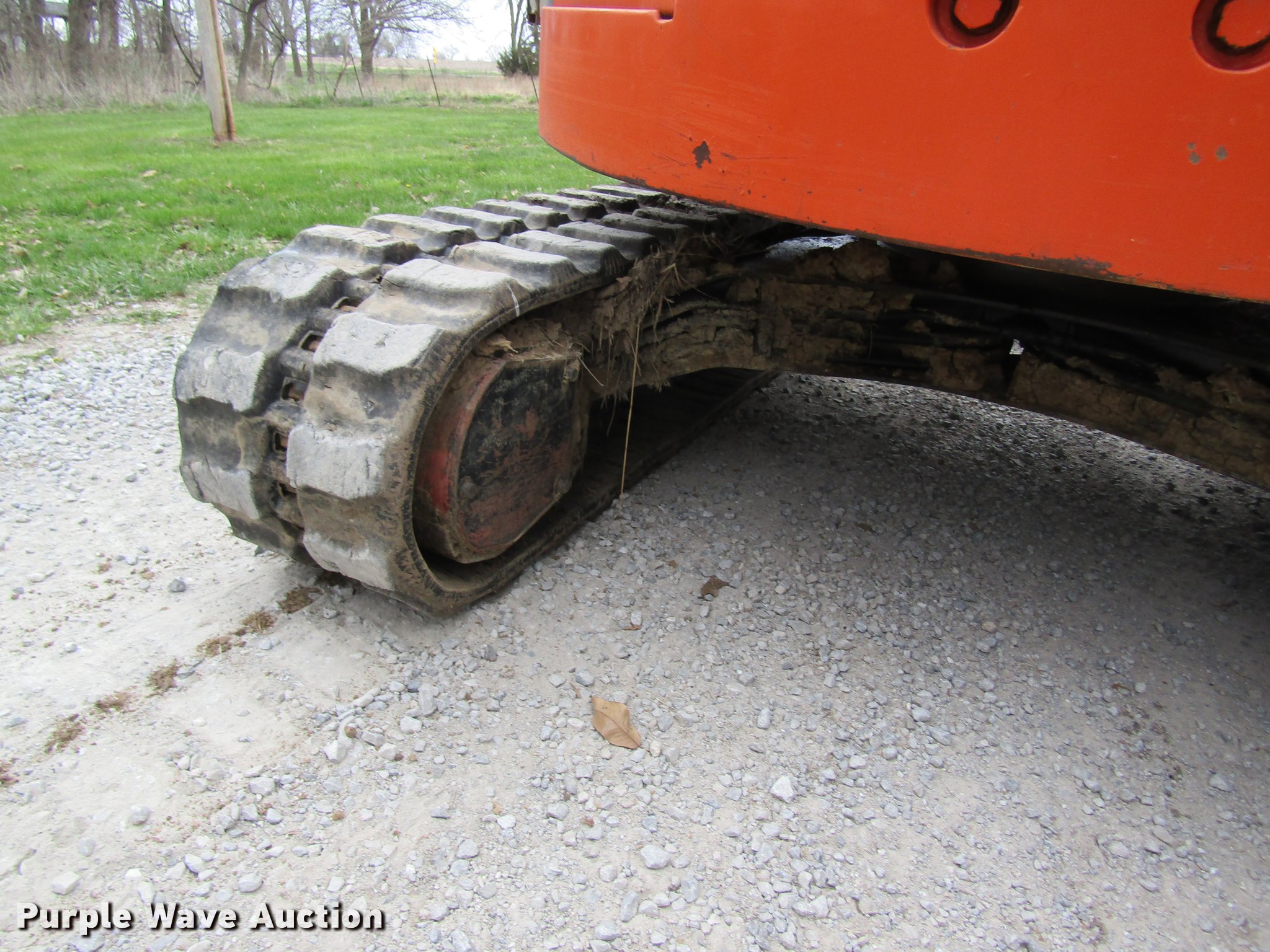 Purple Wave is selling a used Mini Excavator in Missouri. This item is a Hitachi EX50URG mini excavator with the following: 3,664 hours on meter, Isuzu 3AB1HP four cylinder diesel engine, Hydrostatic transmission, Shop built cab, Heat, Suspension seat, Joysitck constrols, Front work lights, Knuckle boom, 24"W bucket, (4) weld-on teeth, 9"W bucket, 79"W backfill blade, 16"W rubber tracks, Serial 10E02567