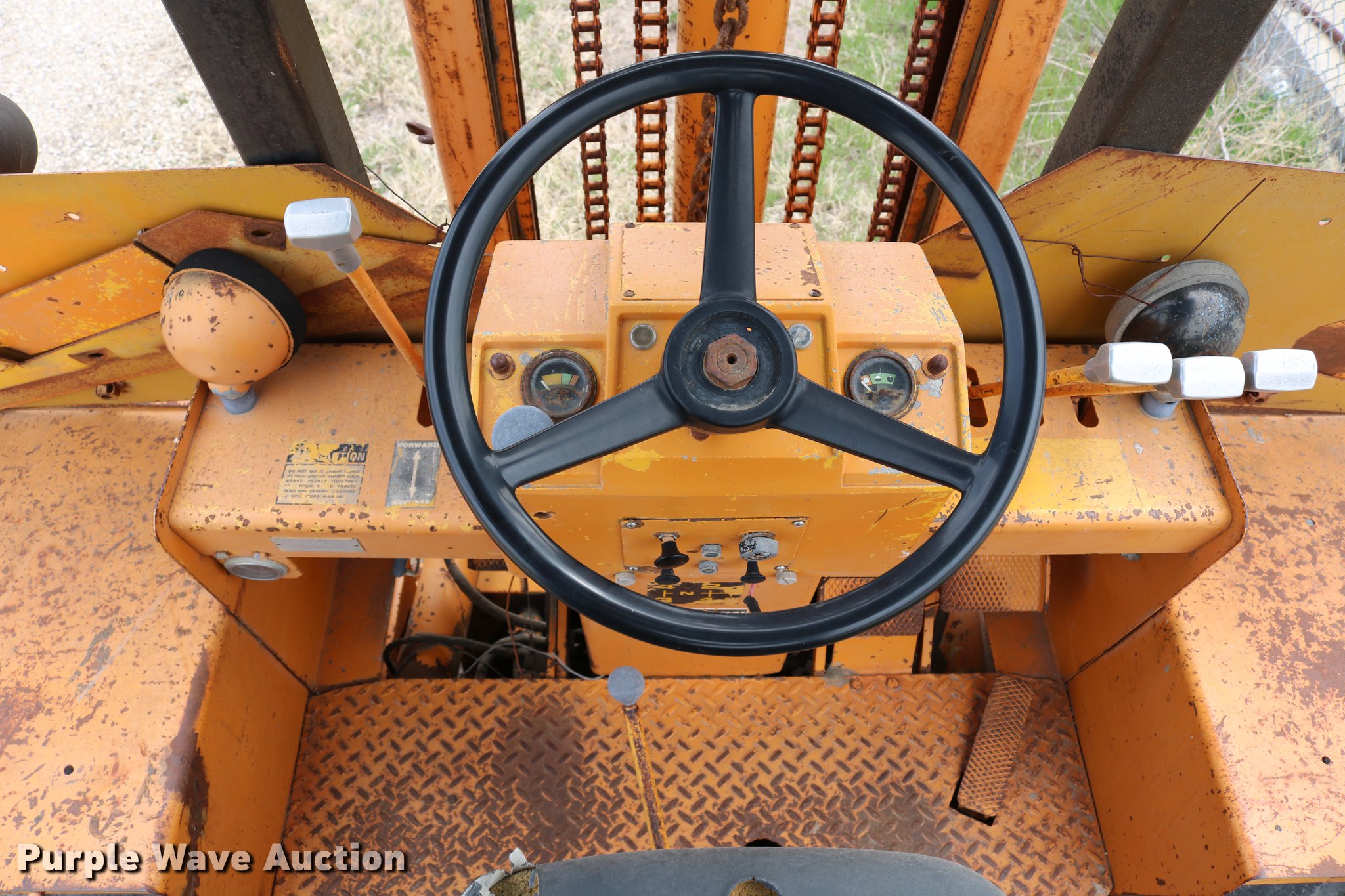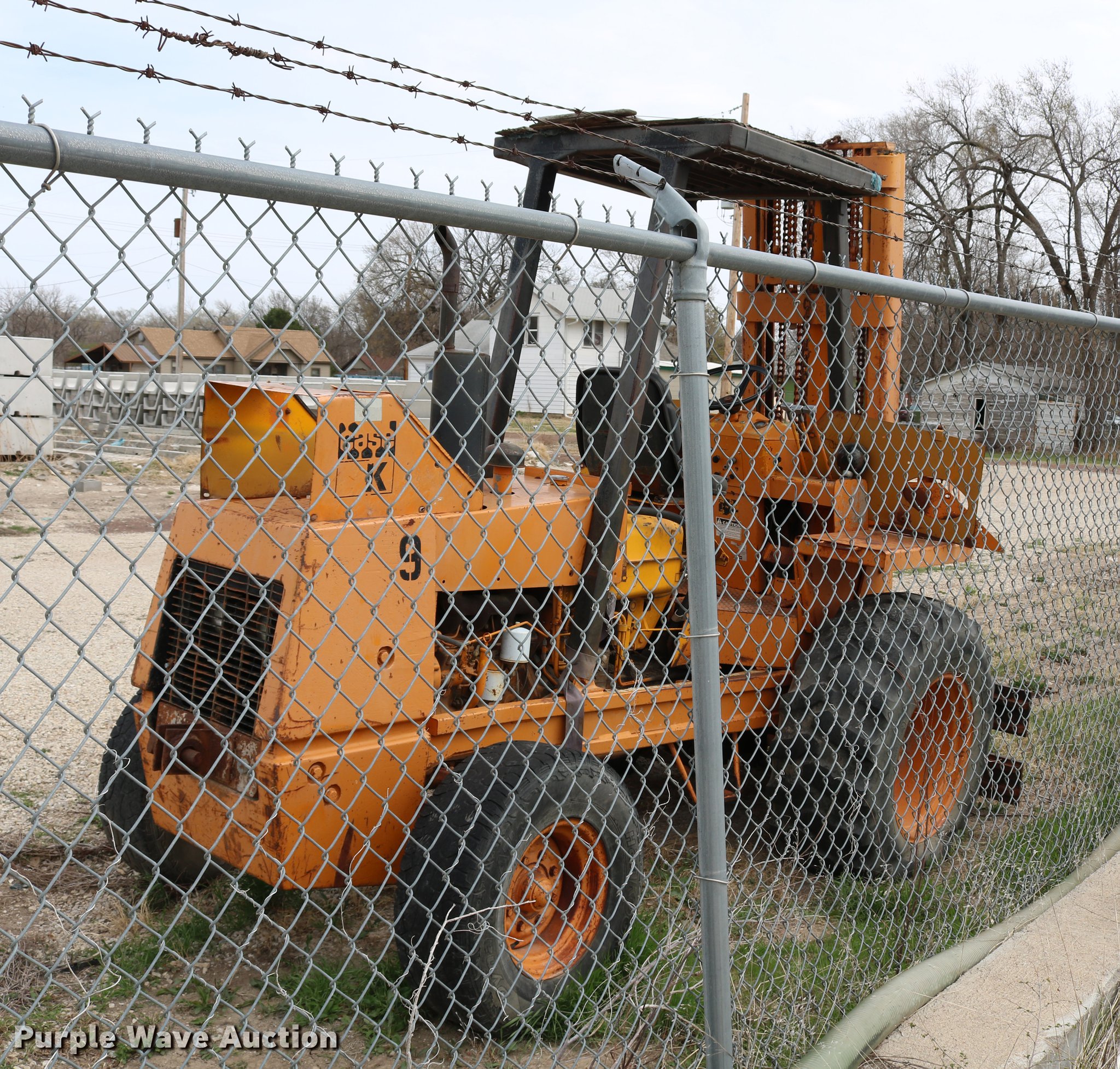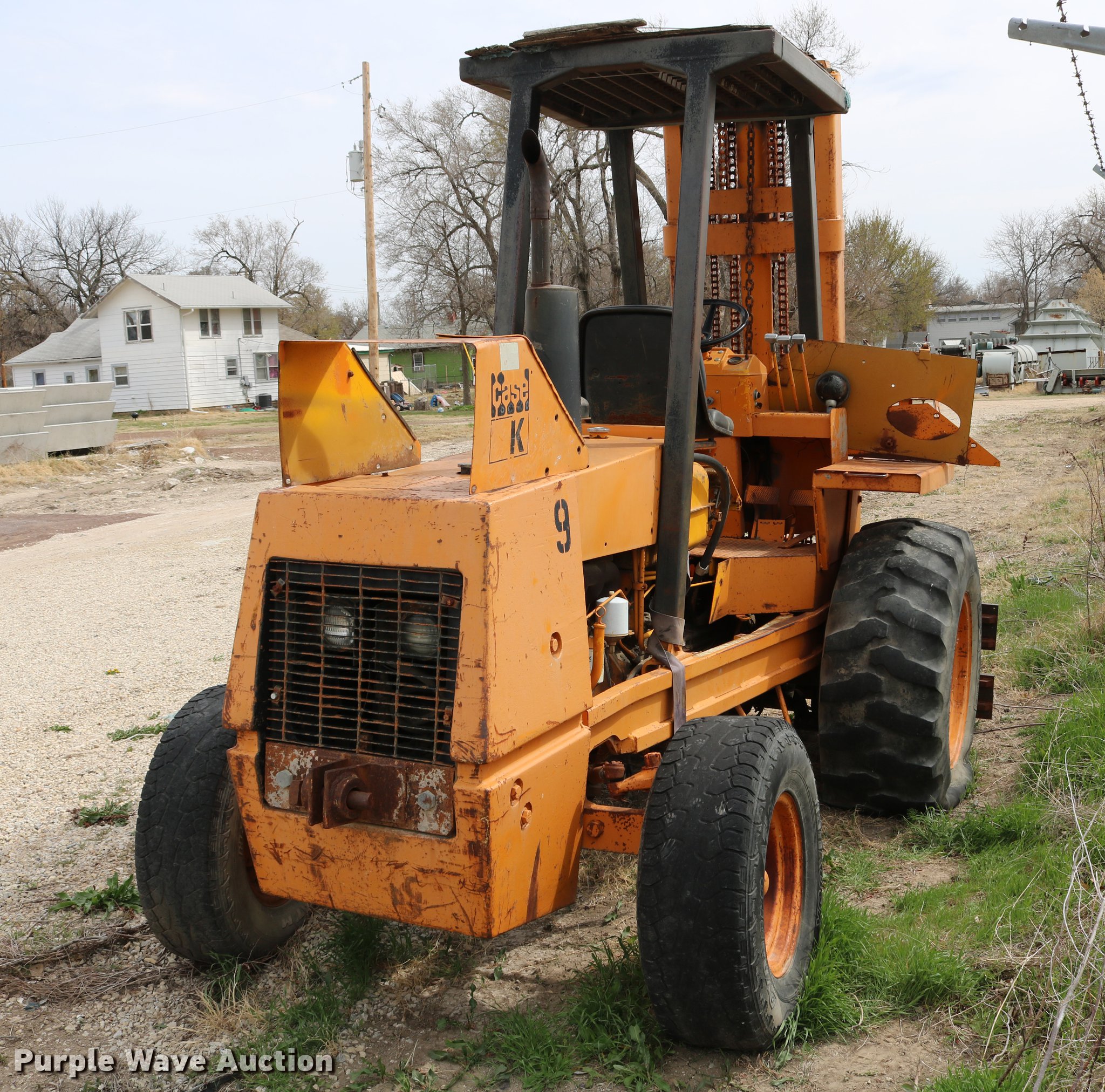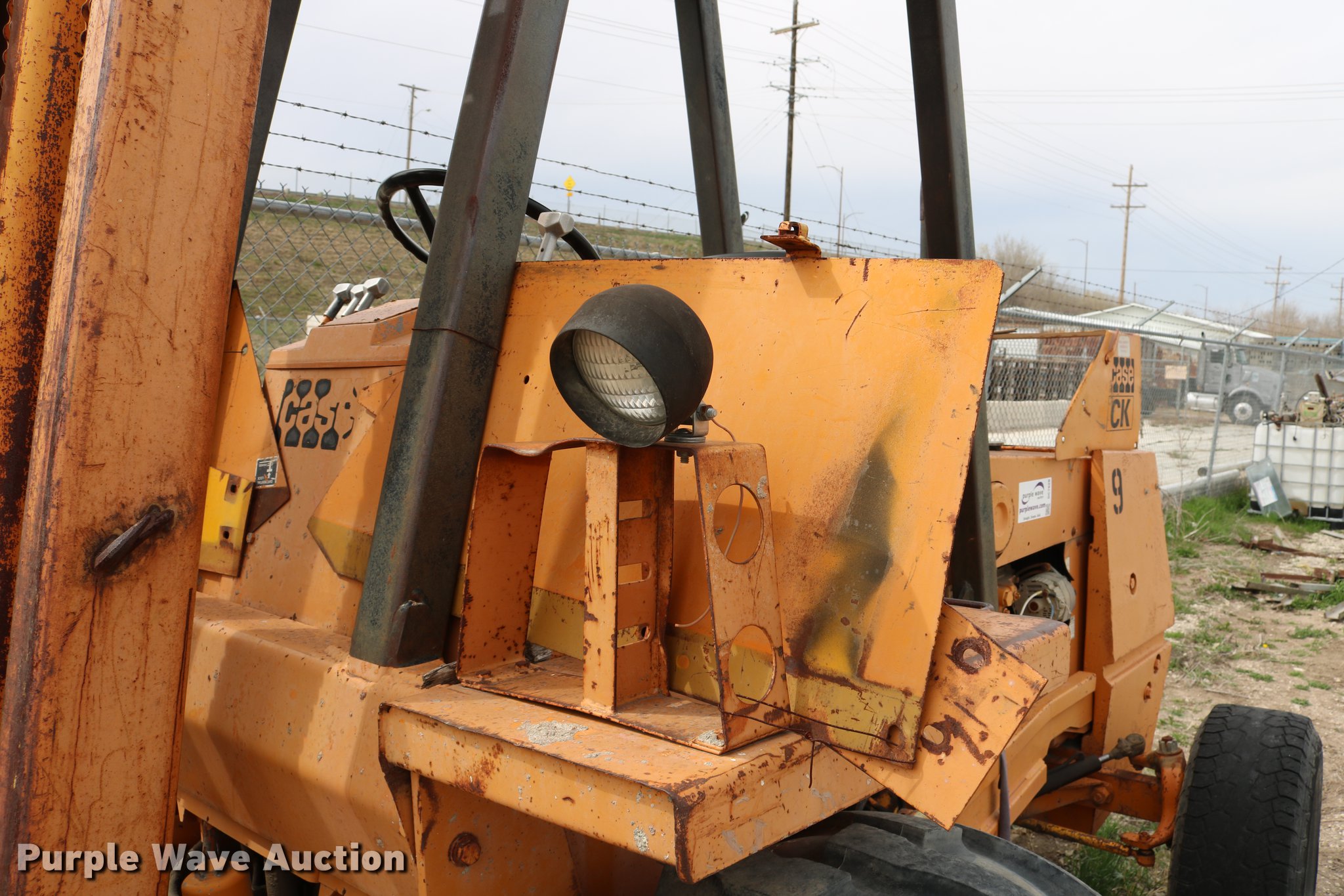 Purple Wave is selling a used Strt. Mast Rough Terr. Forklift in Kansas. This item is a Case 580BCK forklift with the following: 110 hours on meter, Four cylinder diesel engine, Manual transmission, 4F-1R gears, OROPS, Mast tilt, 17.5L-24 front tires, 285/75R16 rear tires, Non-operational transmission, Non-operational hour meter, No batteries, Serial 8740998