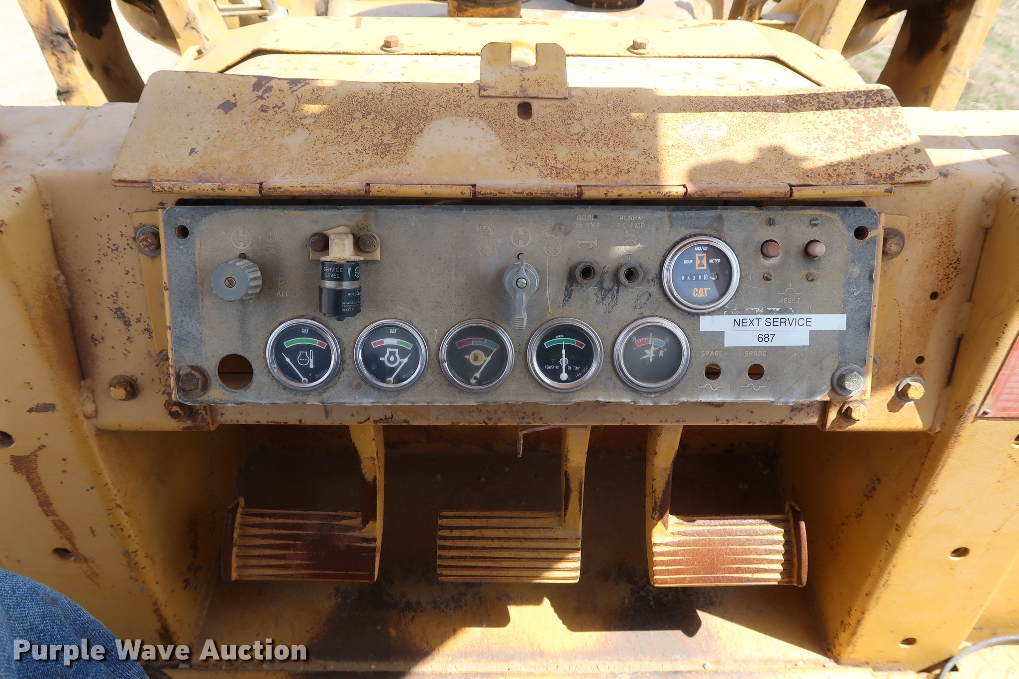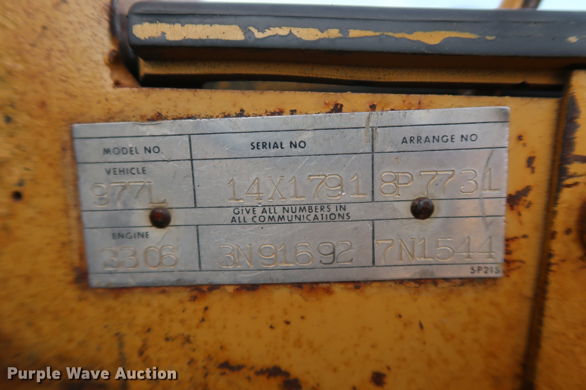 Purple Wave is selling a used Crawler Loader in Missouri. This item is a 1980 Caterpillar 977L track loader with the following: 438 hours on meter, Caterpillar 3306 six cylinder turbo diesel engine, Powershift transmission, 3F-3R gears, Canopy, Two-lever bucket controls, 96"W general purpose bucket, (8) bolt-on teeth, Pin hitch, 18"W double grouser track pads, Serial 14X1791