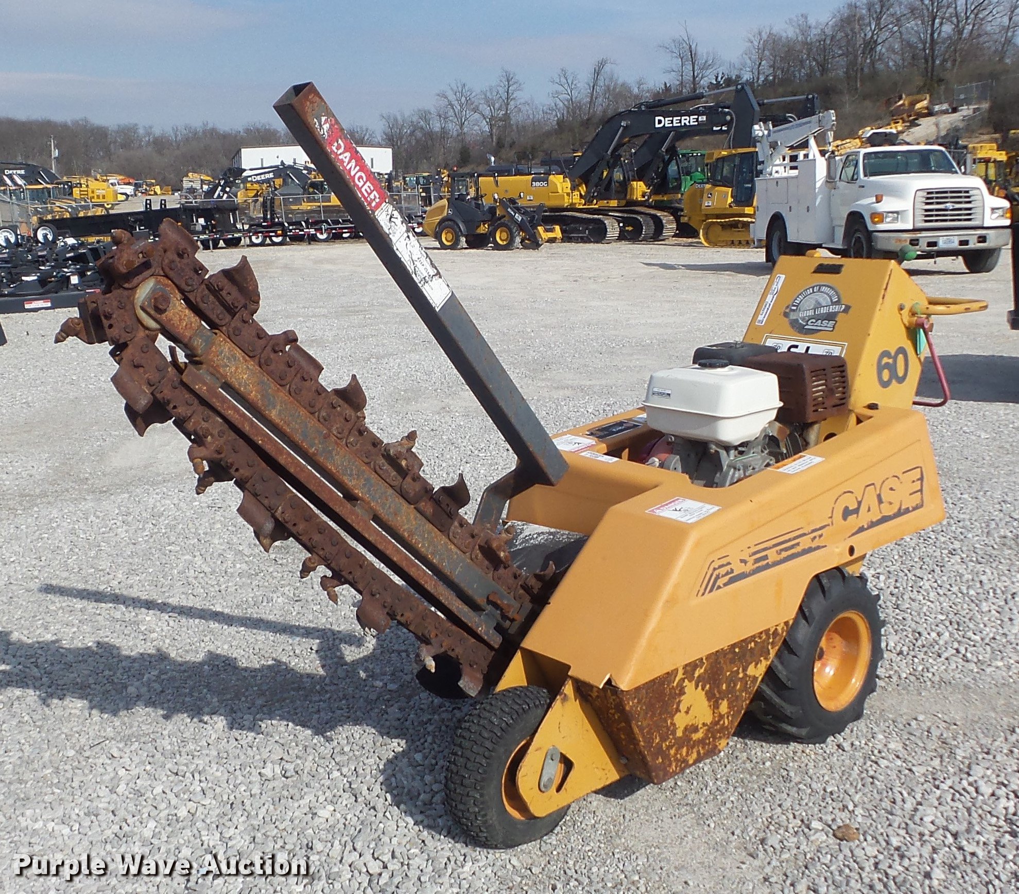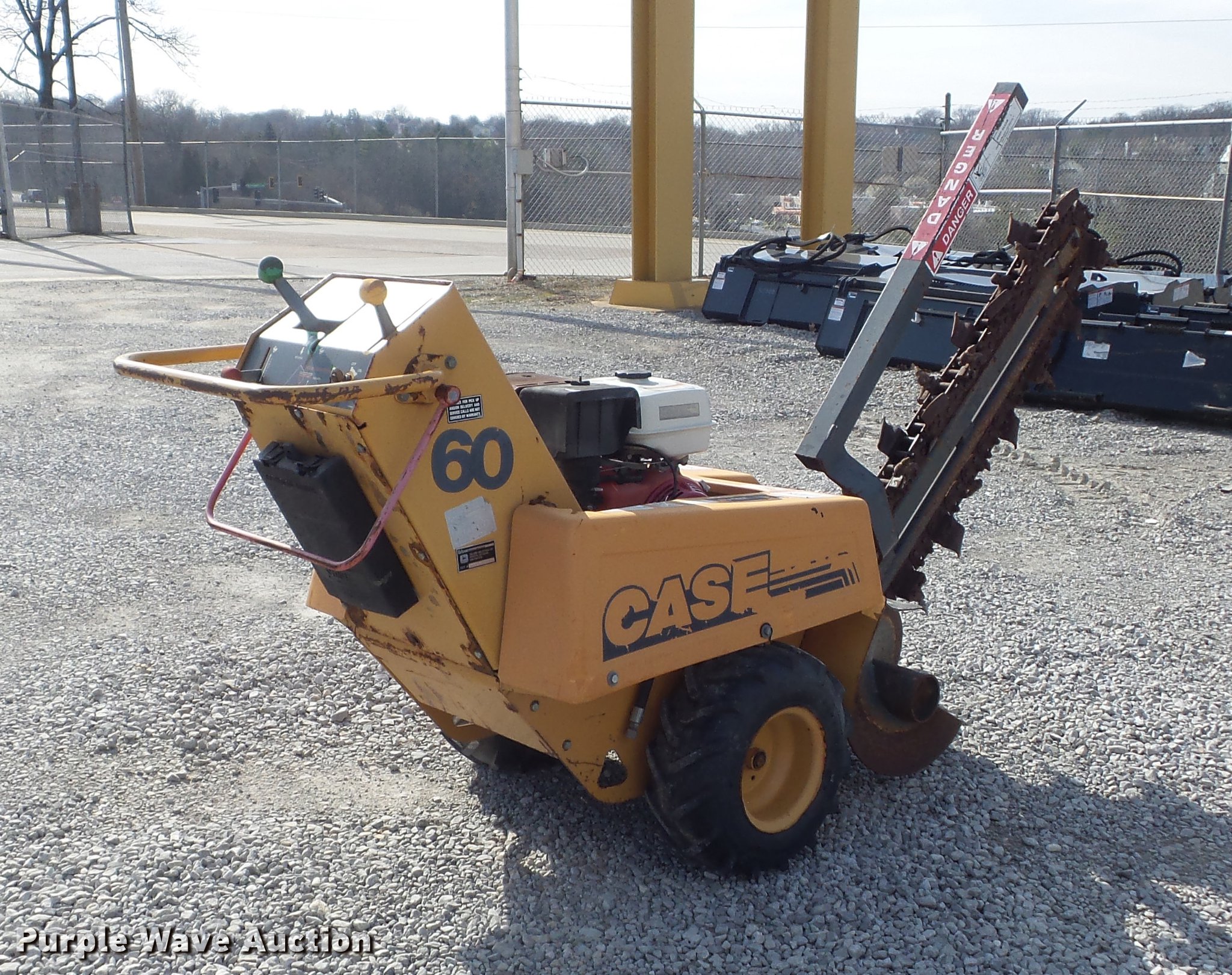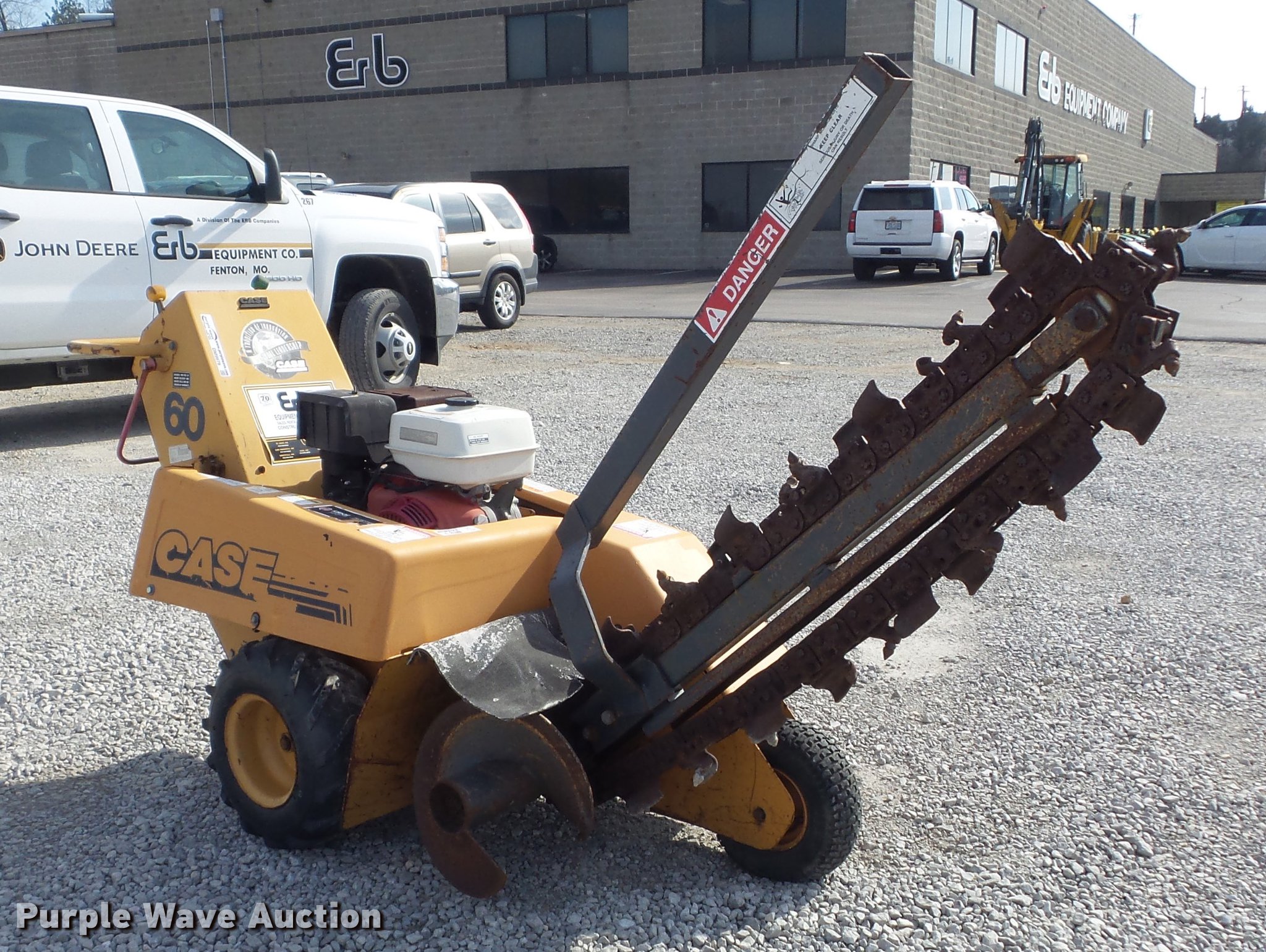 Purple Wave is selling a used Trencher or Rock Saw in Missouri. This item is a 1998 Case 60 trencher with the following: Honda GX390 single cylinder gas engine, 13 HP, Hydrostatic transmission, 36"L trencher boom, 6" cutting width, Rock and dirt teeth, Restraint bar, 16 x 6.50-8 front tires, 13 x 5.00-6 rear tires, Serial JAF0254143, Unit# 95849