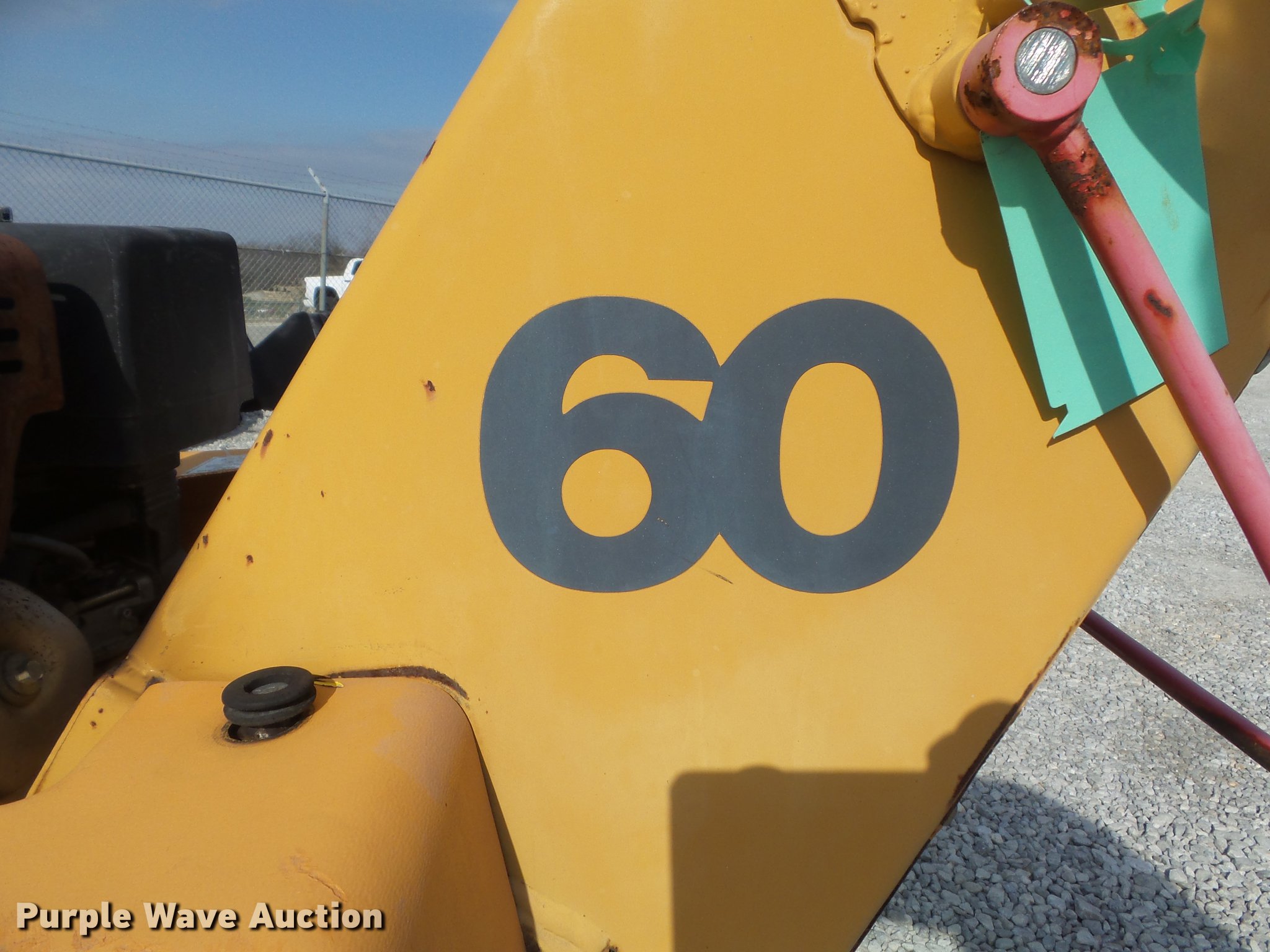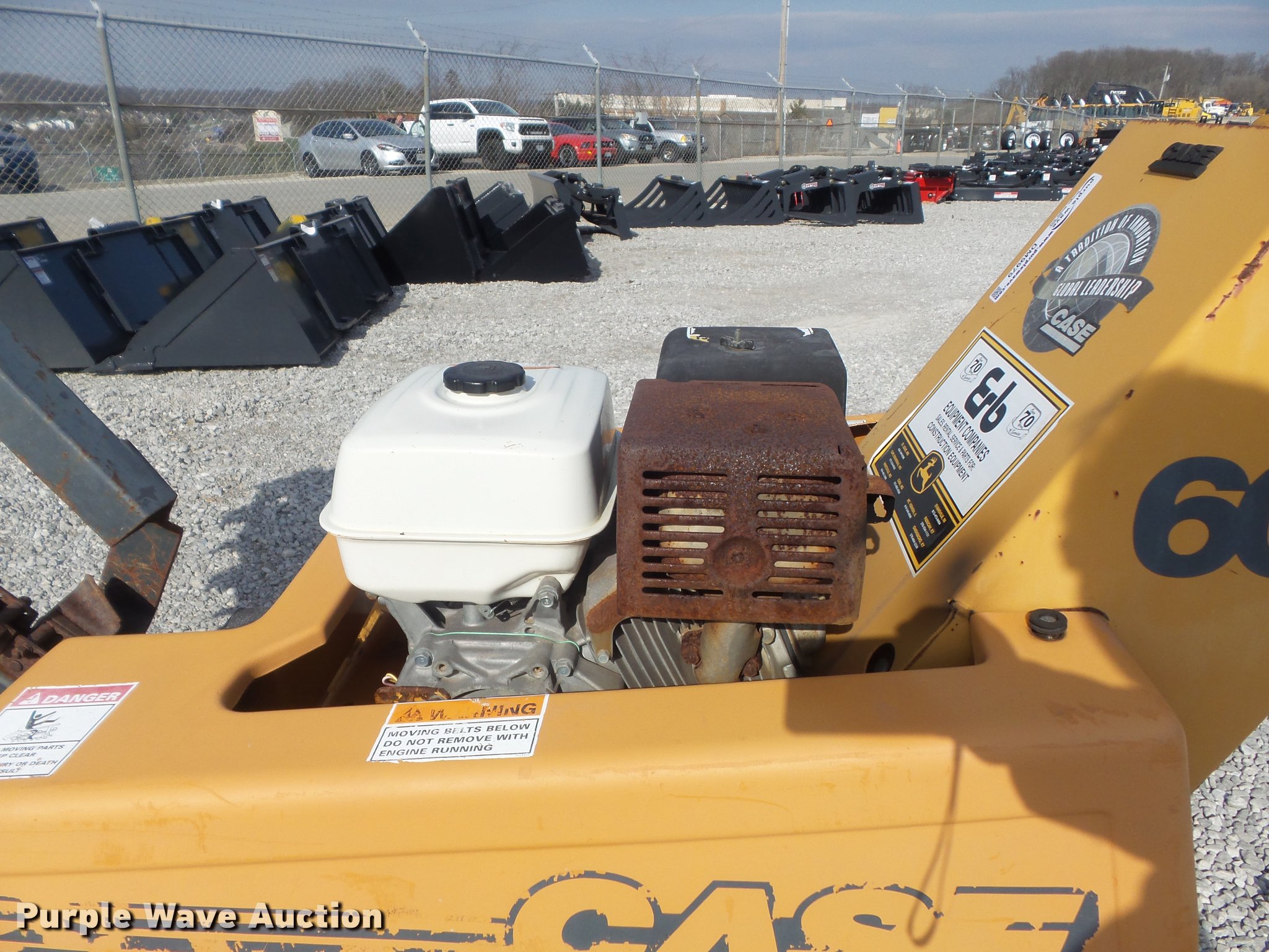 1998 Case 60 trencher. Honda GX390 single cylinder gas engine 13 HP, Hydrostatic transmission, 36"L trencher boom, 6" cutting width, Rock and dirt teeth, Restraint bar, 16 x 6.50-8 front tires, 13 x 5.00-6 rear tires, Serial JAF0254143, Unit# 95849. ERB Equipment Co.. 200 Erb Industrial Dr. Fenton, MO 63026