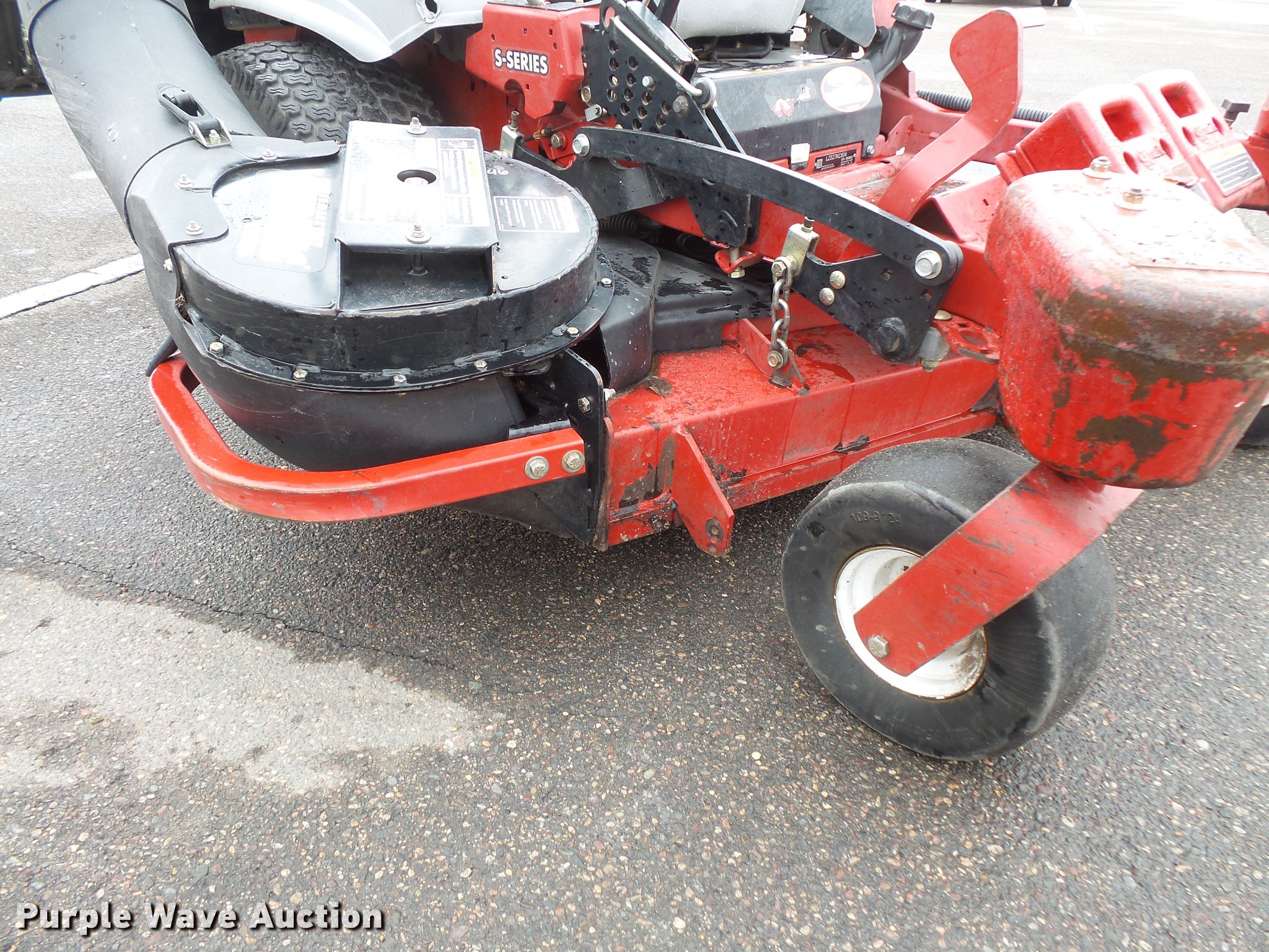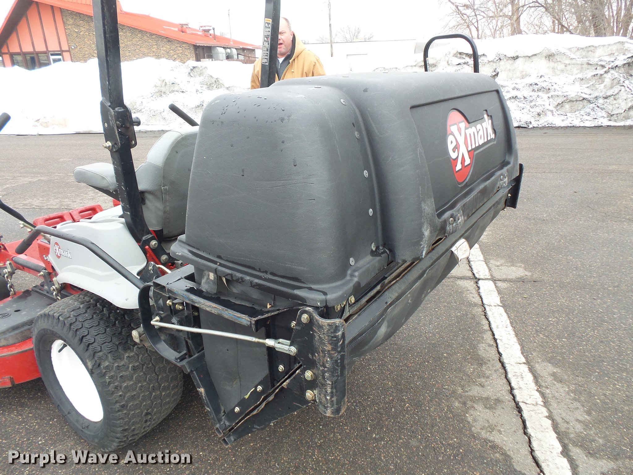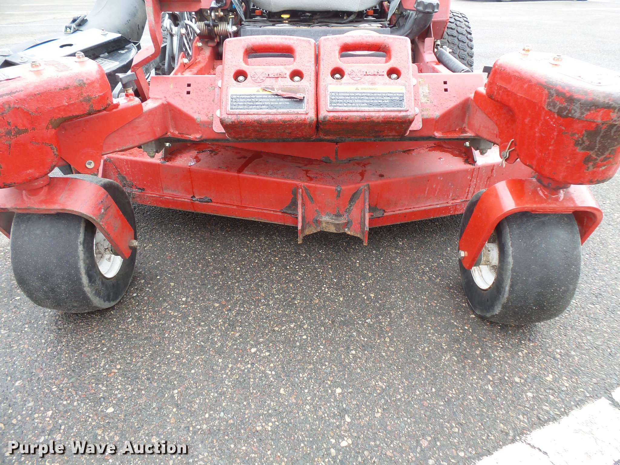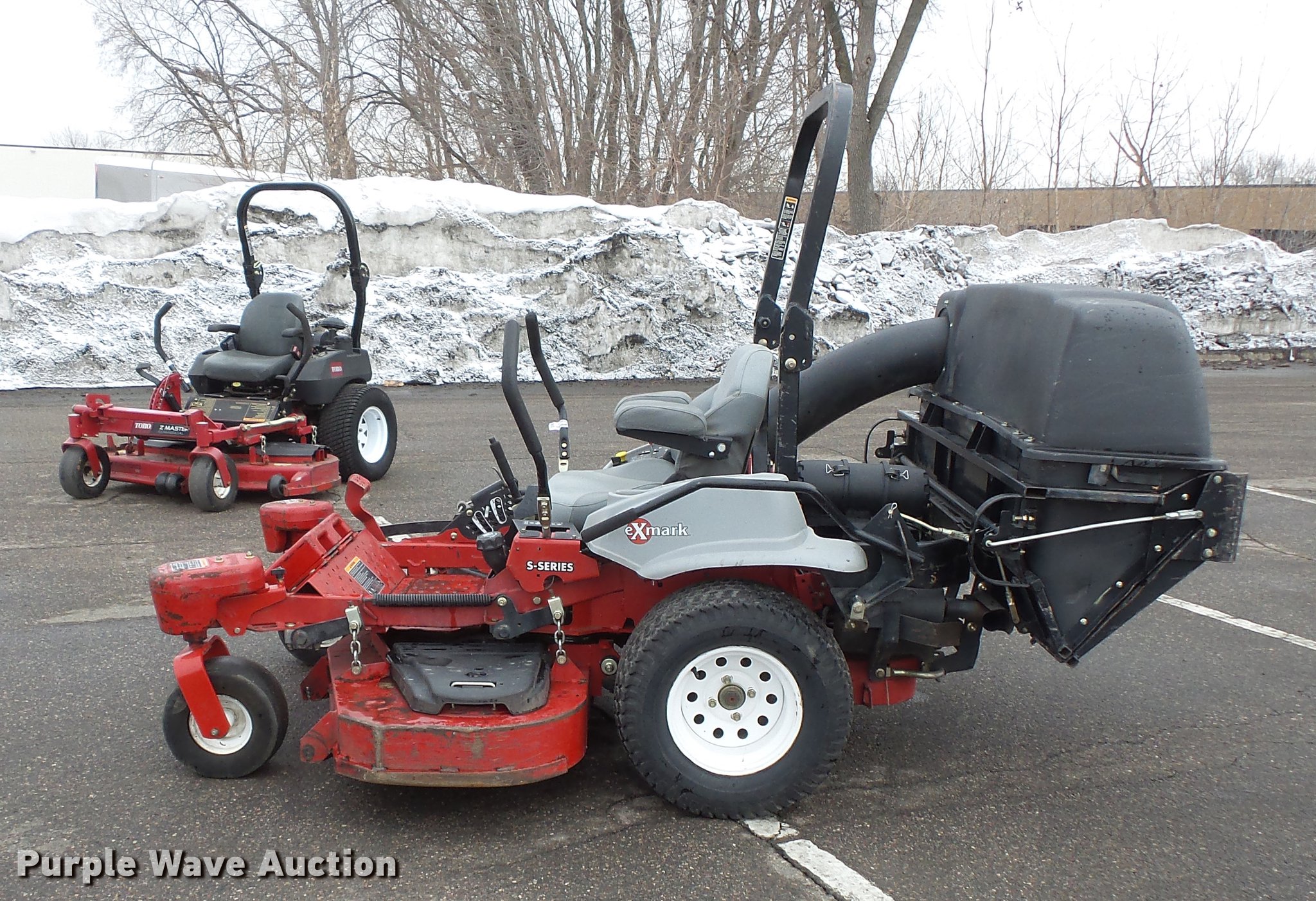 Purple Wave is selling a used Commercial Turf Mower in Minnesota. This item is a Exmark Laser Z ZTR lawn mower with the following: 2,208 hours on meter, 60"W cutting capacity, Kohler Command Pro CV742 two cylinder gas engine, Serial 4405802601, Hydrostatic transmission, Folding ROPS, Exmark Ultra Vac X-Series bagger, (4) front mounted counter weights, 13 x 6.5-6 front tires, 24 x 12.5-12 rear tires, Serial 980892